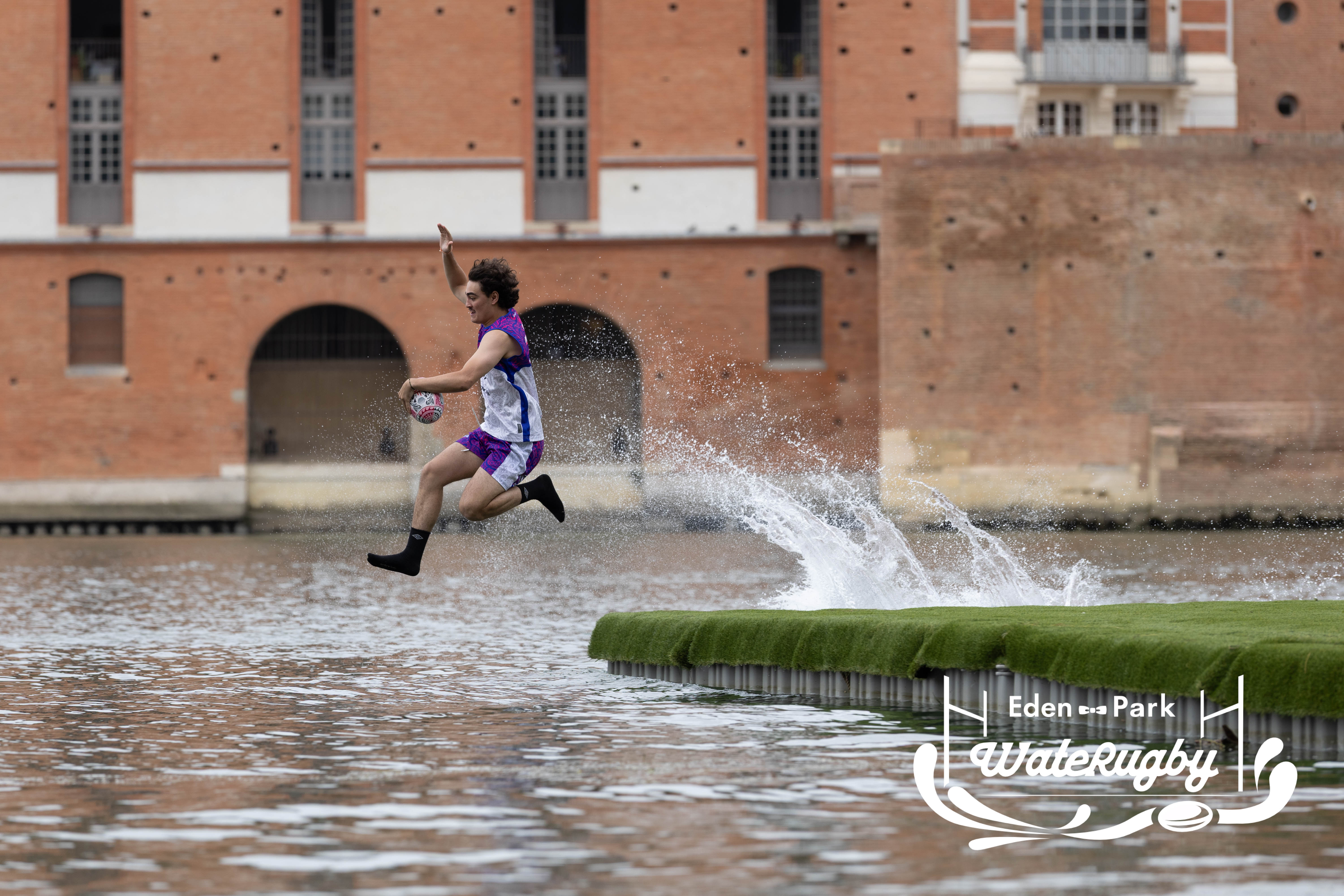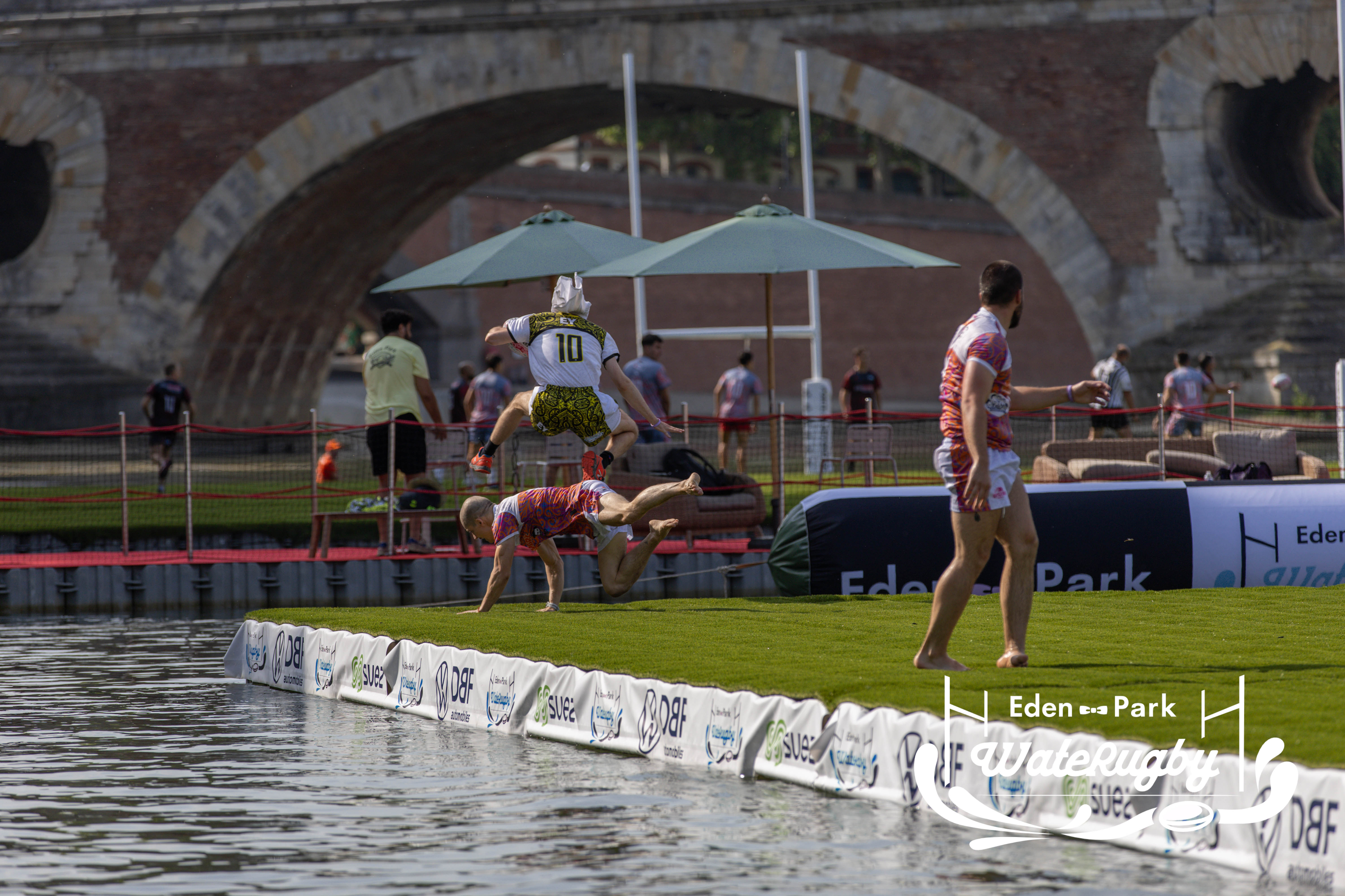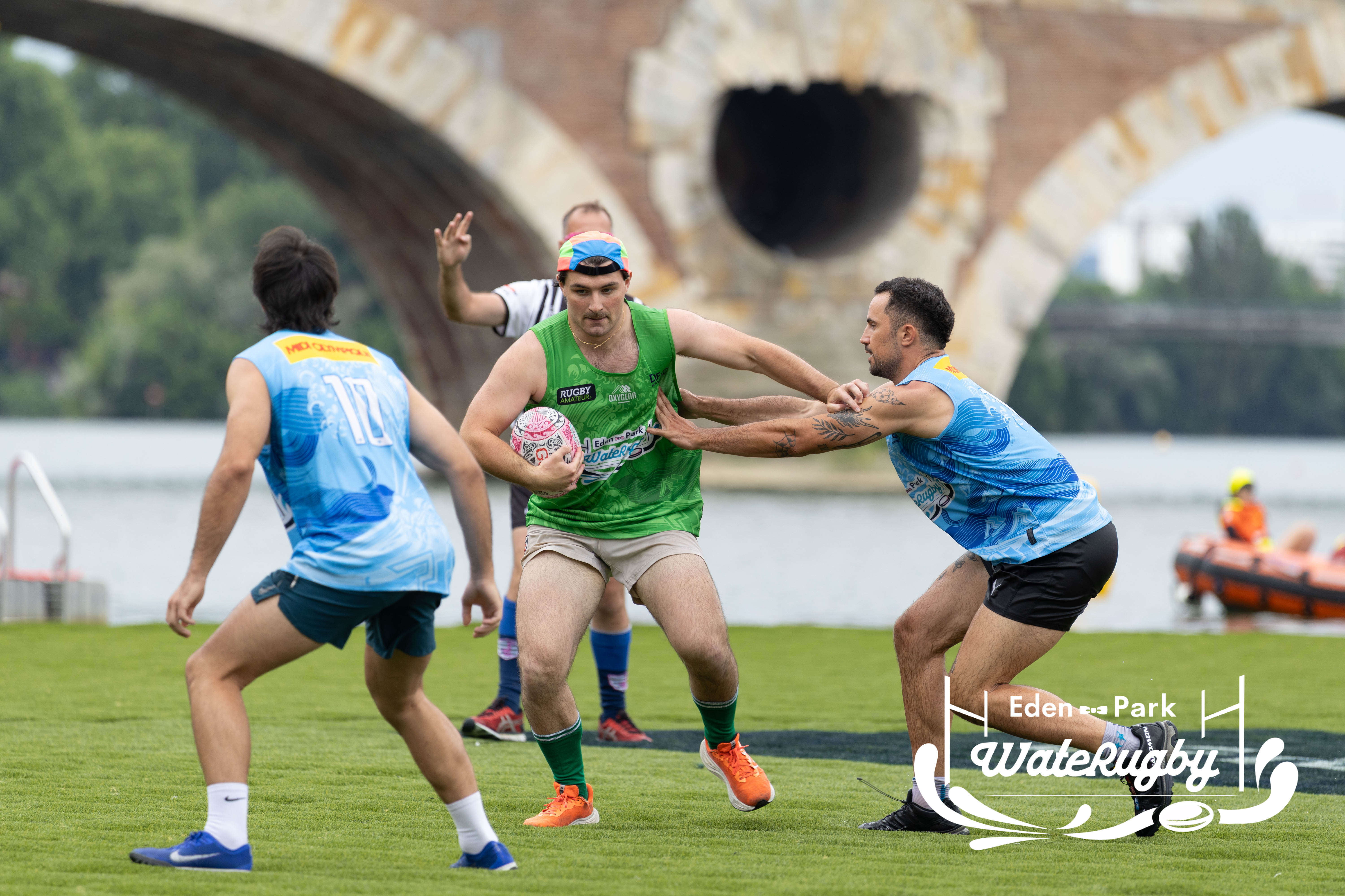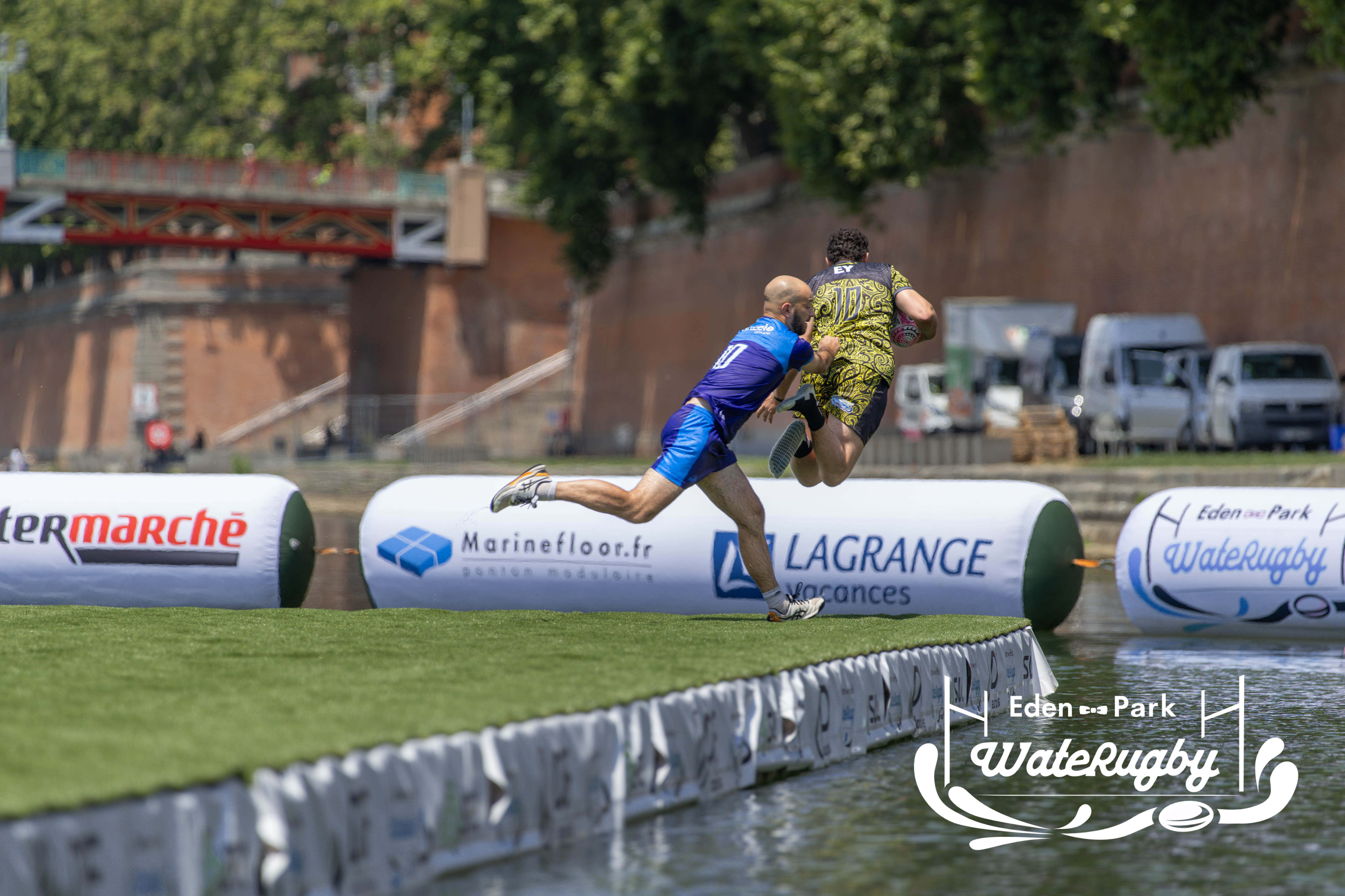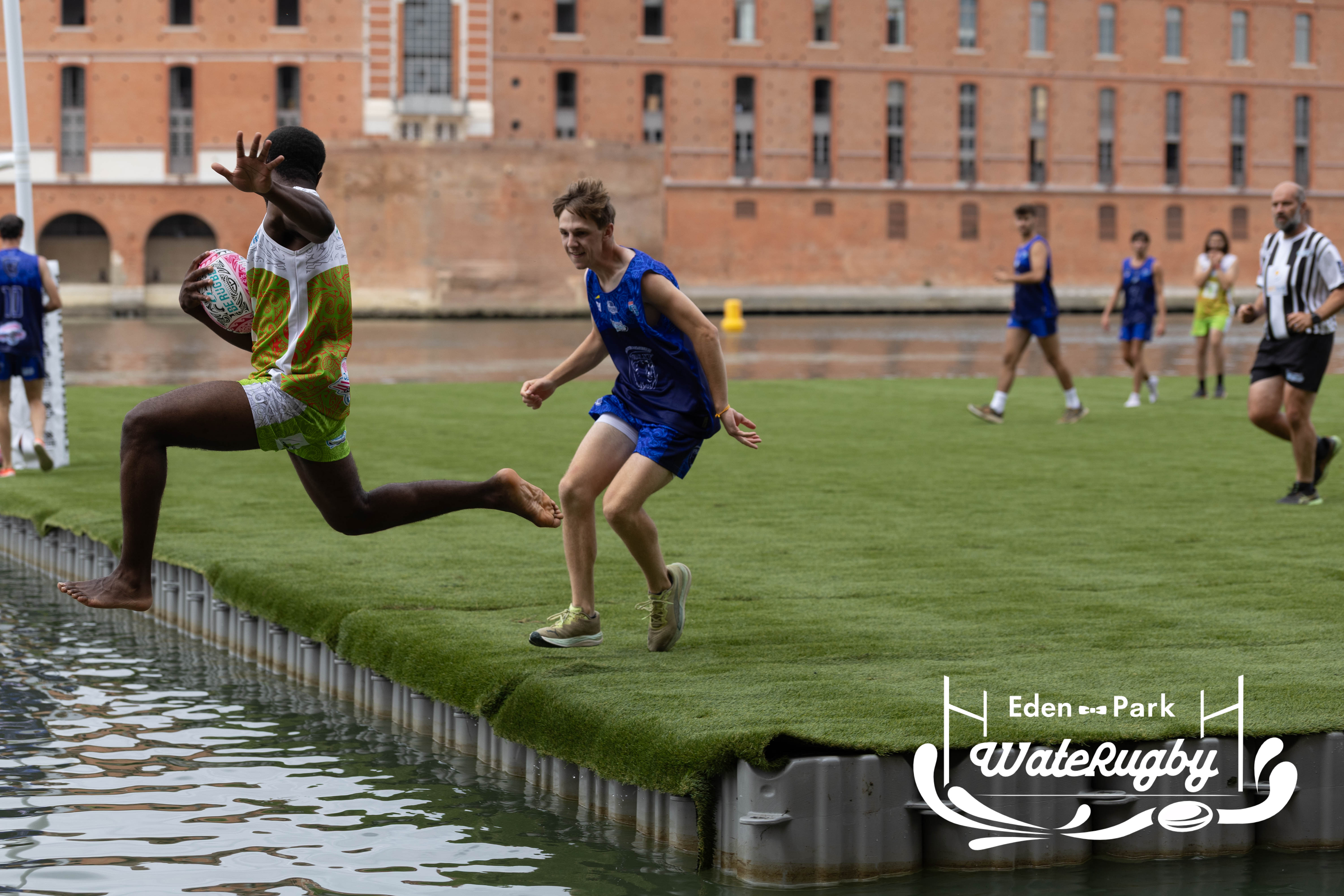 Compétition de rugby sur une barge sur la Garonne en plein centre de Toulouse