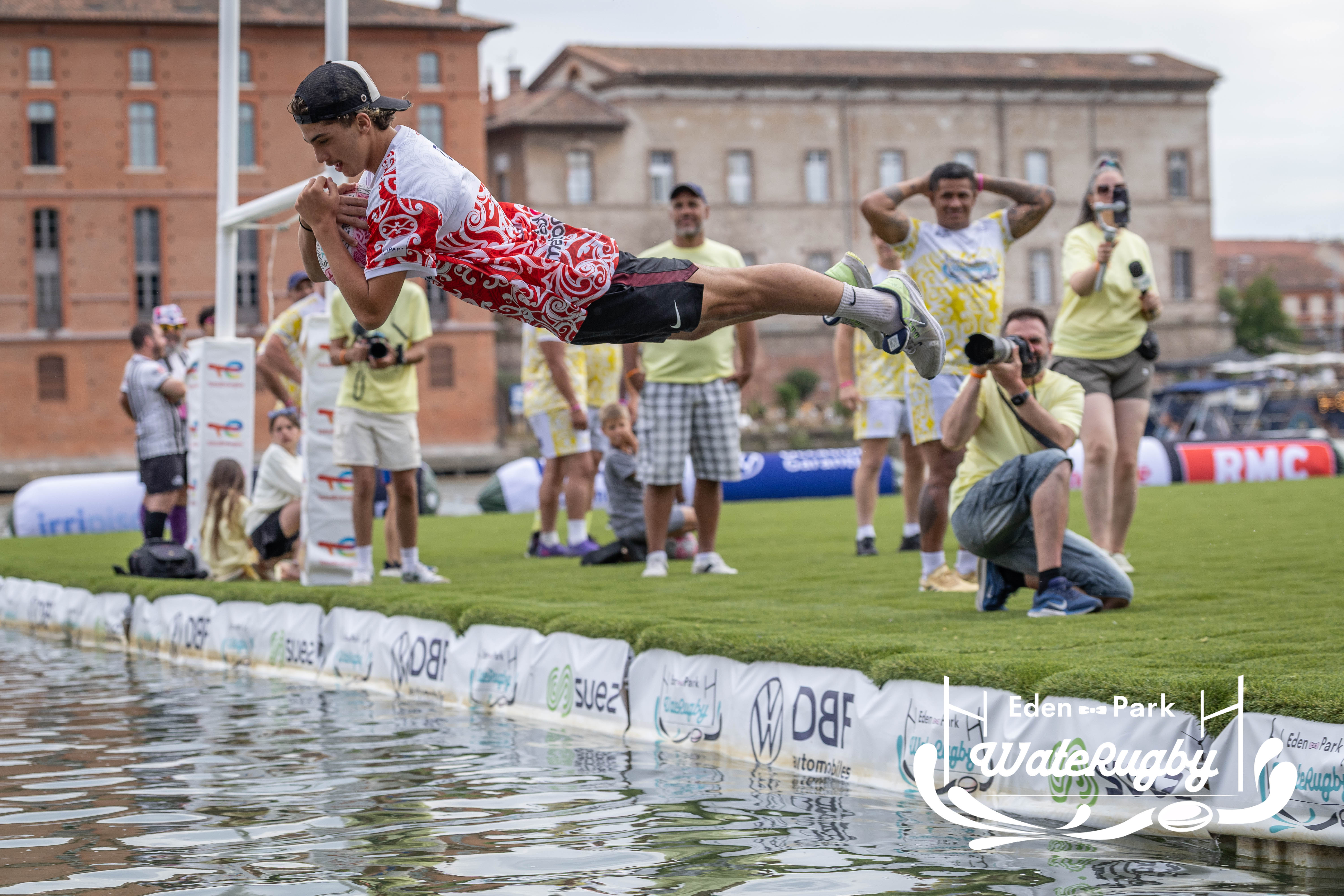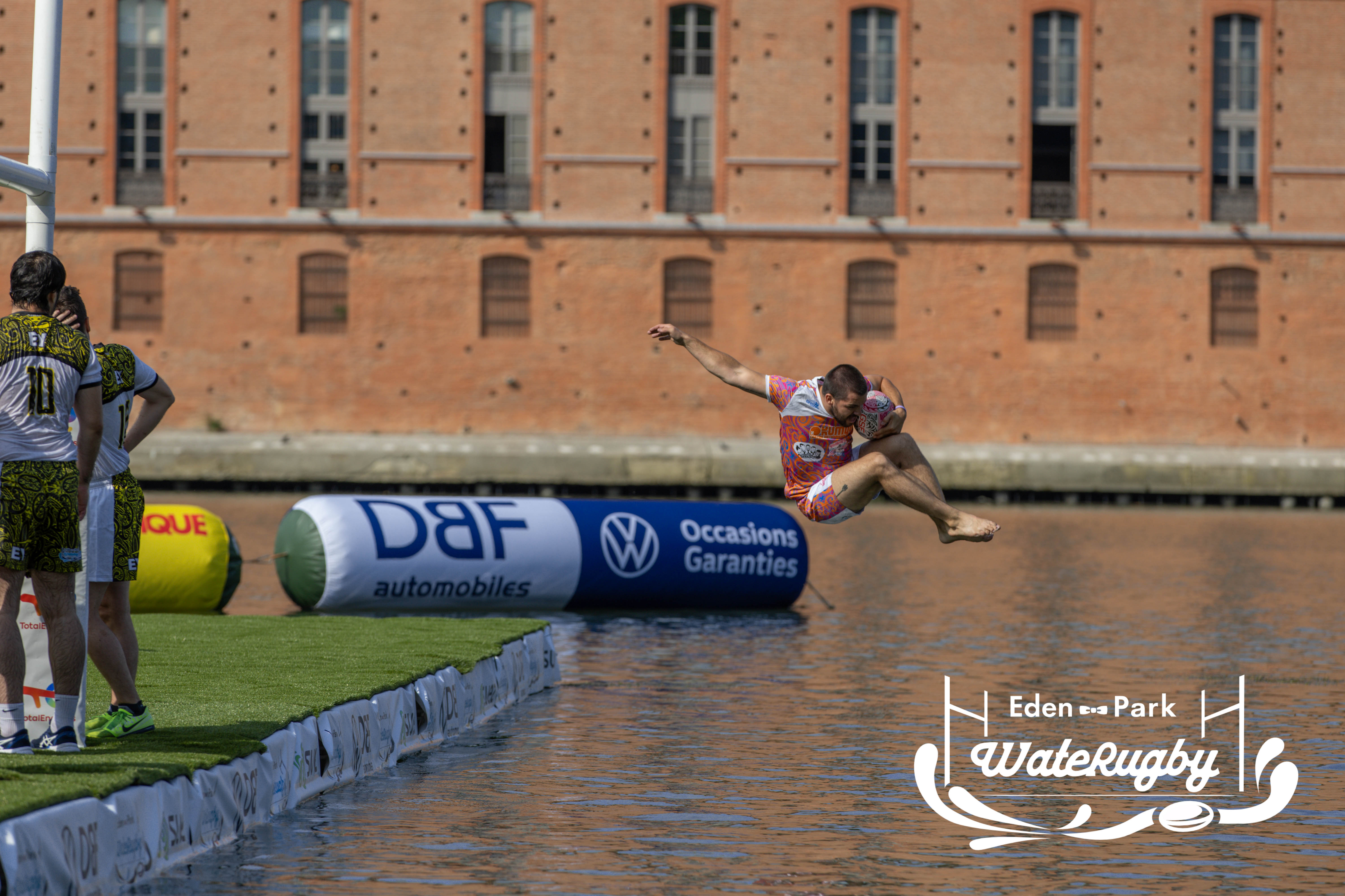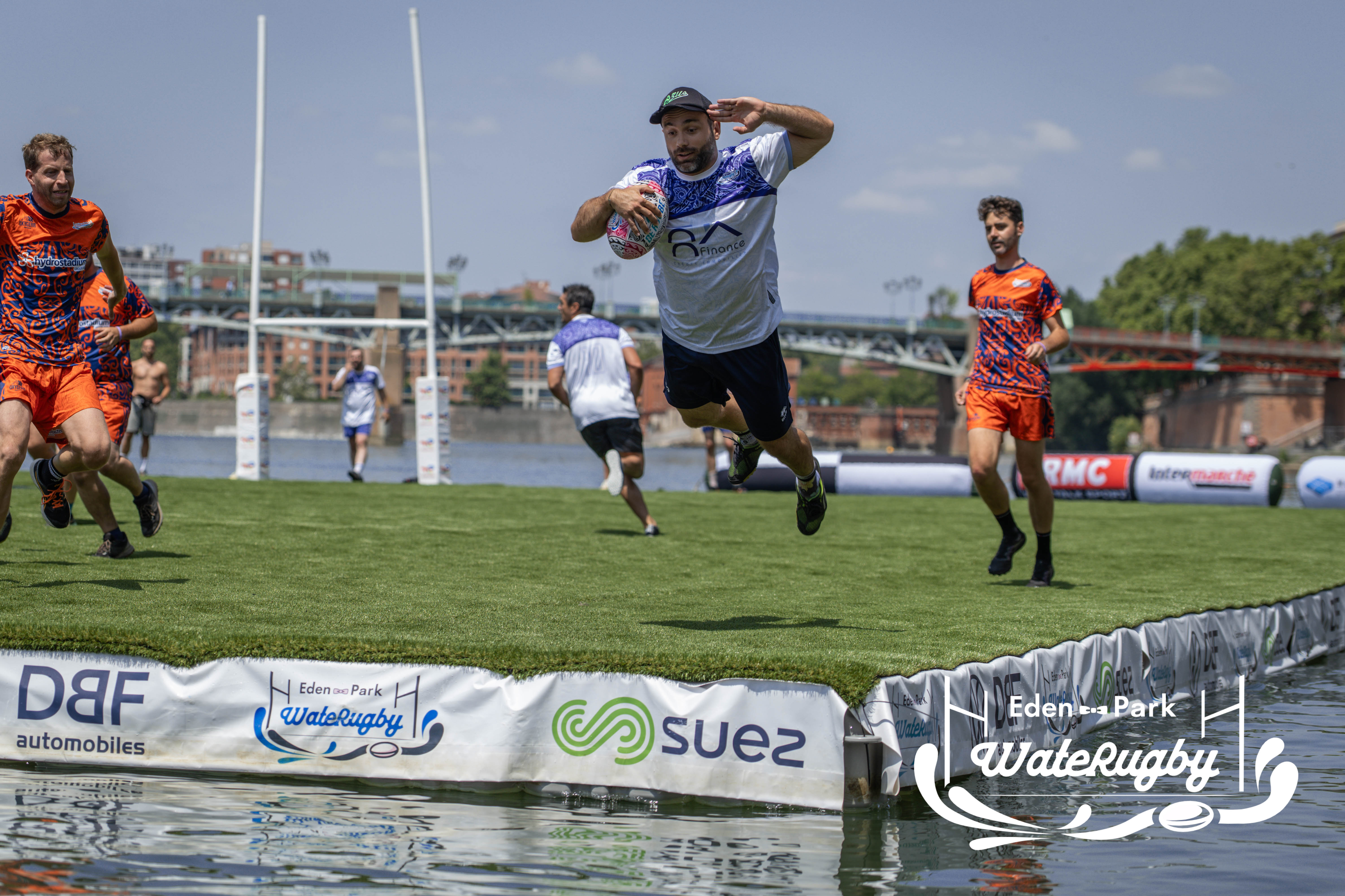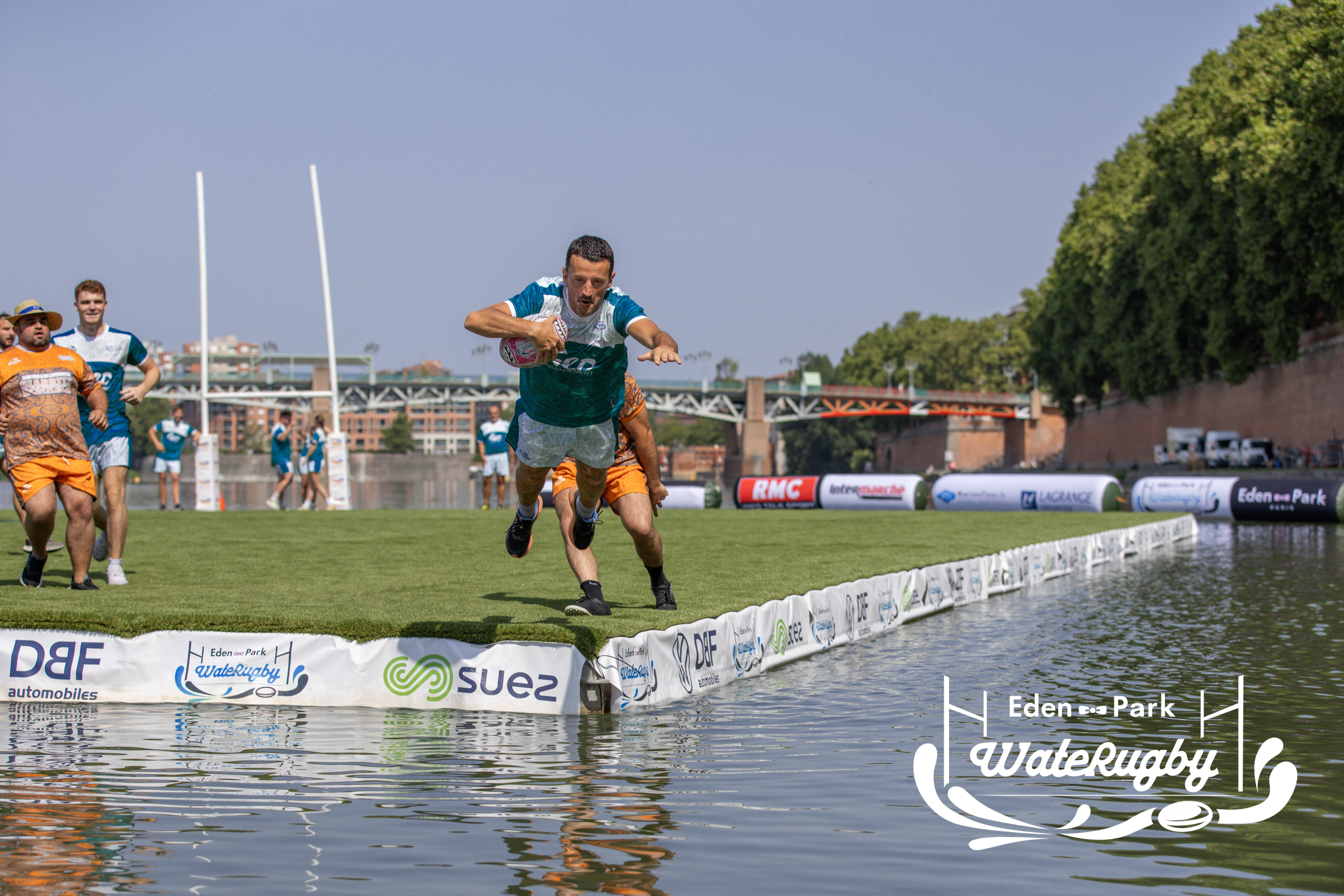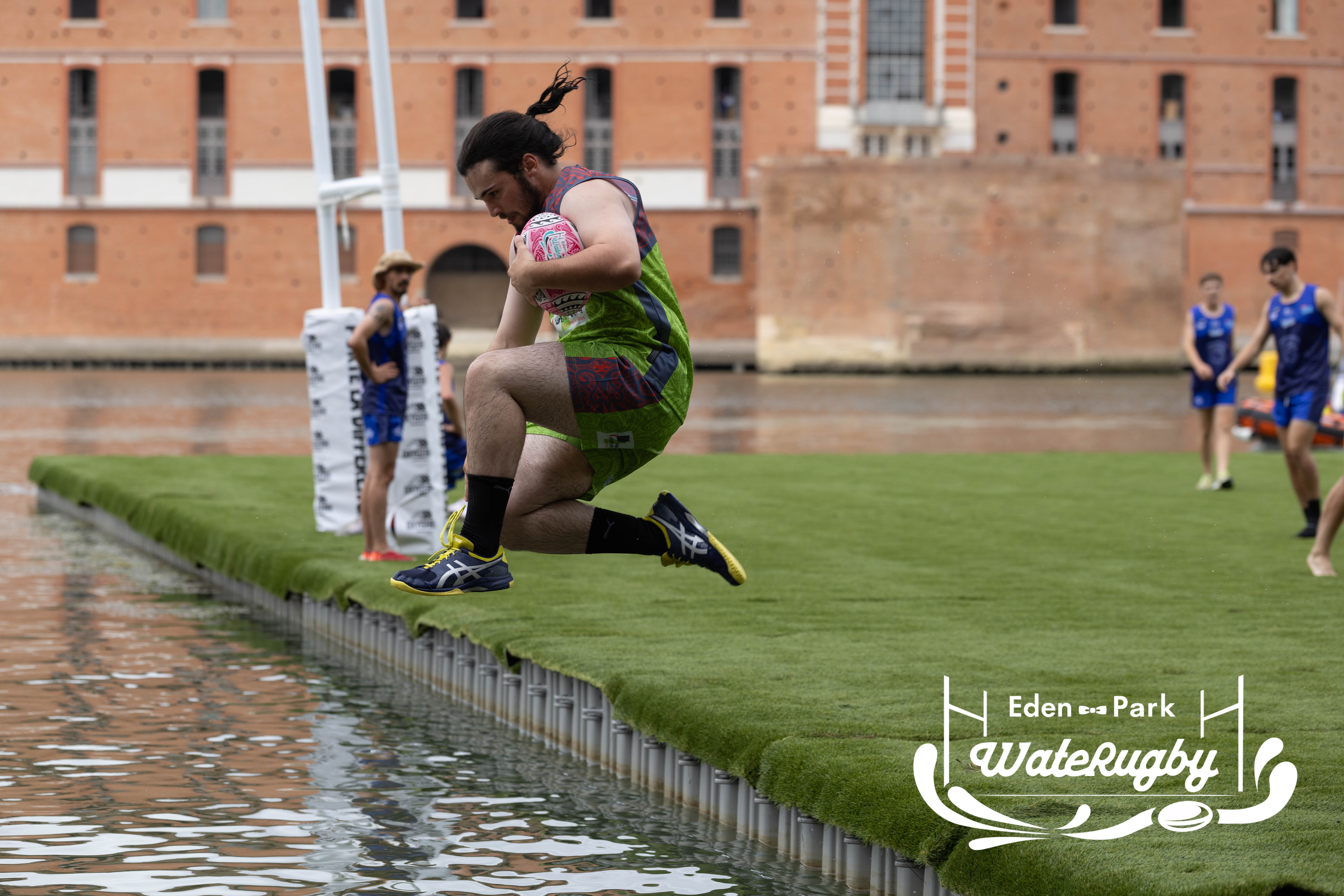 Compétition de rugby sur une barge sur la Garonne en plein centre de Toulouse