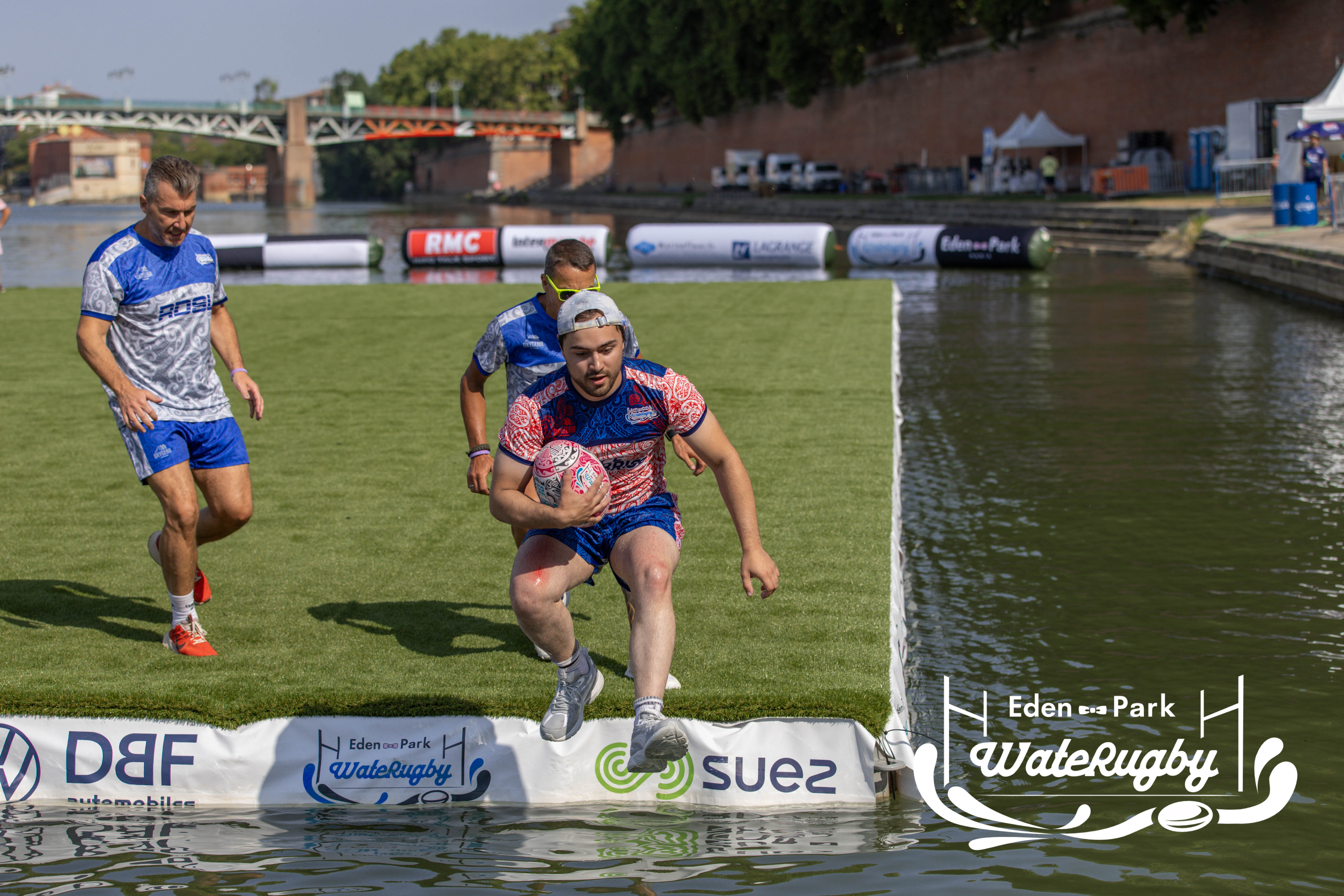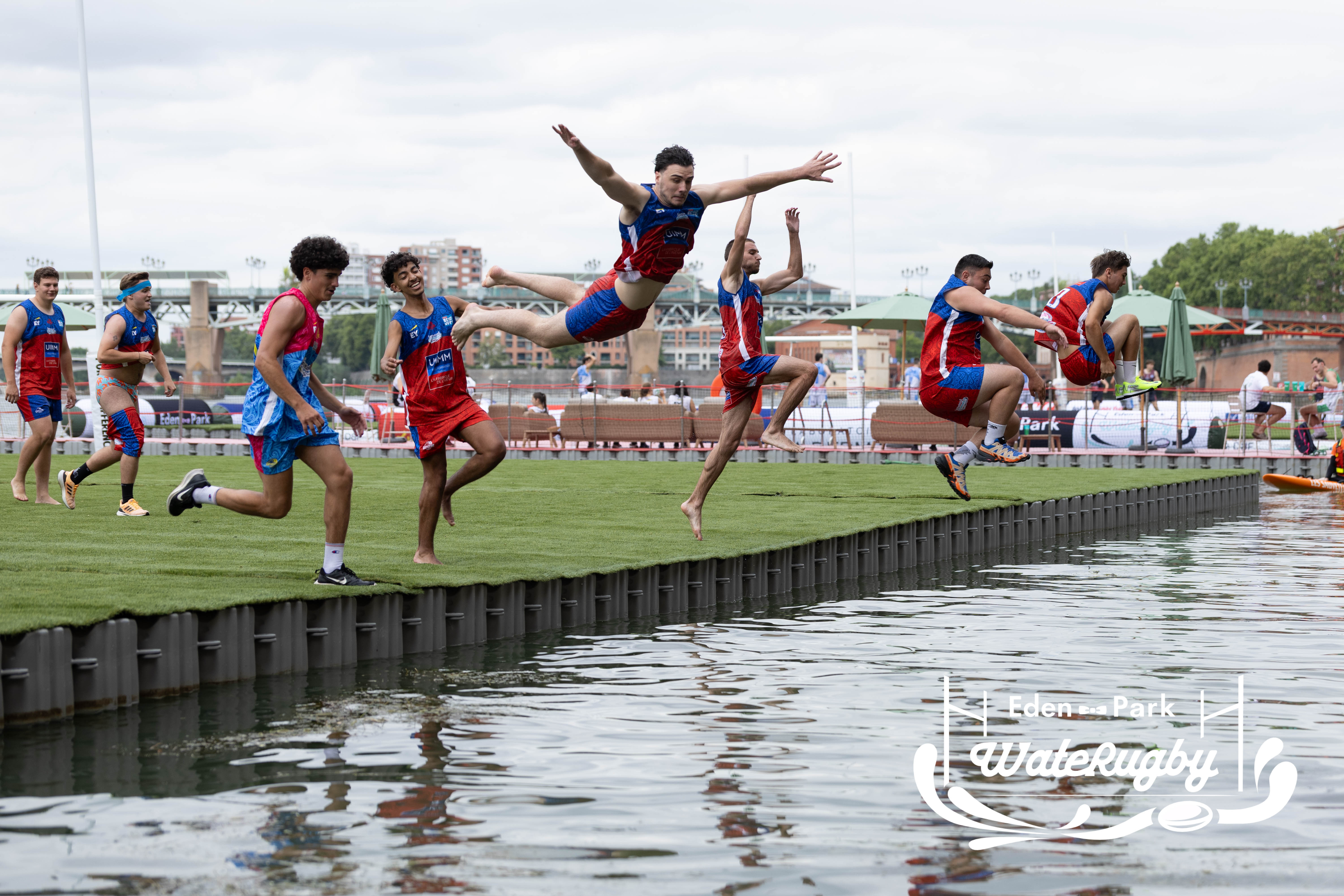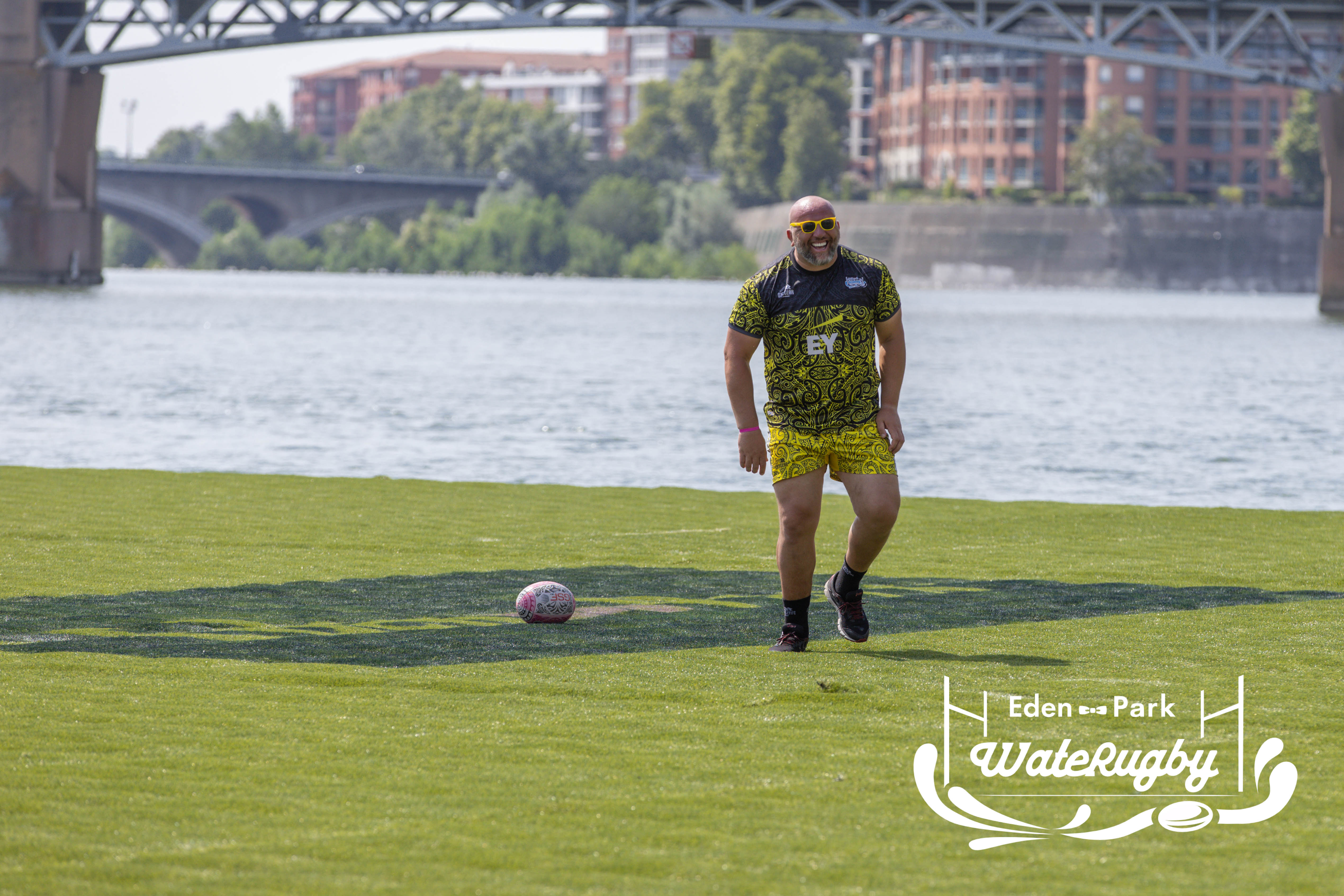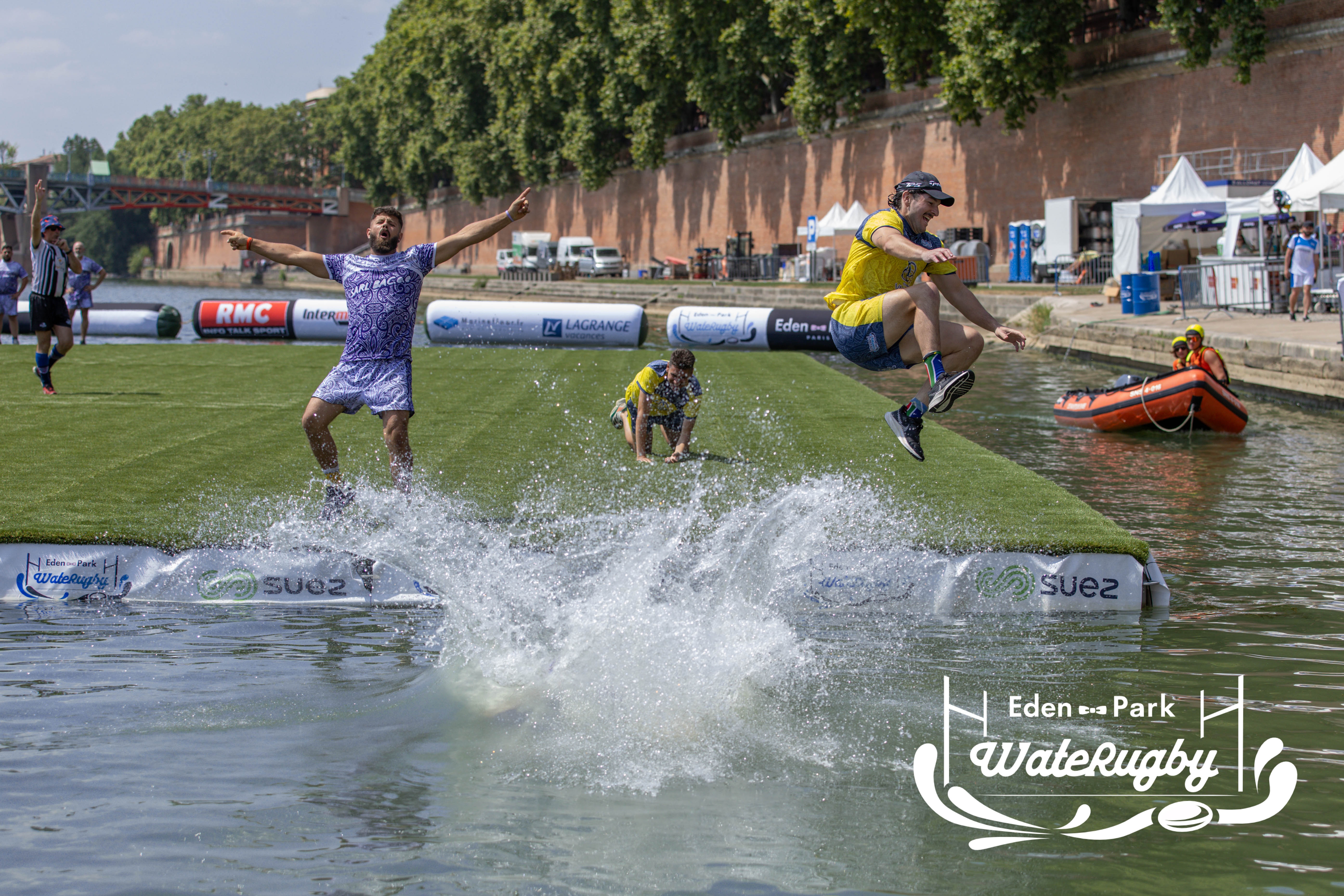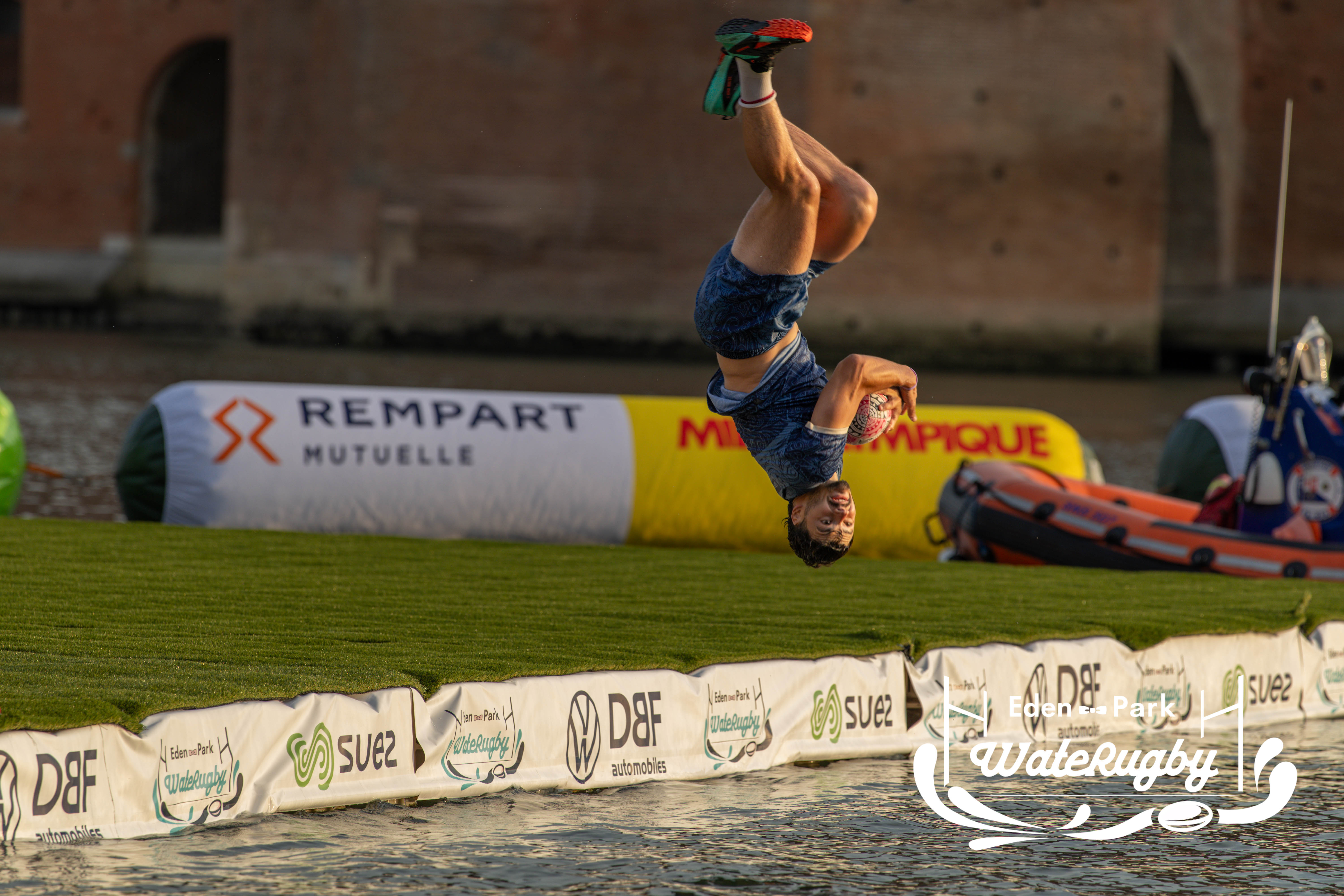 Compétition de rugby sur une barge sur la Garonne en plein centre de Toulouse