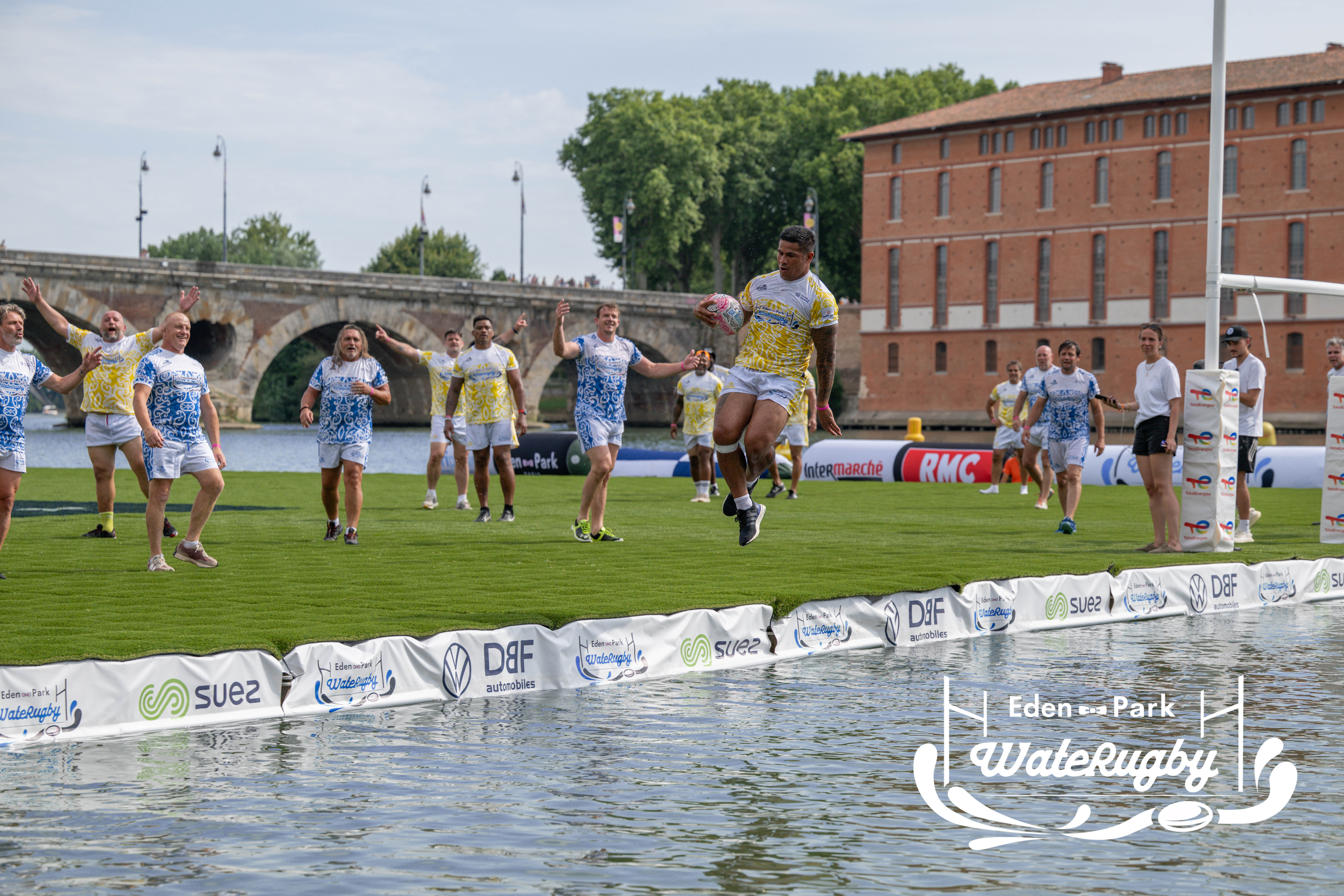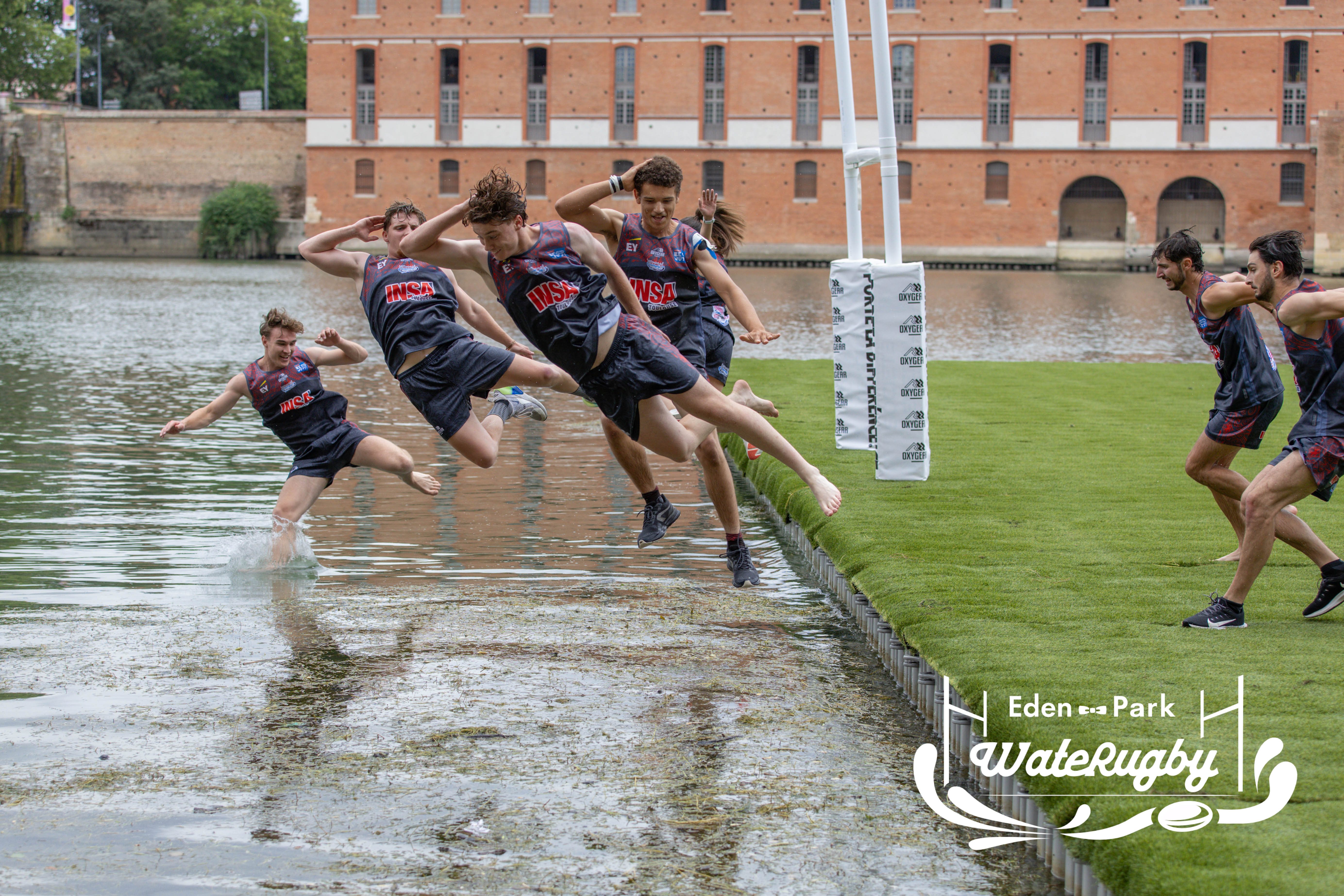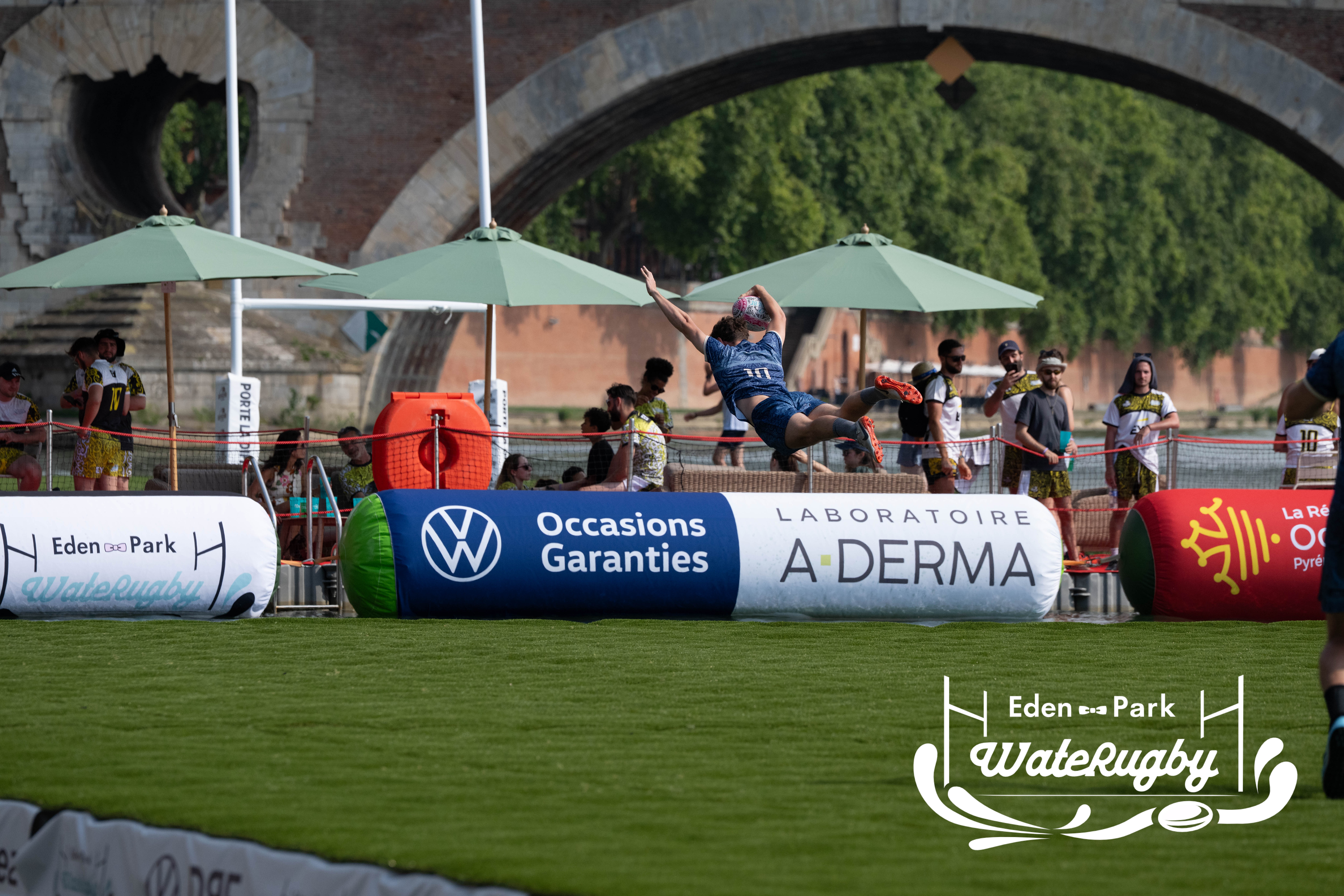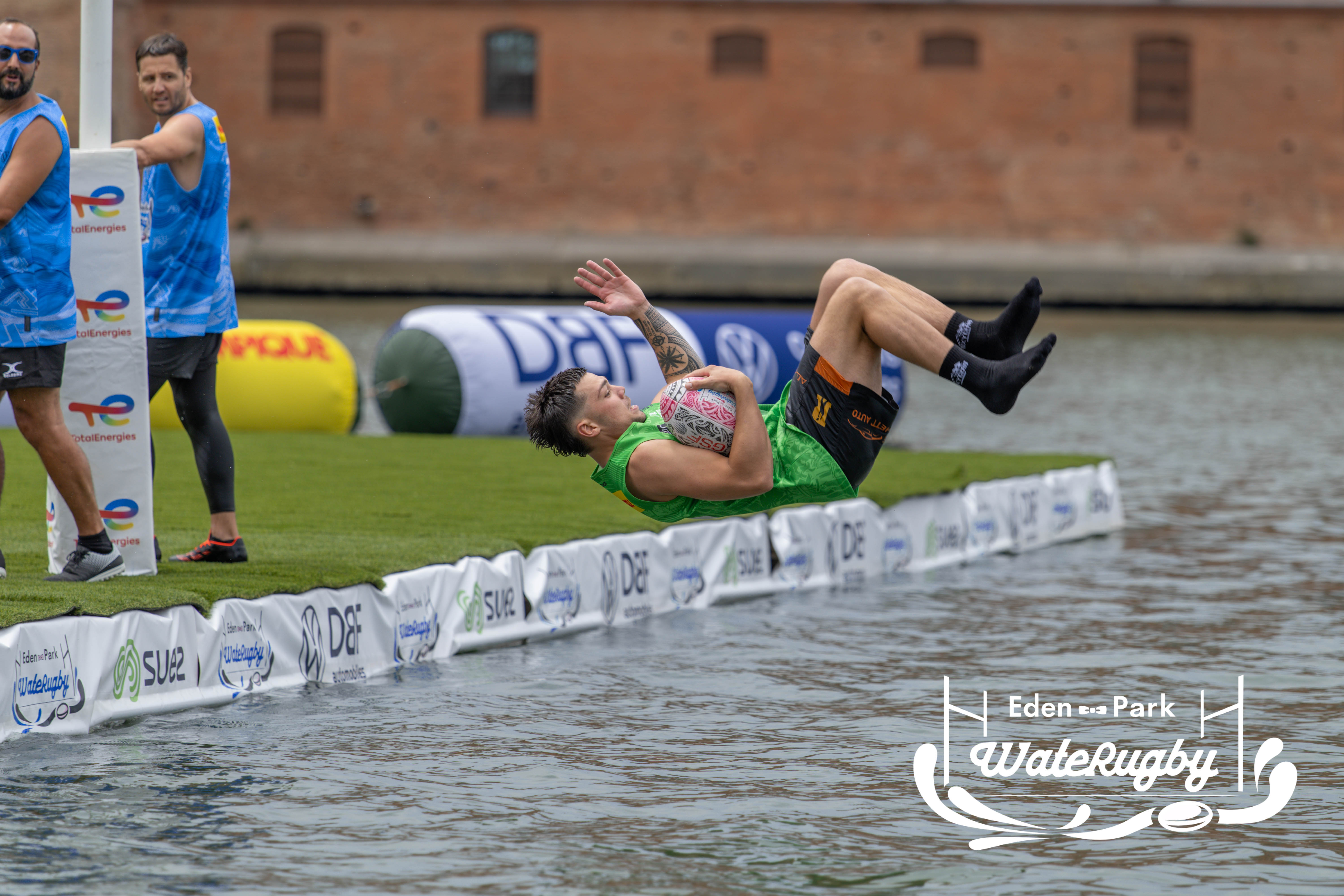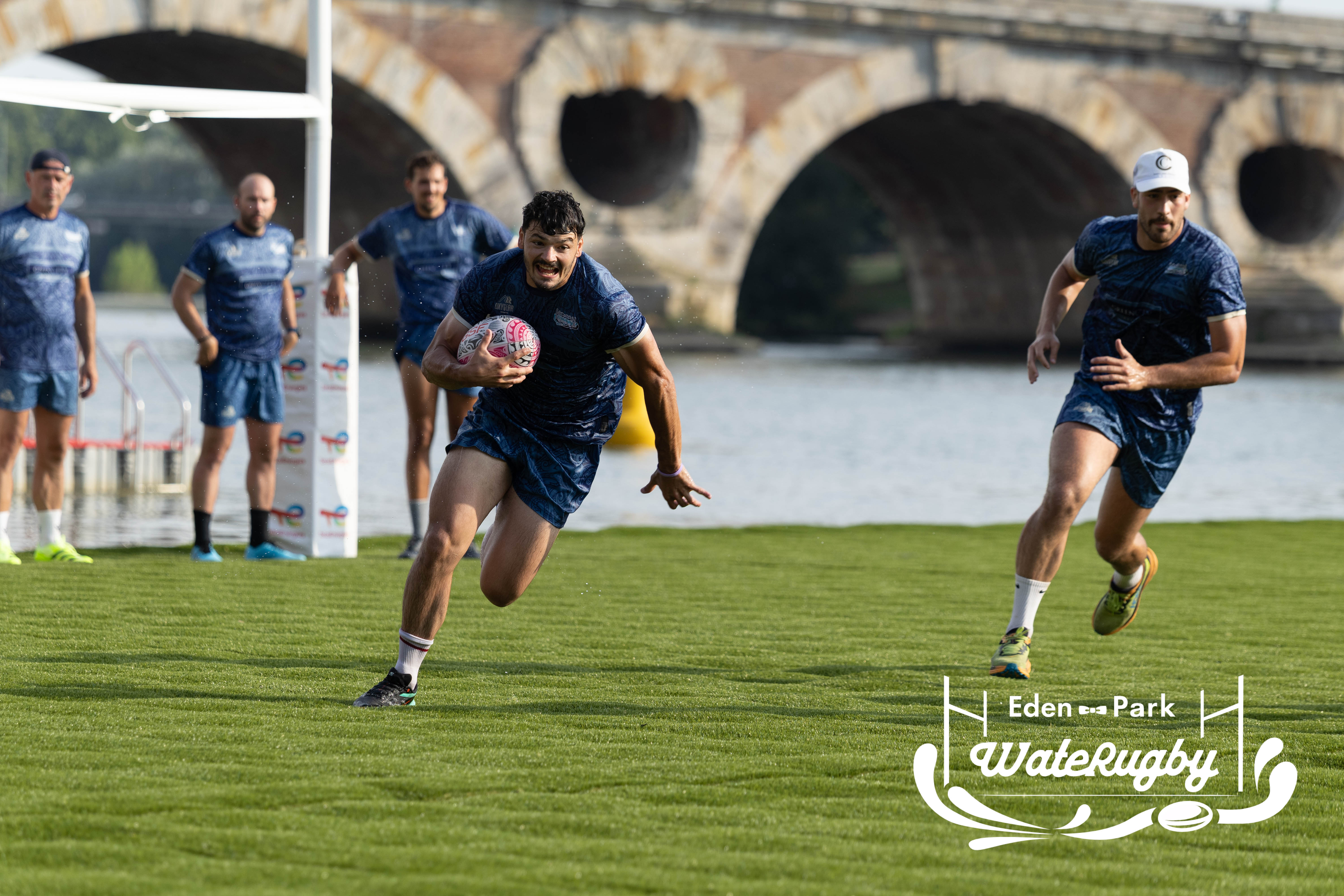 Compétition de rugby sur une barge sur la Garonne en plein centre de Toulouse