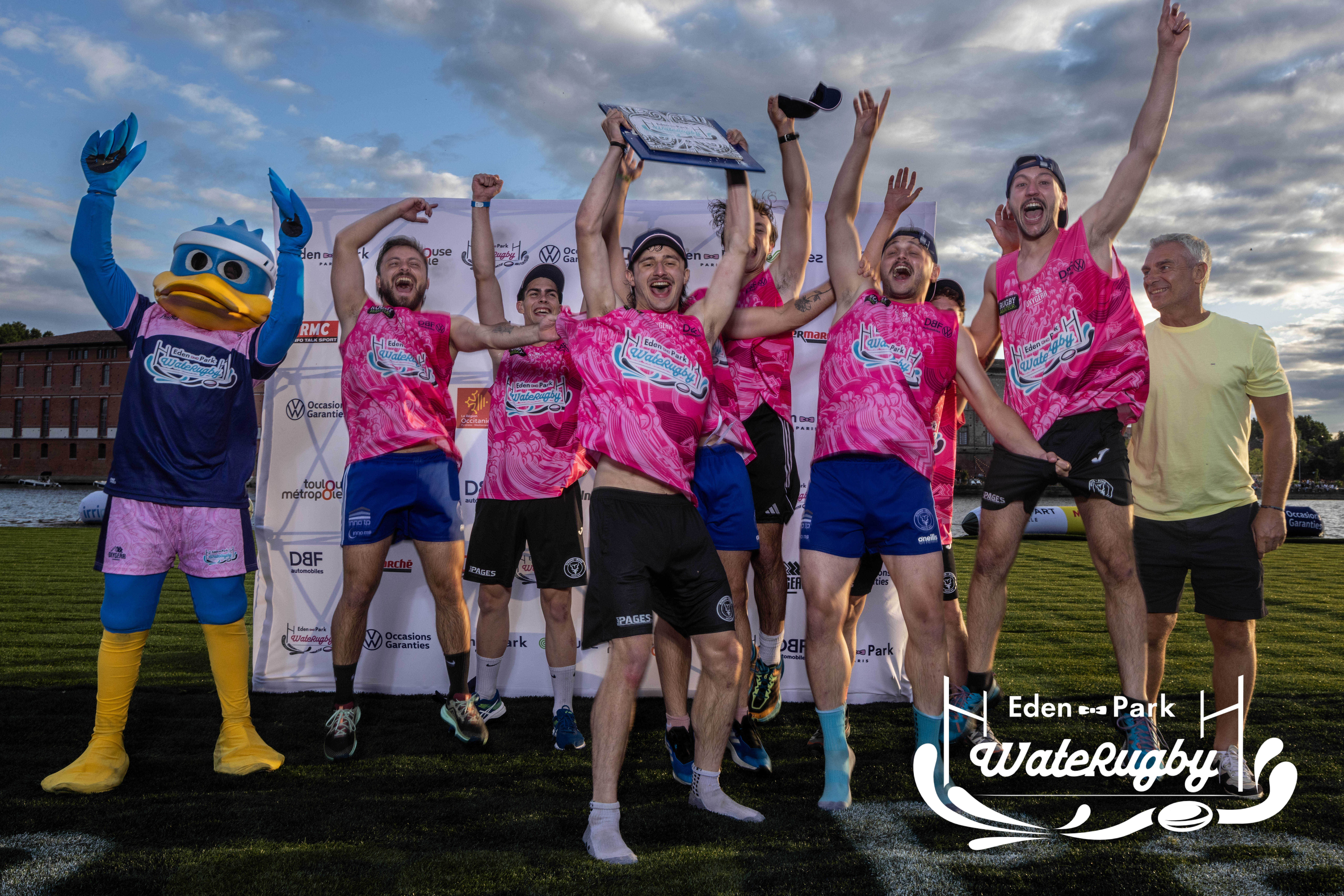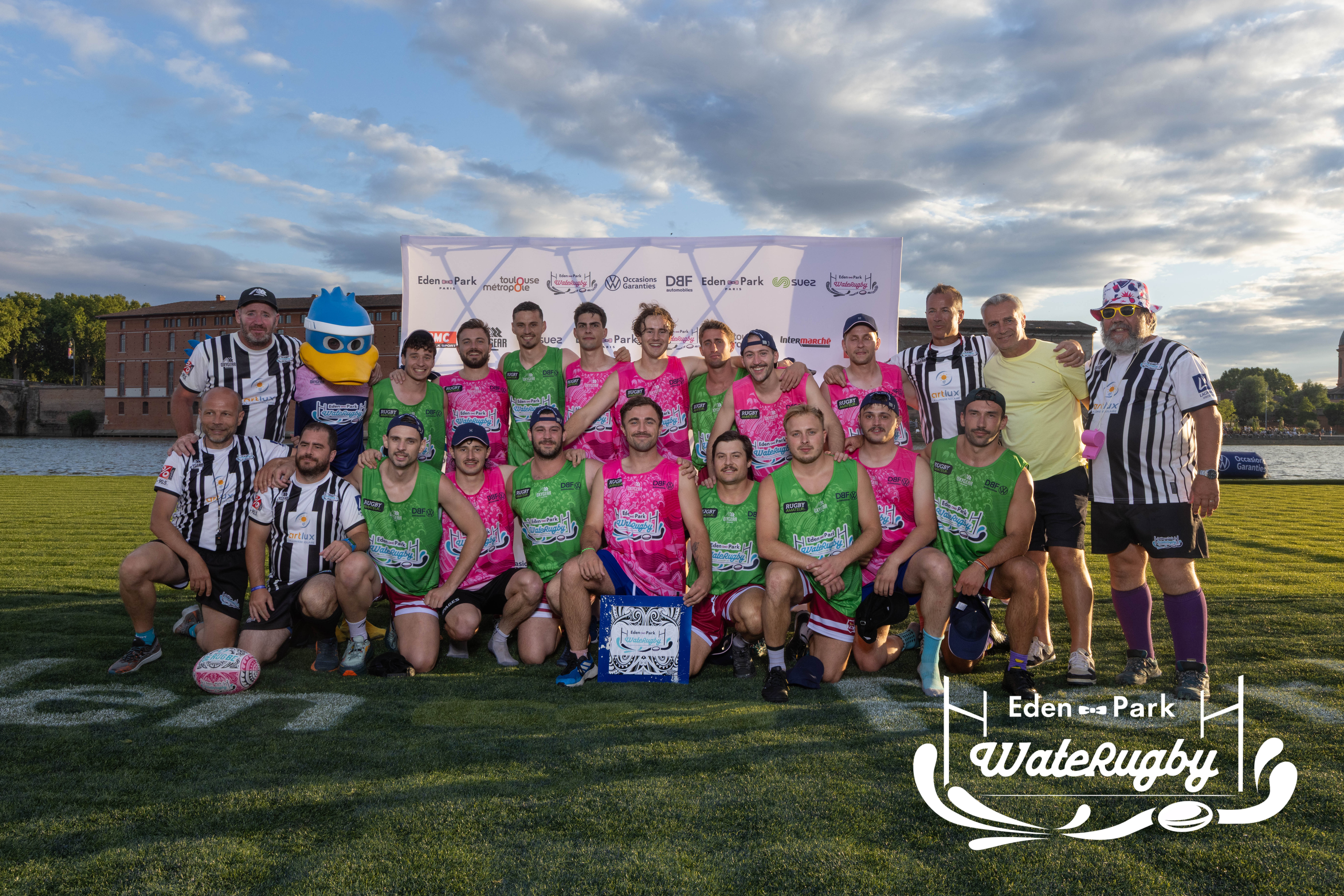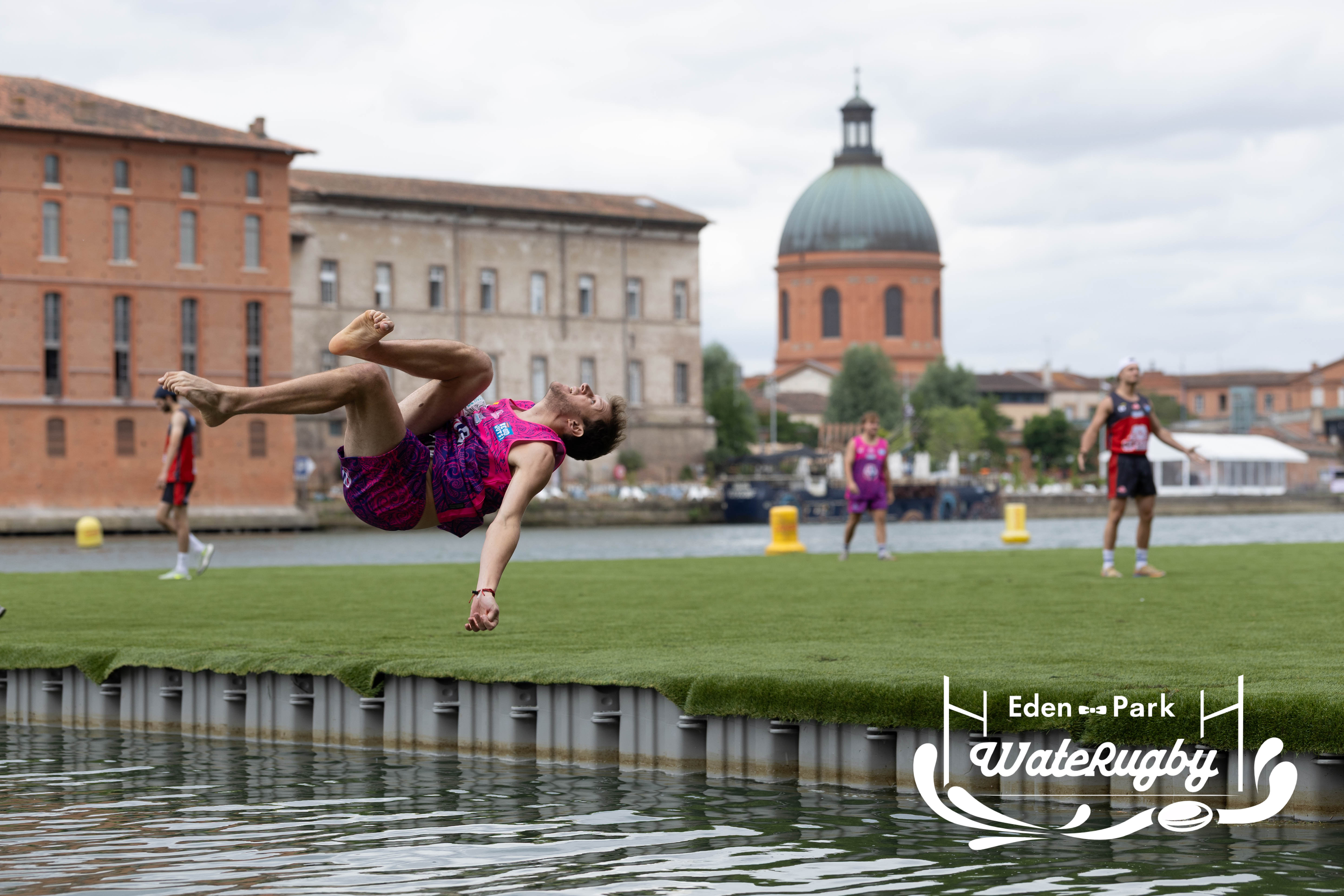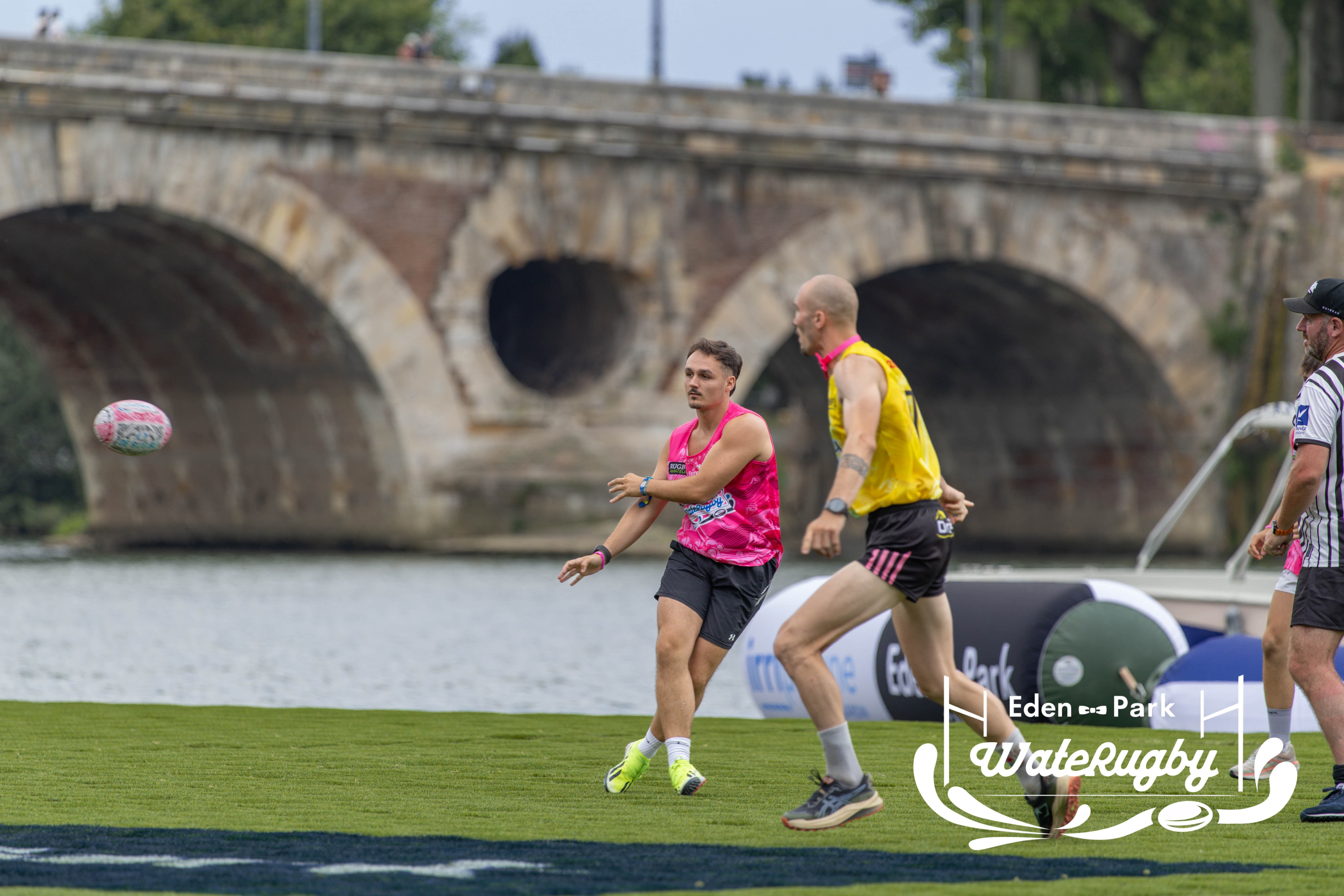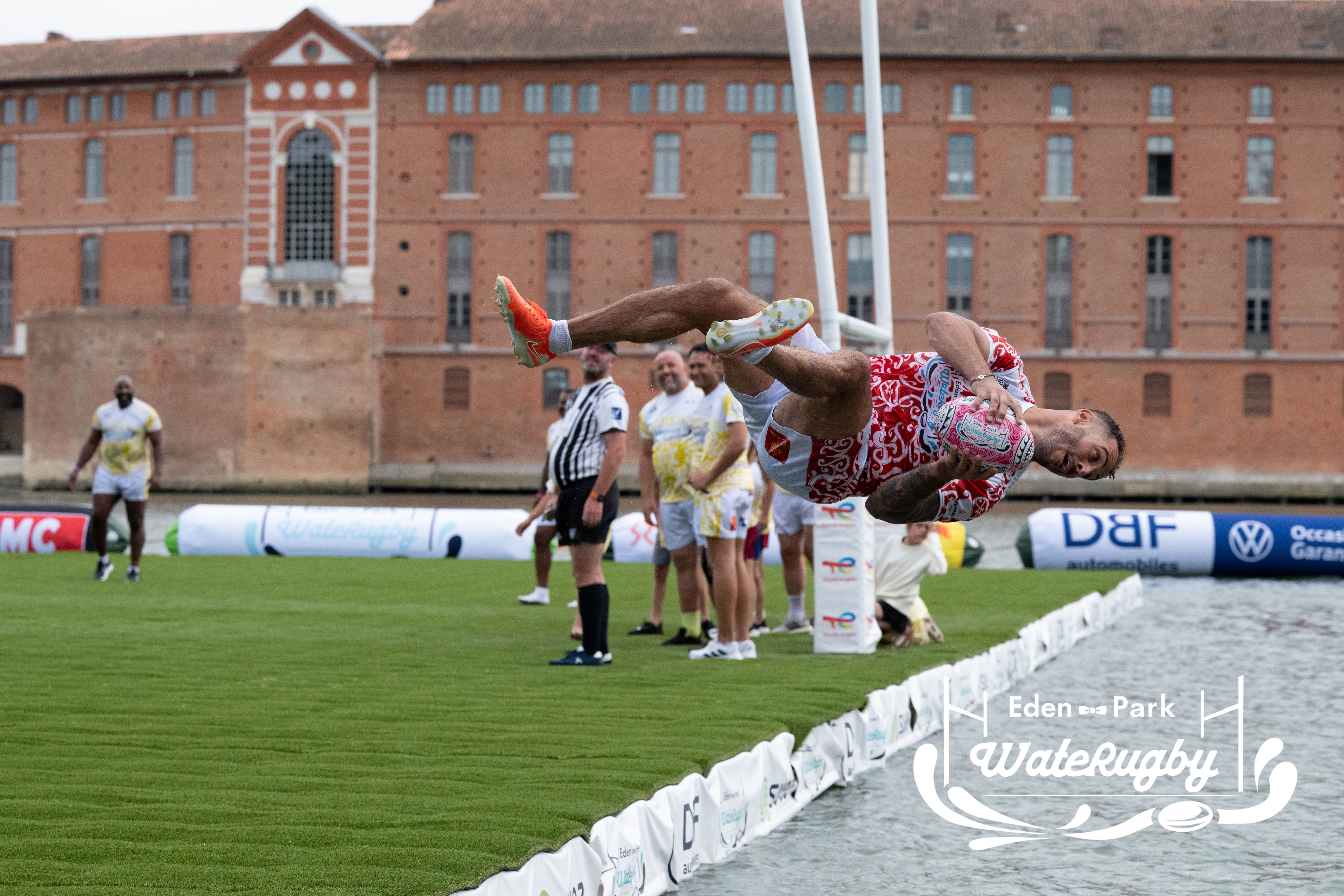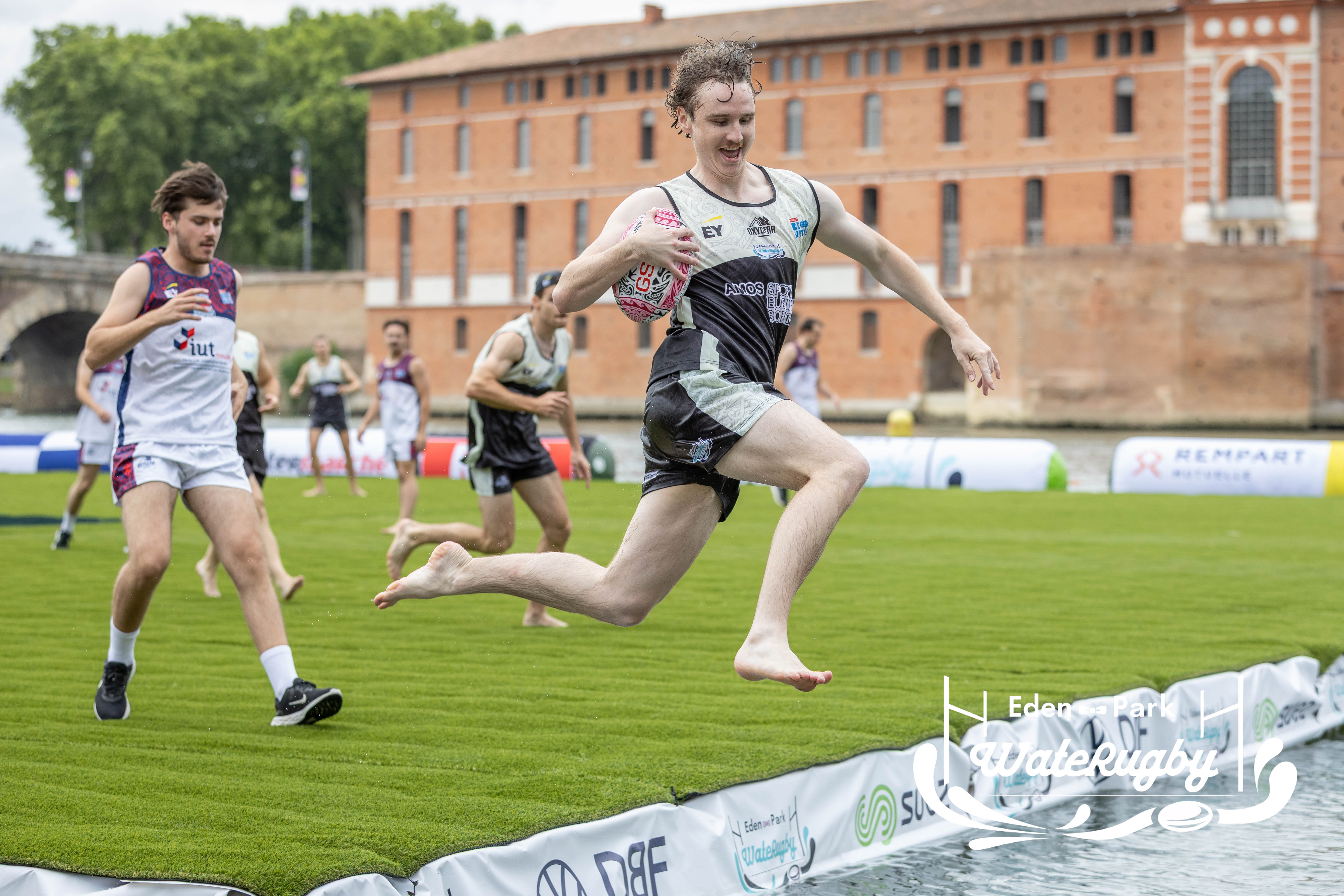 Compétition de rugby sur une barge sur la Garonne en plein centre de Toulouse