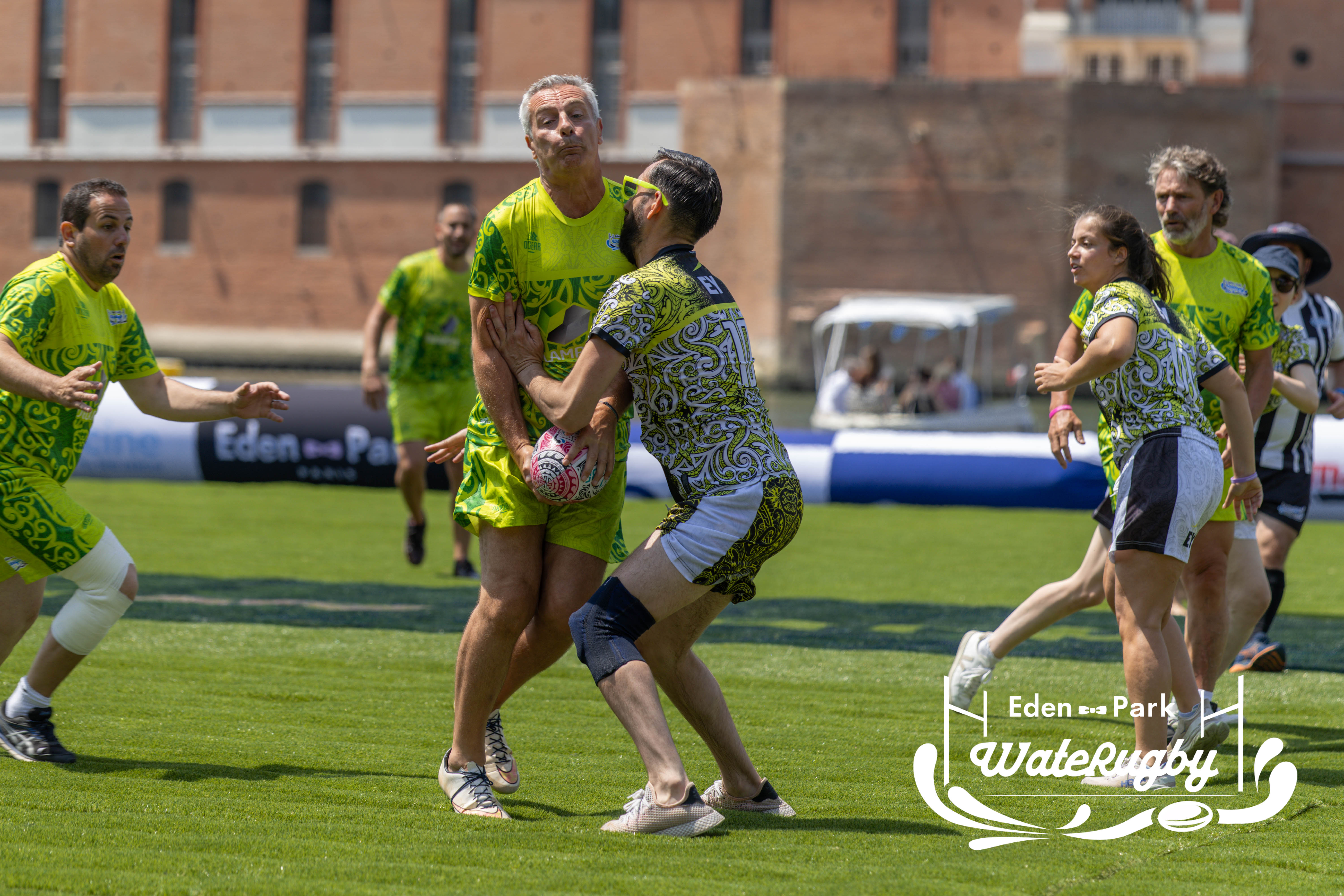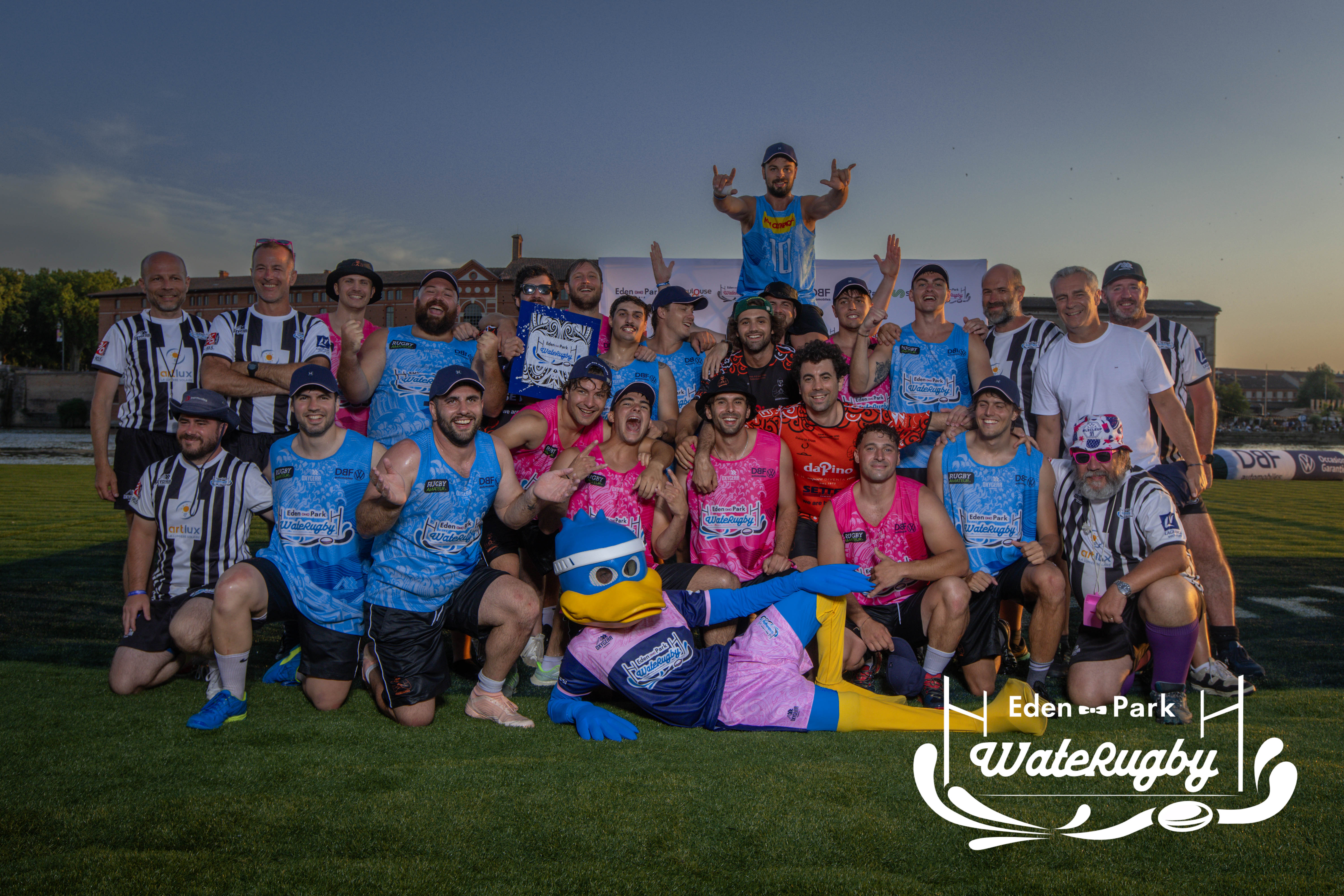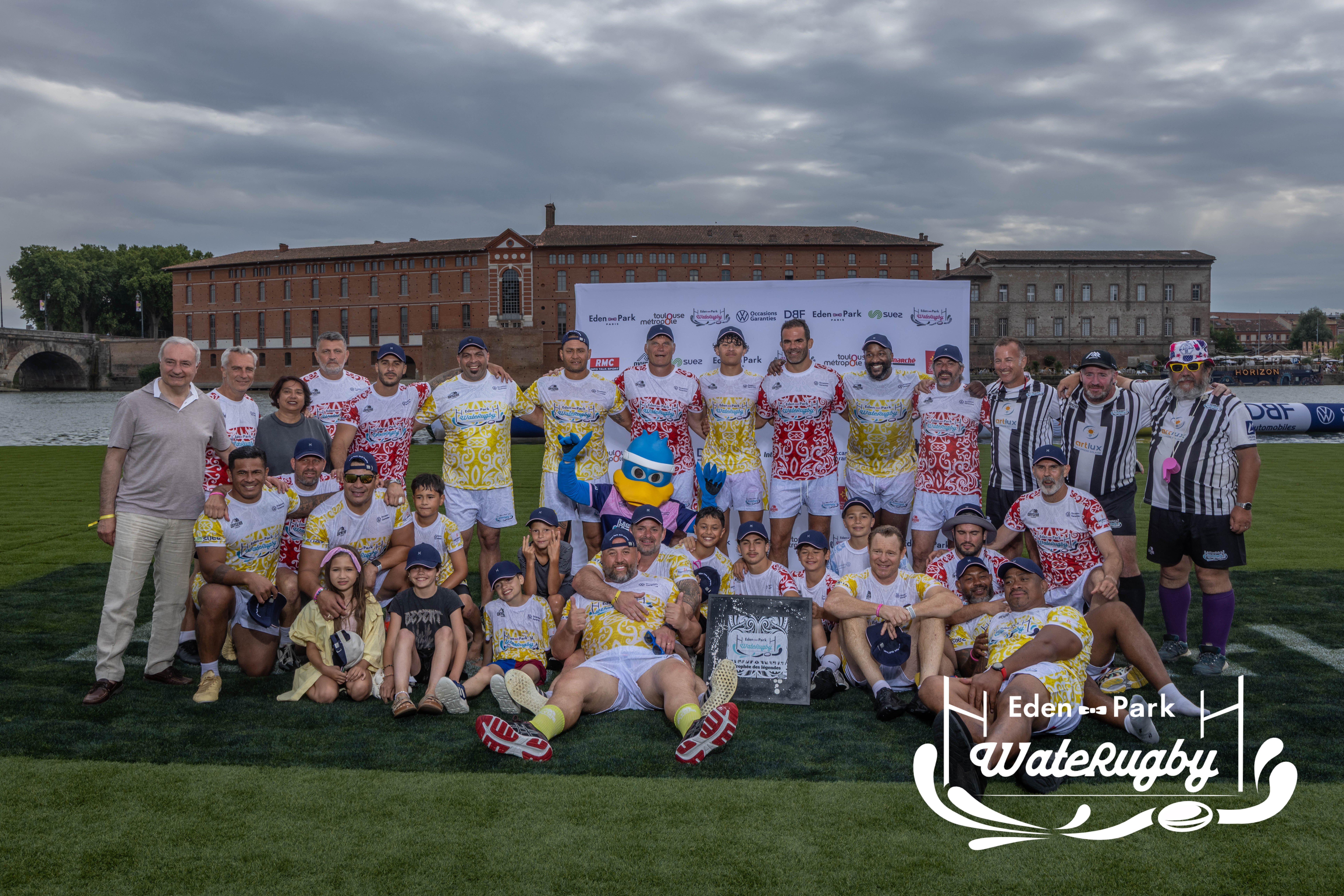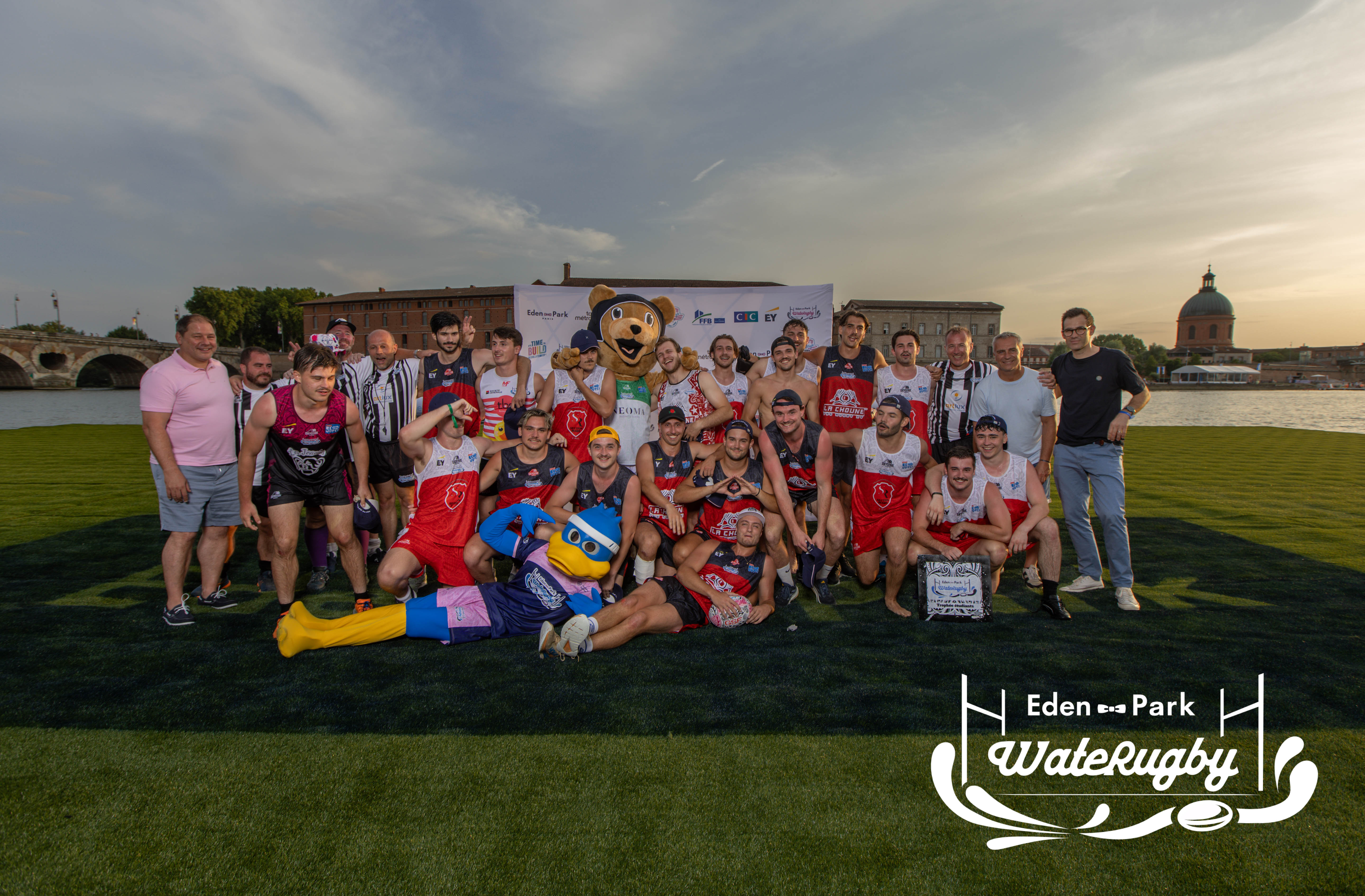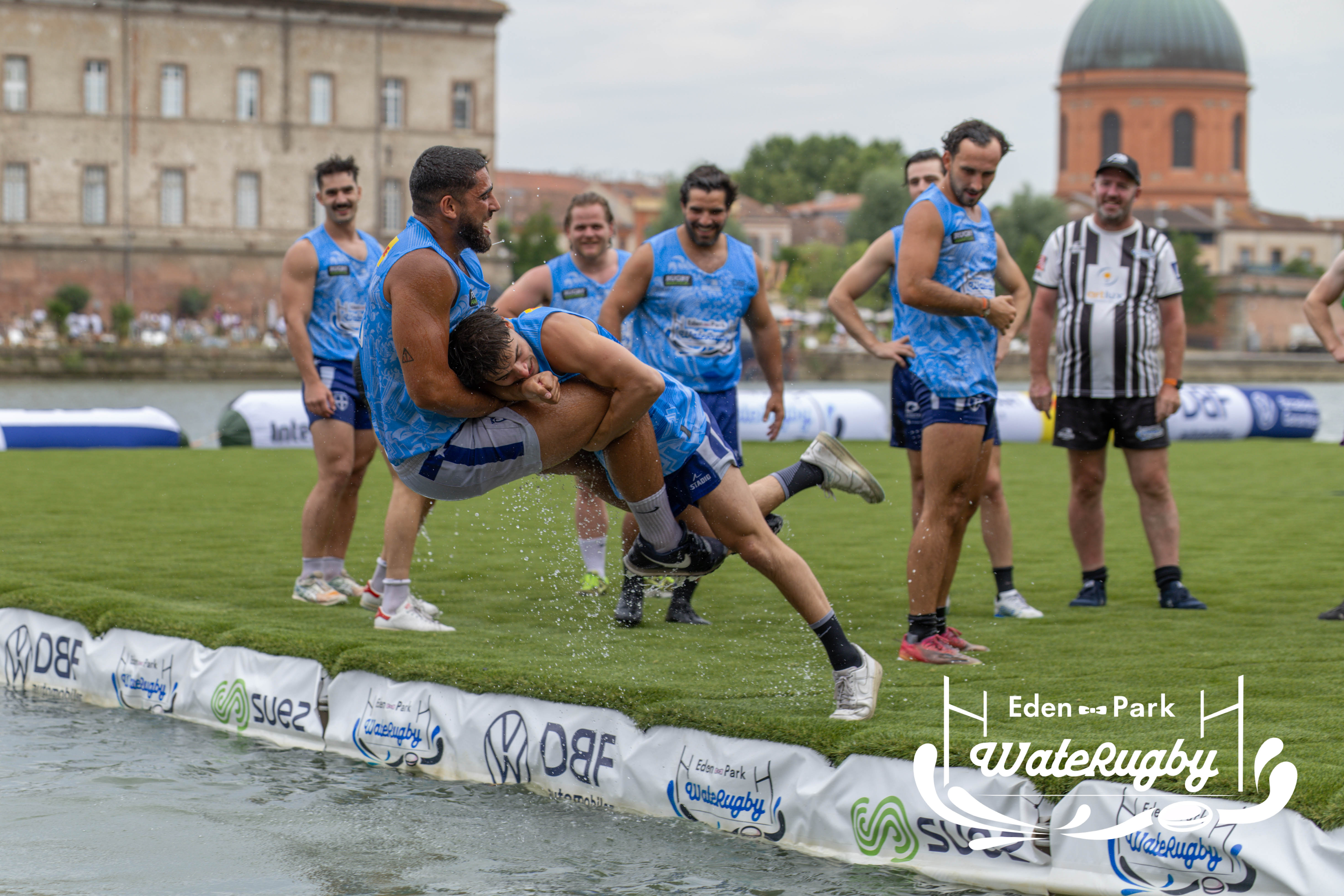 Compétition de rugby sur une barge sur la Garonne en plein centre de Toulouse