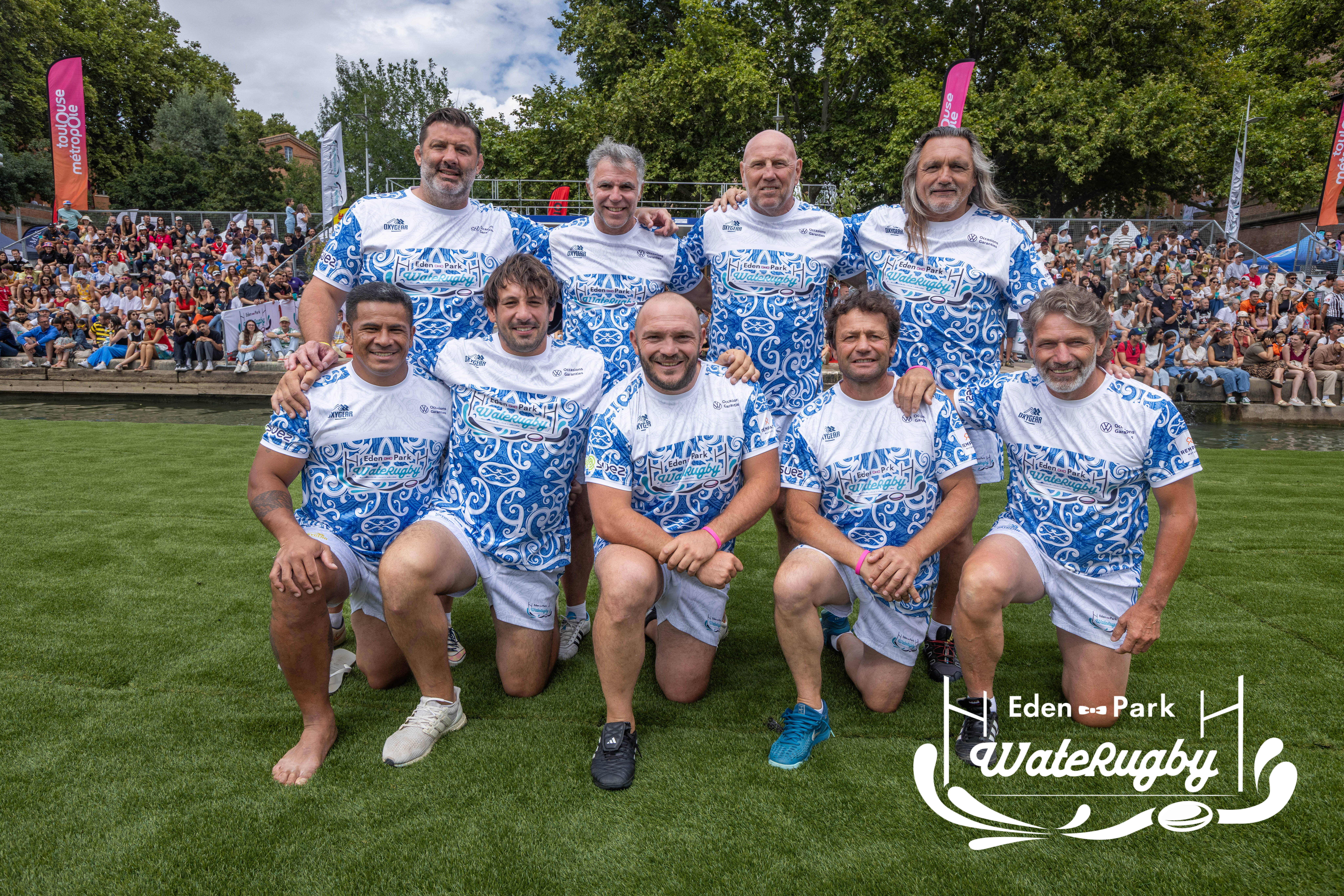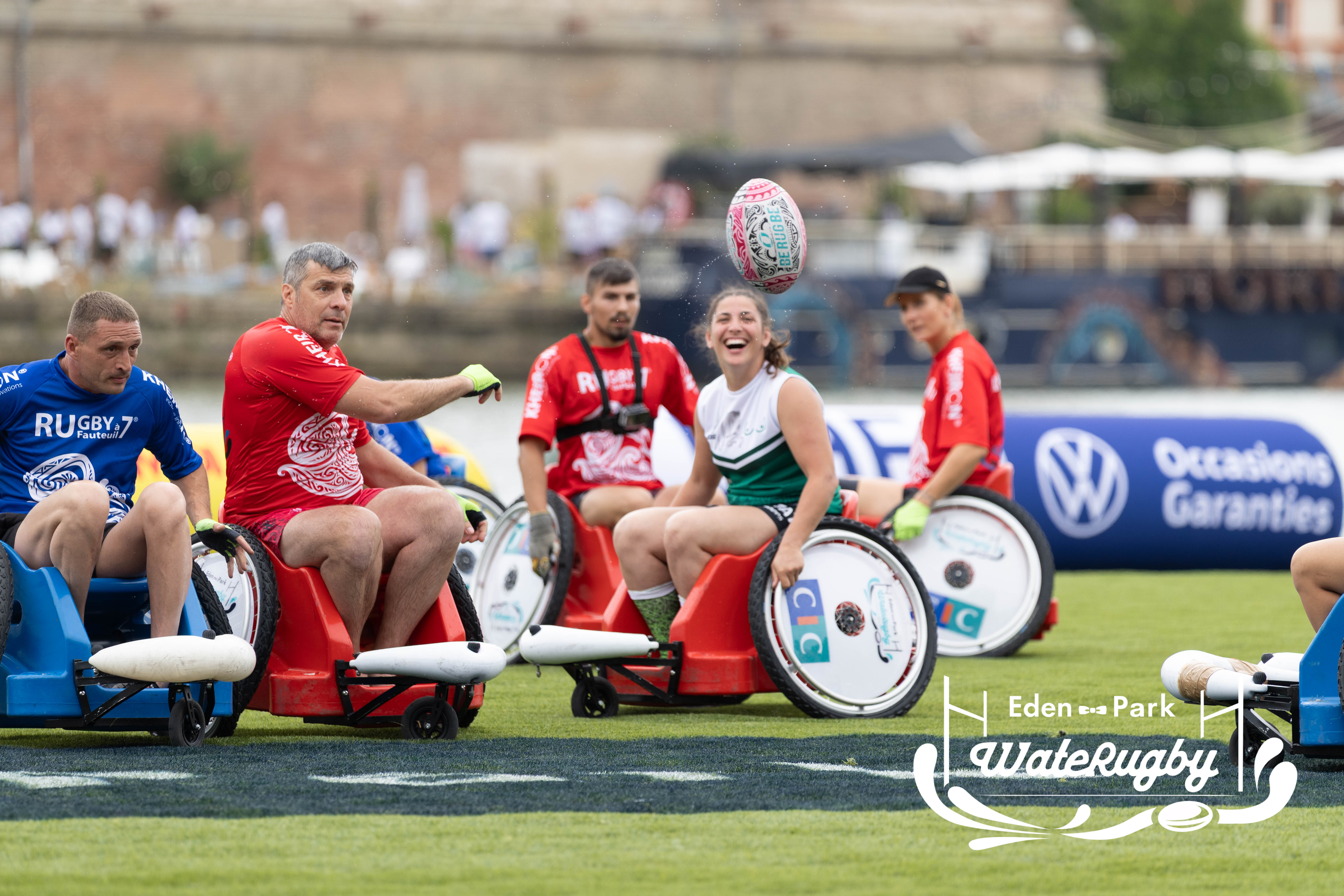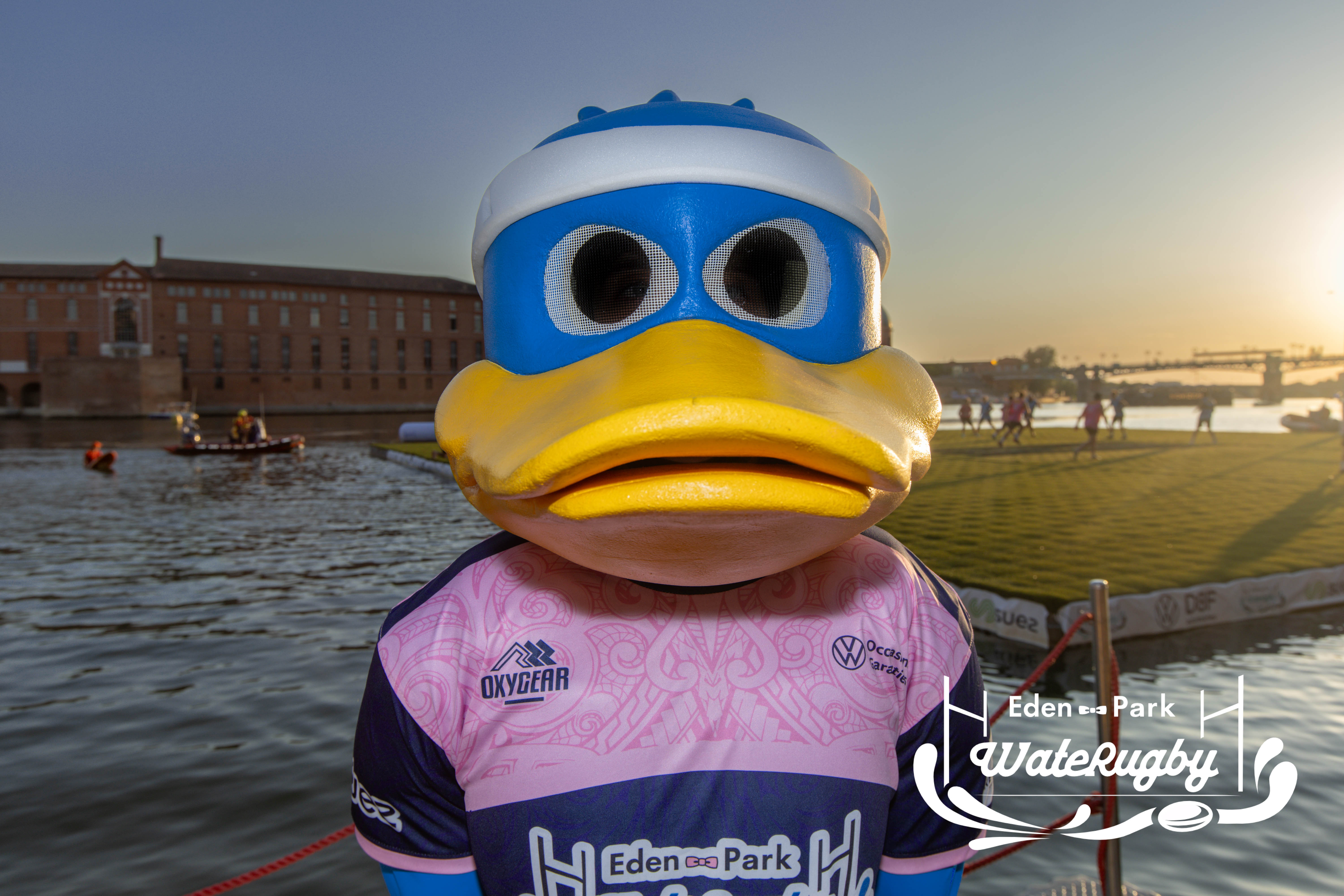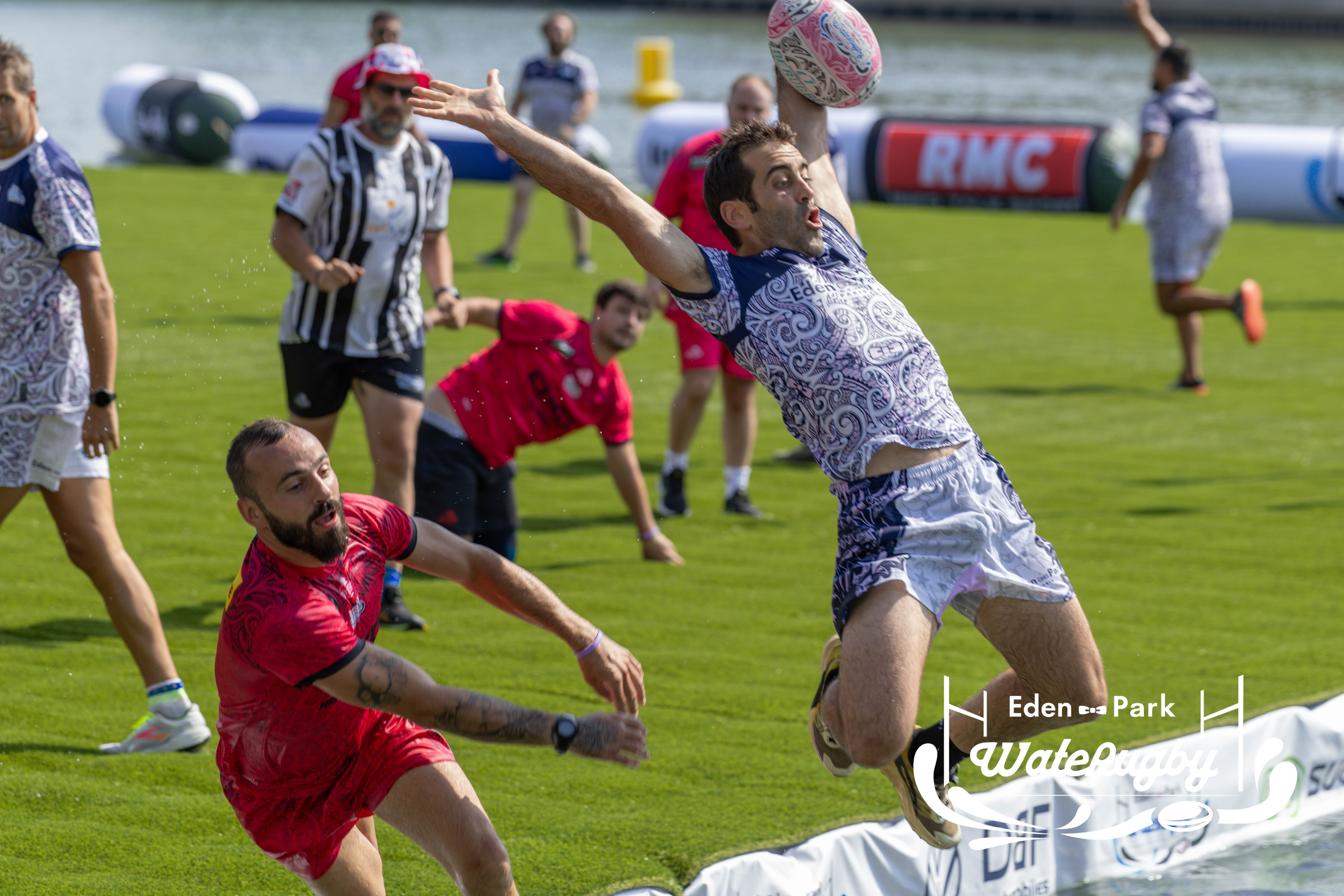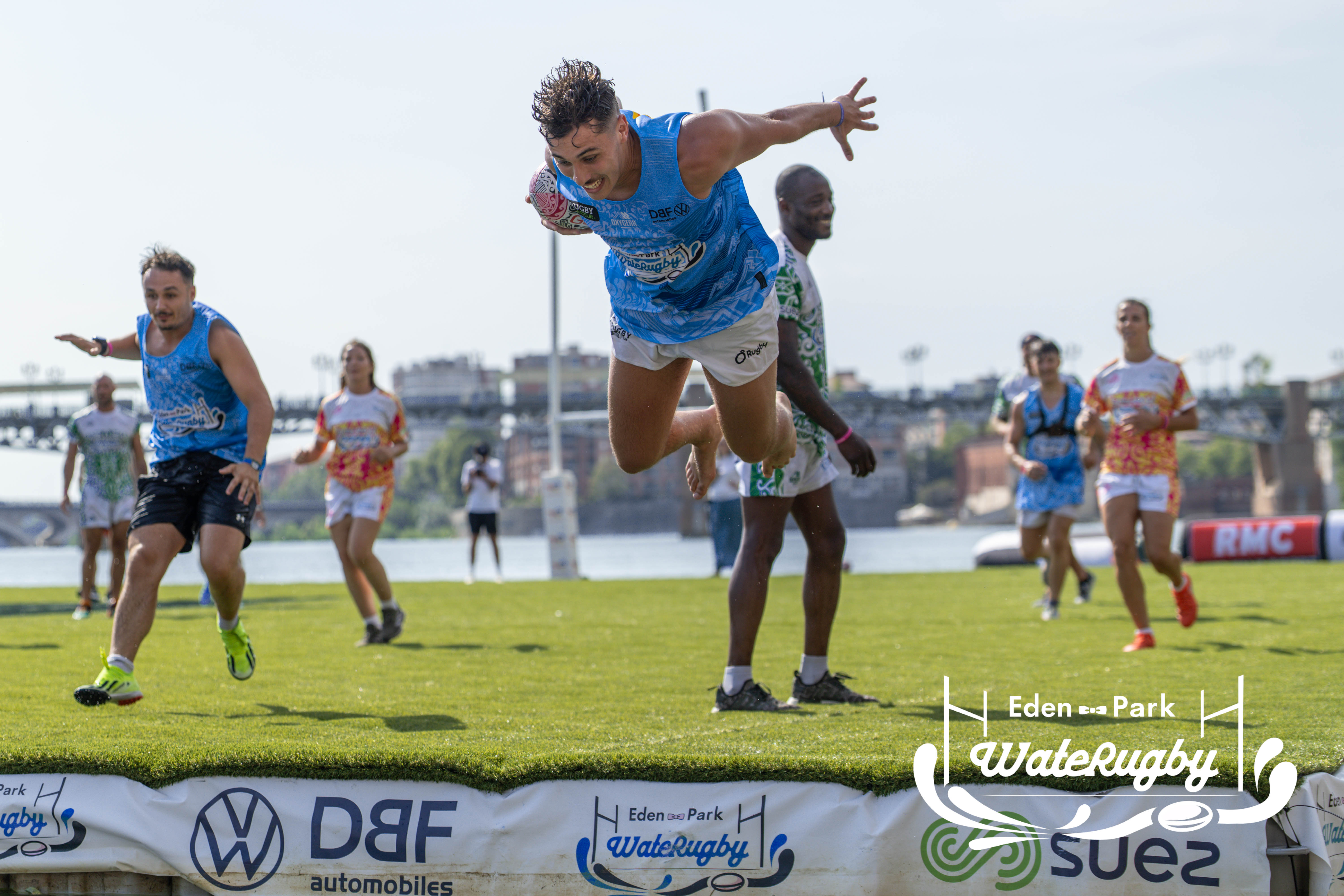 Compétition de rugby sur une barge sur la Garonne en plein centre de Toulouse