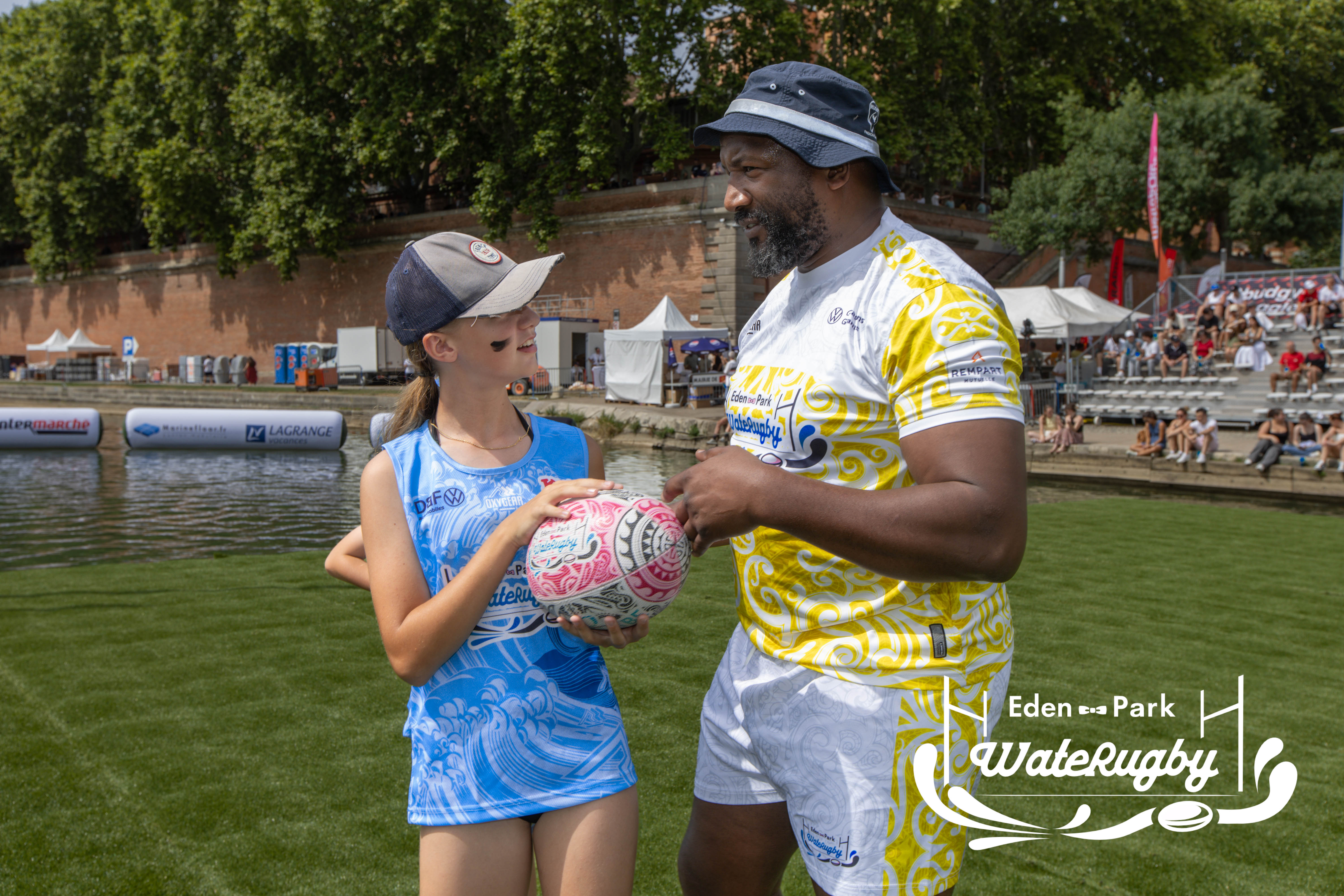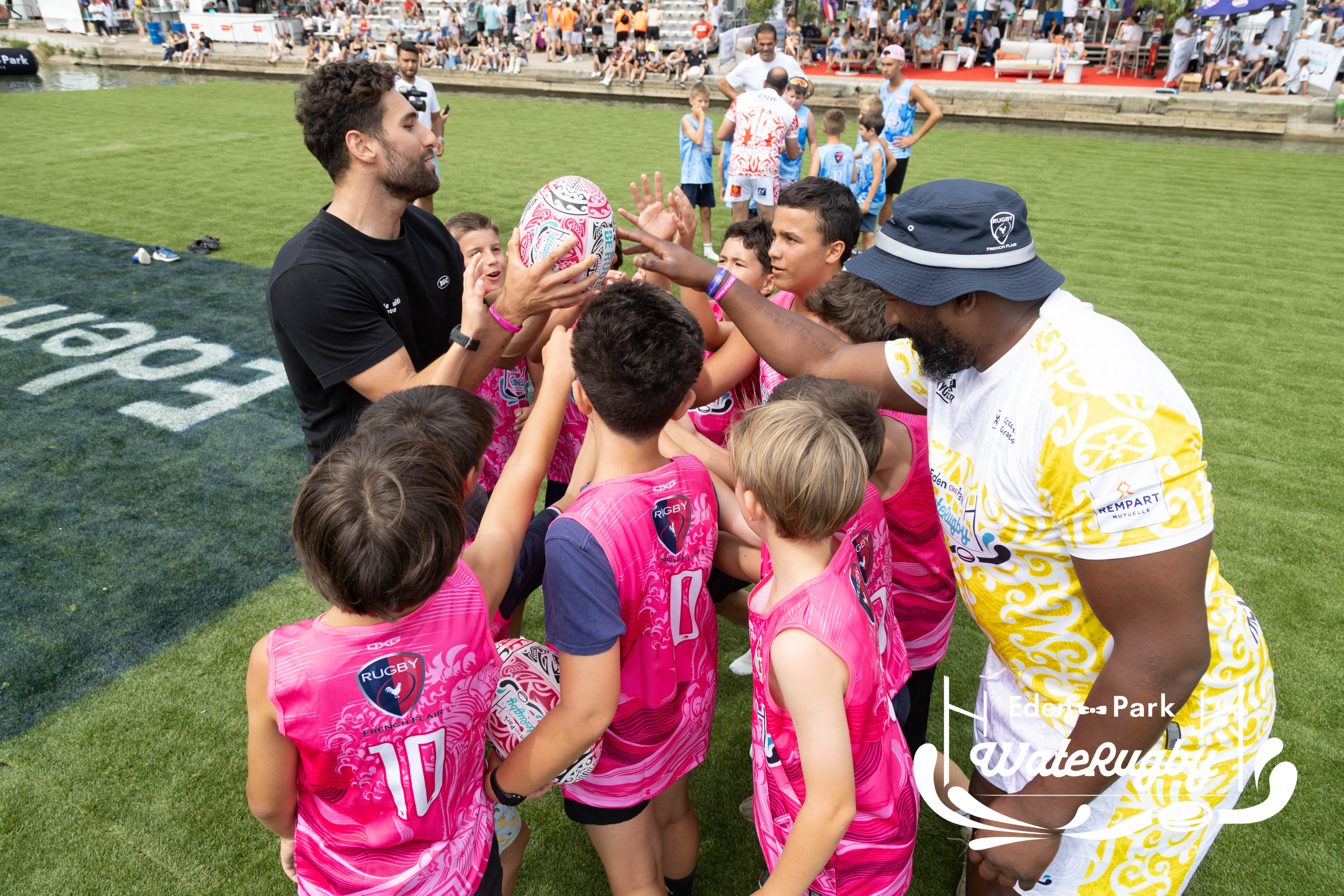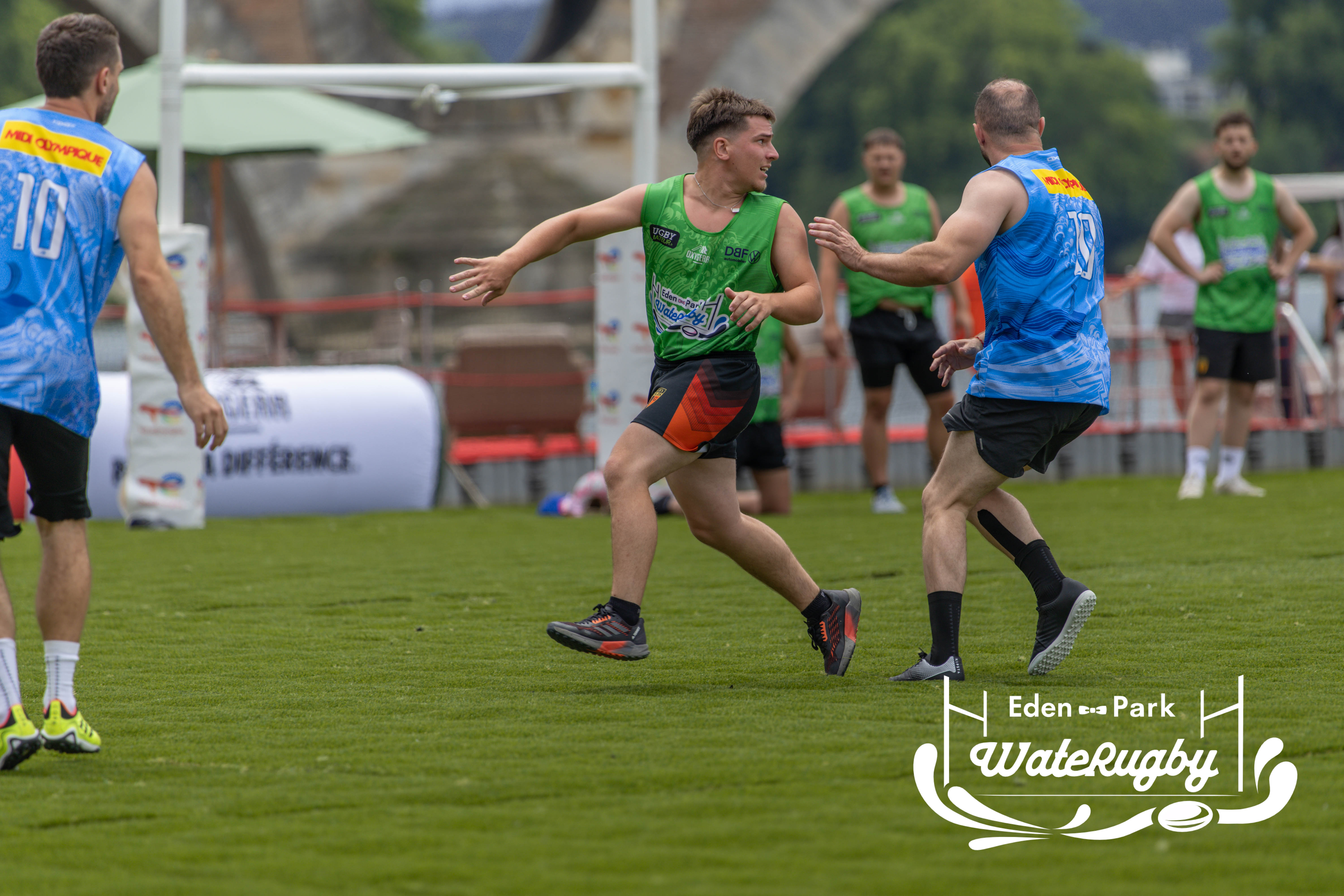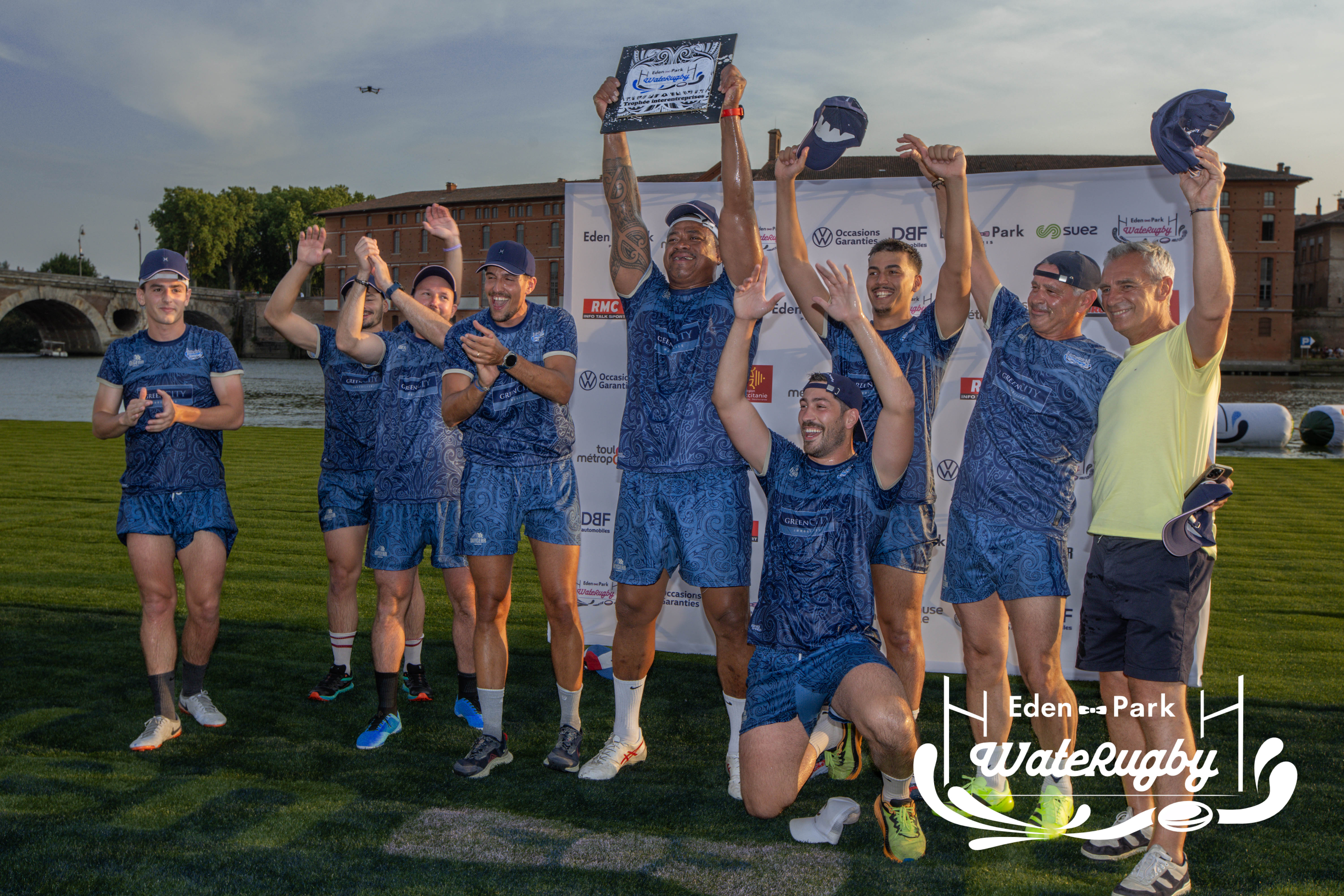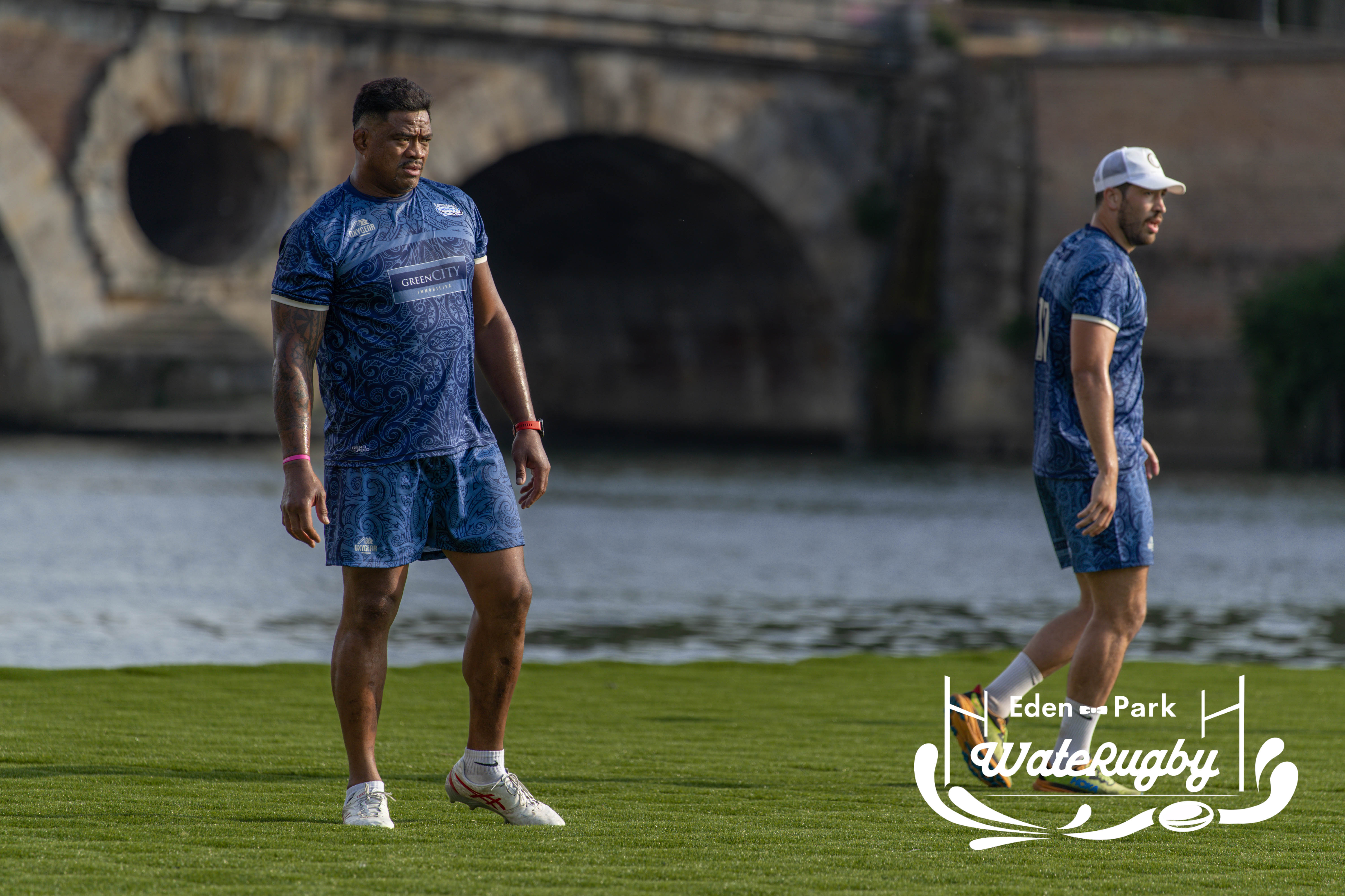 Compétition de rugby sur une barge sur la Garonne en plein centre de Toulouse