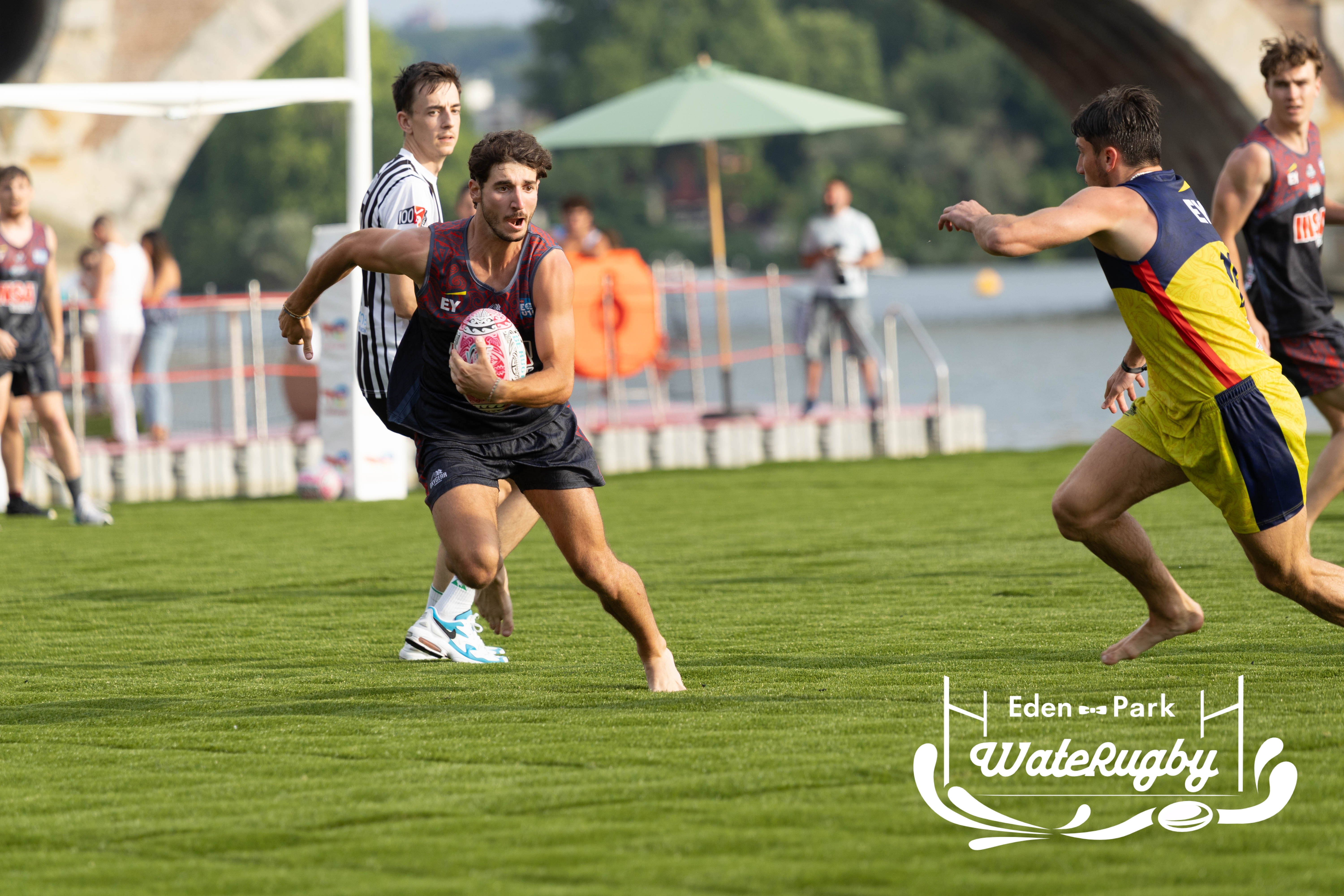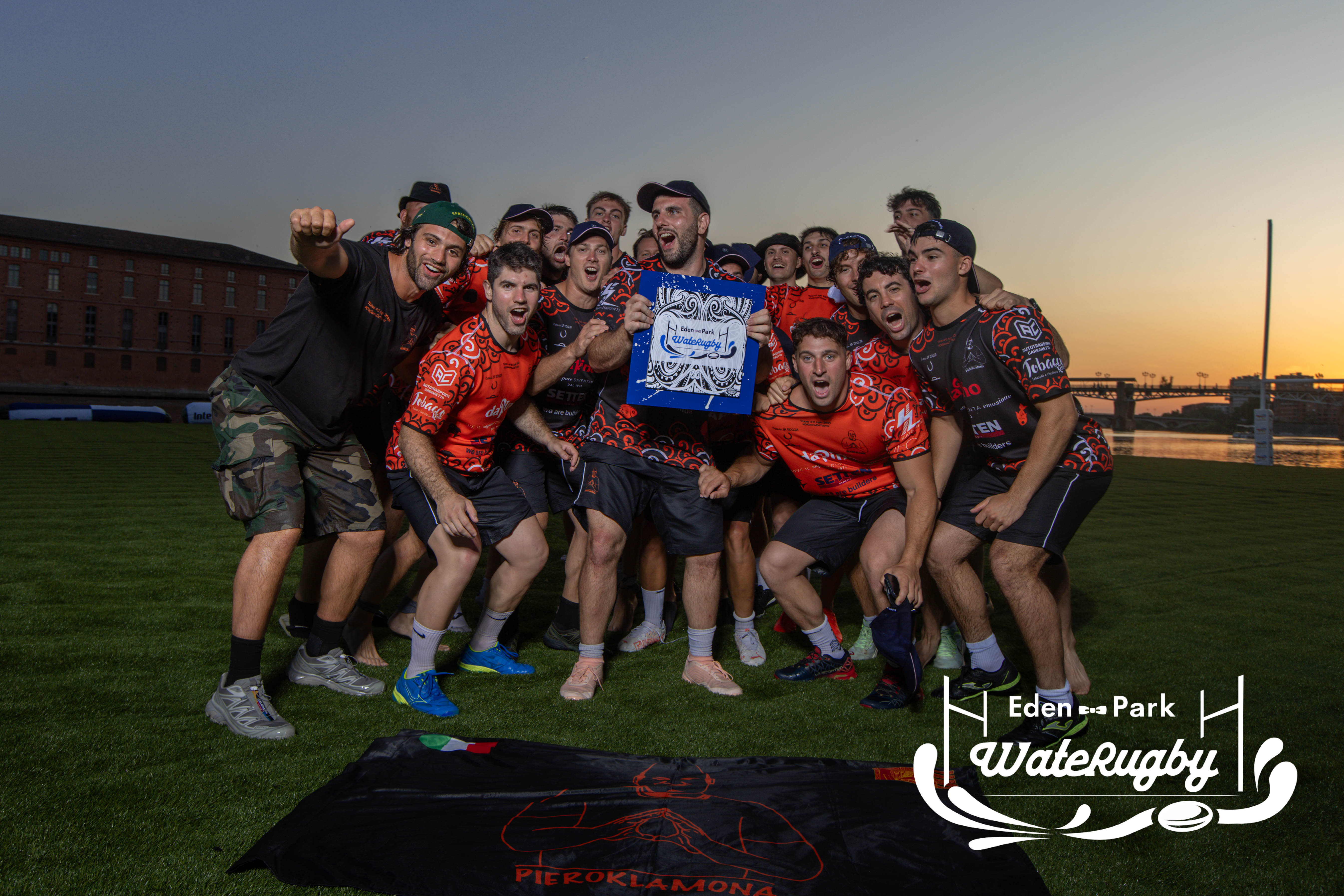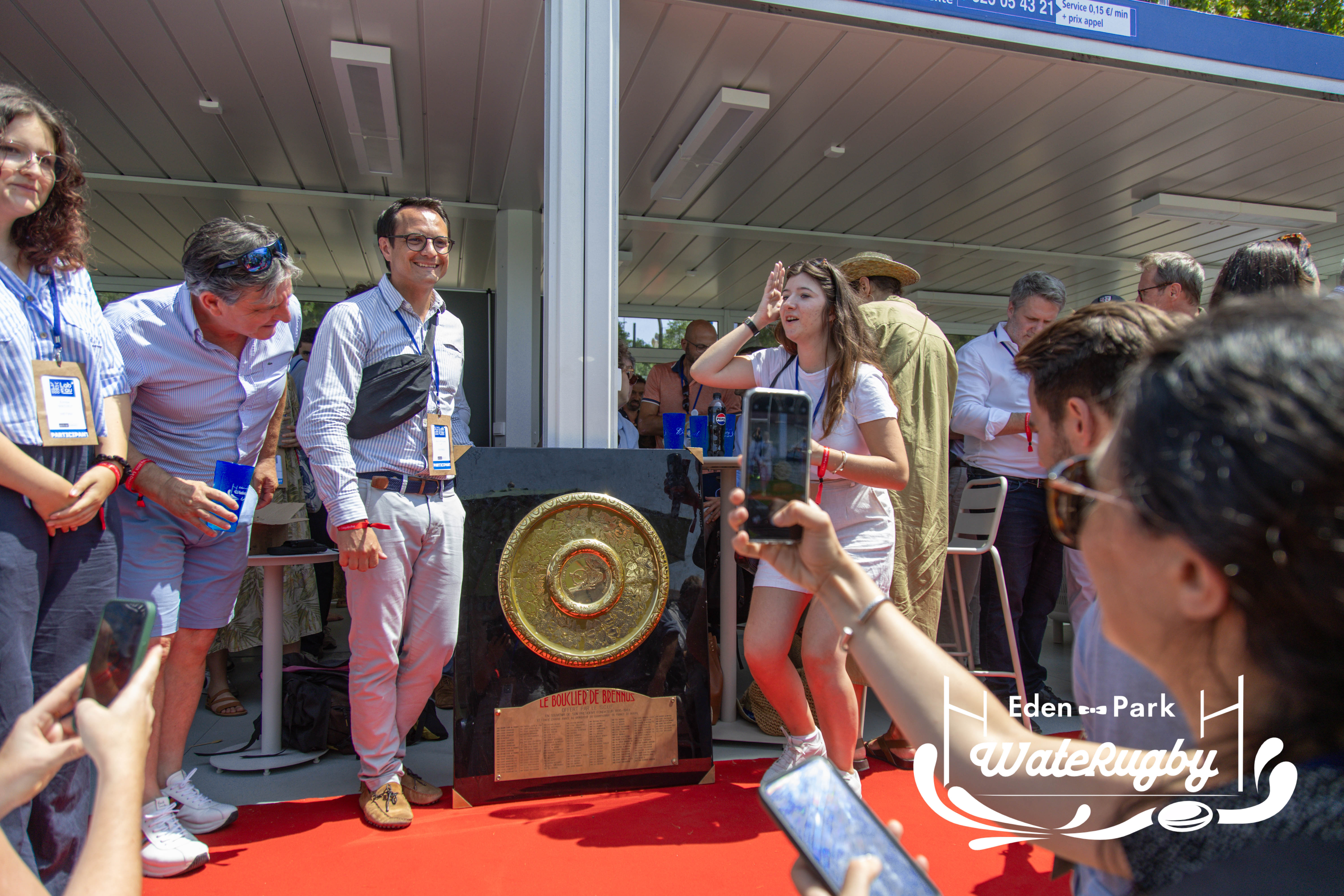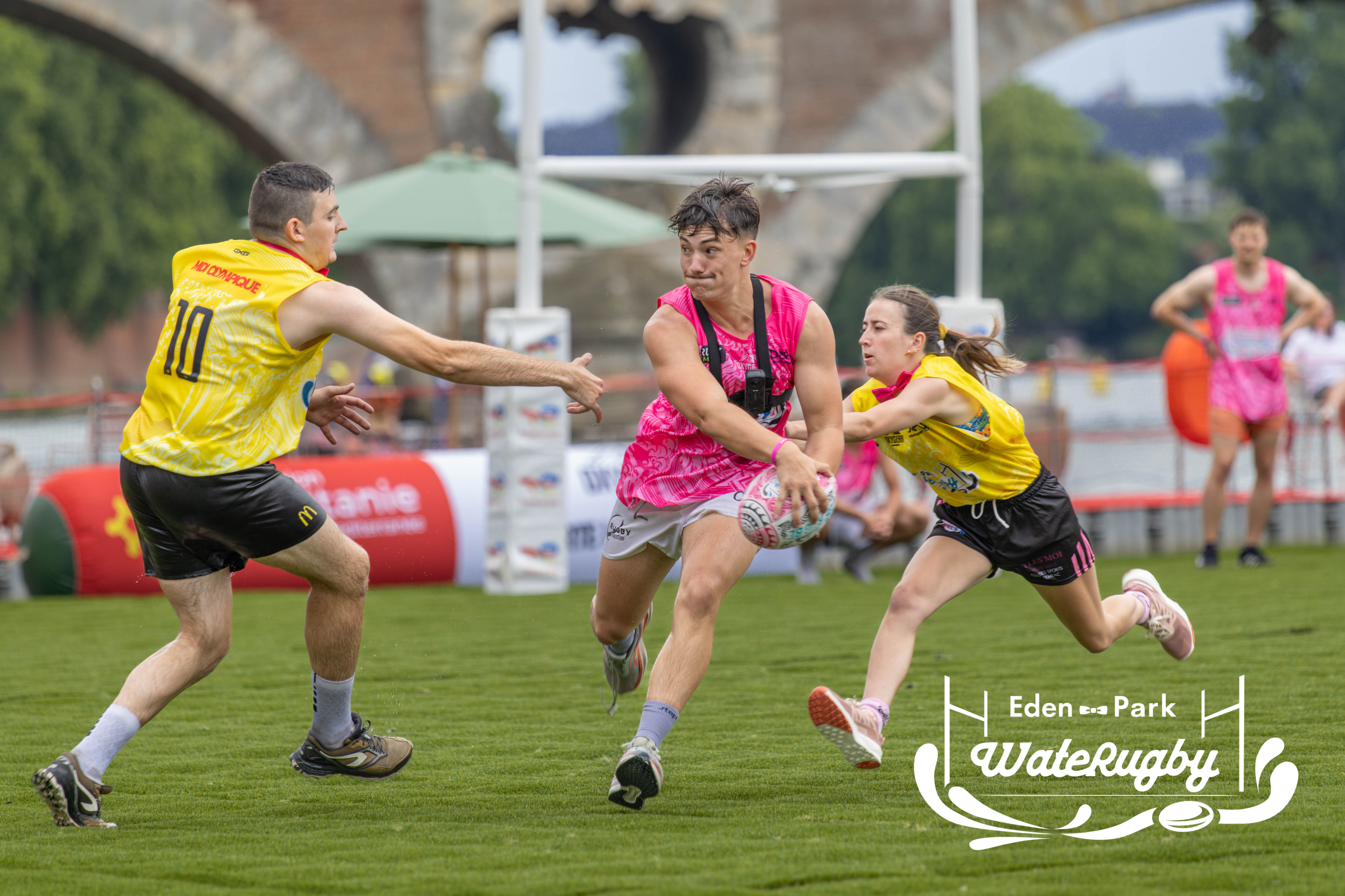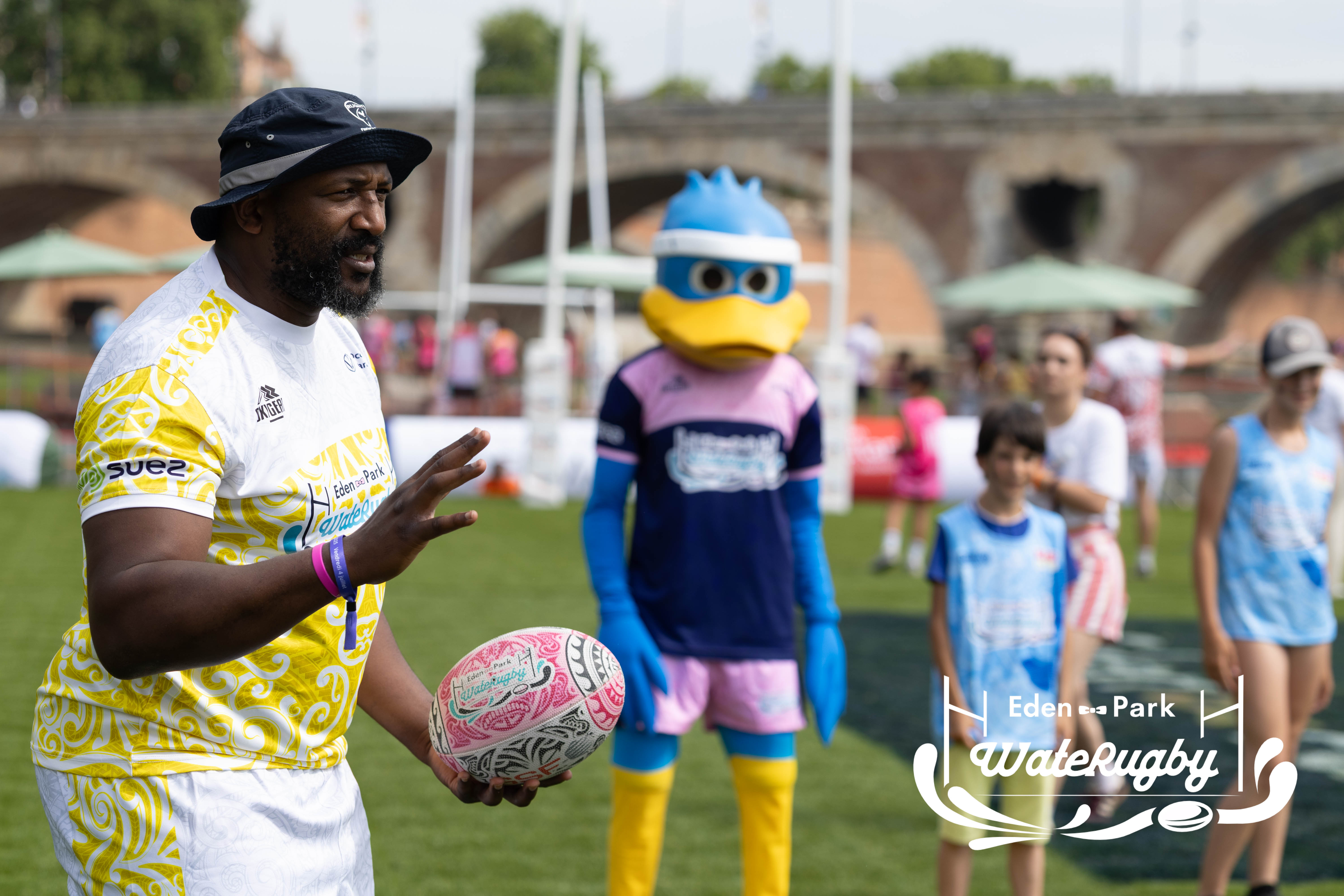 Compétition de rugby sur une barge sur la Garonne en plein centre de Toulouse