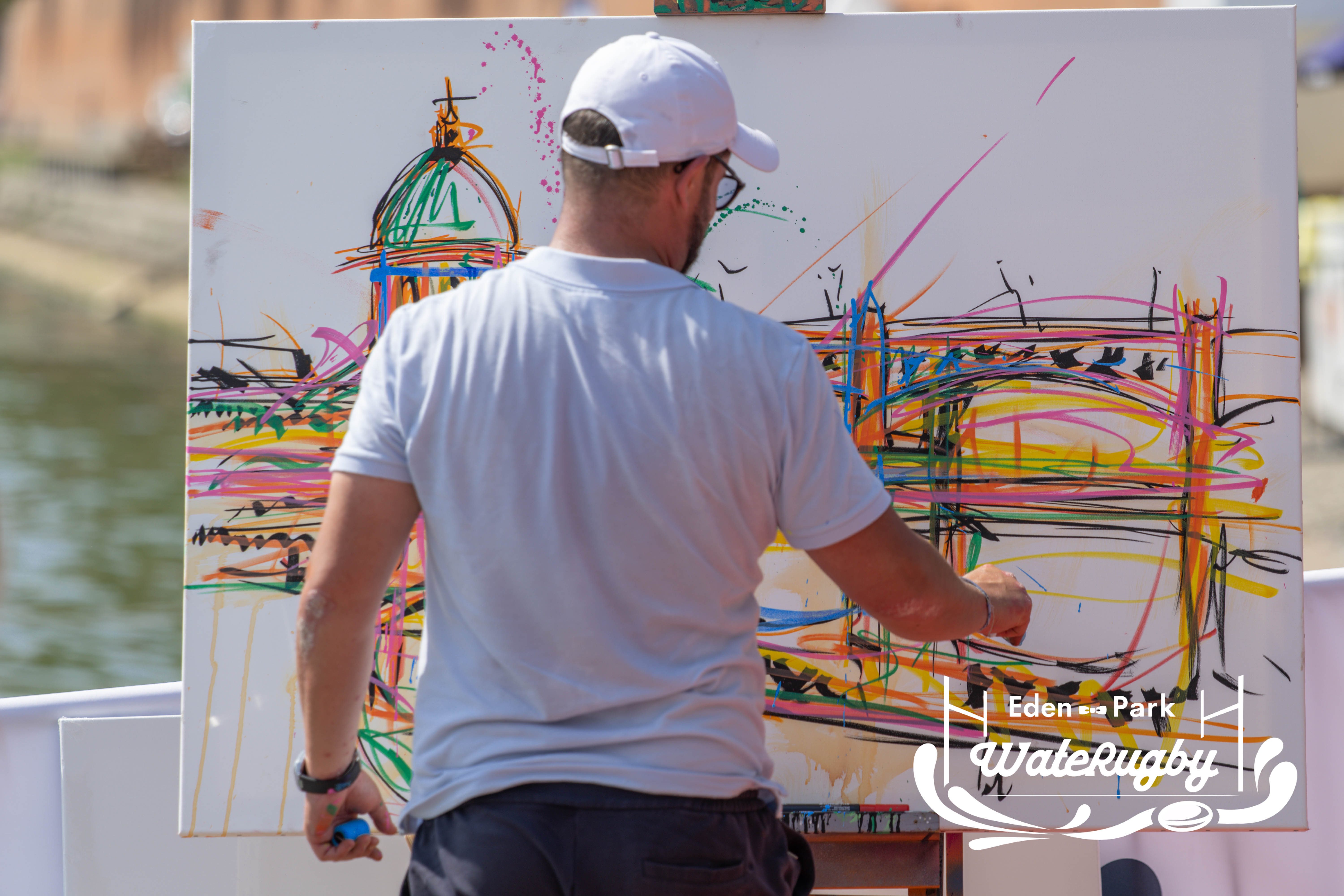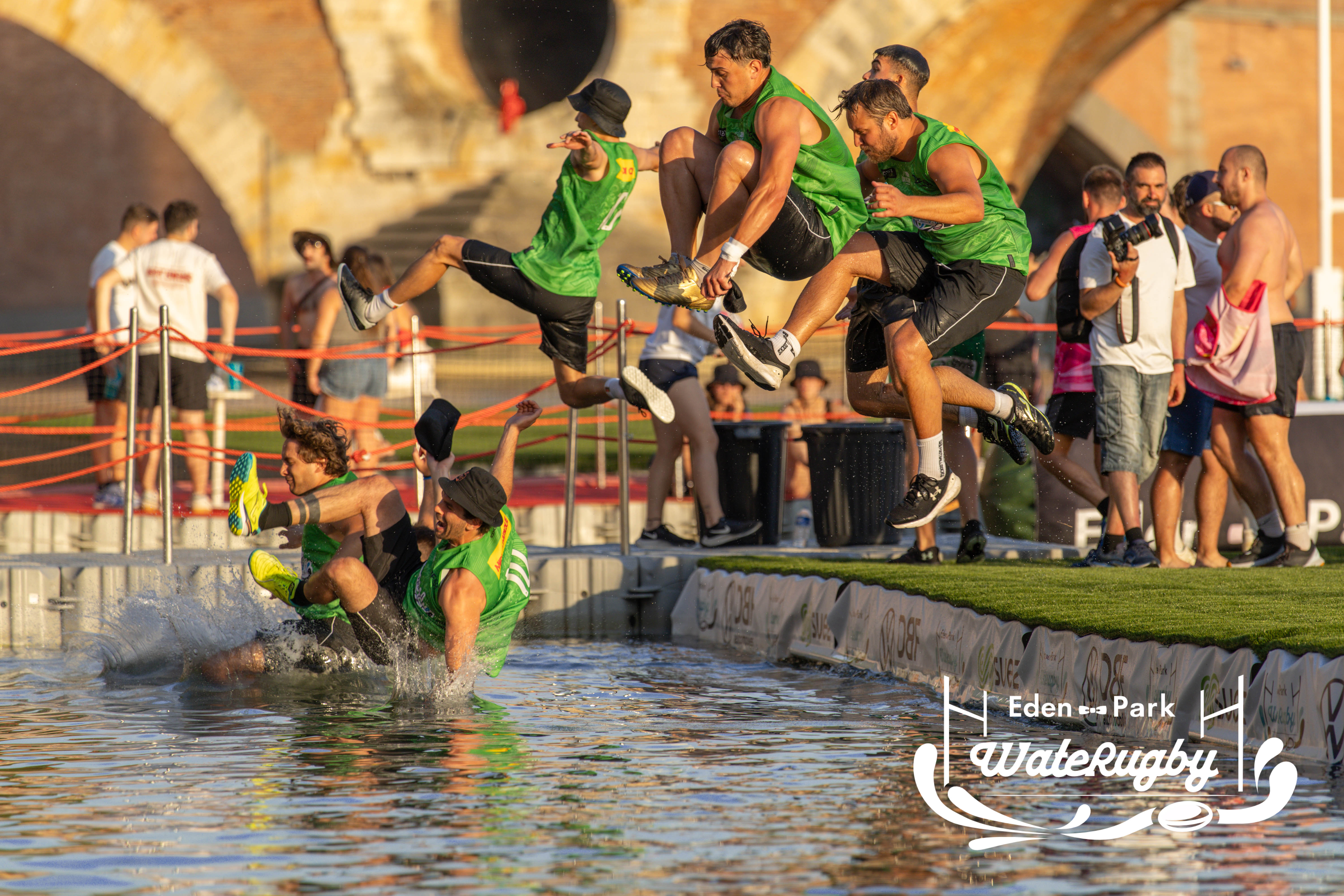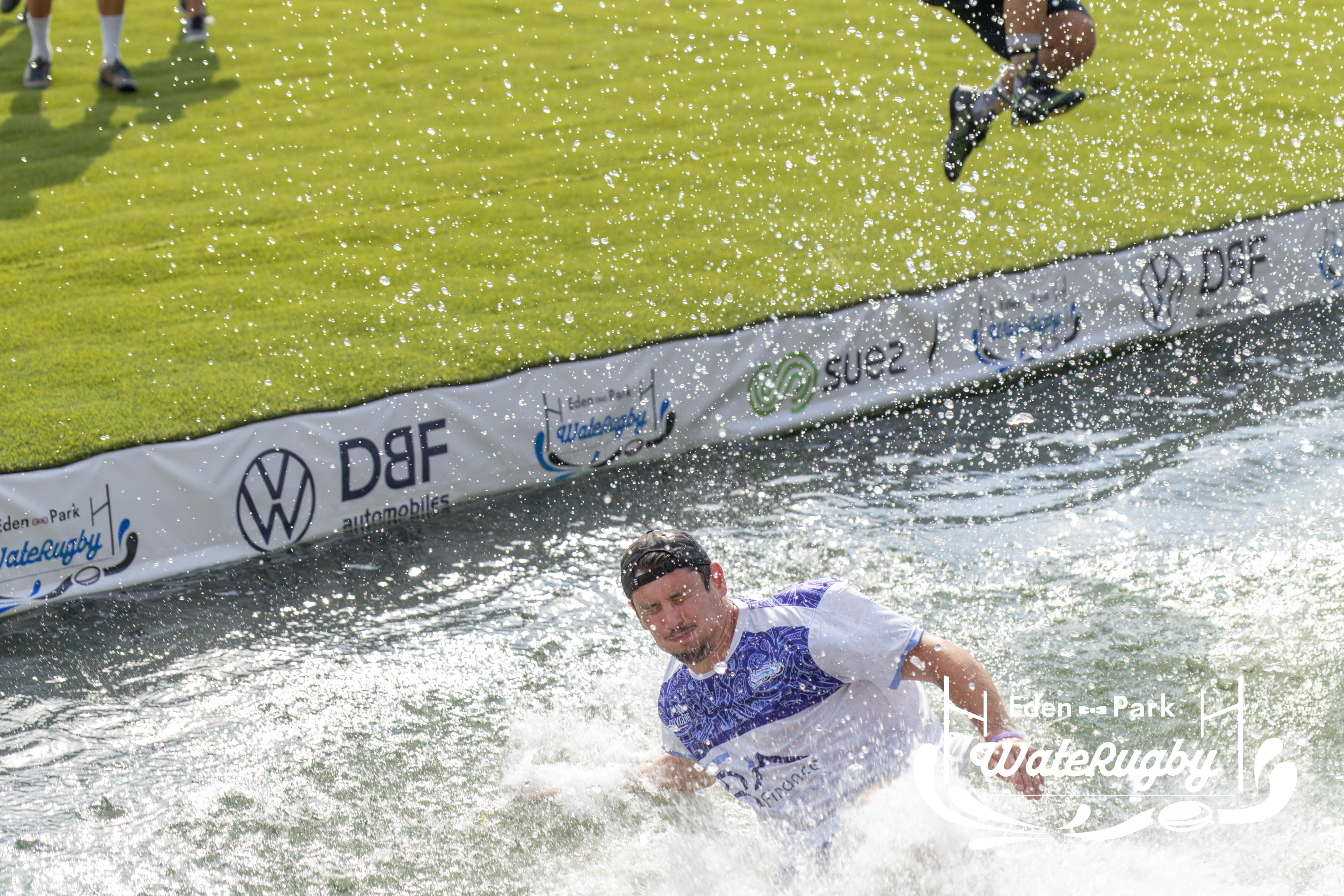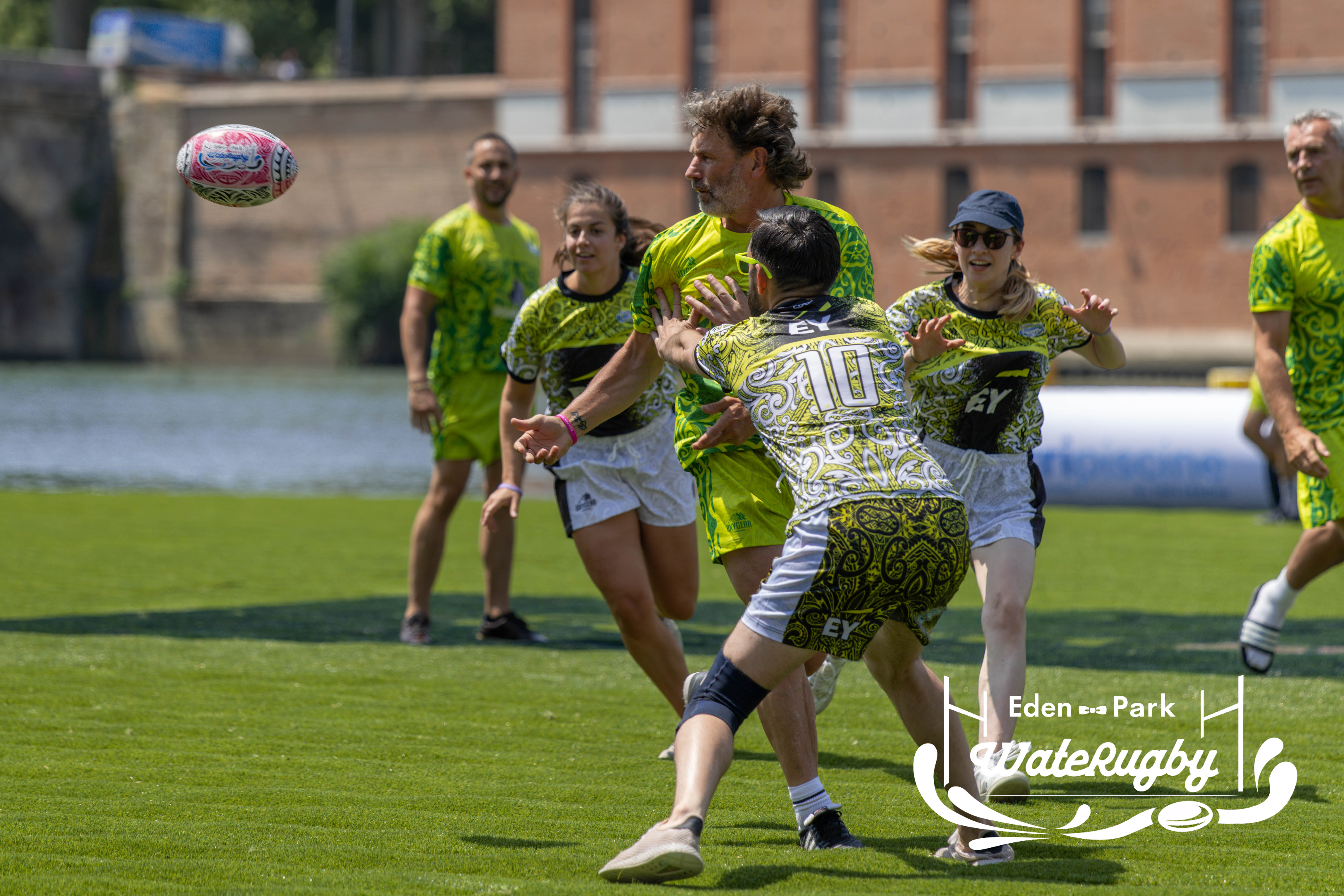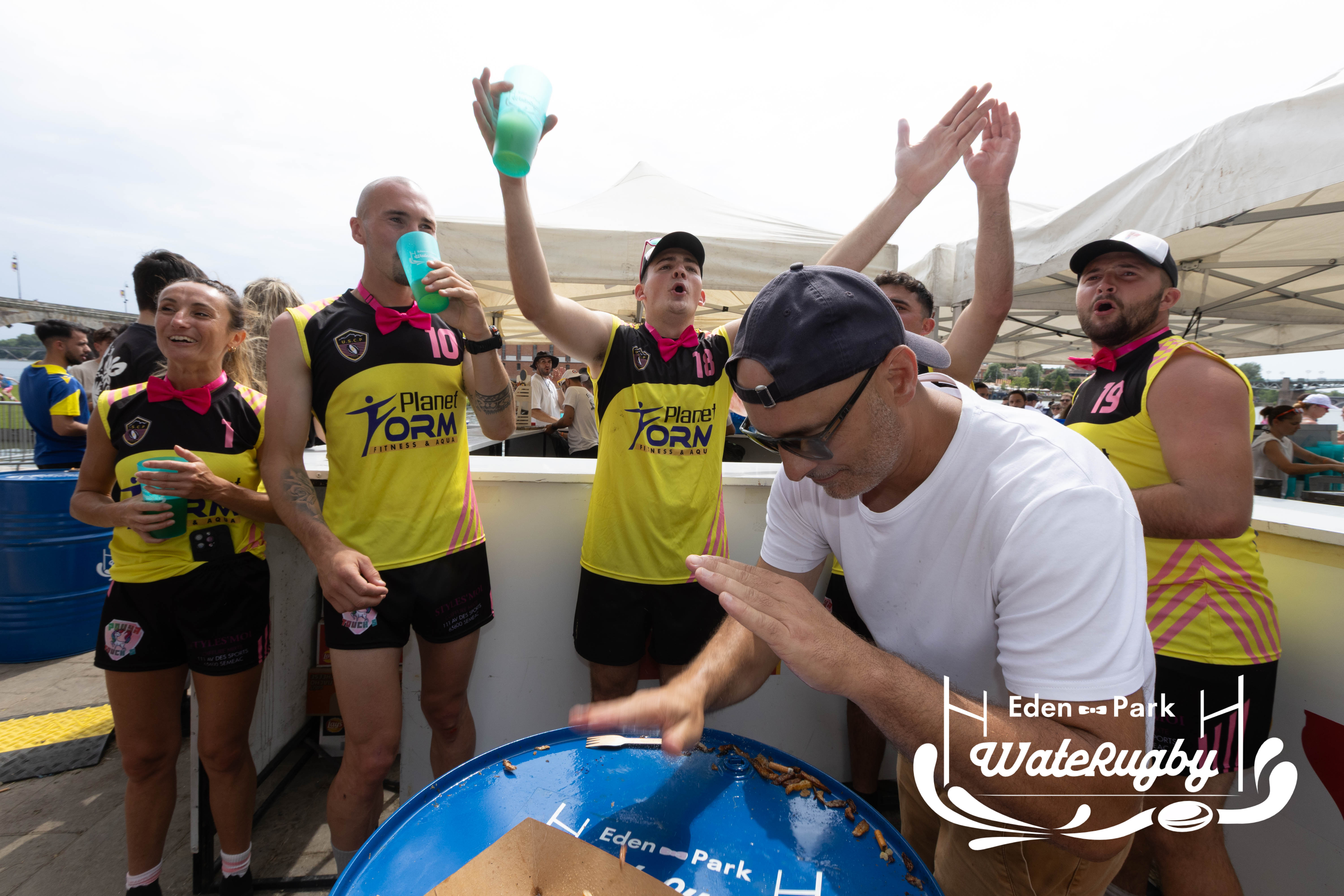 Compétition de rugby sur une barge sur la Garonne en plein centre de Toulouse