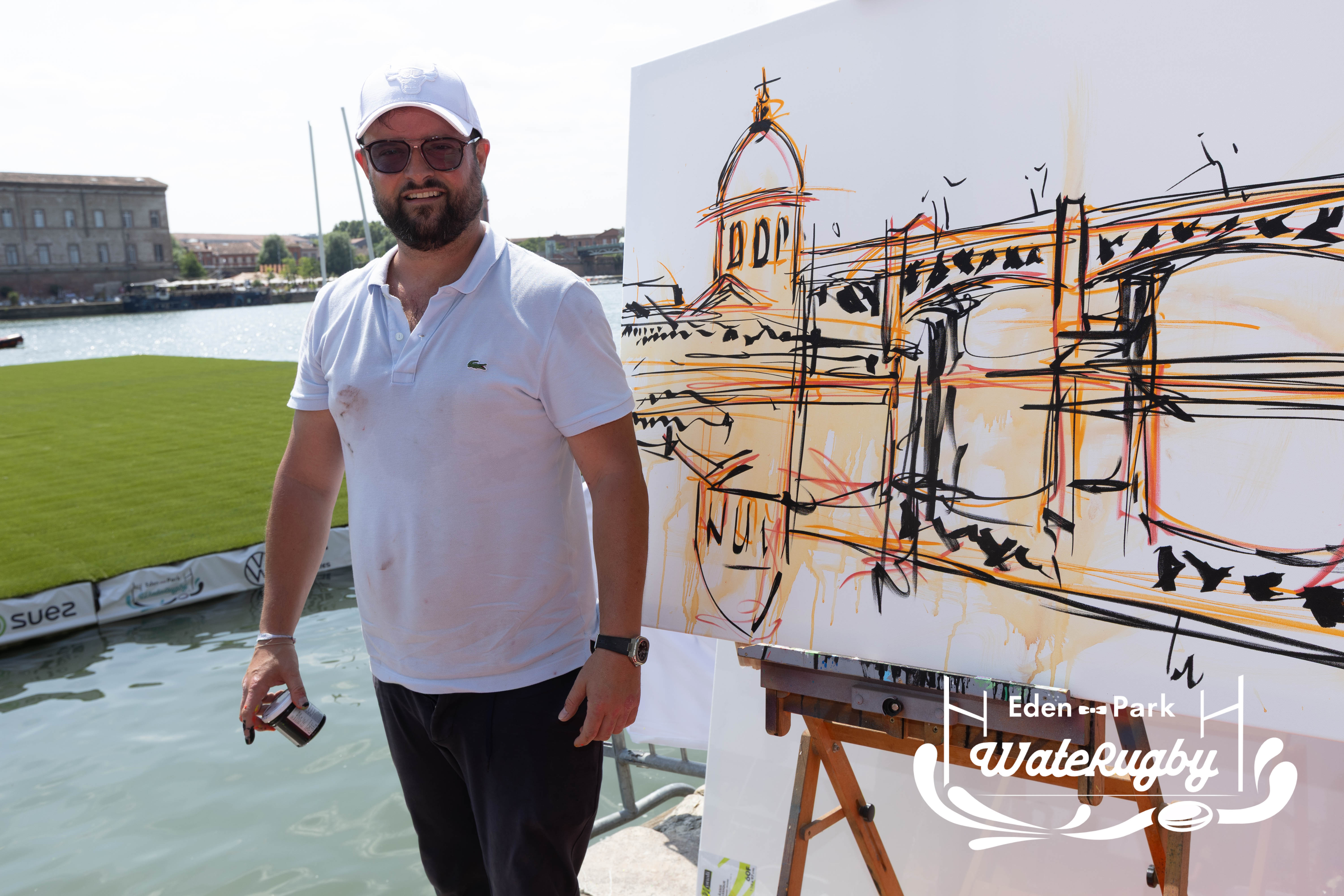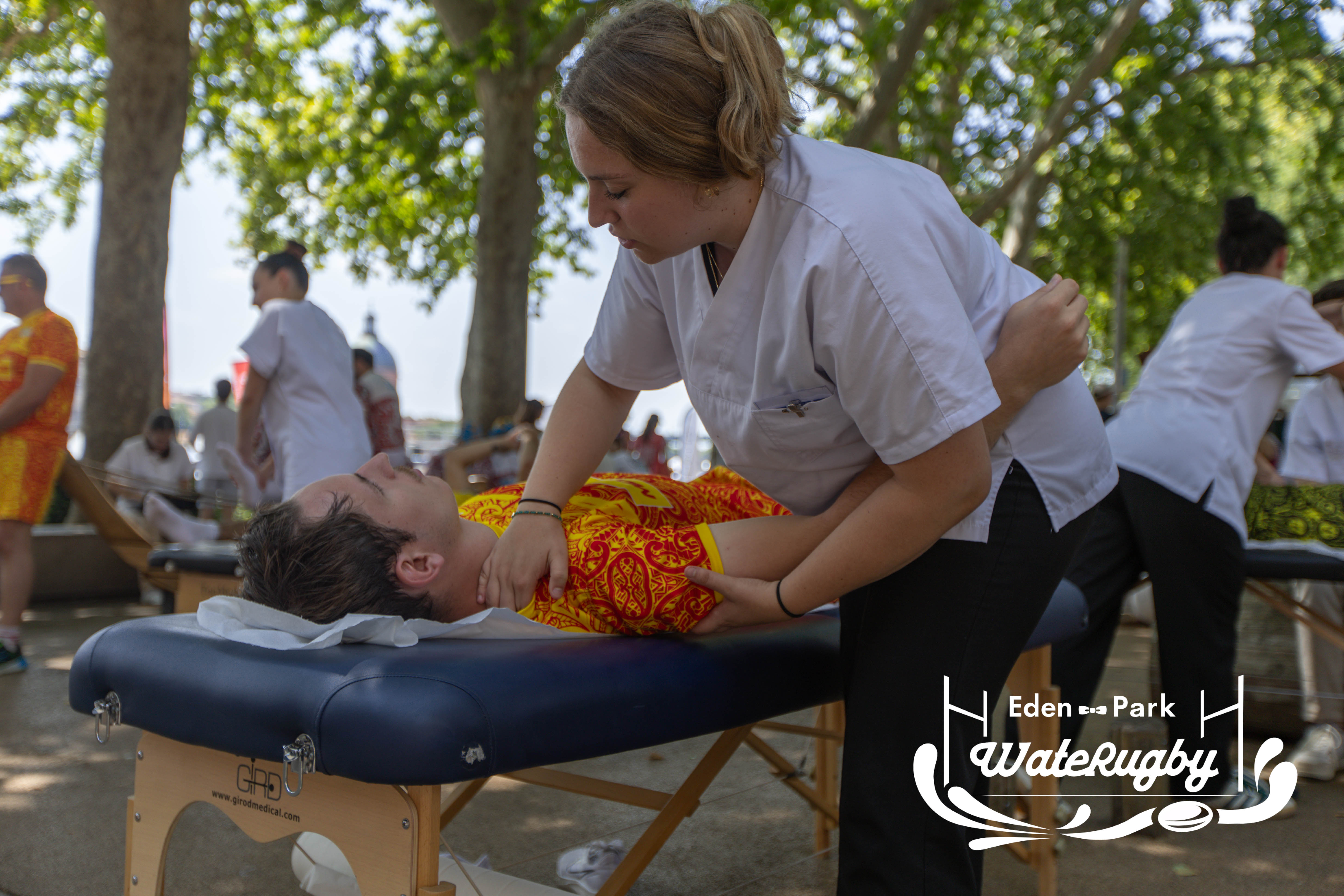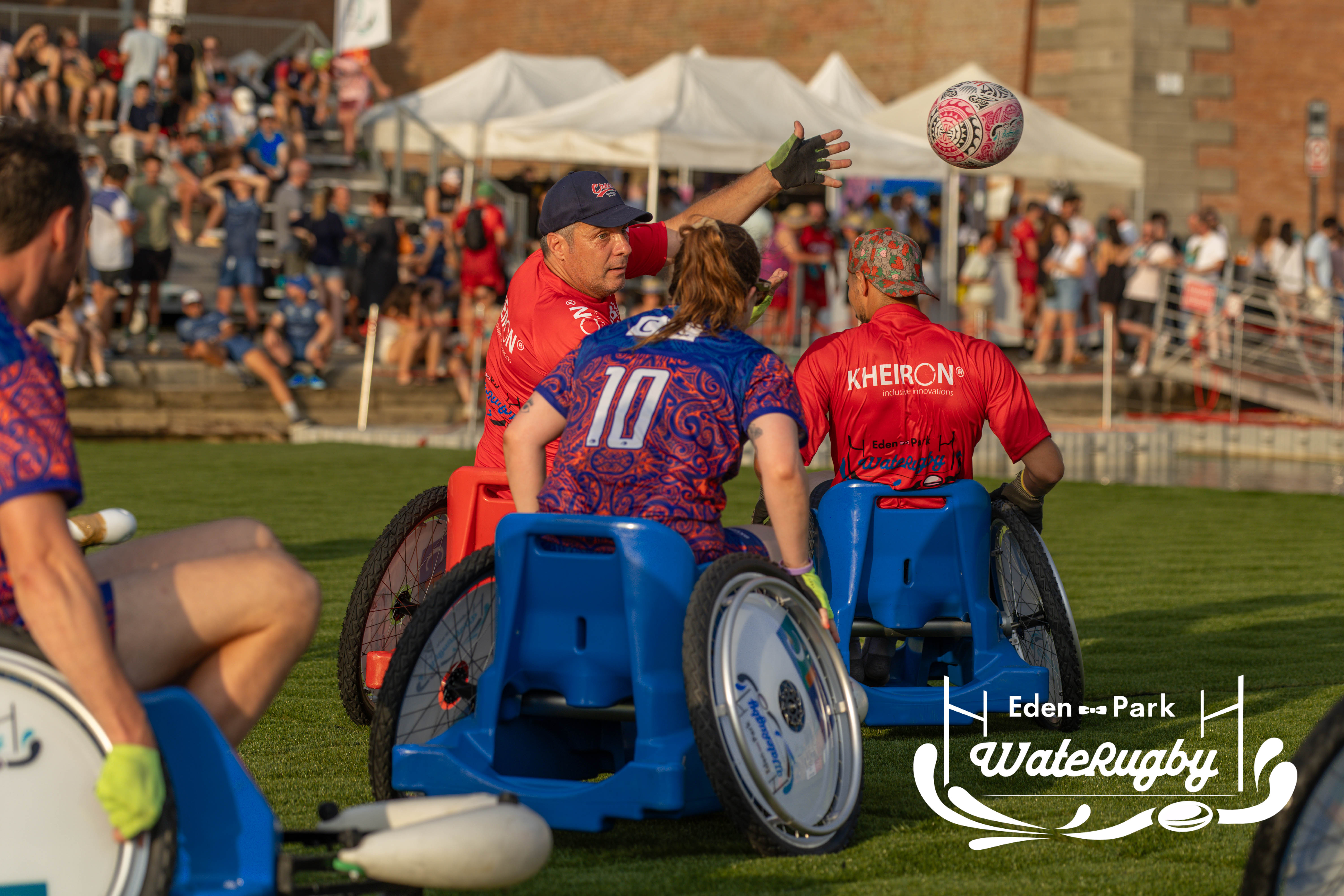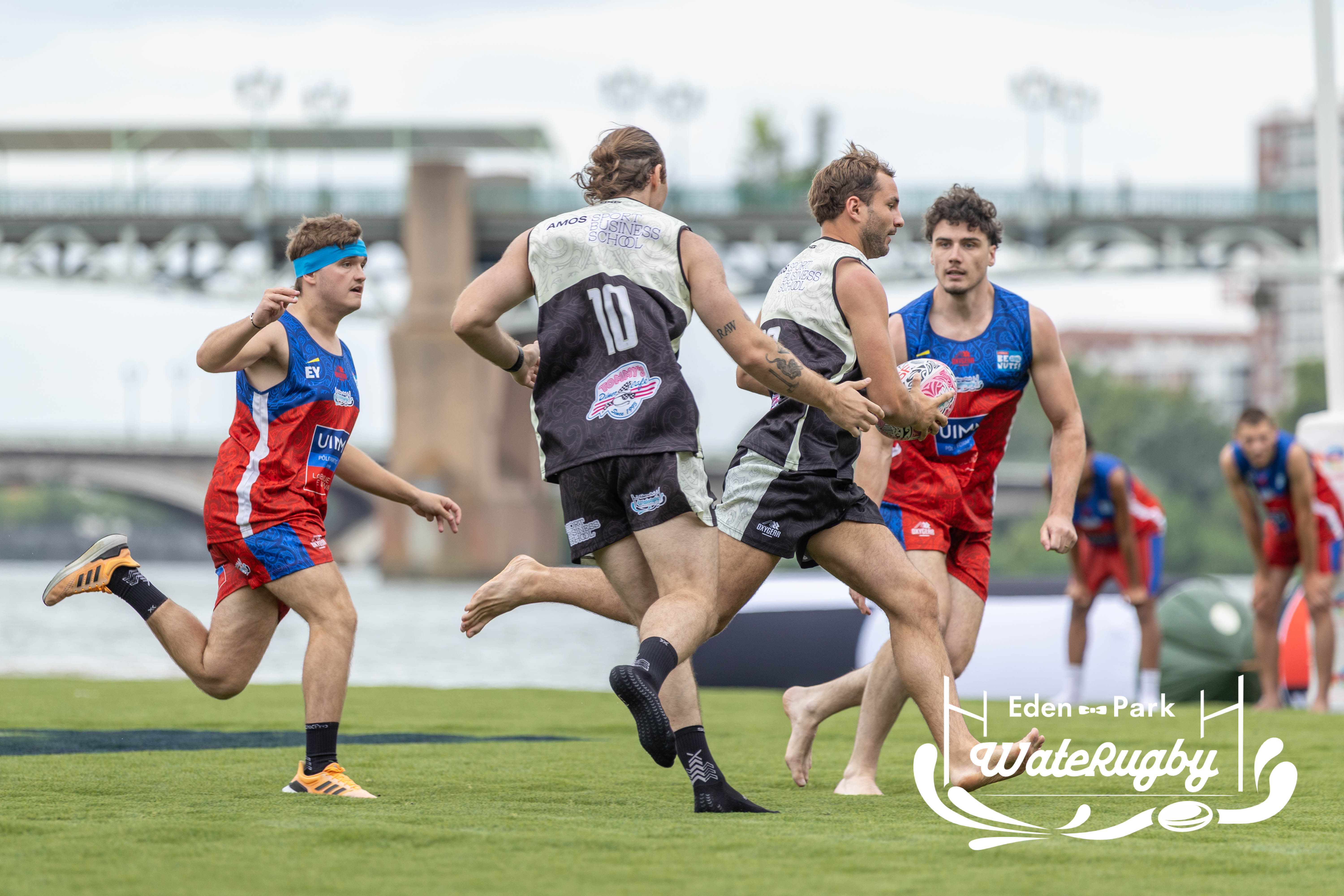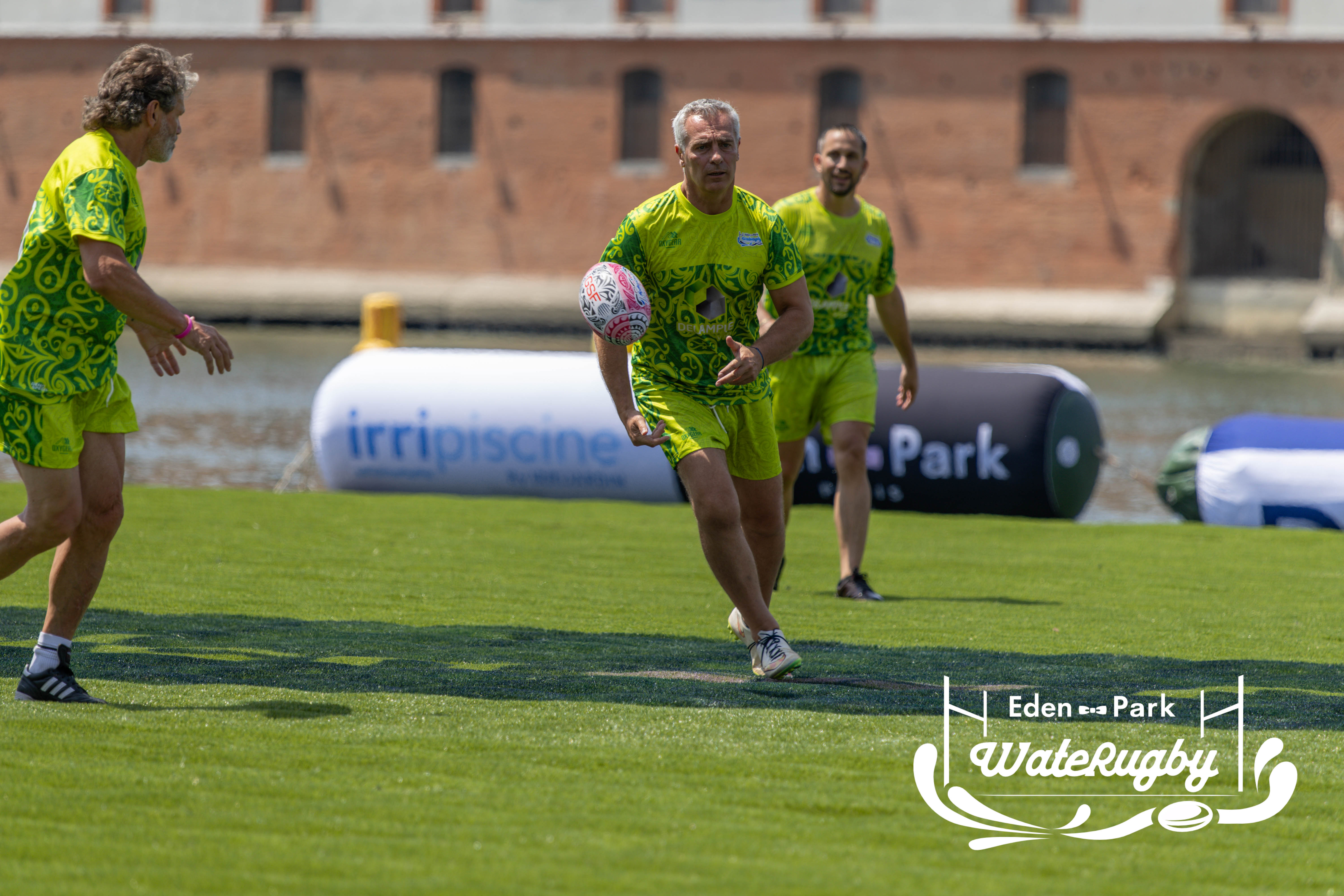 Compétition de rugby sur une barge sur la Garonne en plein centre de Toulouse
