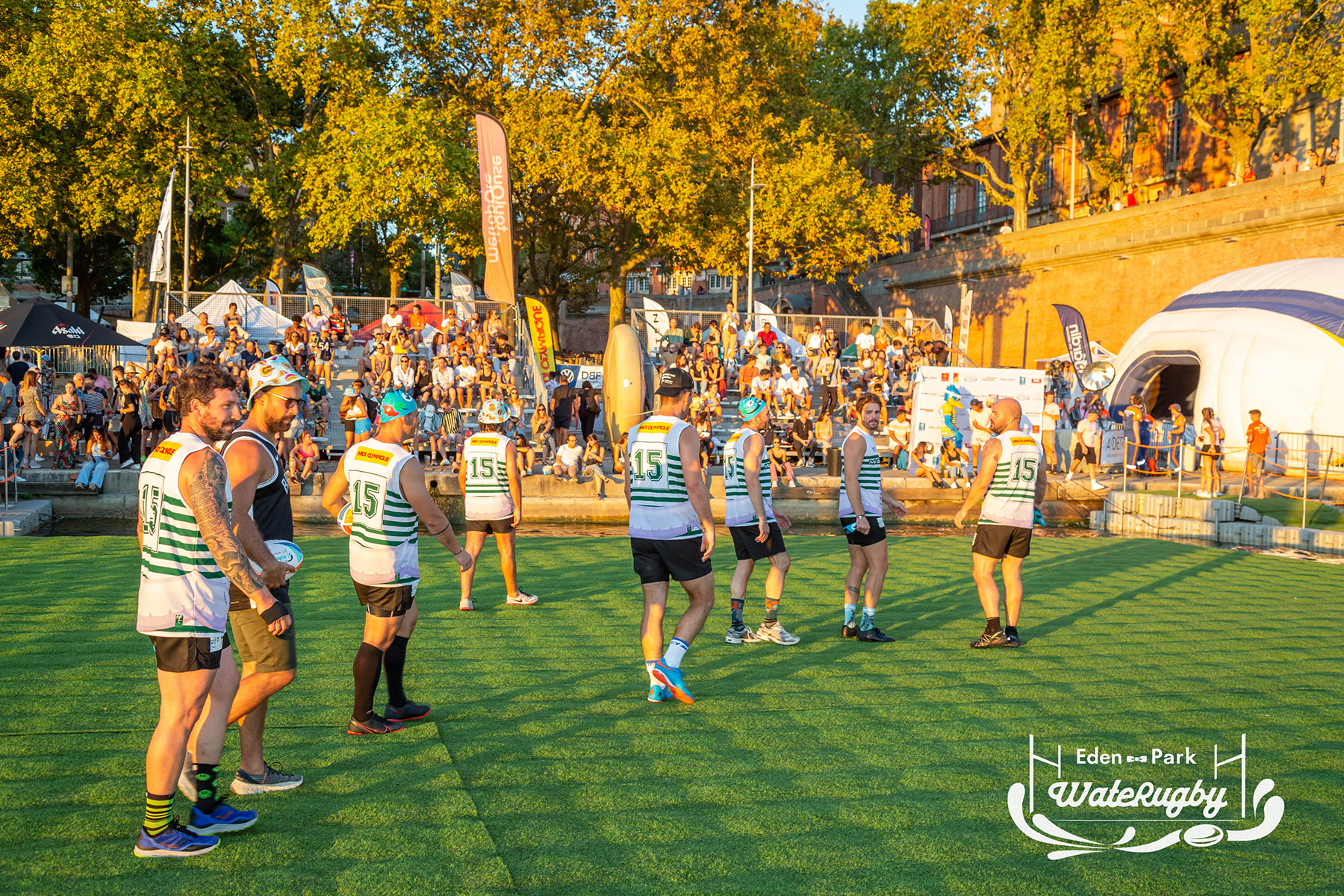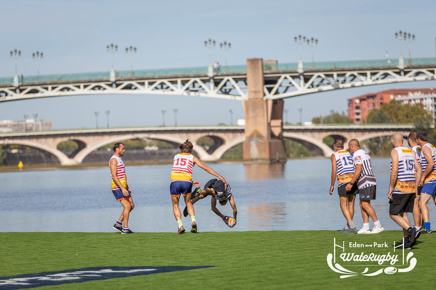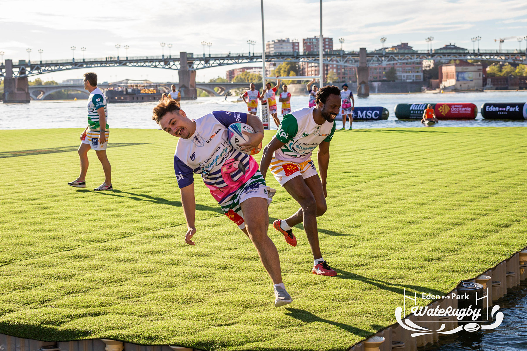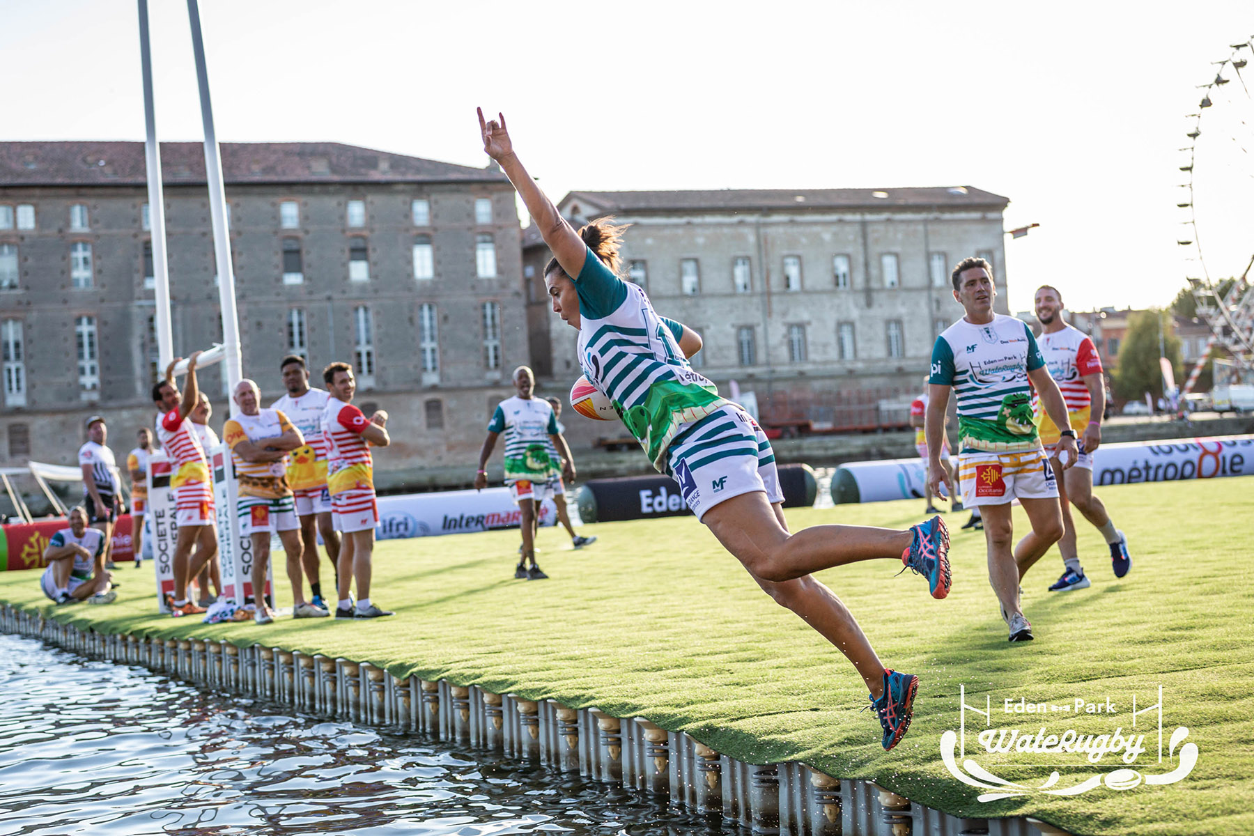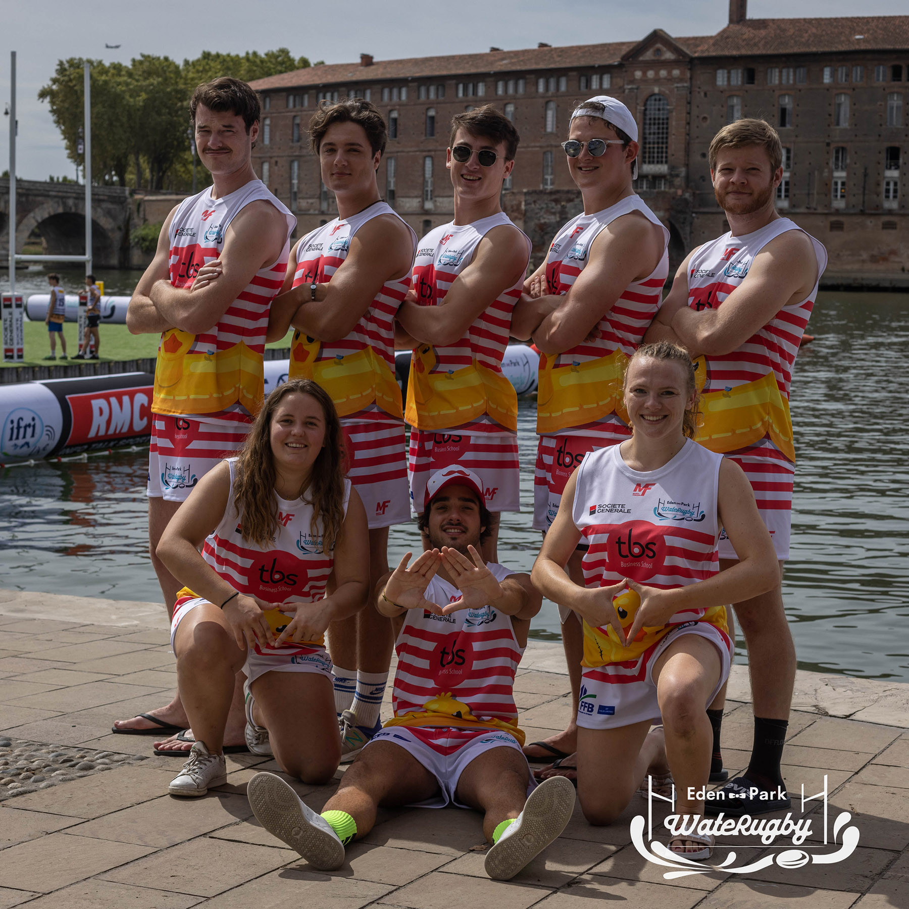 Compétition de rugby sur une barge sur la Garonne en plein centre de Toulouse