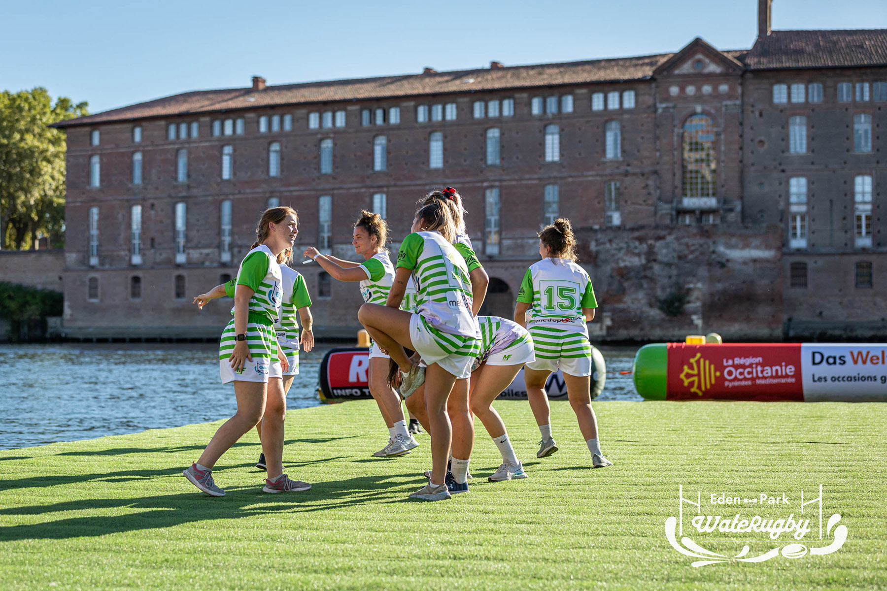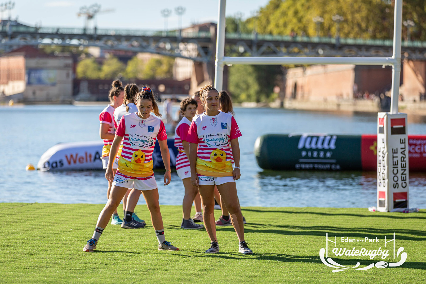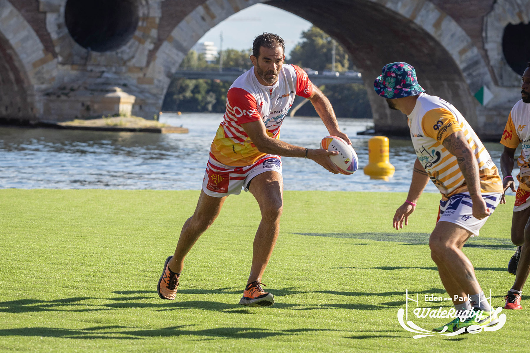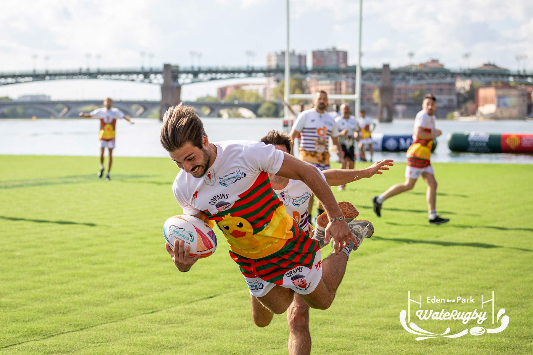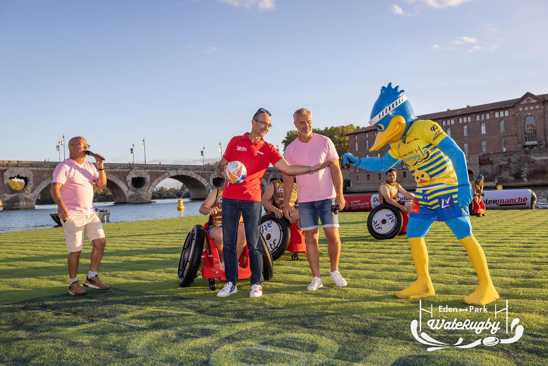 Compétition de rugby sur une barge sur la Garonne en plein centre de Toulouse