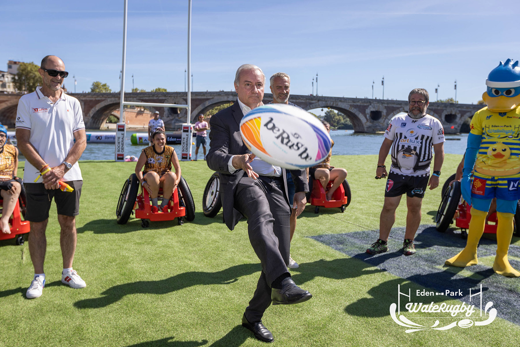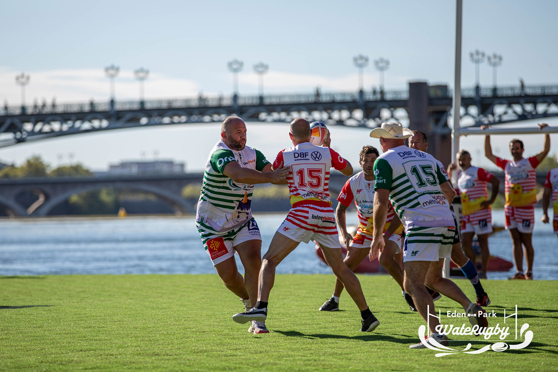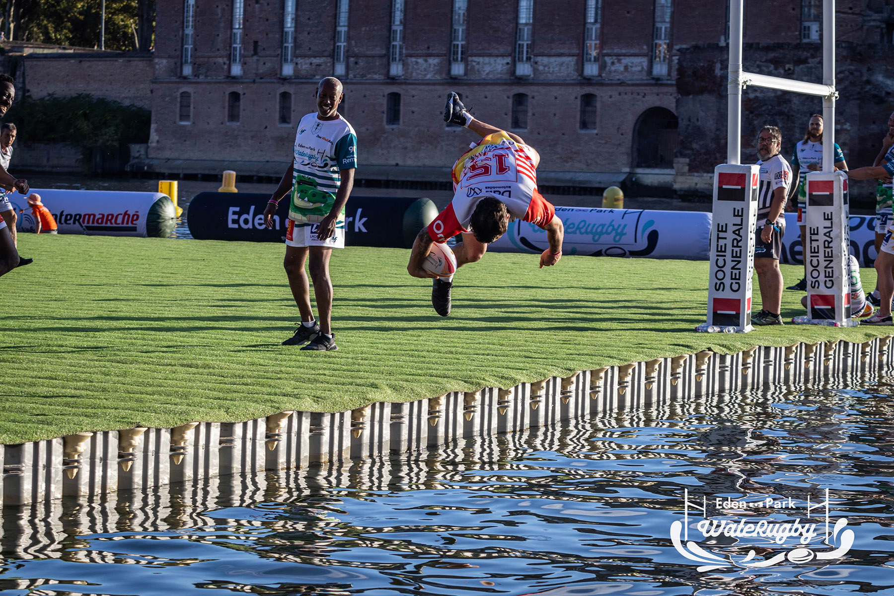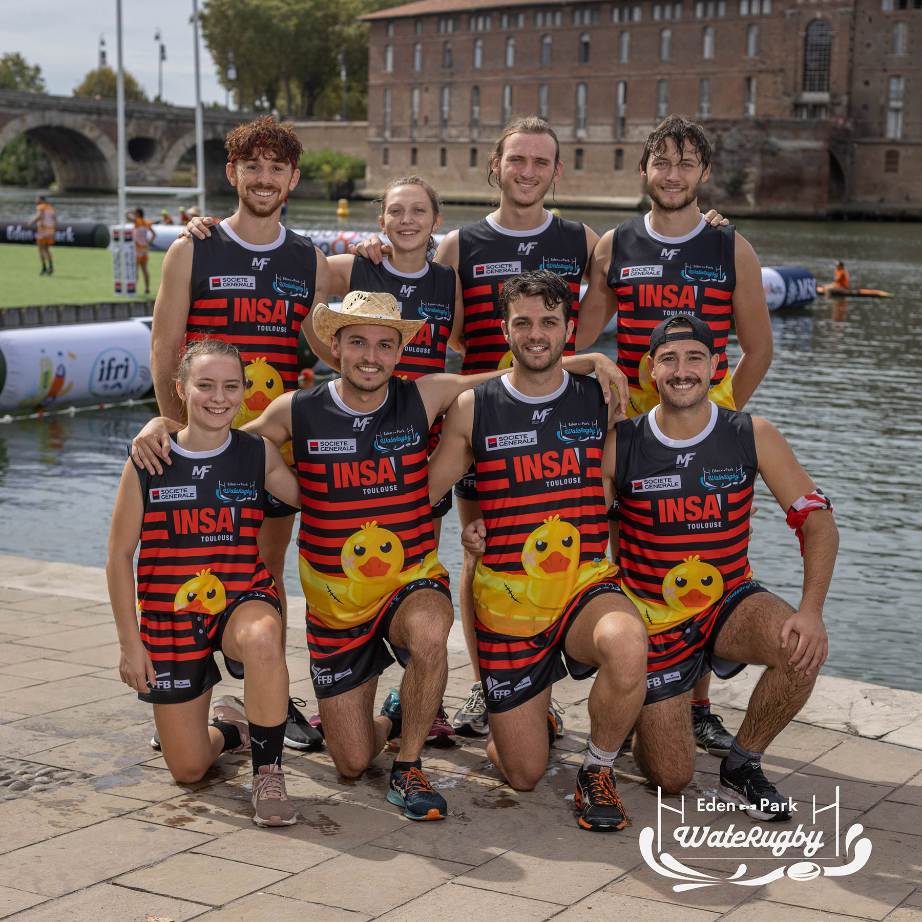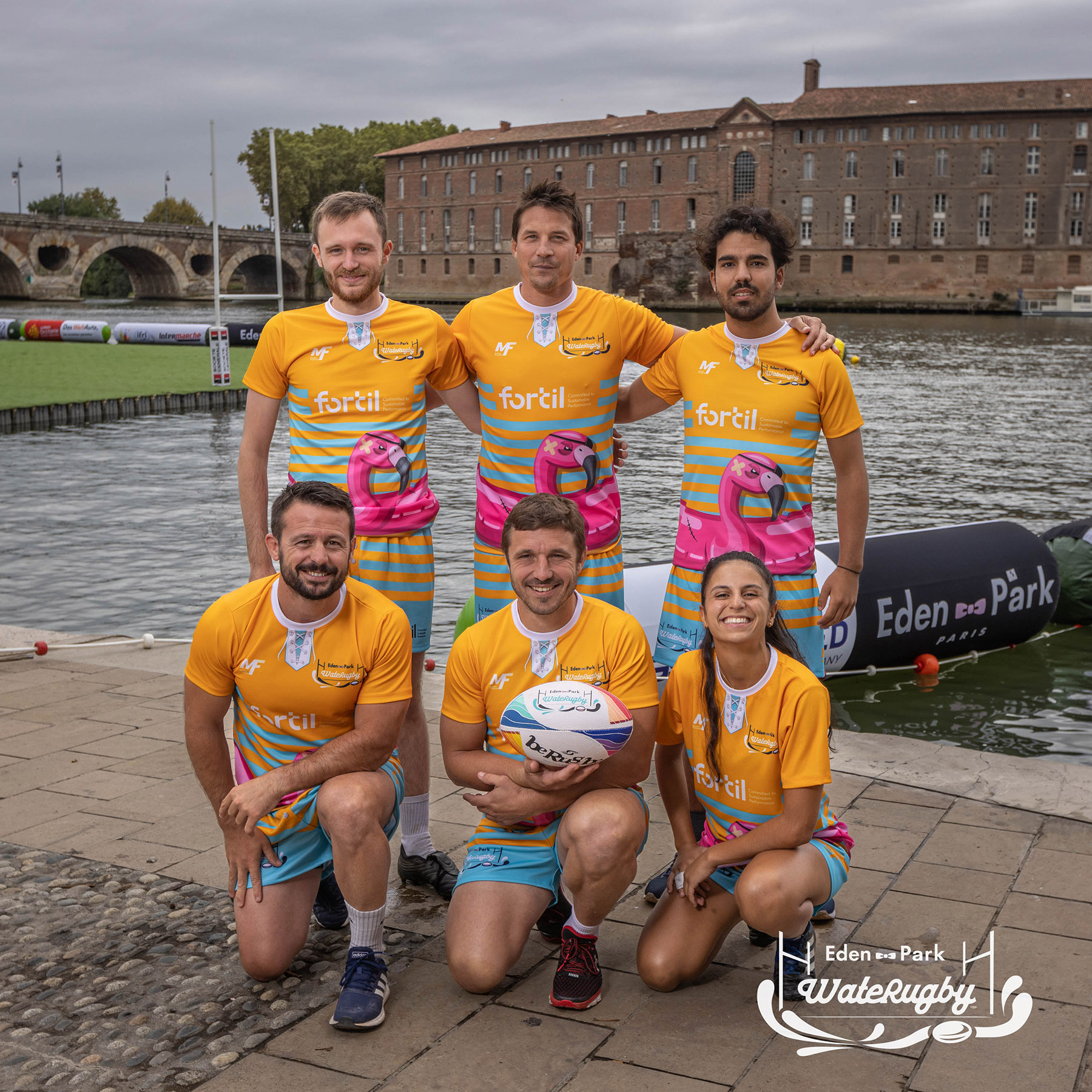 Compétition de rugby sur une barge sur la Garonne en plein centre de Toulouse