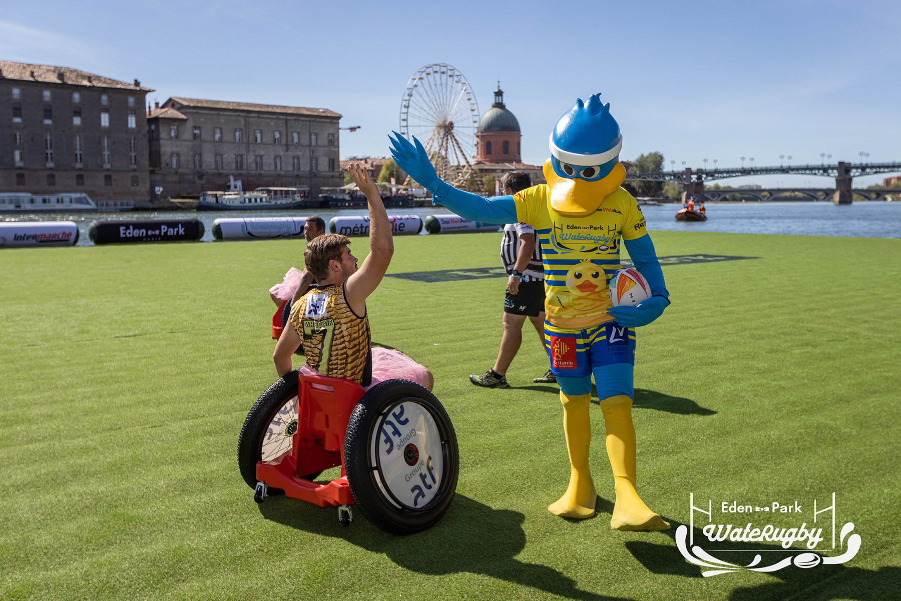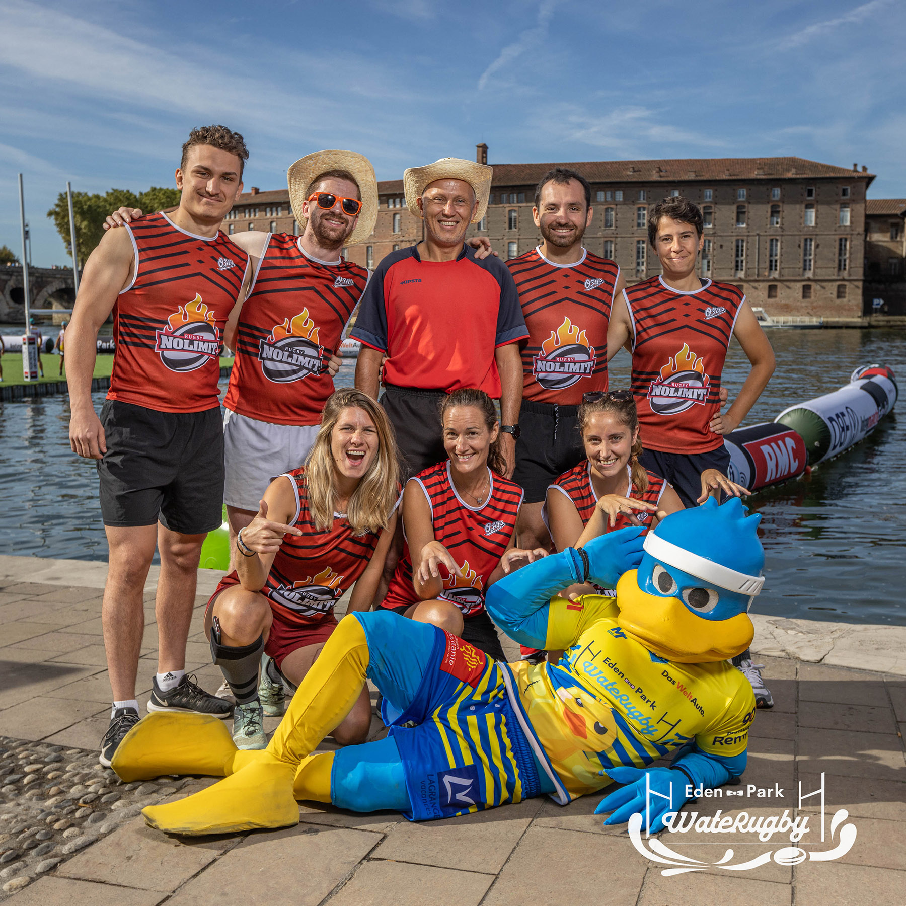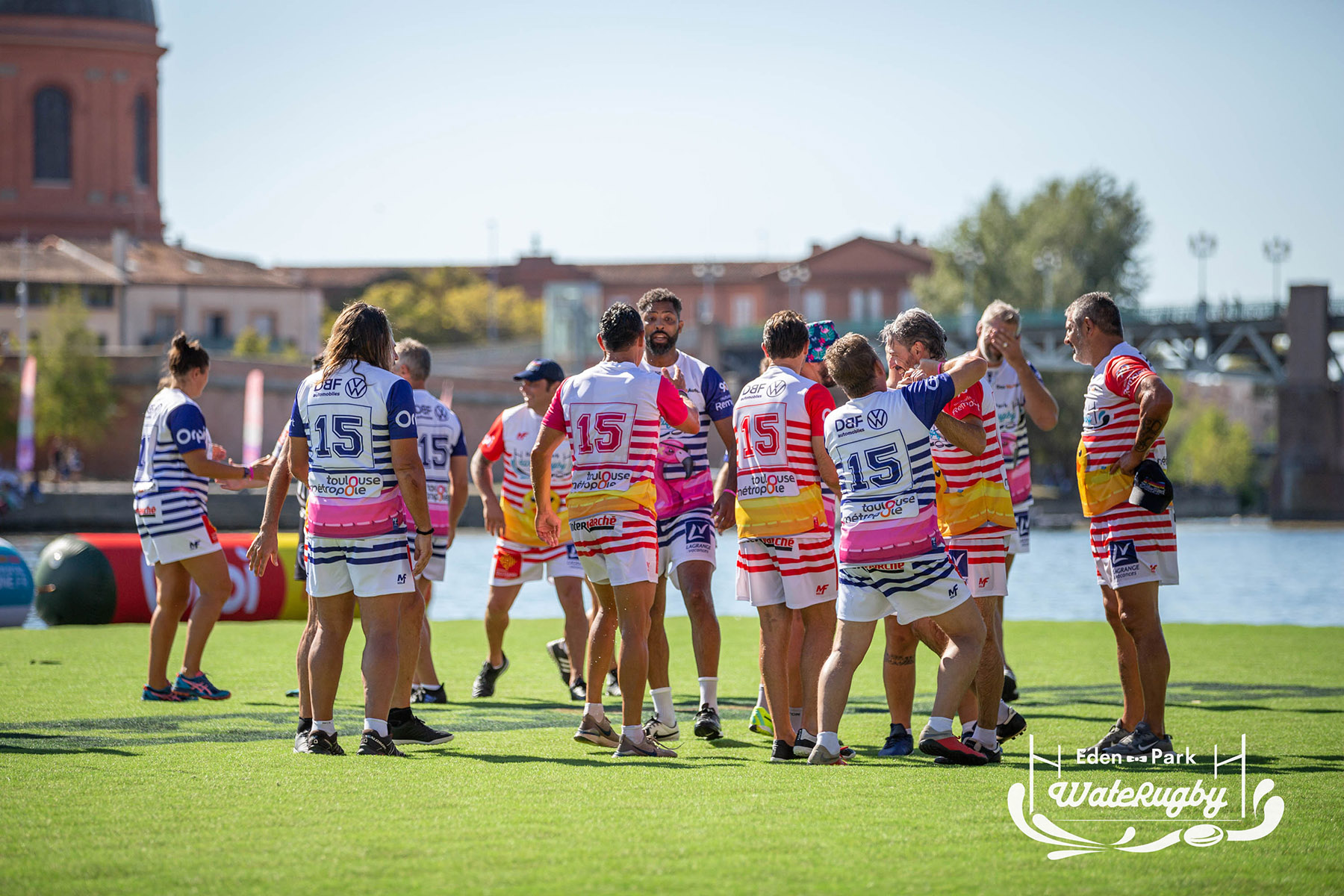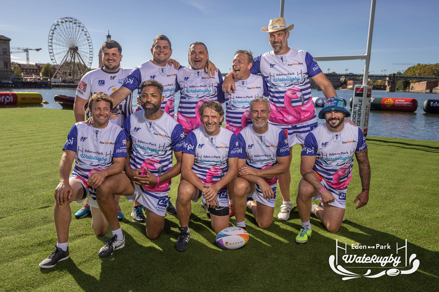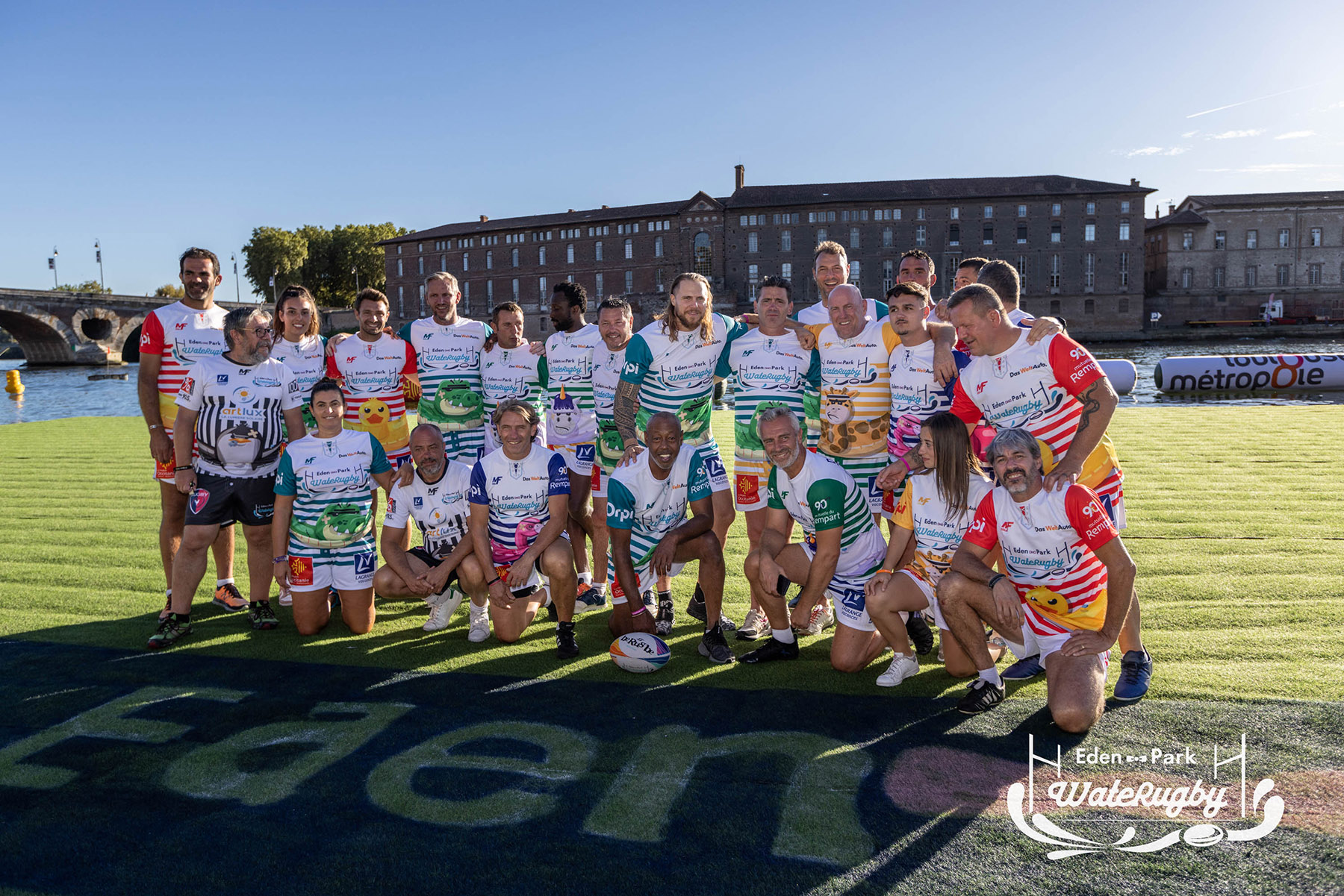 Compétition de rugby sur une barge sur la Garonne en plein centre de Toulouse