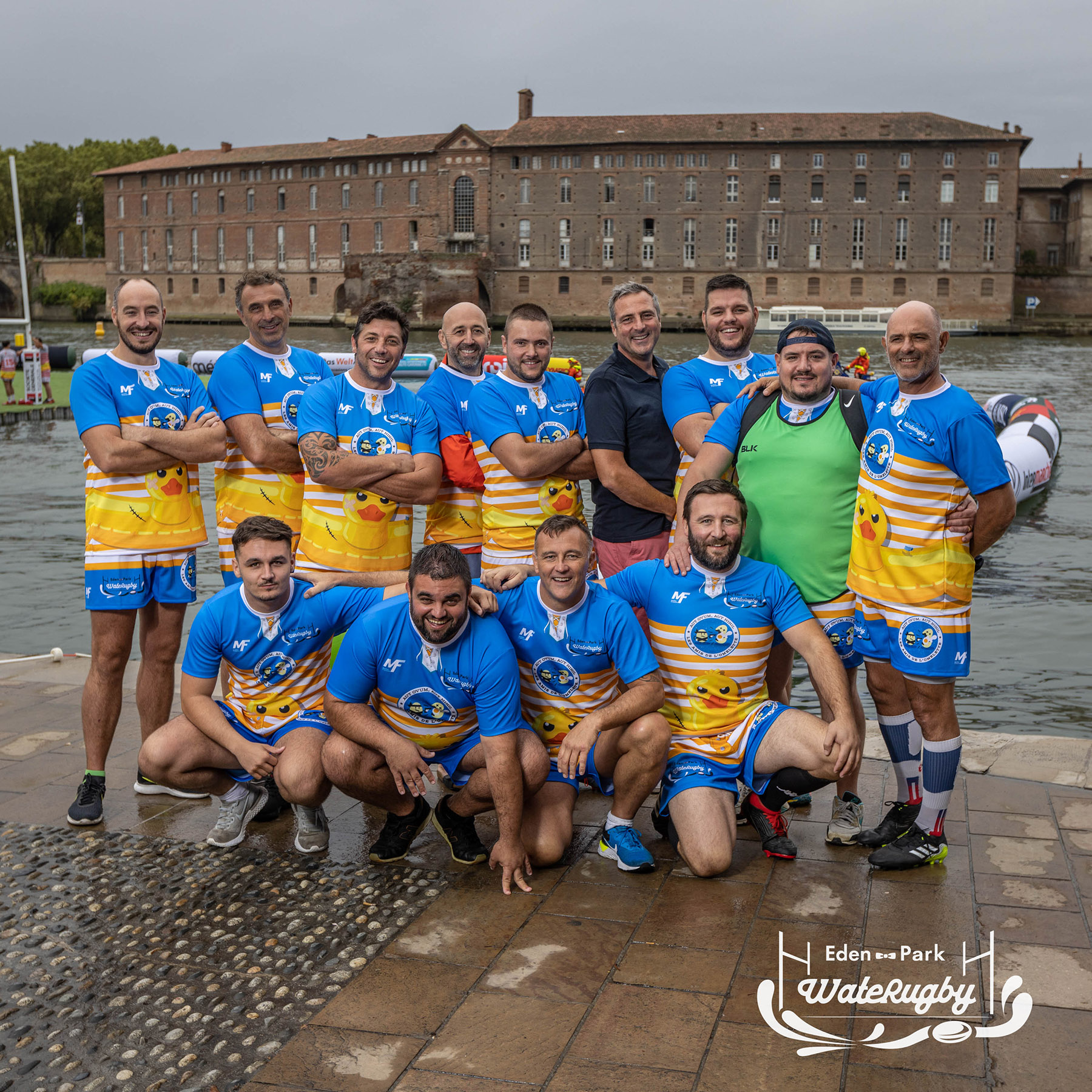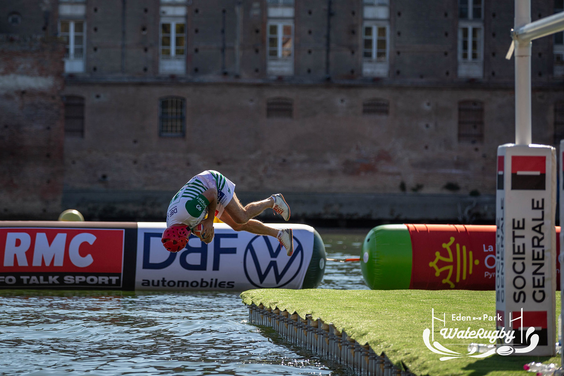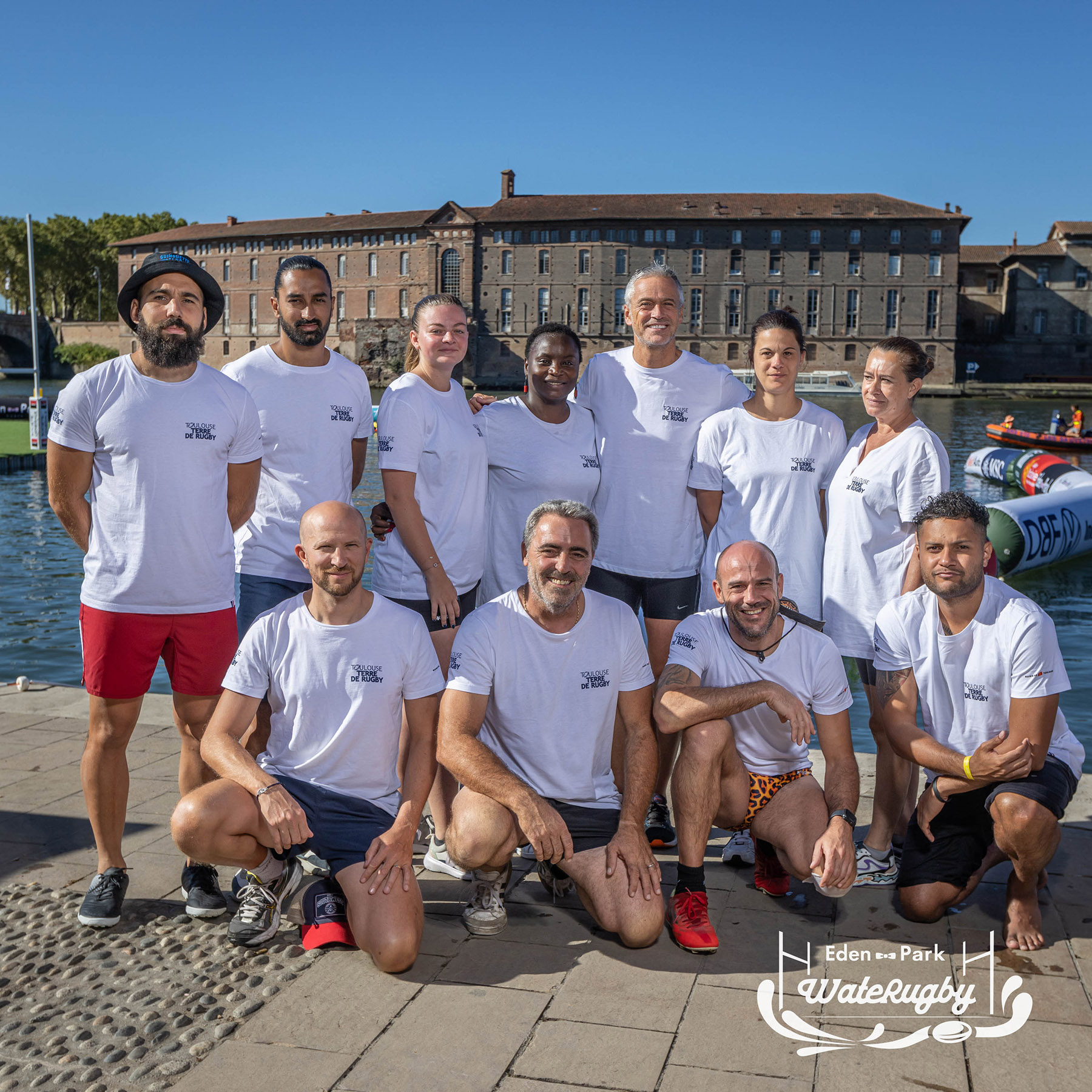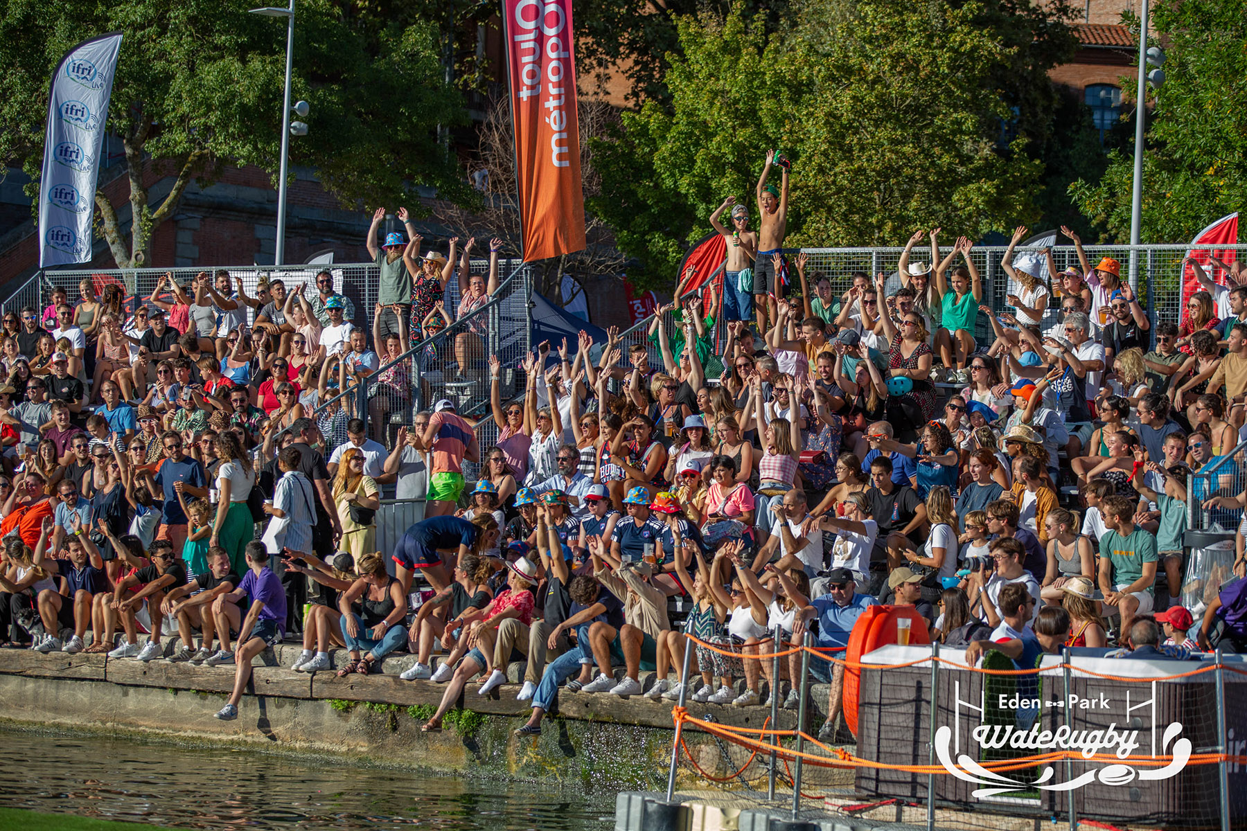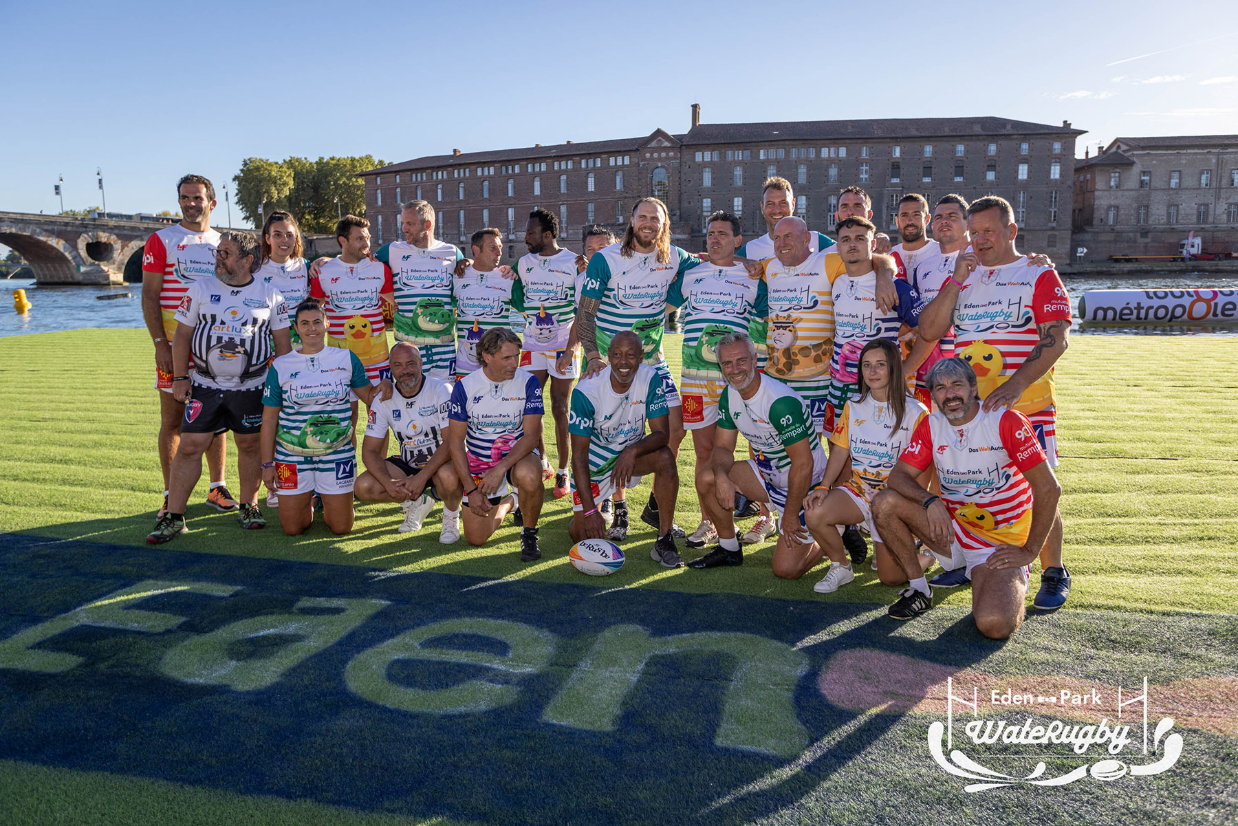 Compétition de rugby sur une barge sur la Garonne en plein centre de Toulouse