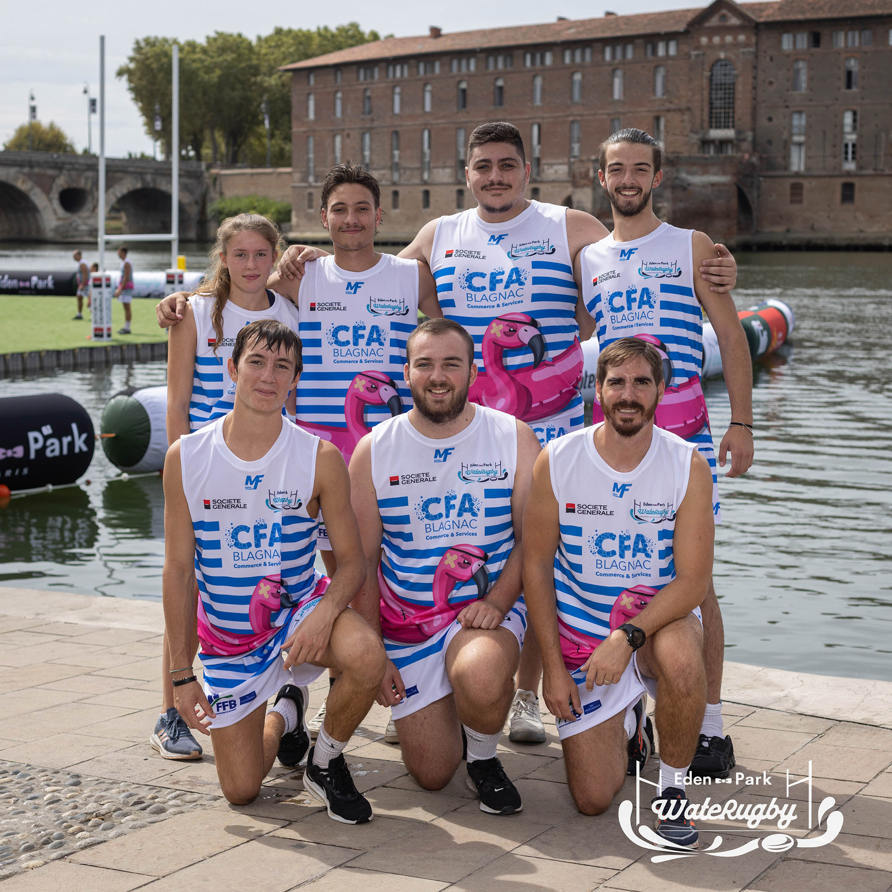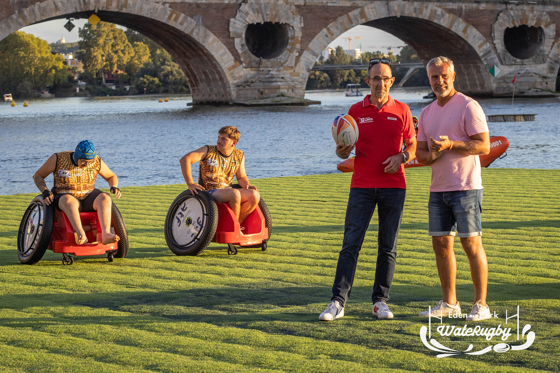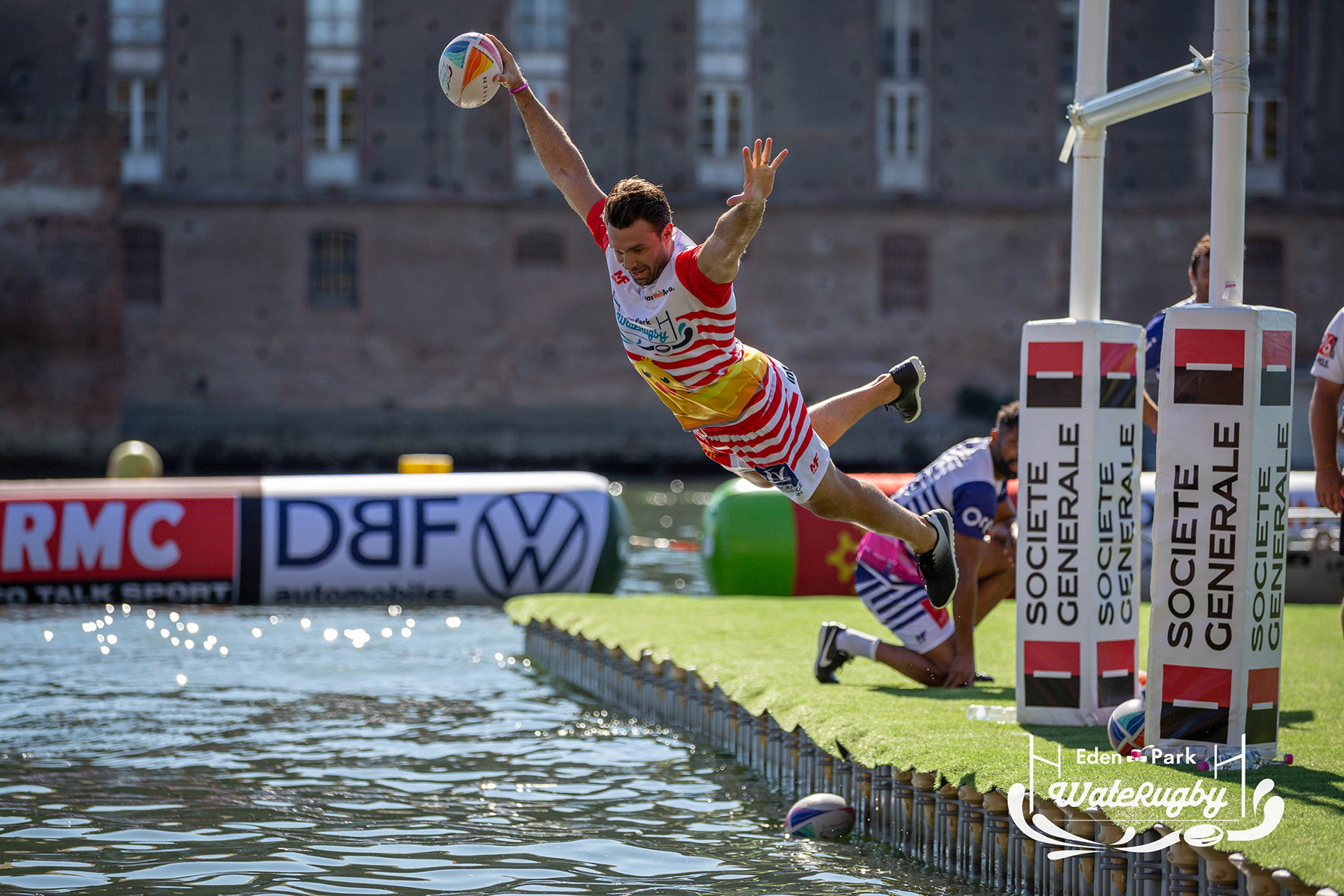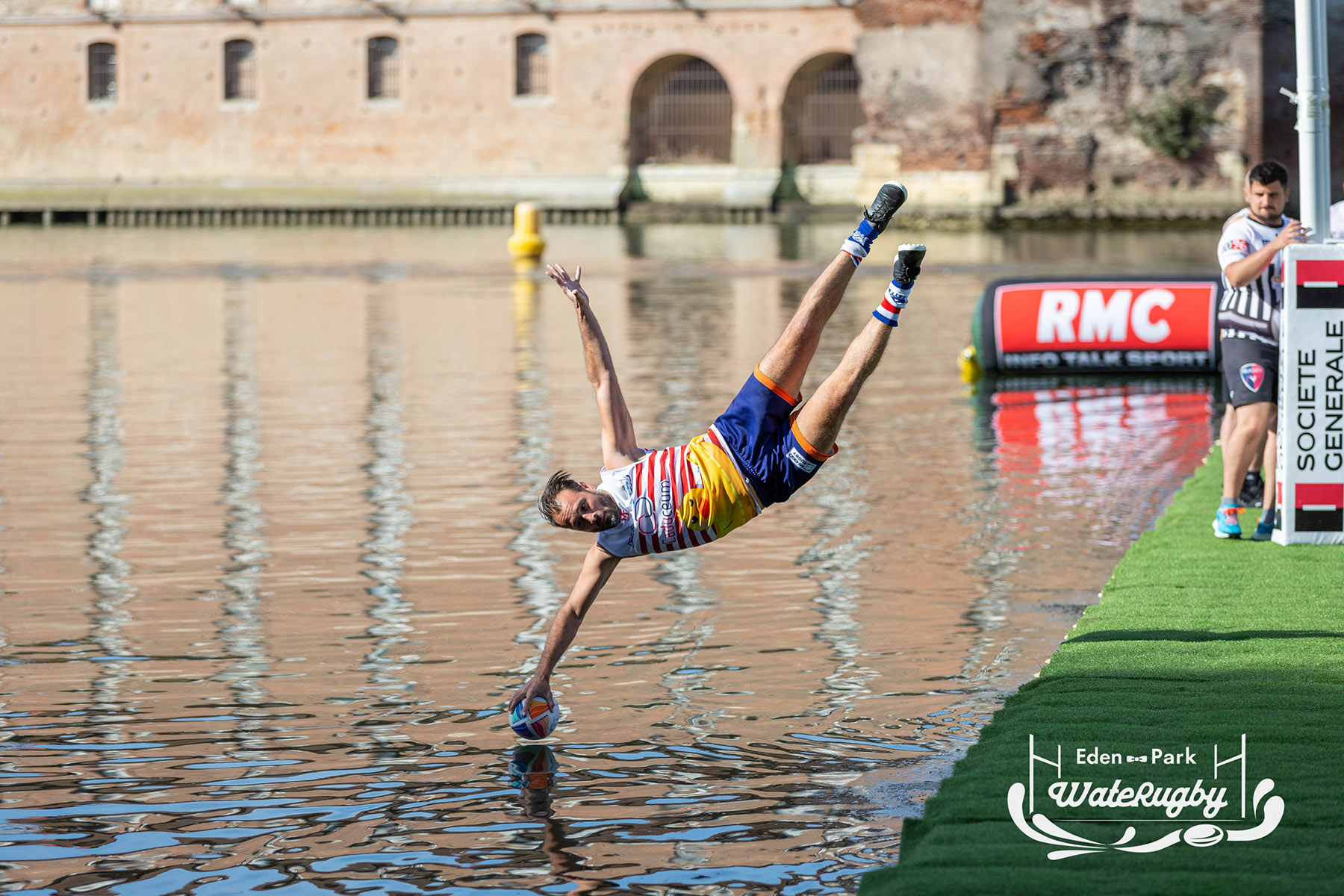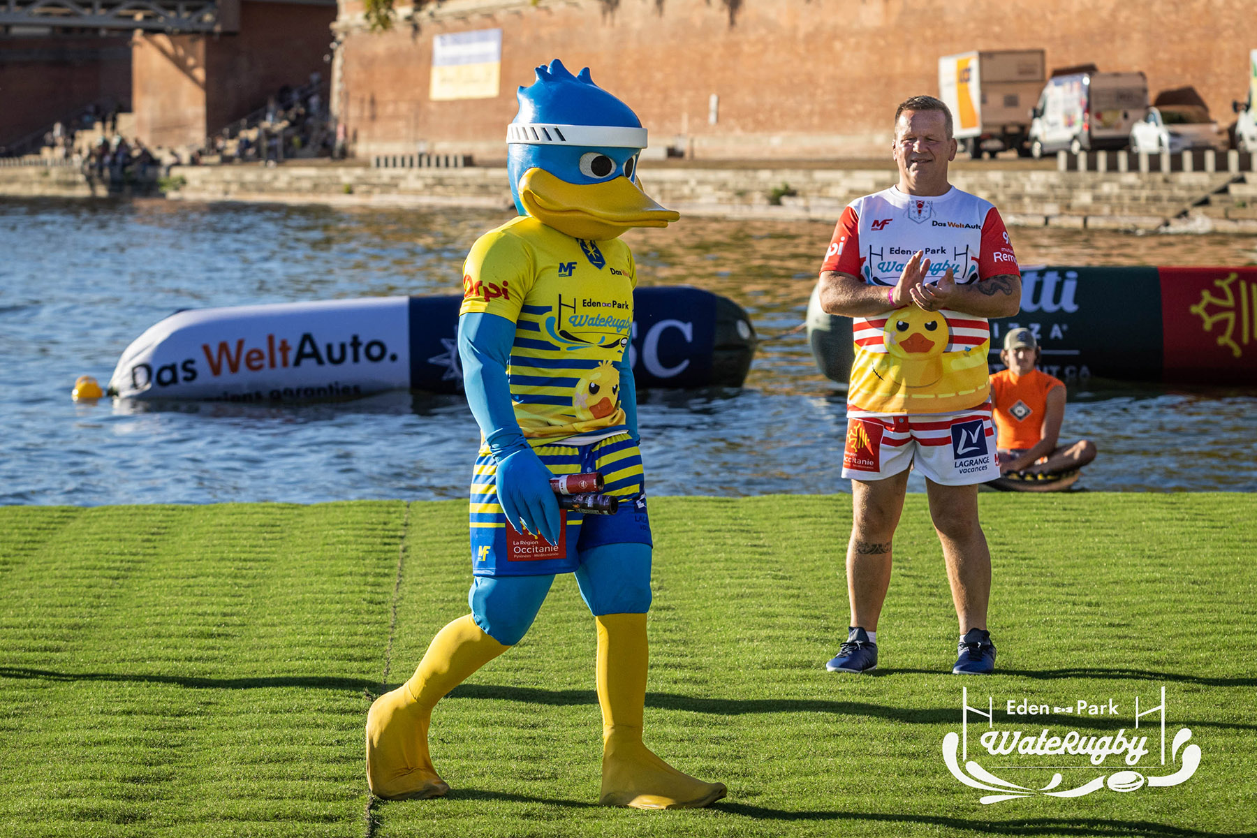 Compétition de rugby sur une barge sur la Garonne en plein centre de Toulouse