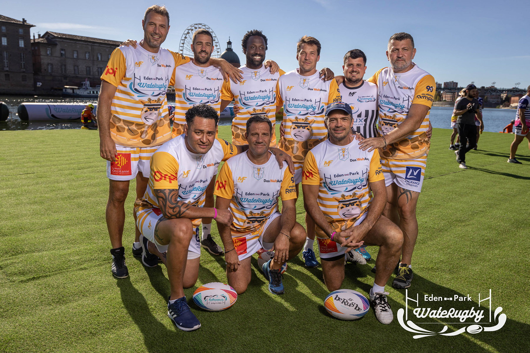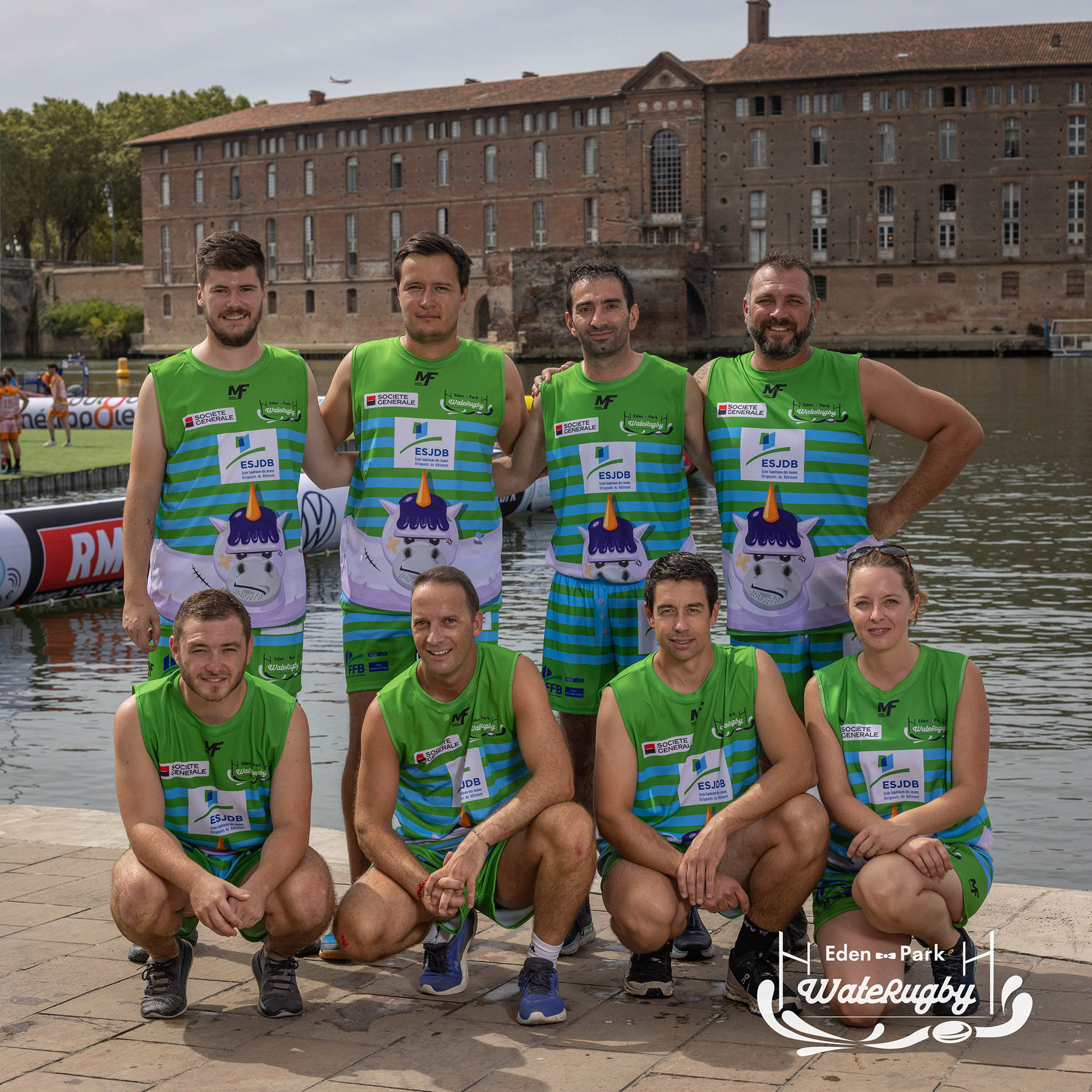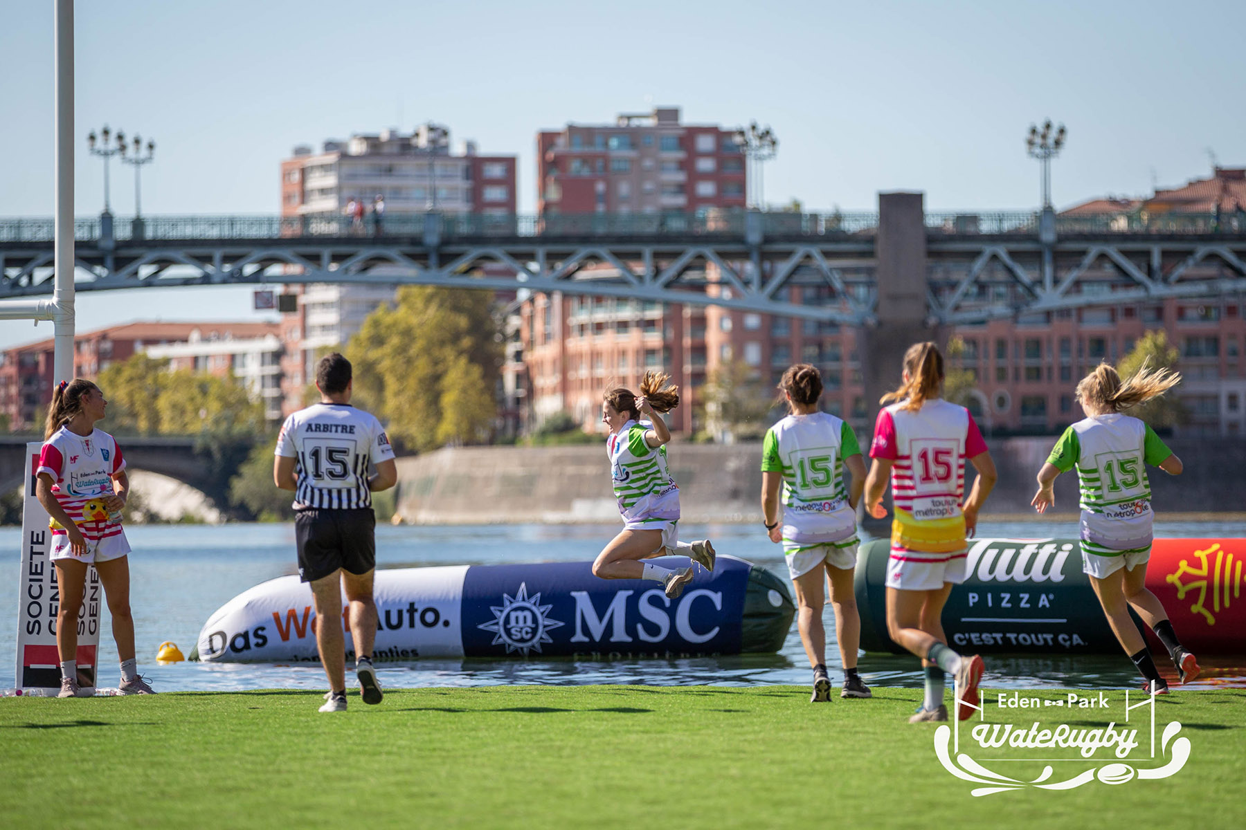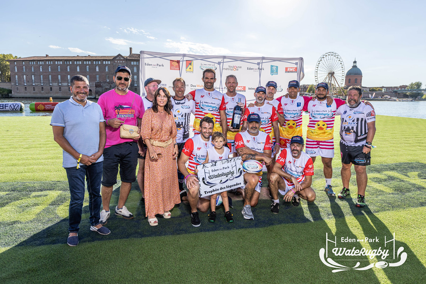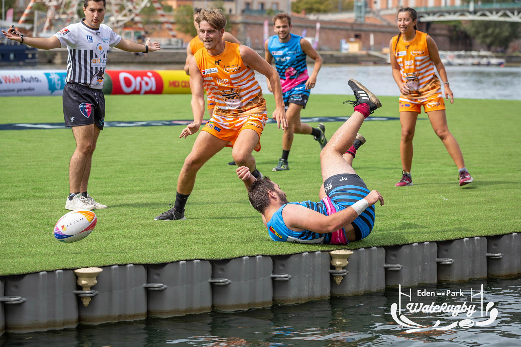 Compétition de rugby sur une barge sur la Garonne en plein centre de Toulouse