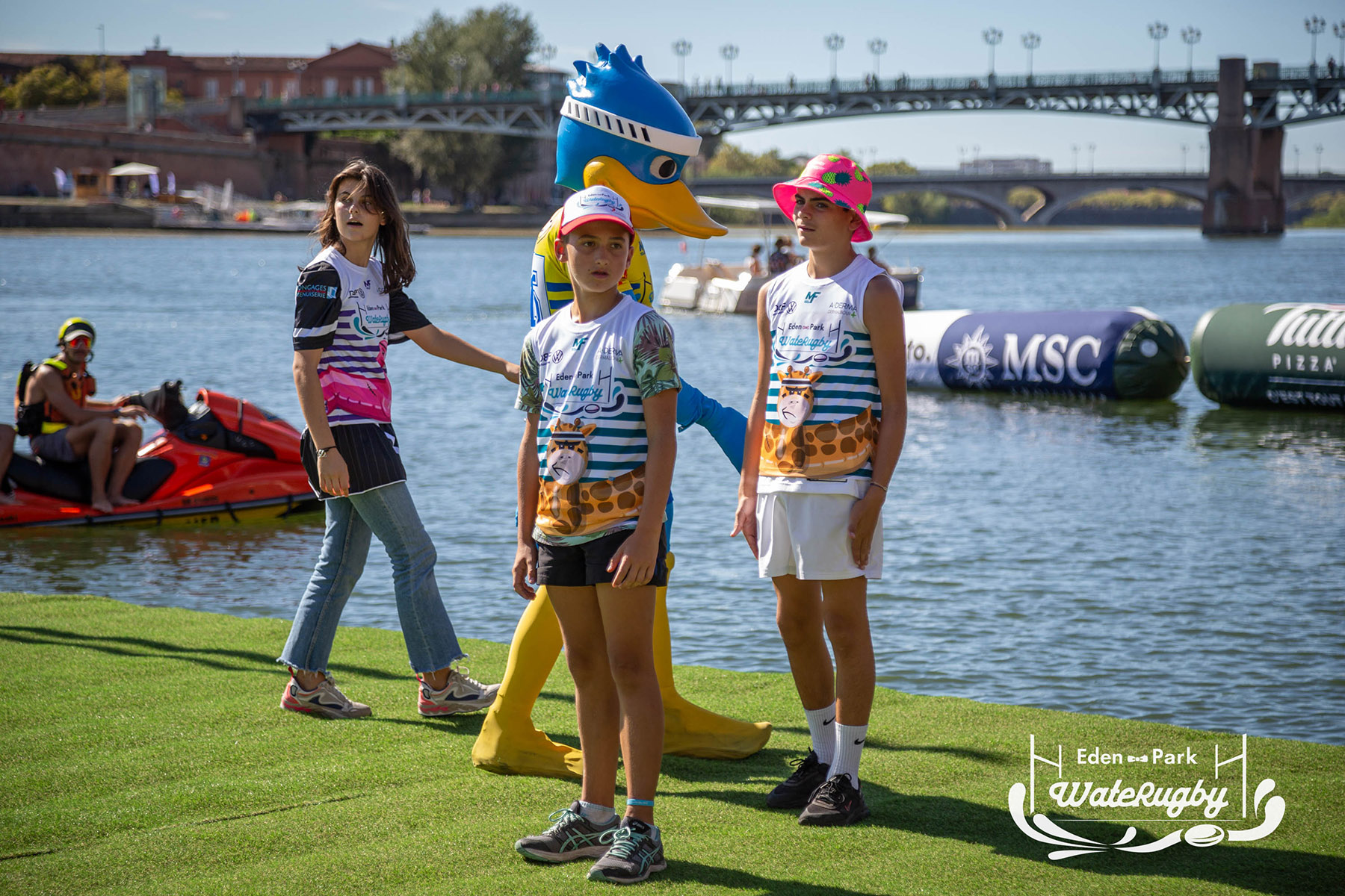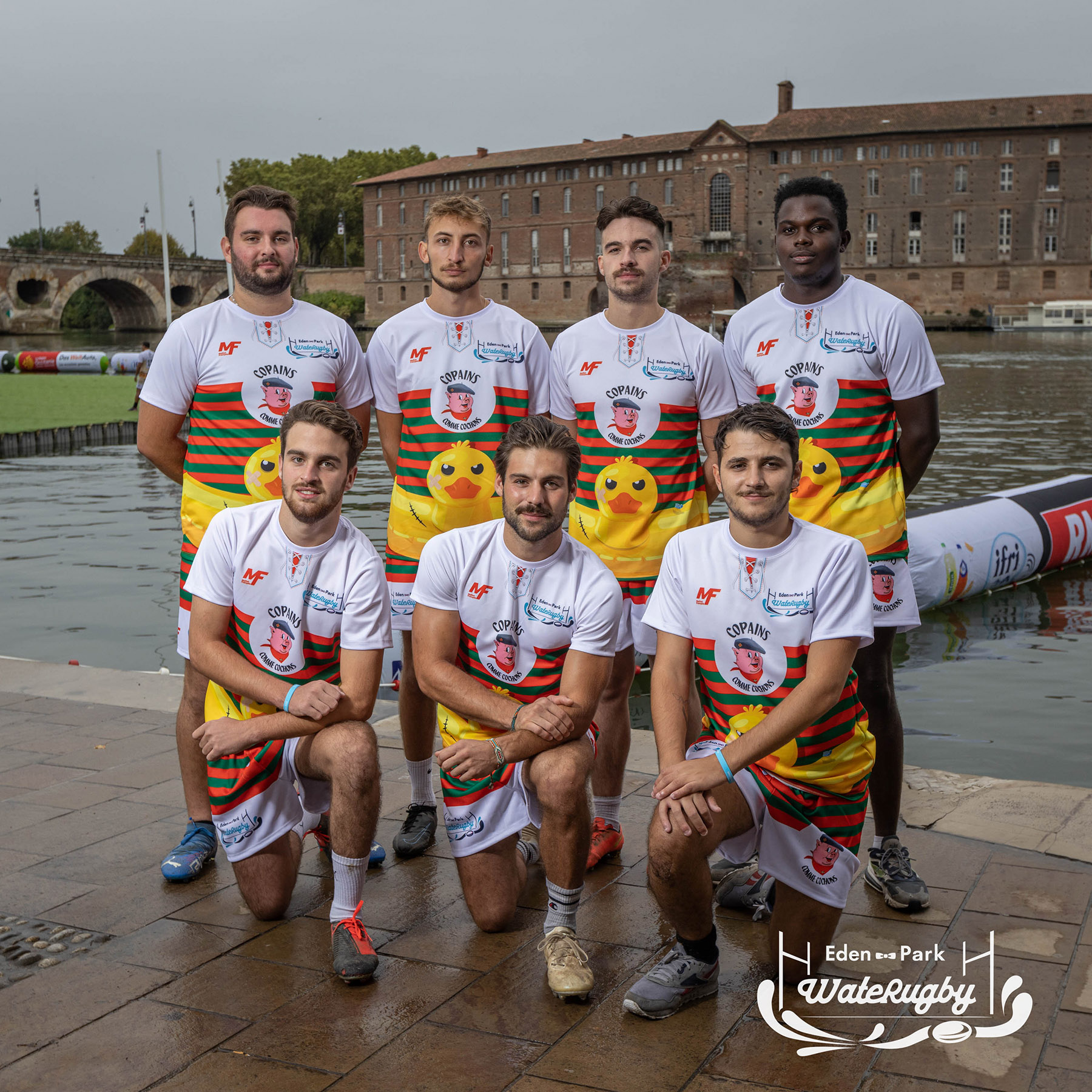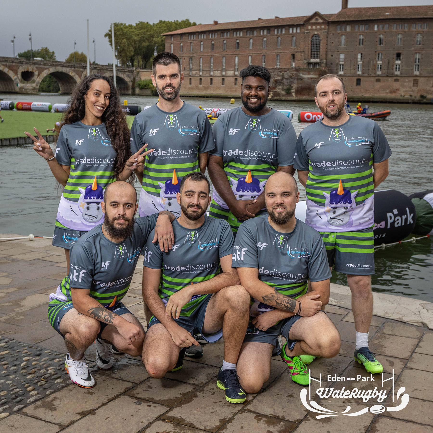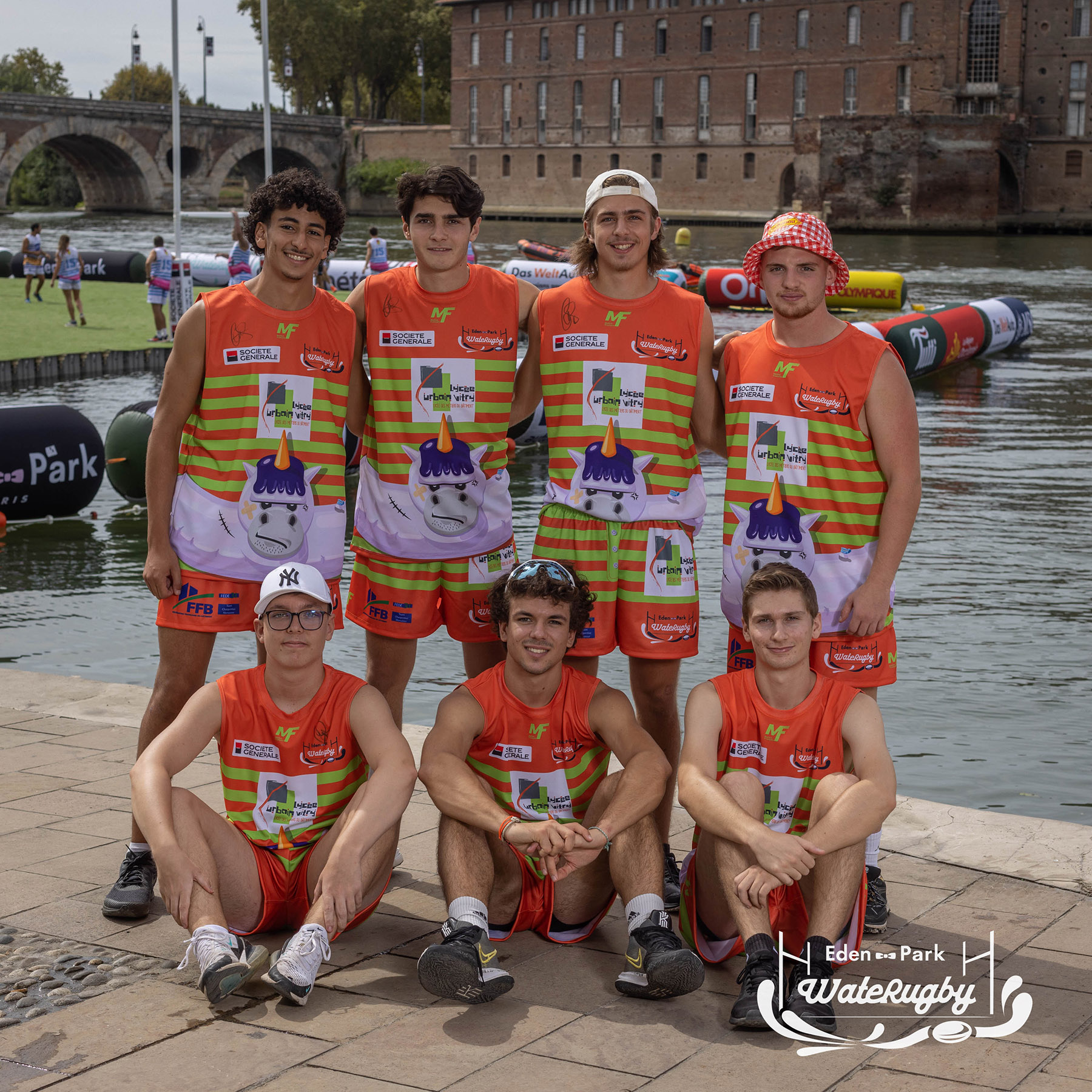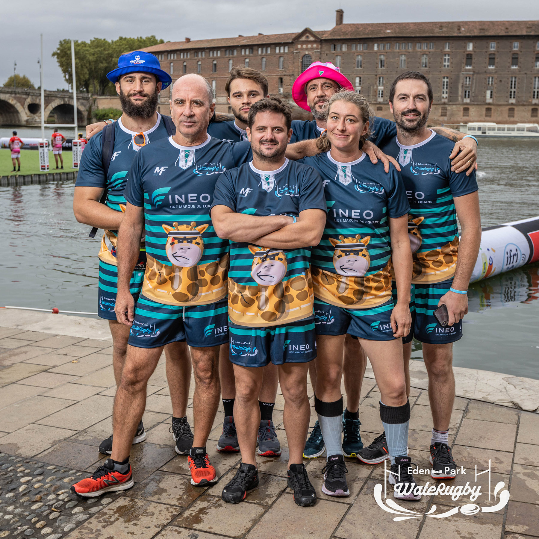 Compétition de rugby sur une barge sur la Garonne en plein centre de Toulouse