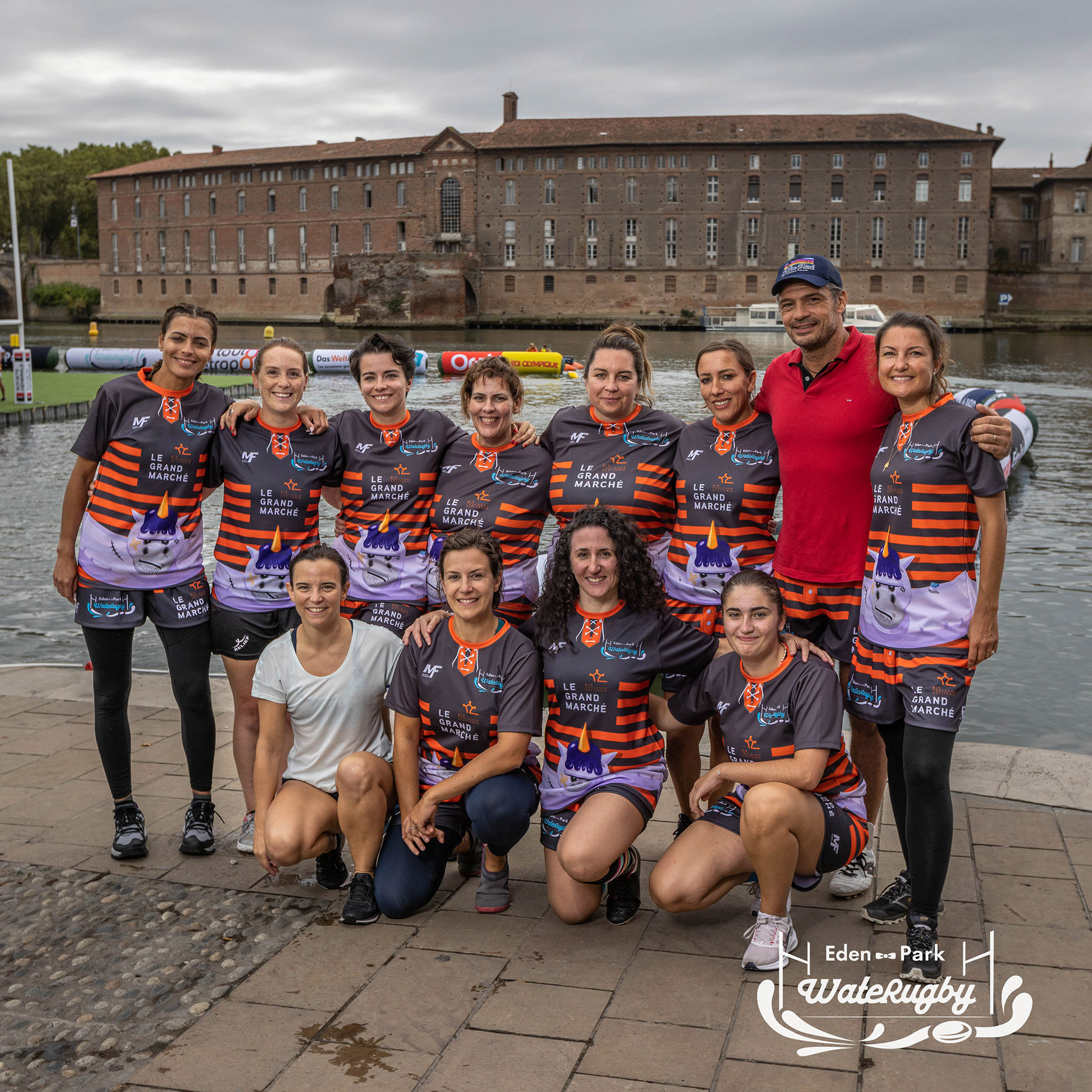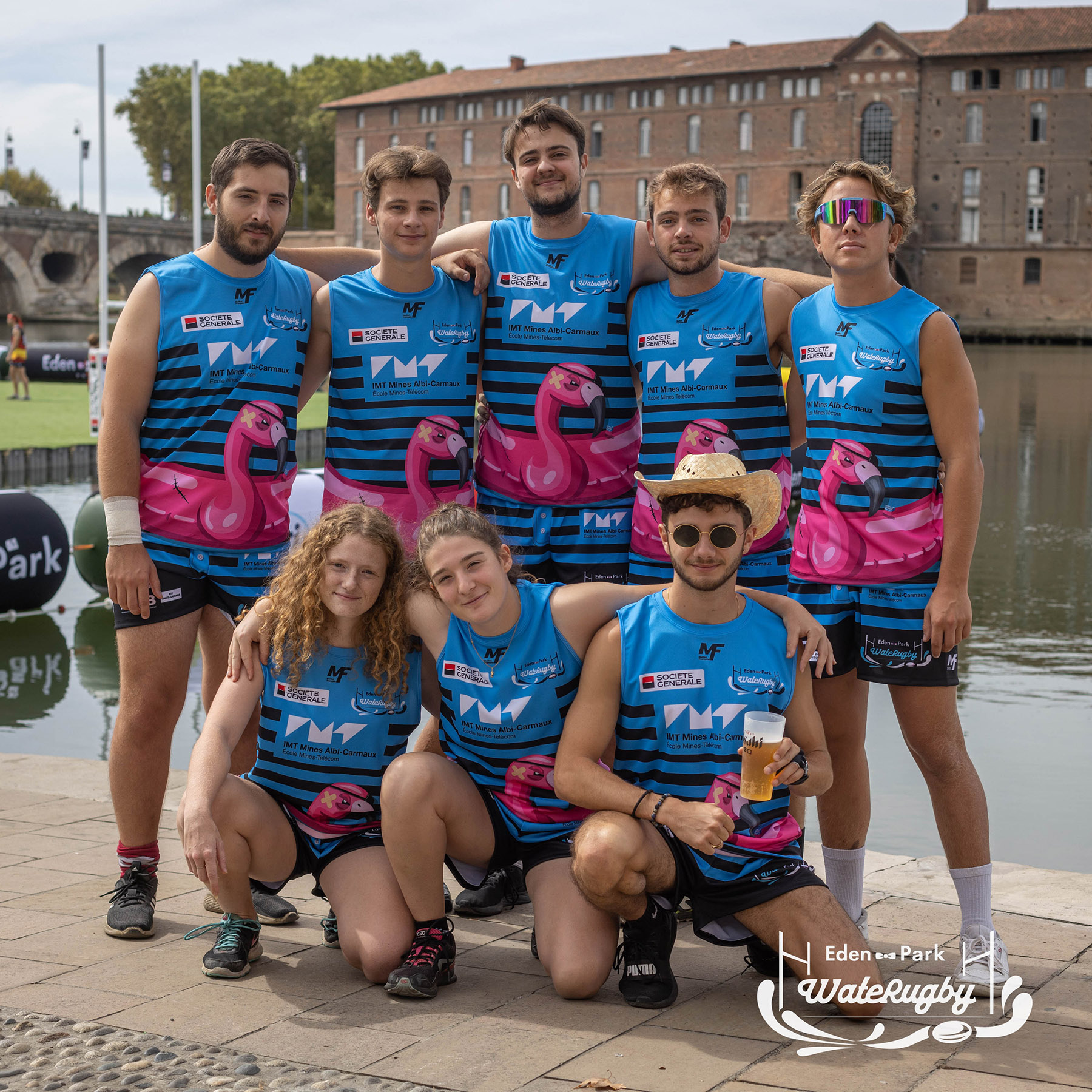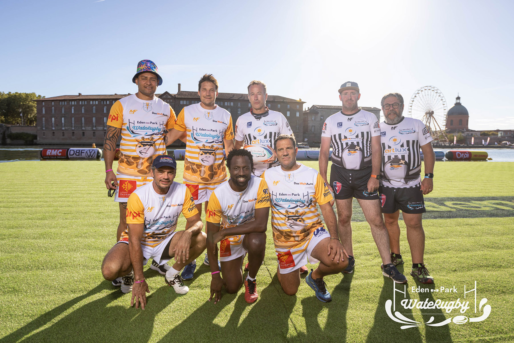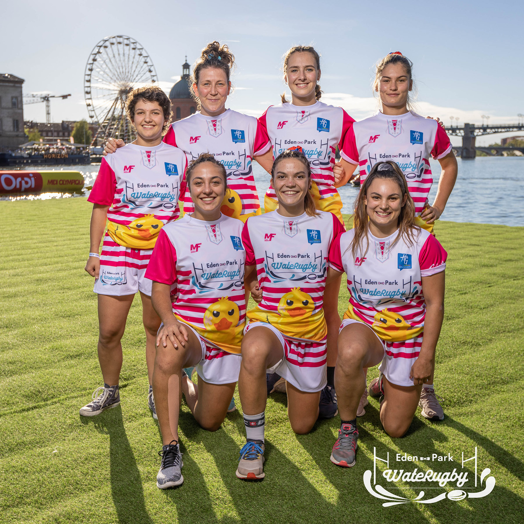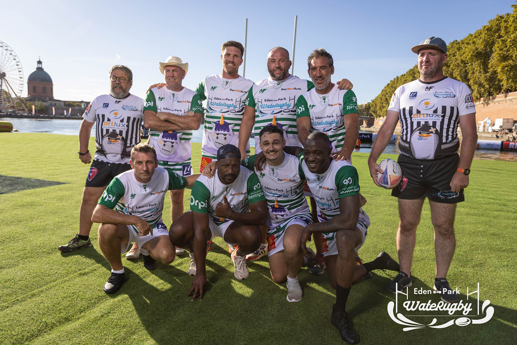 Compétition de rugby sur une barge sur la Garonne en plein centre de Toulouse