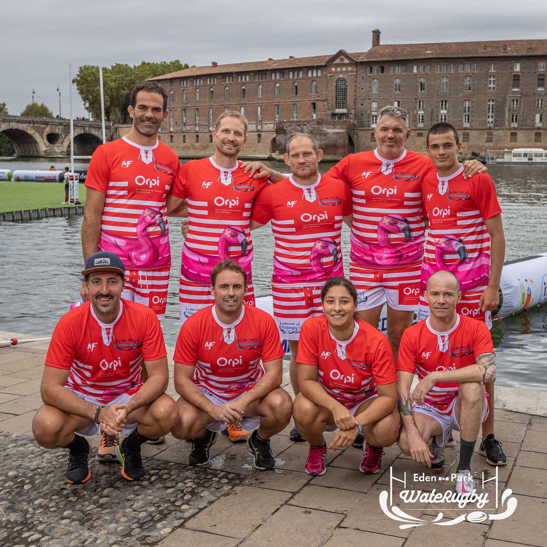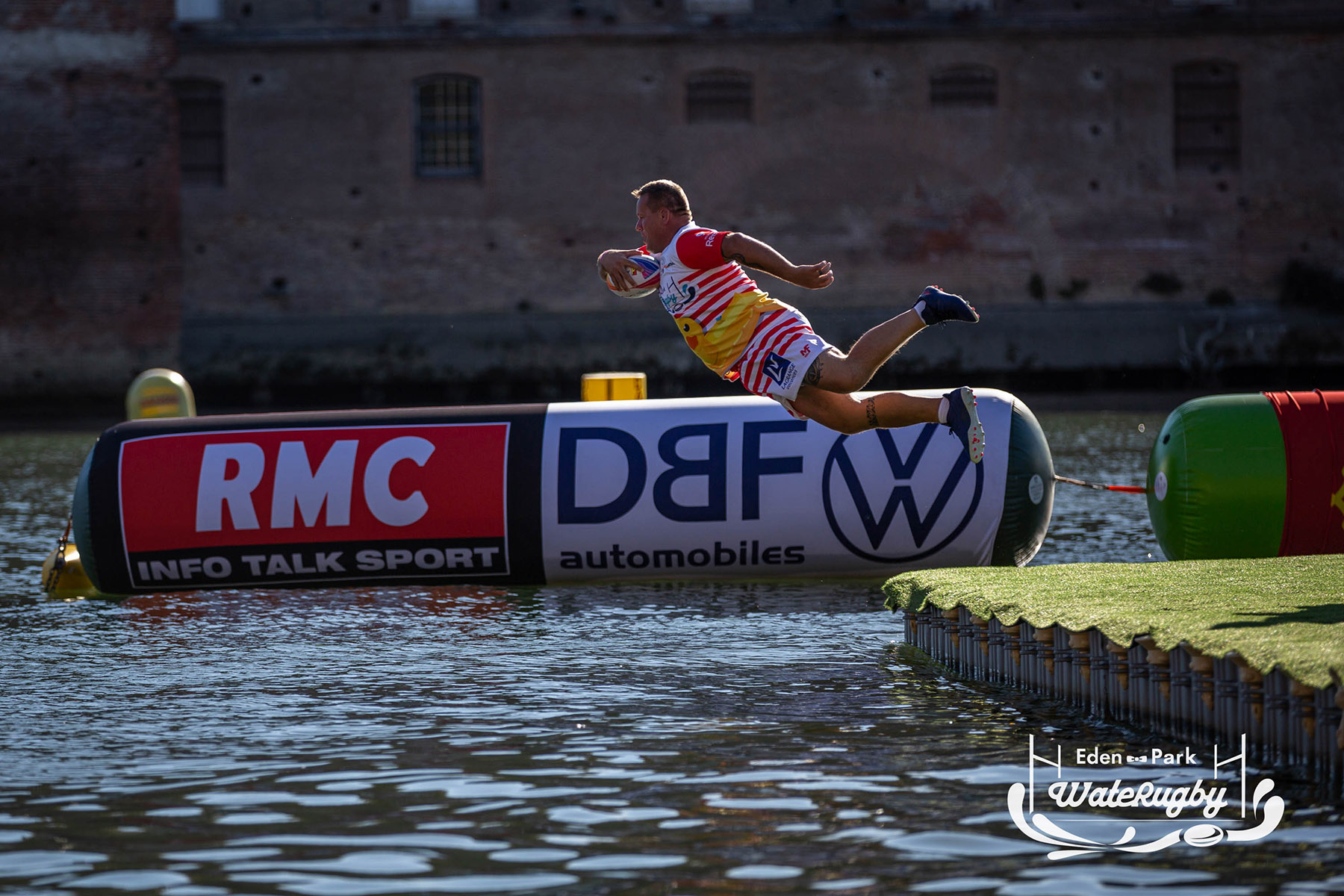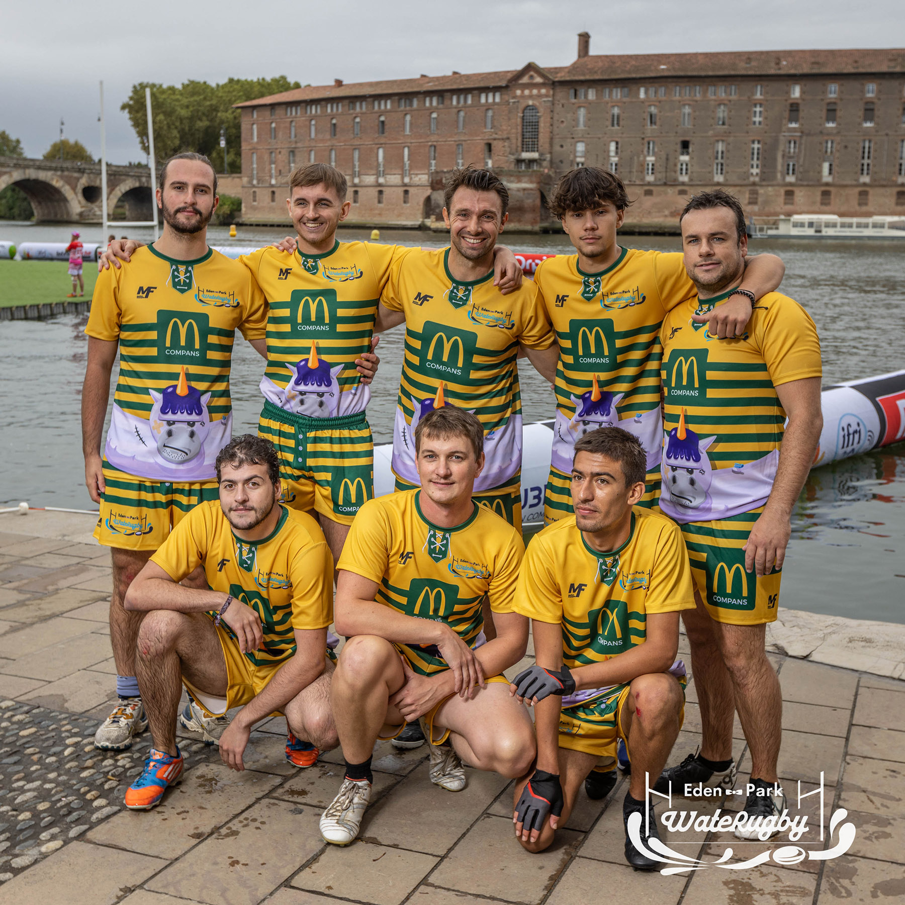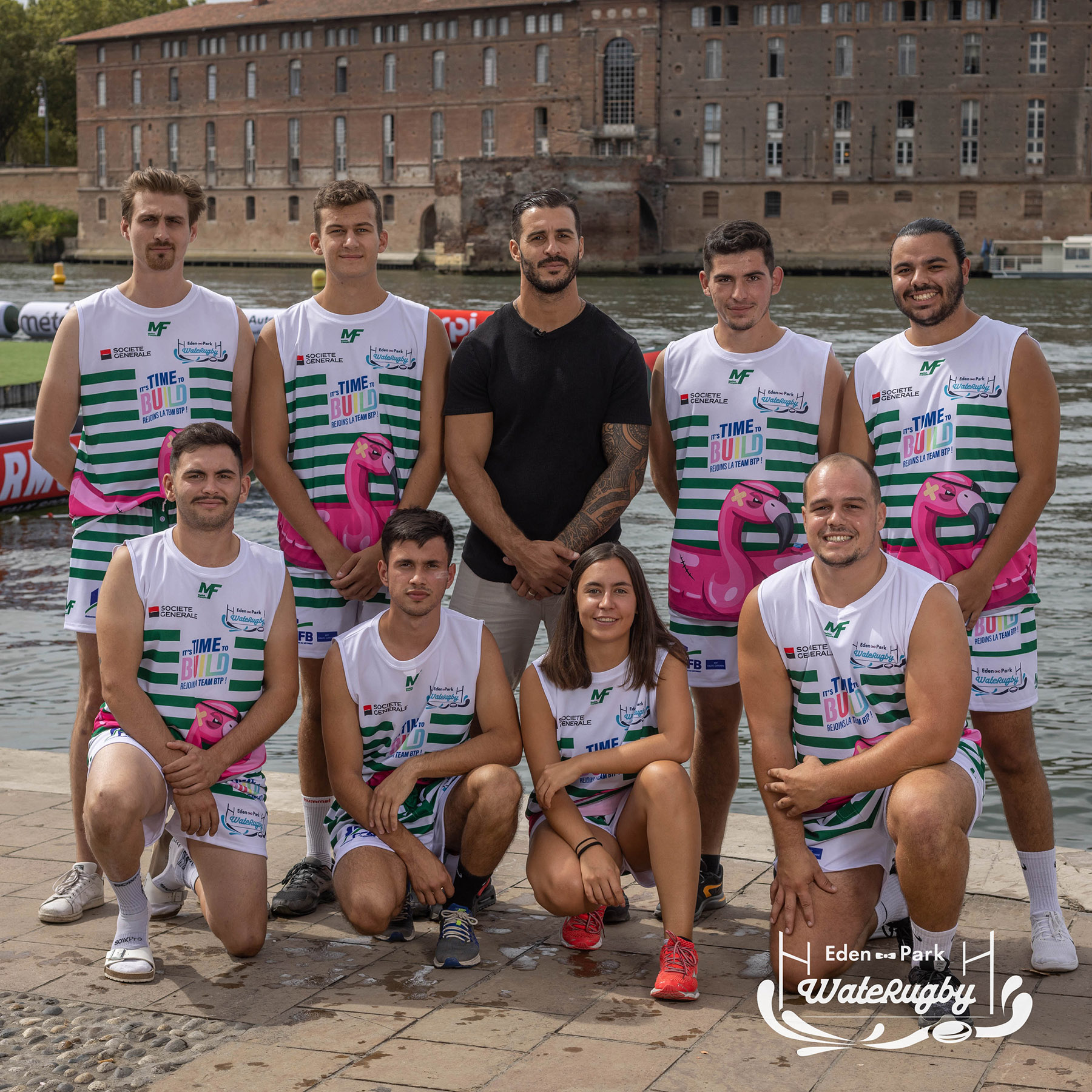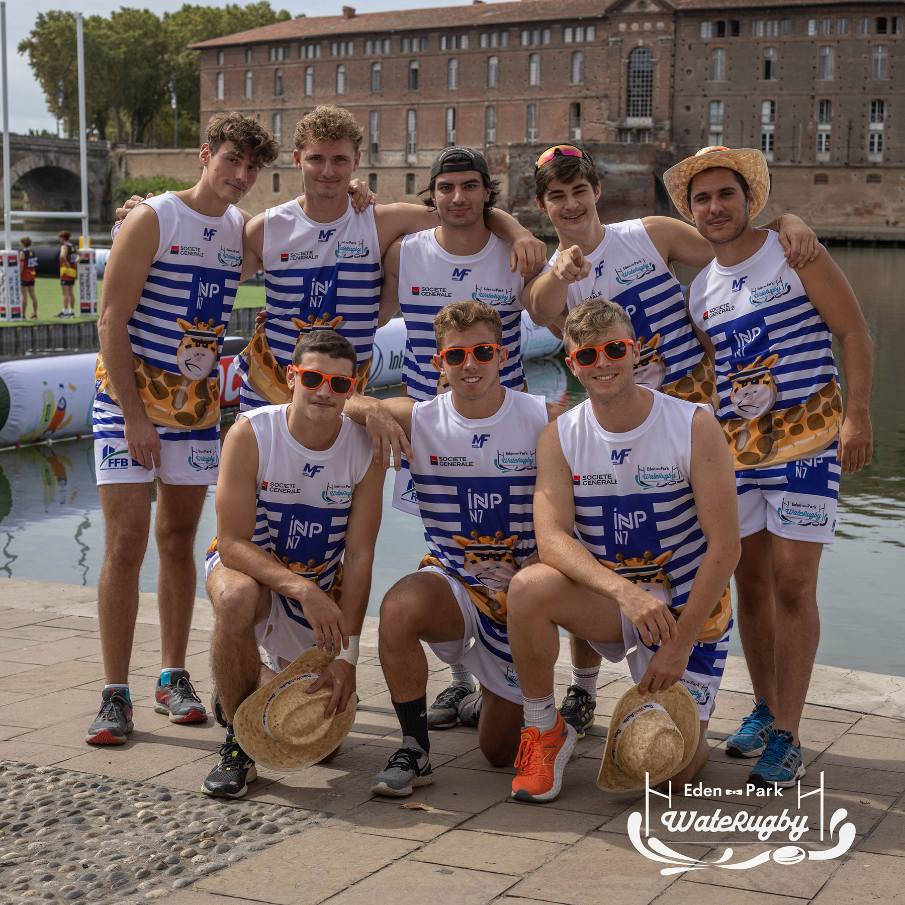 Compétition de rugby sur une barge sur la Garonne en plein centre de Toulouse