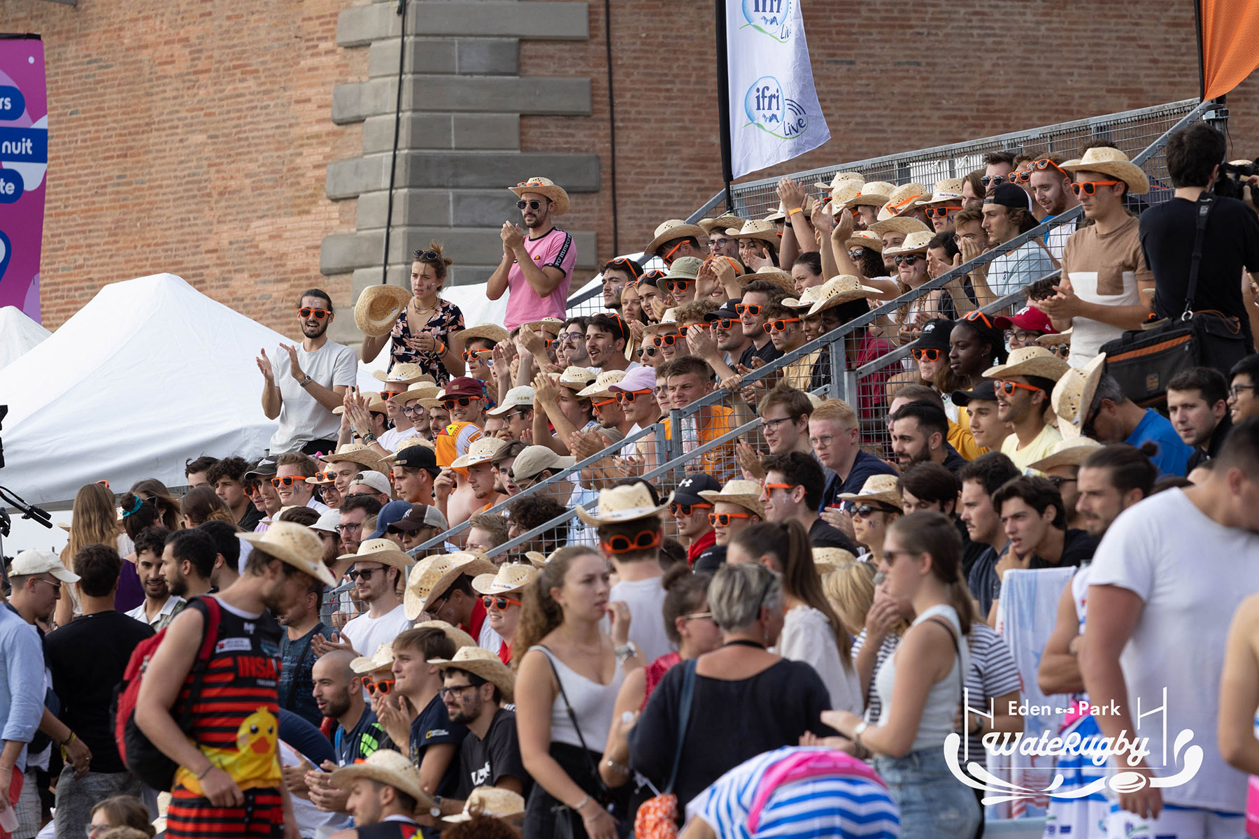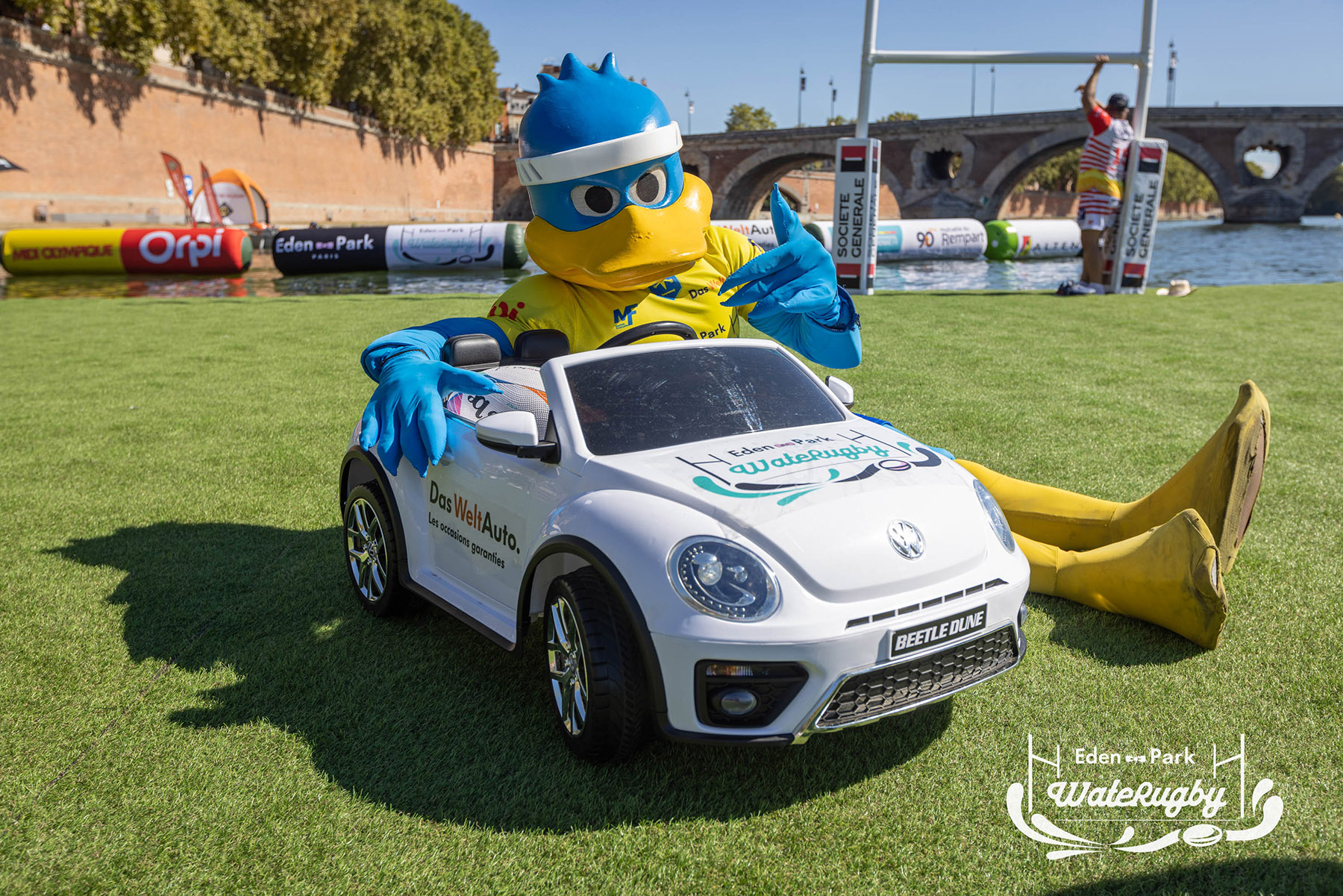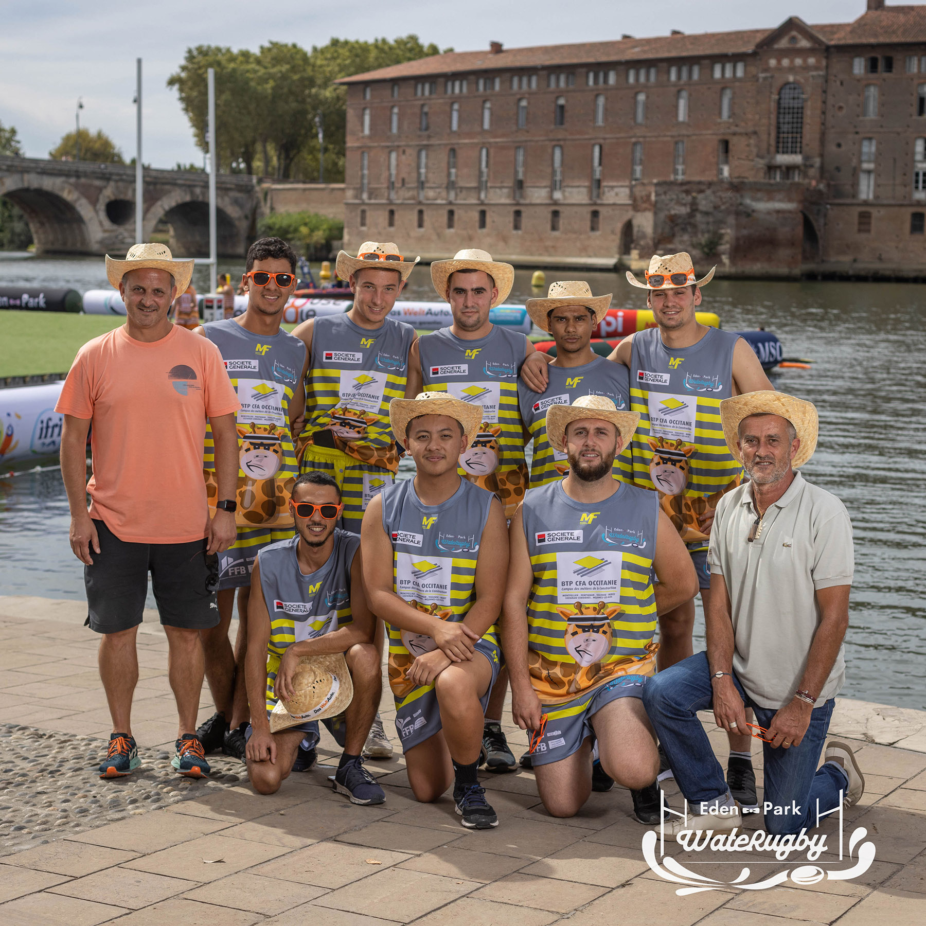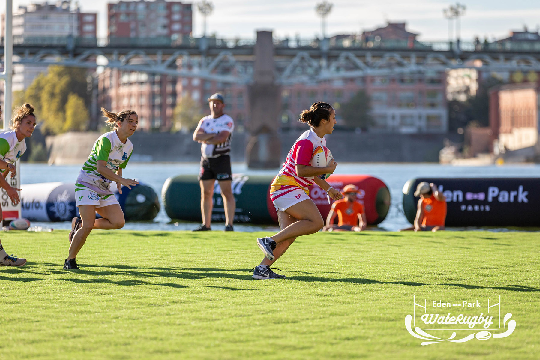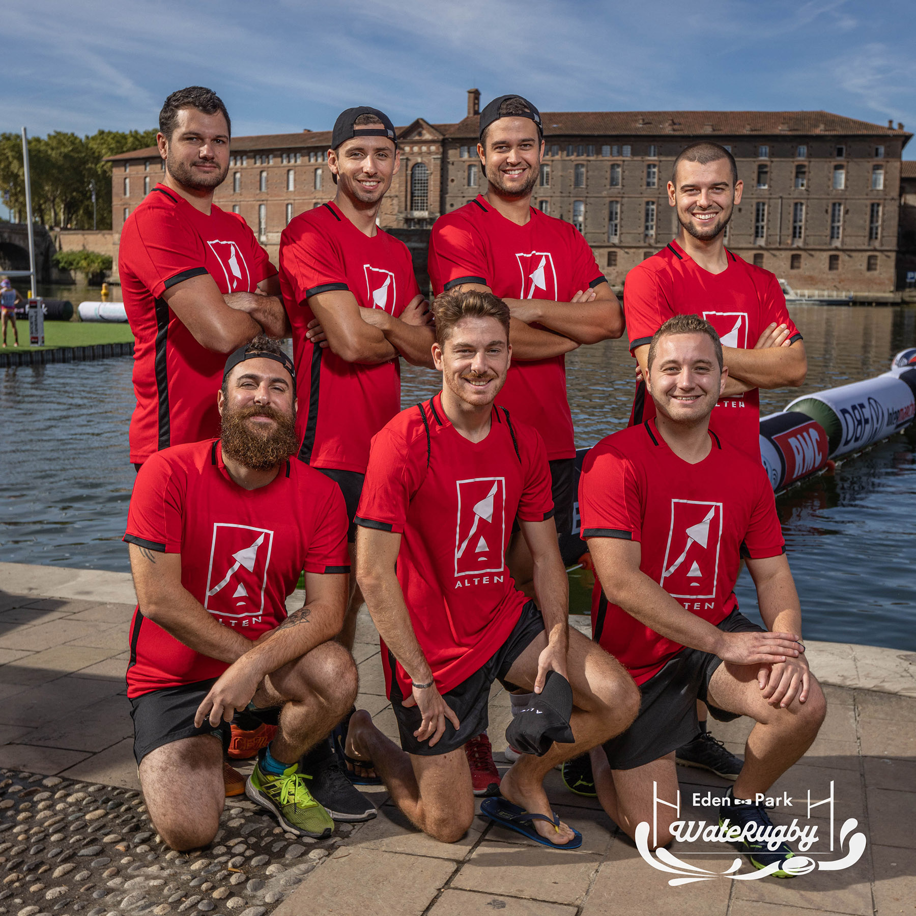 Compétition de rugby sur une barge sur la Garonne en plein centre de Toulouse