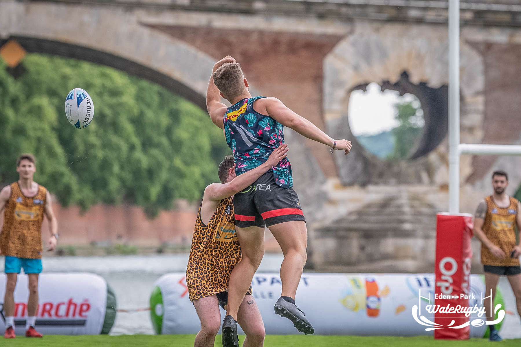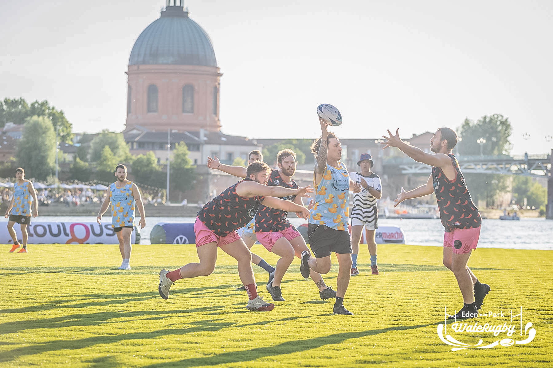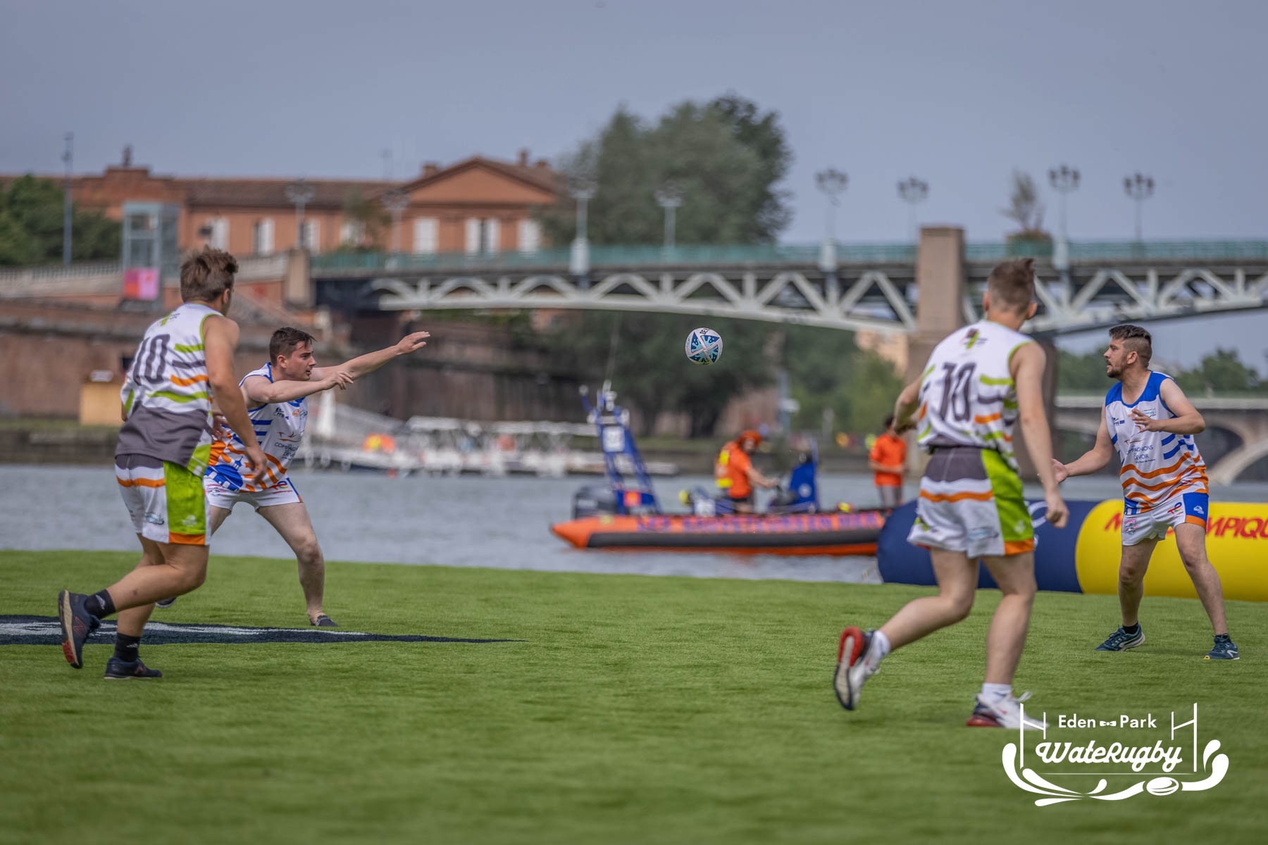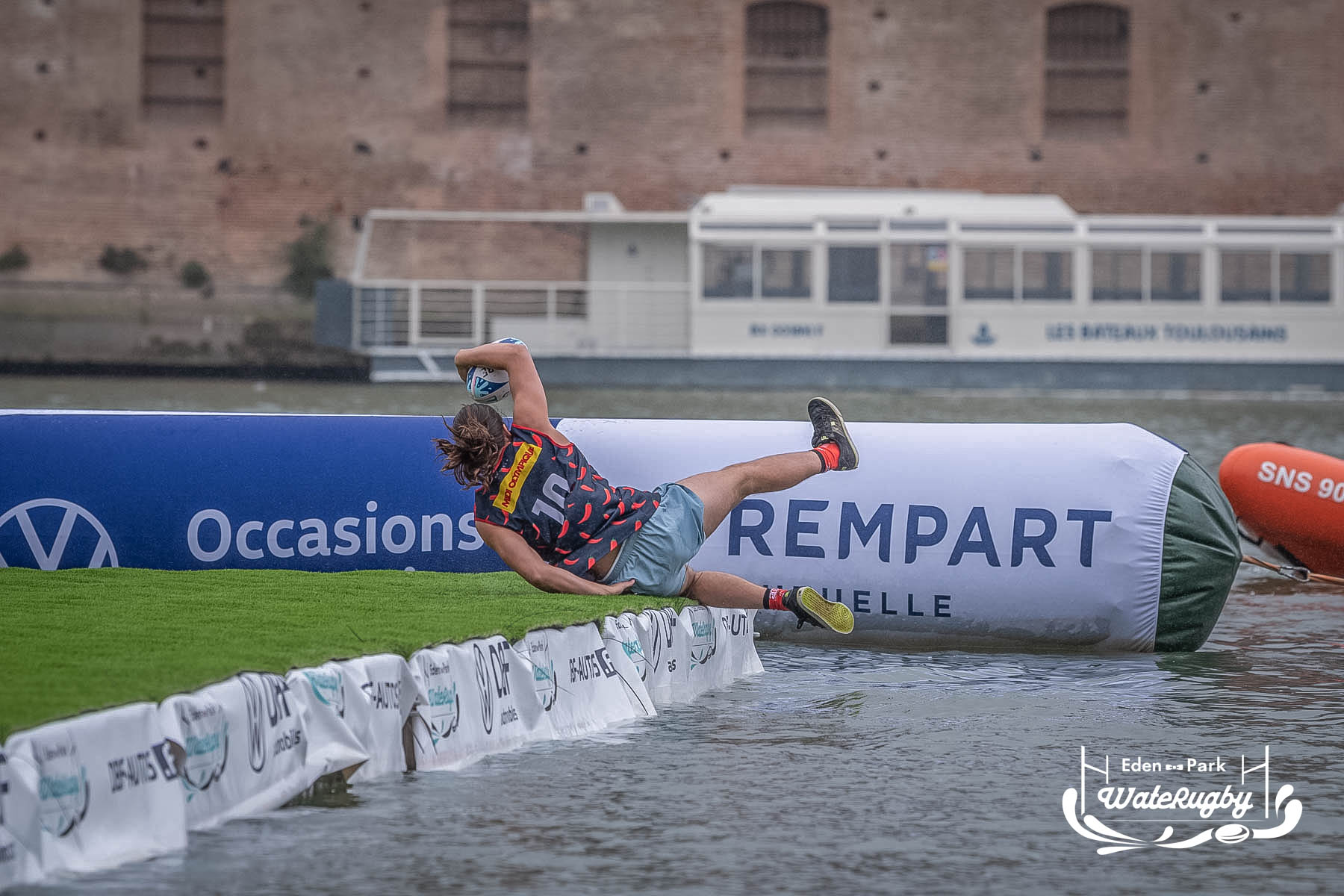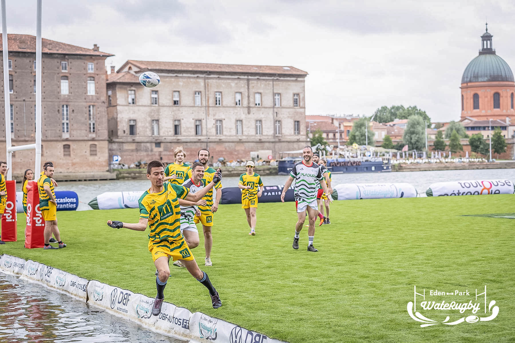 Compétition de rugby sur une barge sur la Garonne en plein centre de Toulouse