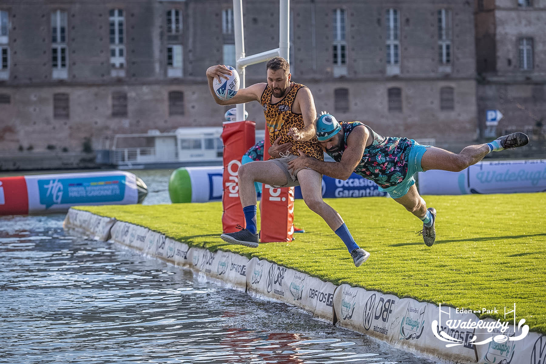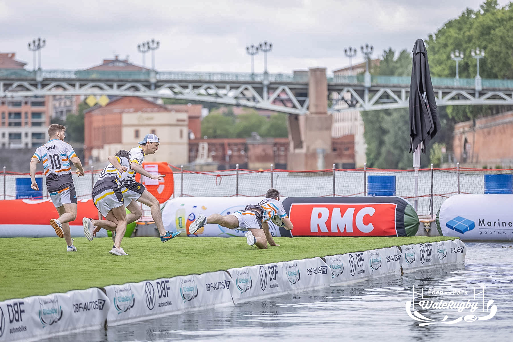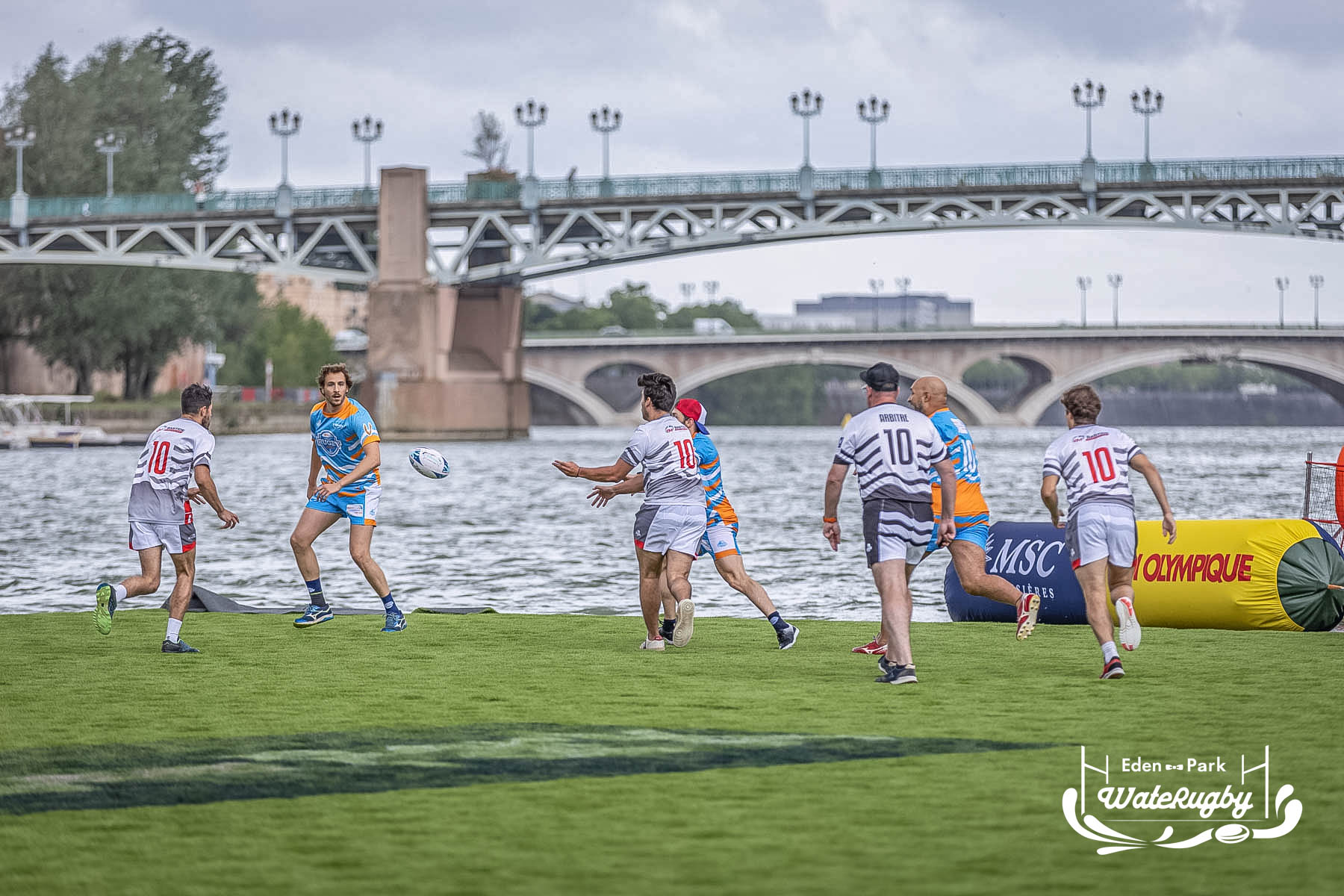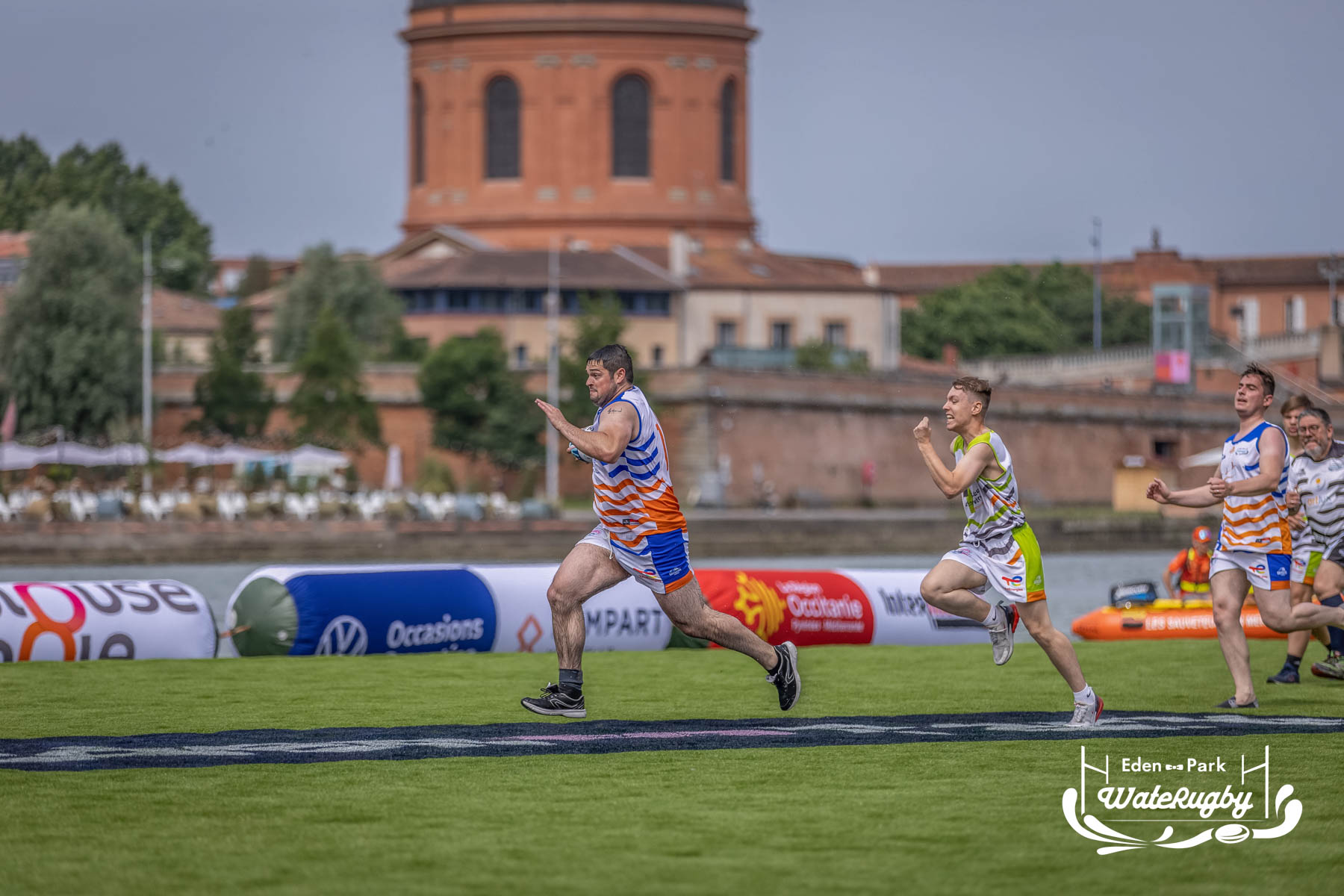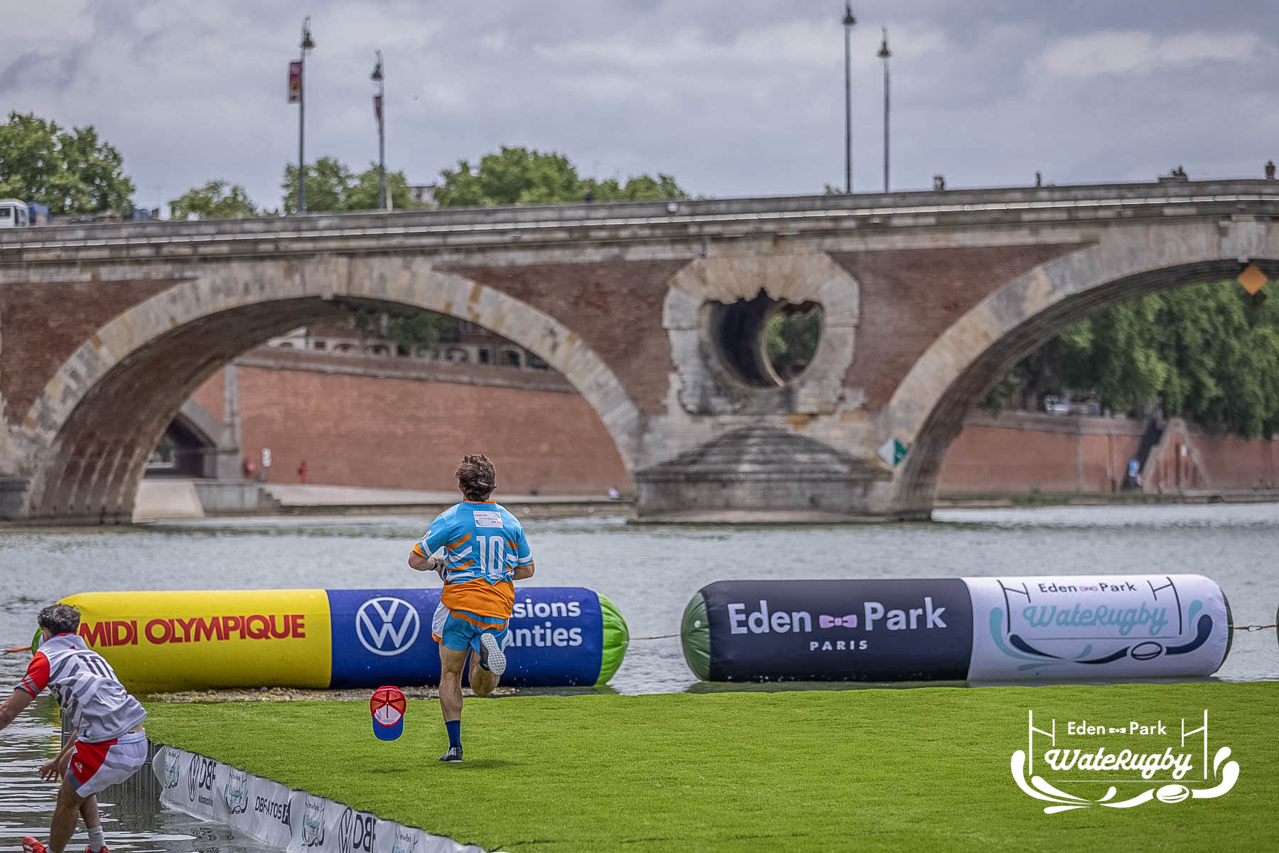 Compétition de rugby sur une barge sur la Garonne en plein centre de Toulouse
