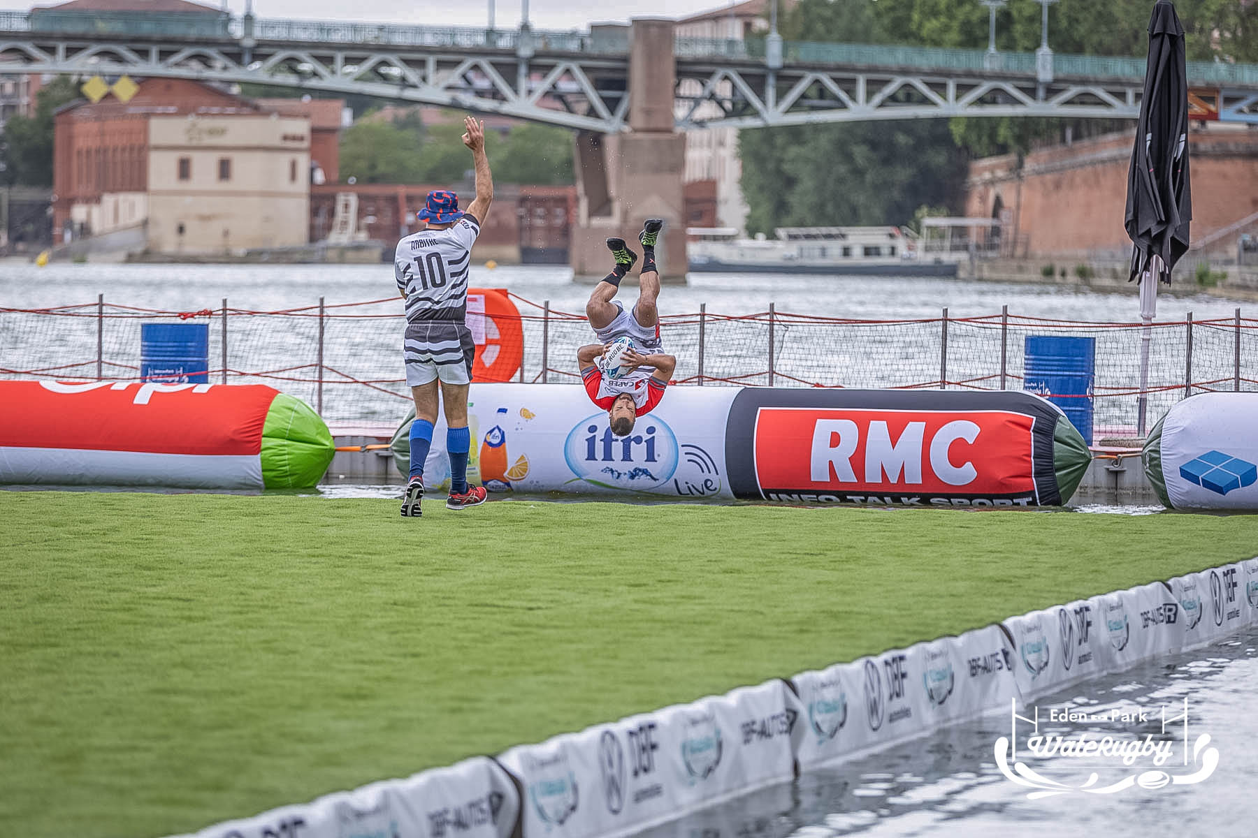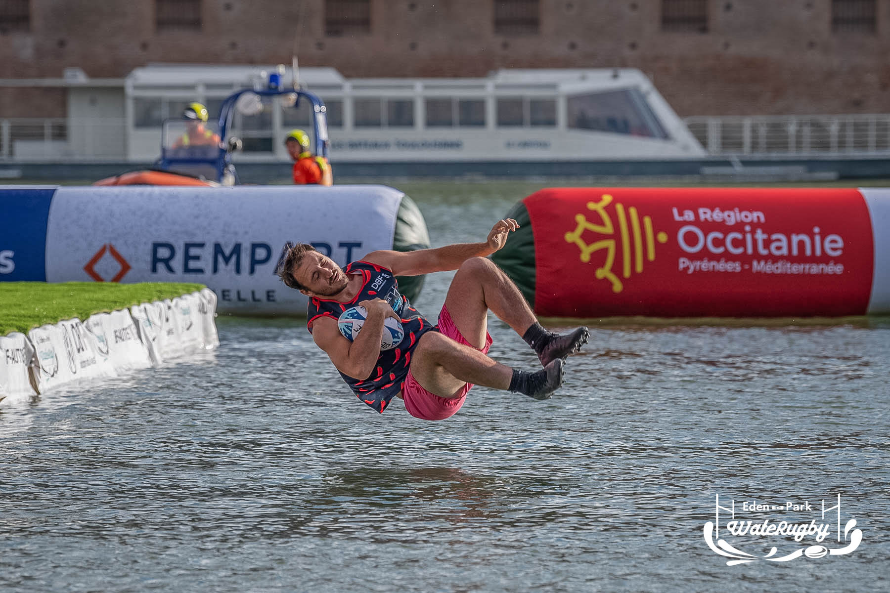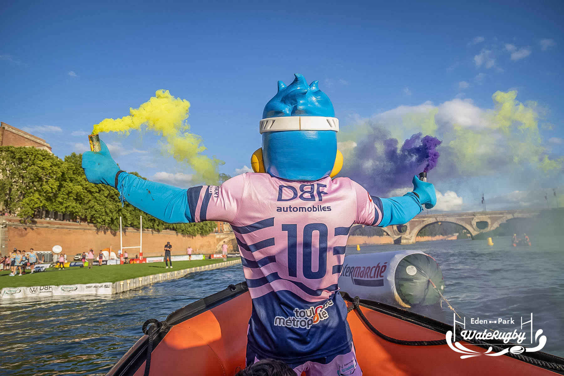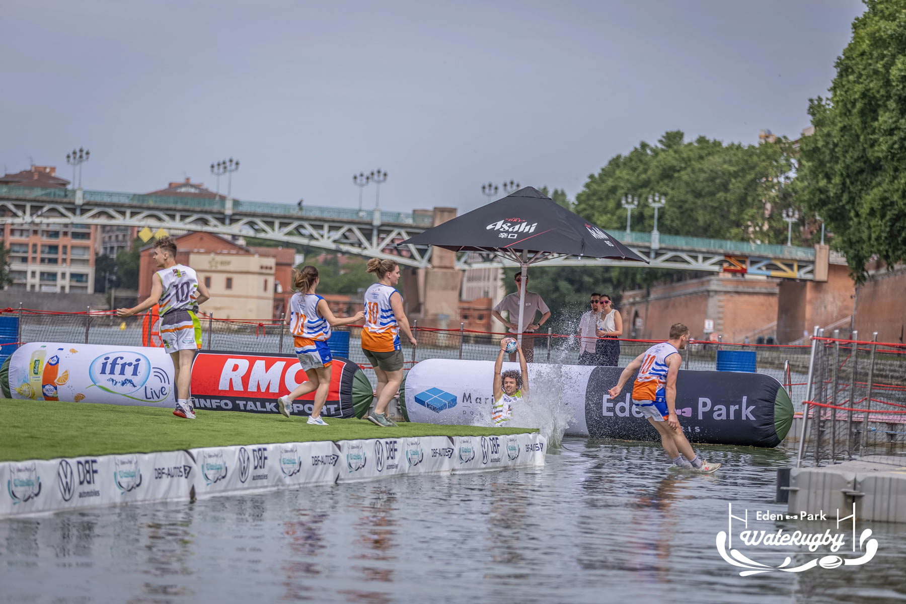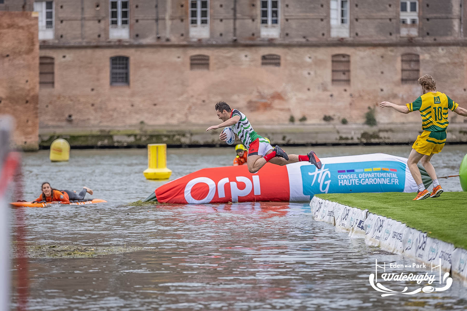 Compétition de rugby sur une barge sur la Garonne en plein centre de Toulouse