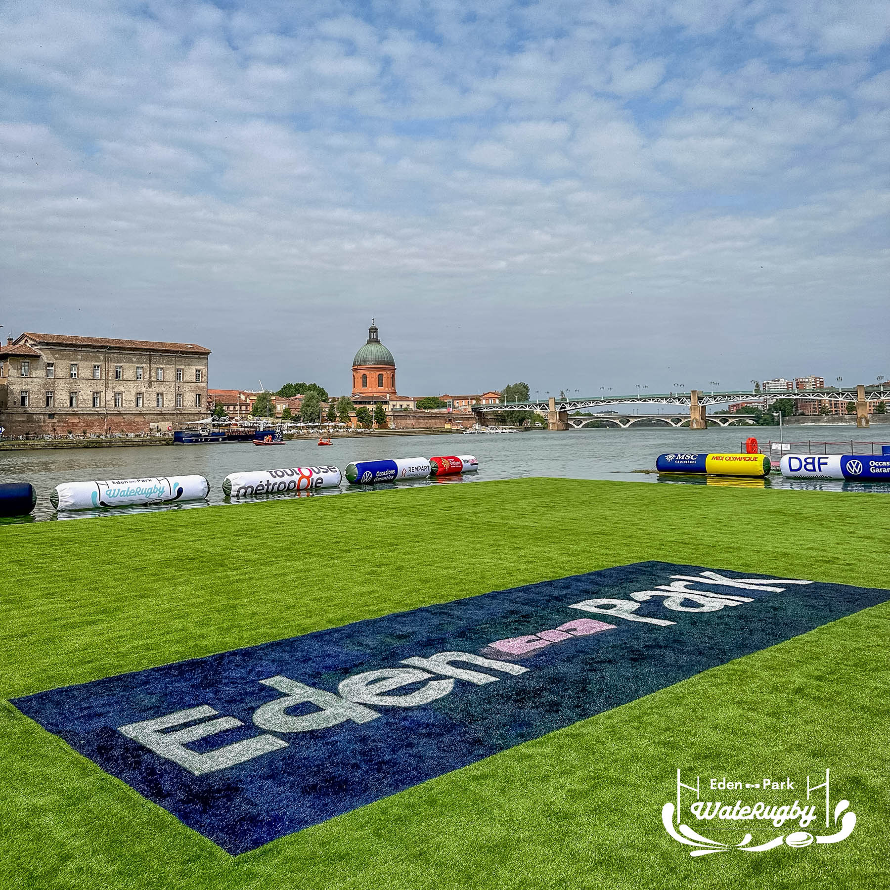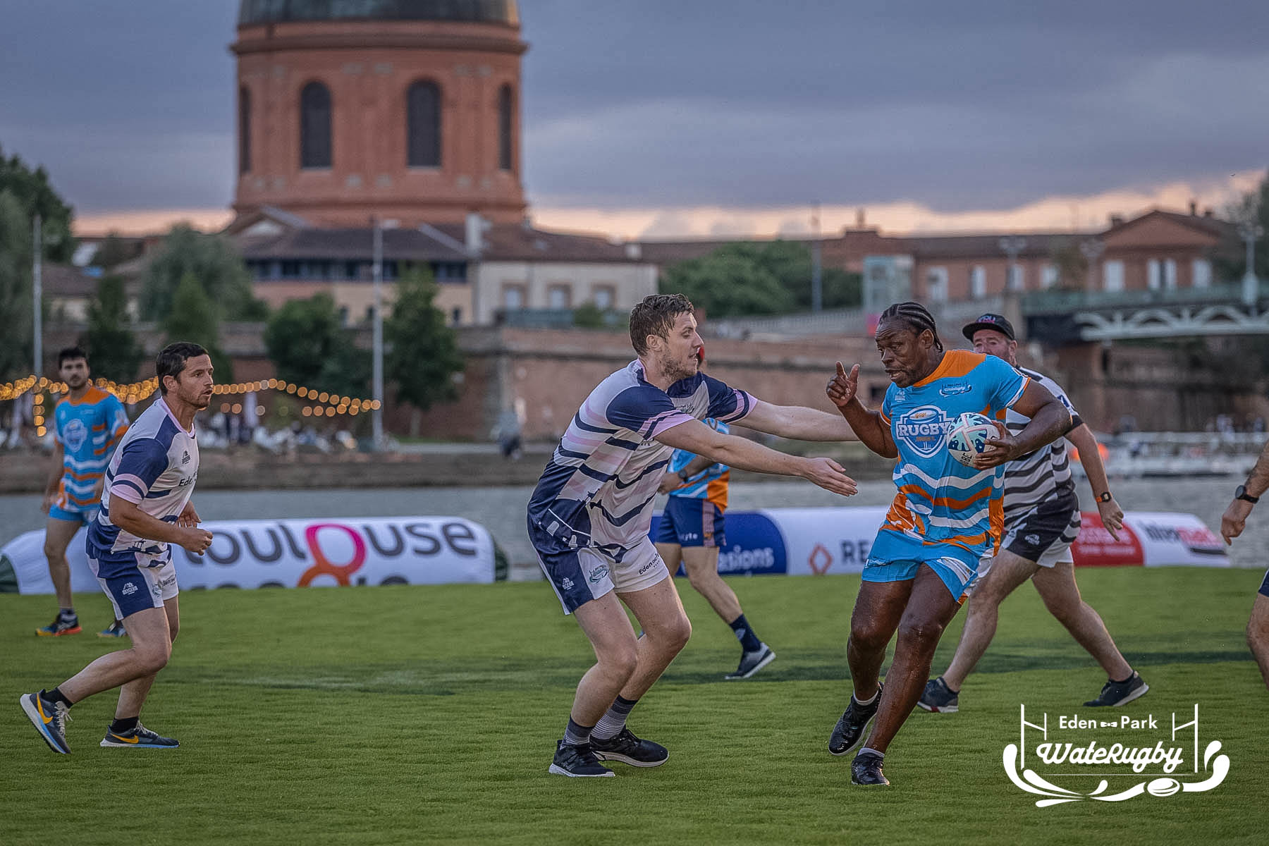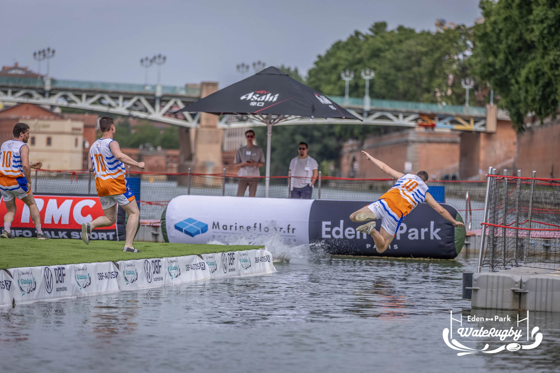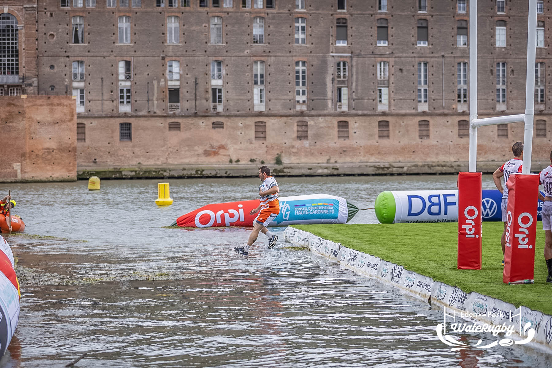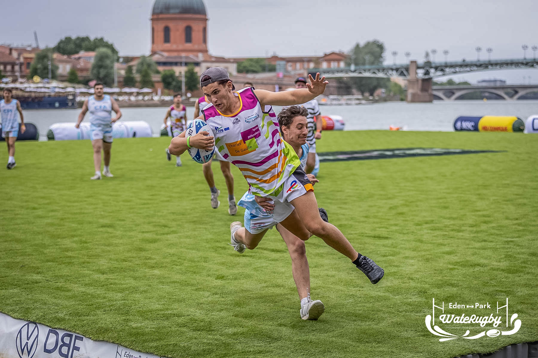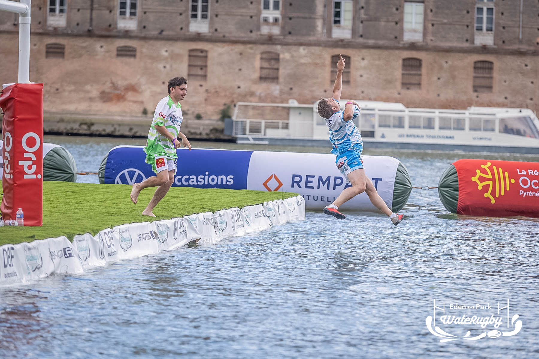 Compétition de rugby sur une barge sur la Garonne en plein centre de Toulouse