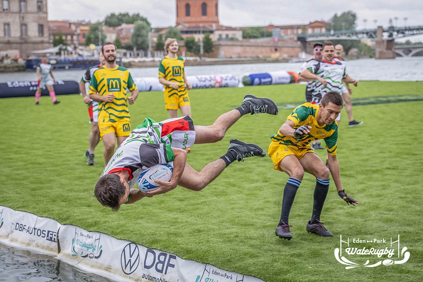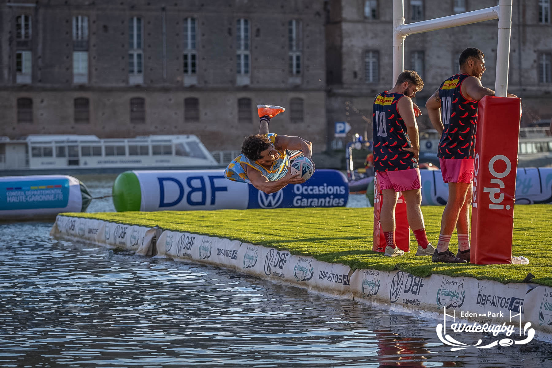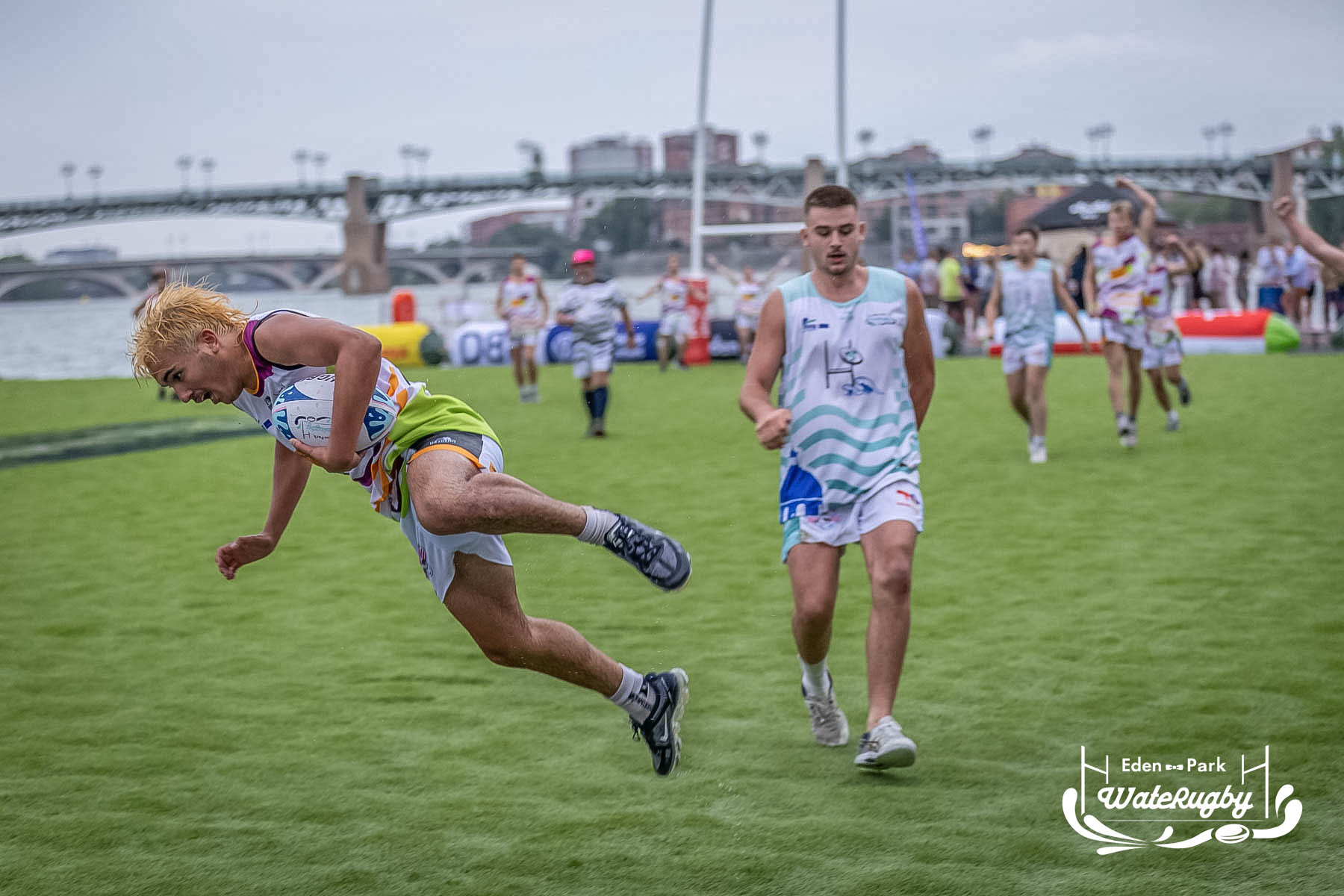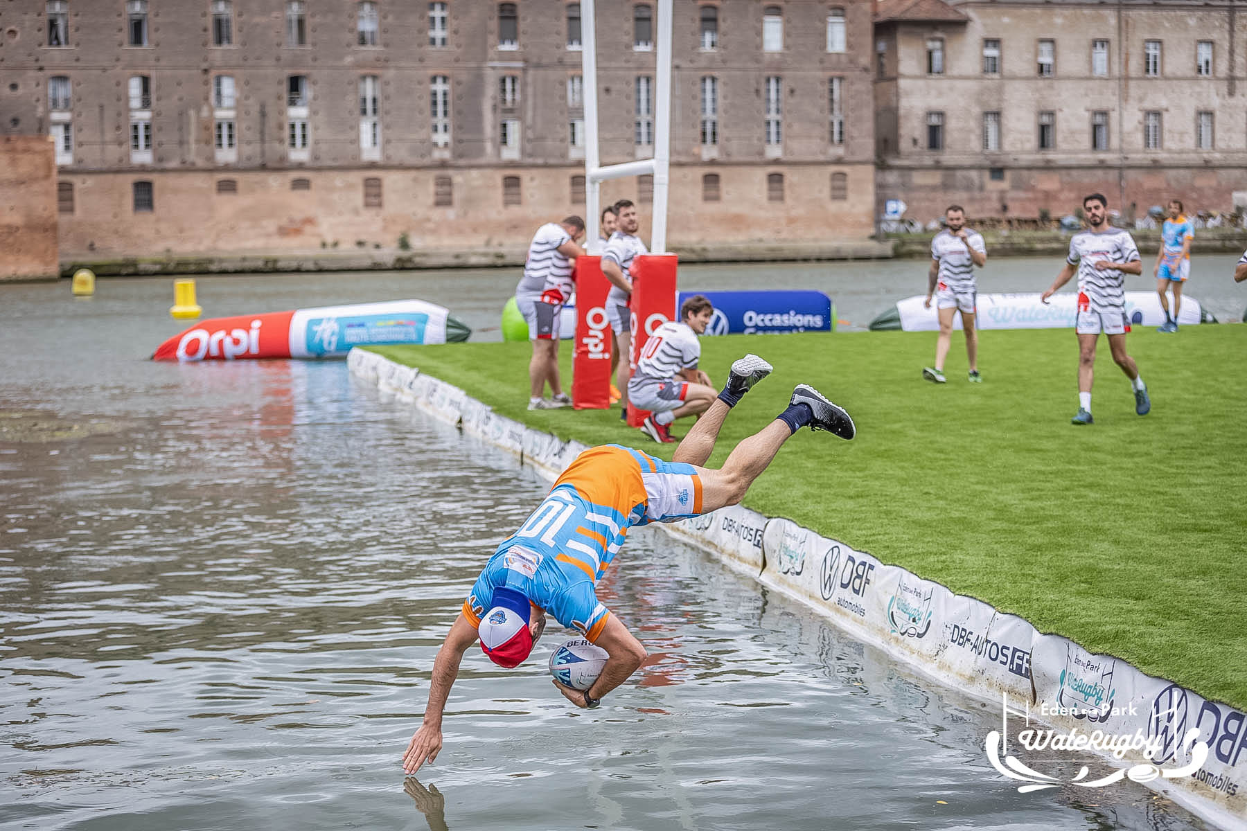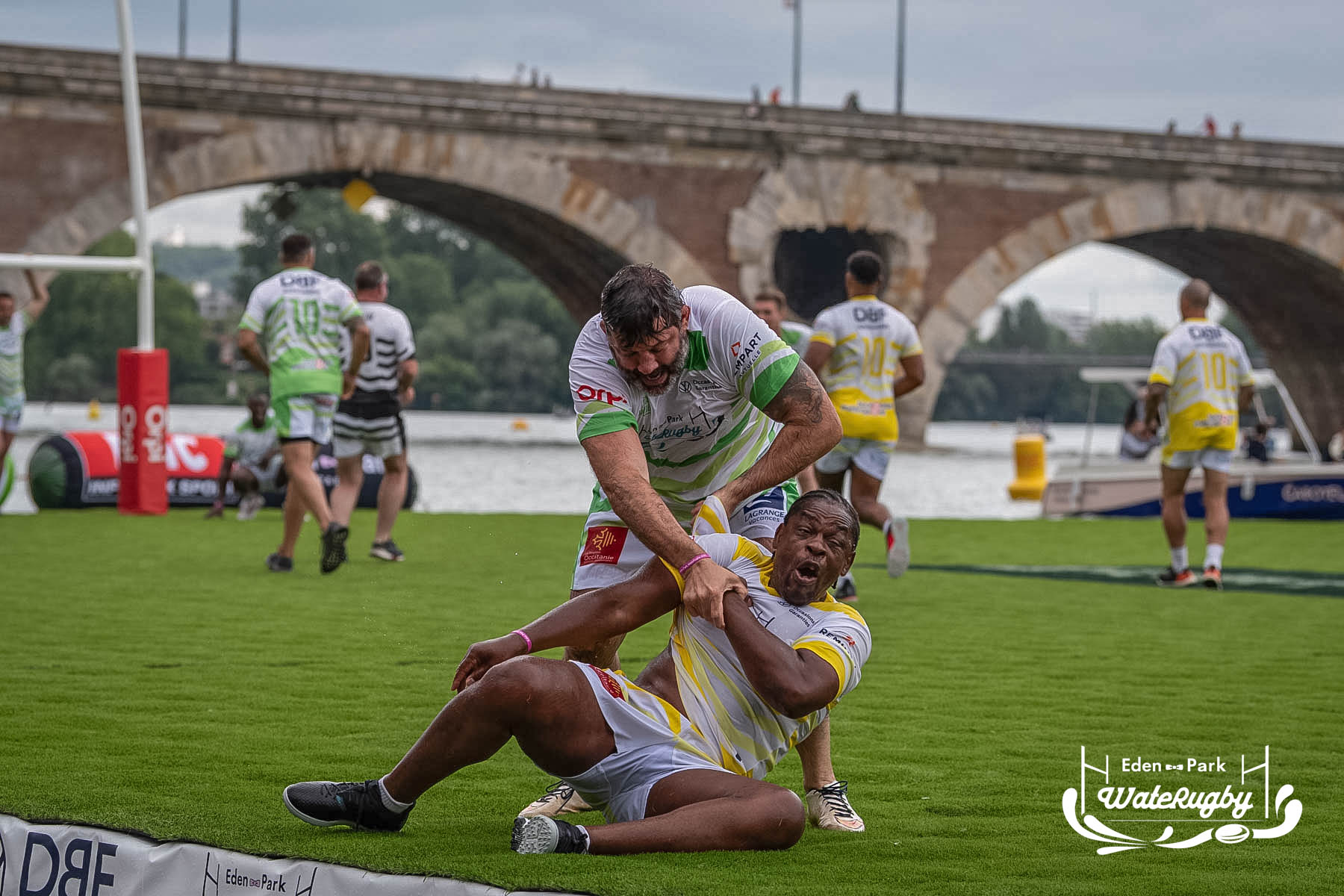 Compétition de rugby sur une barge sur la Garonne en plein centre de Toulouse