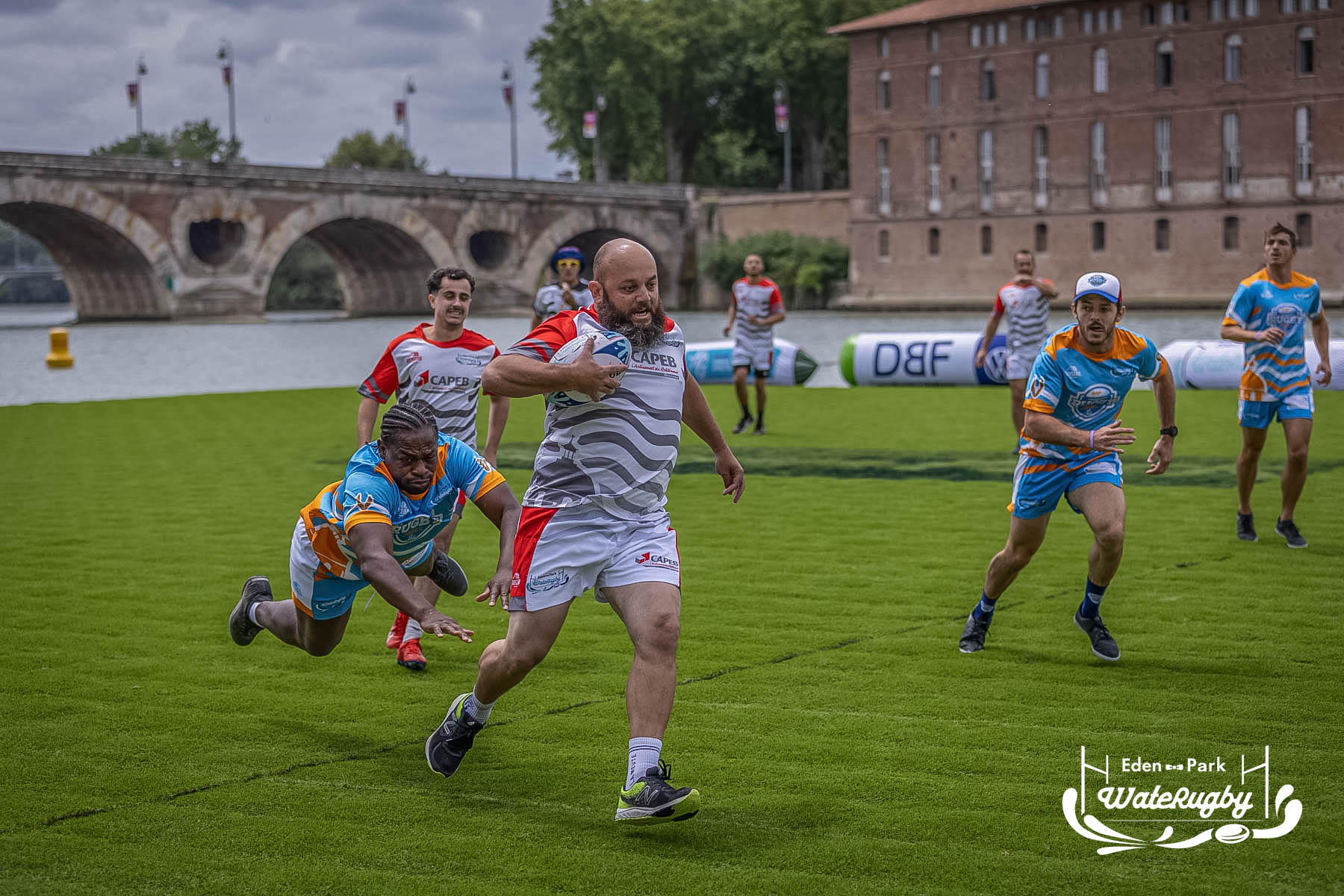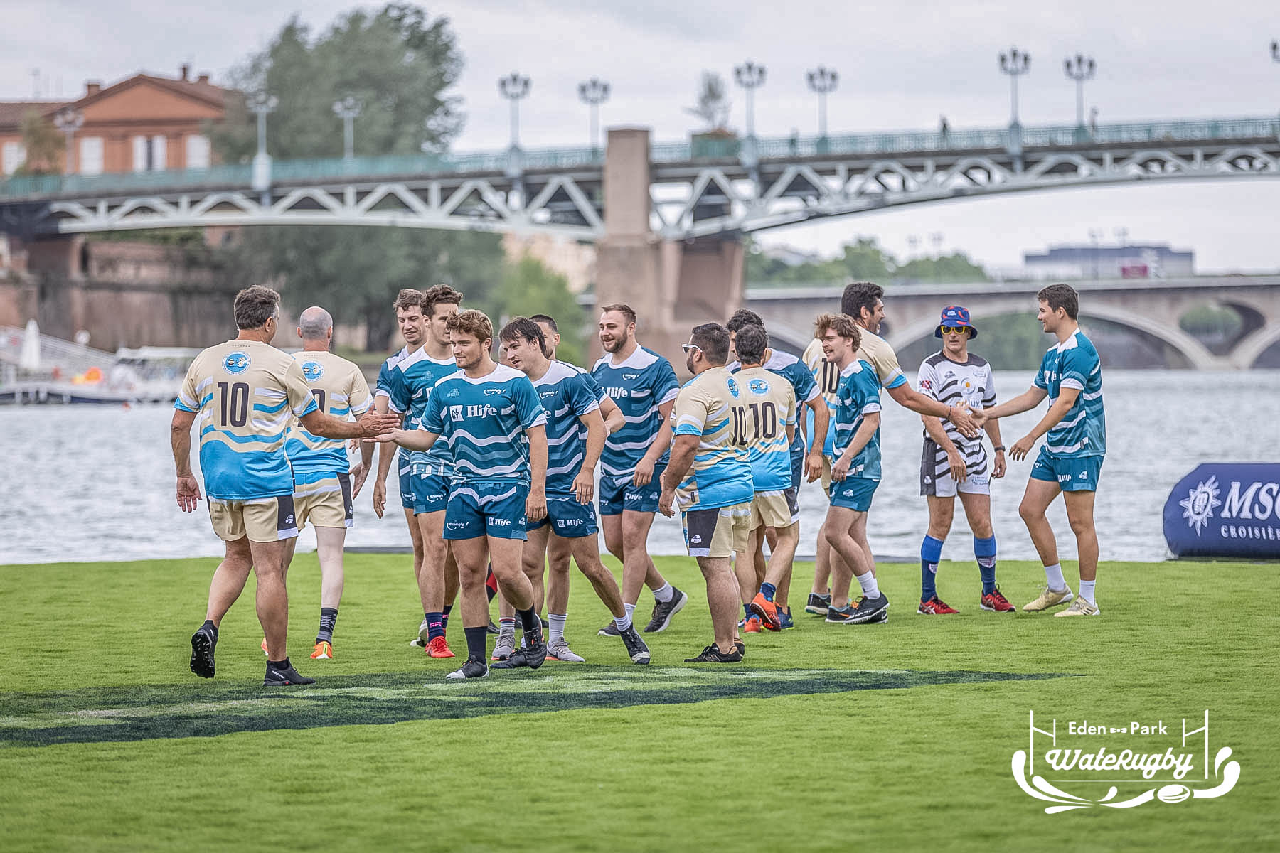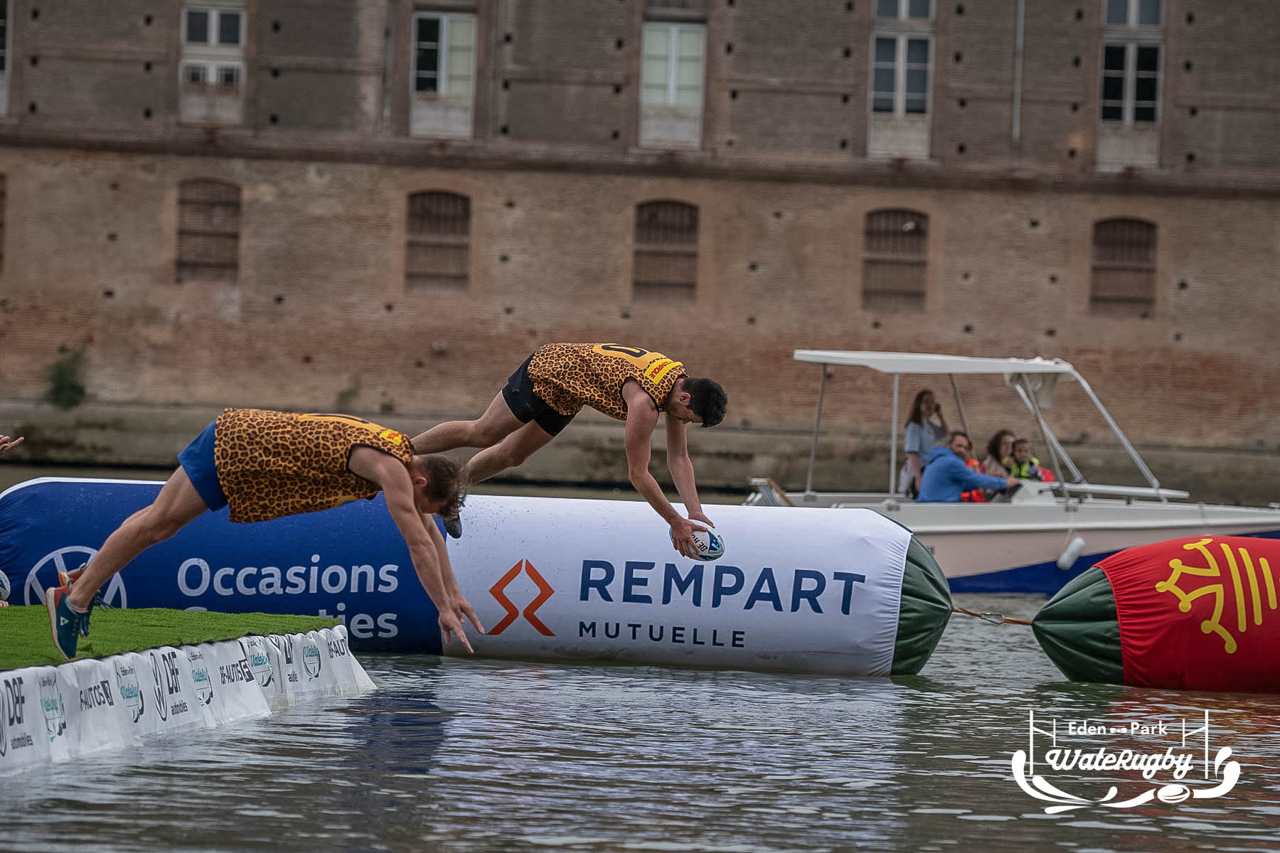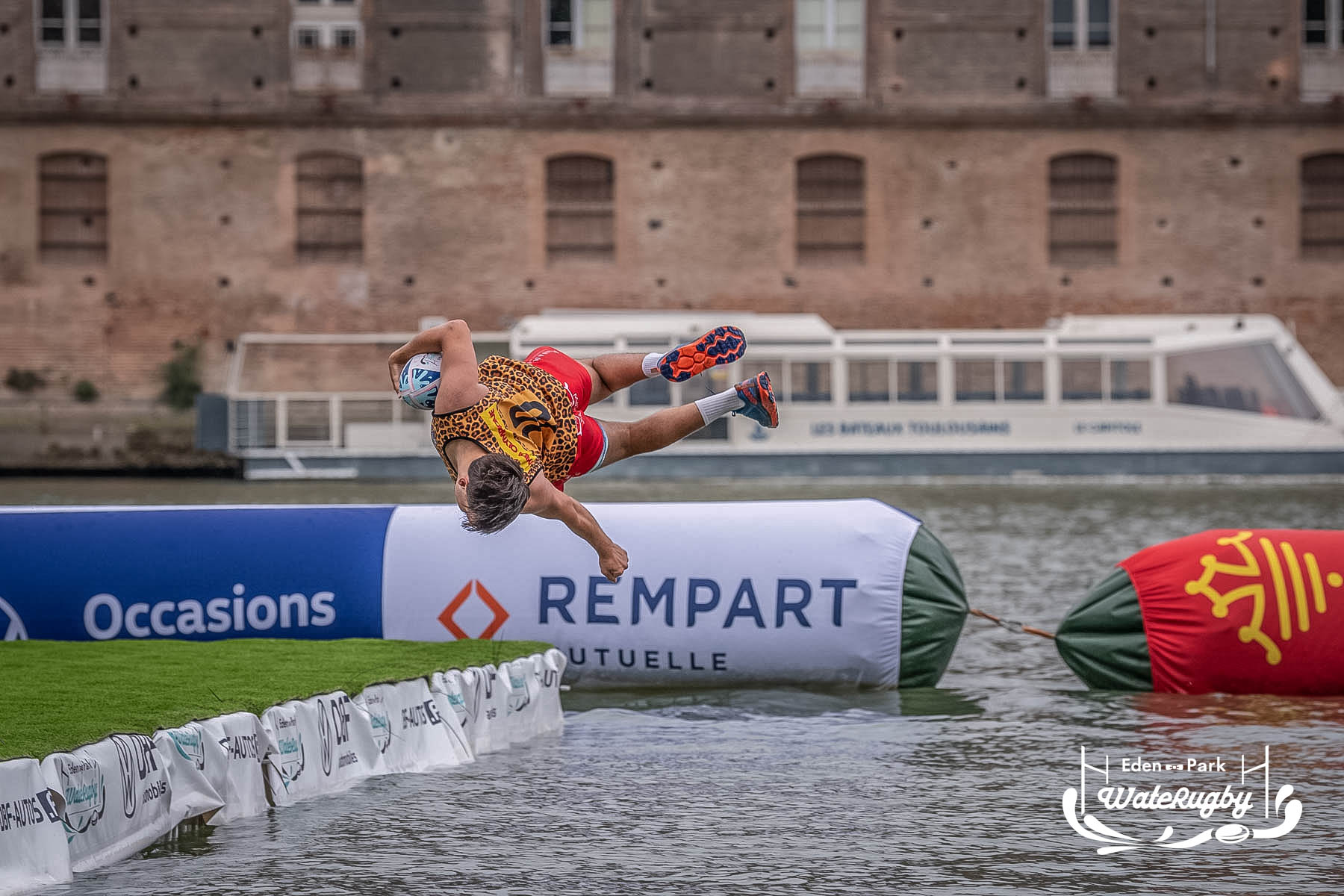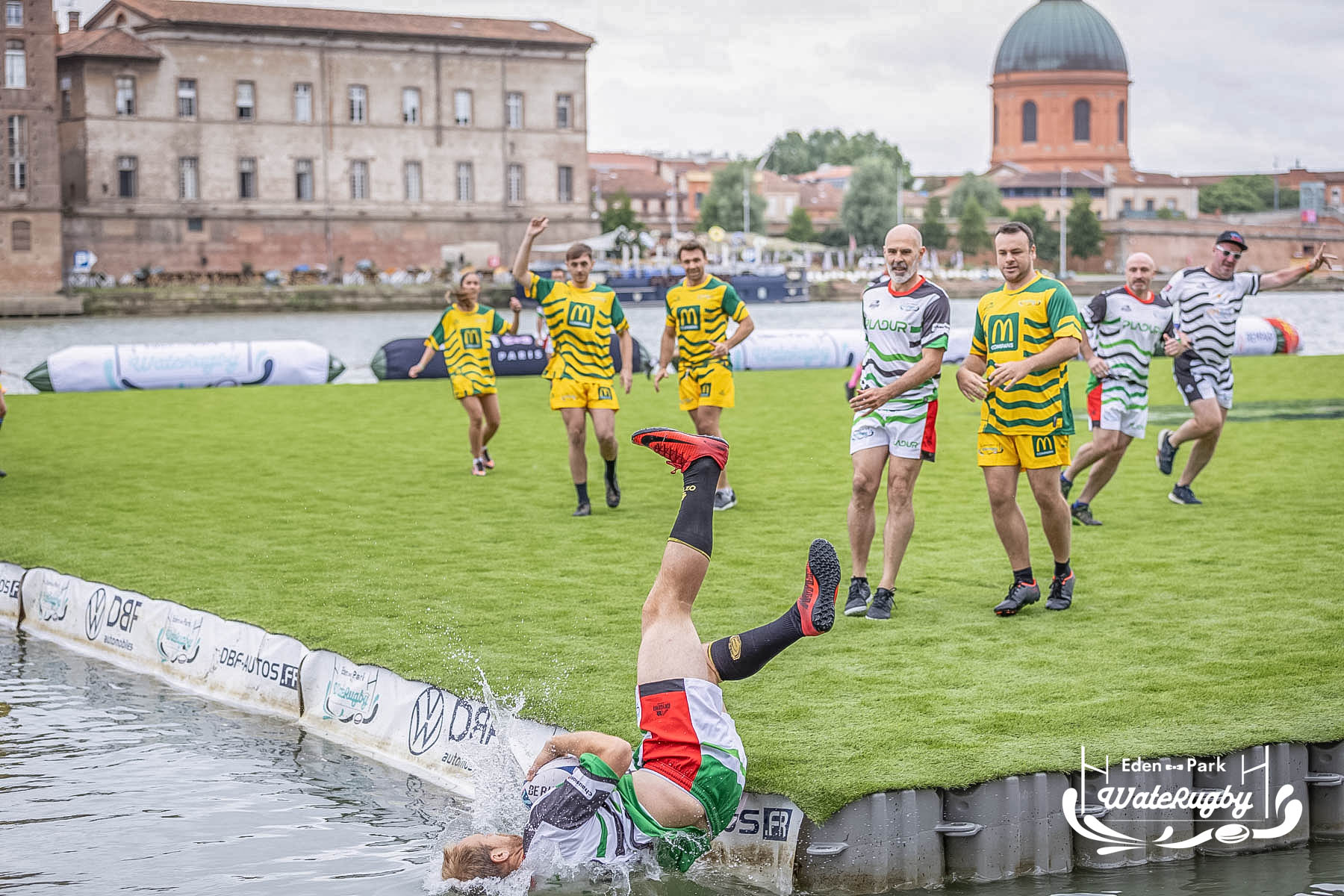 Compétition de rugby sur une barge sur la Garonne en plein centre de Toulouse