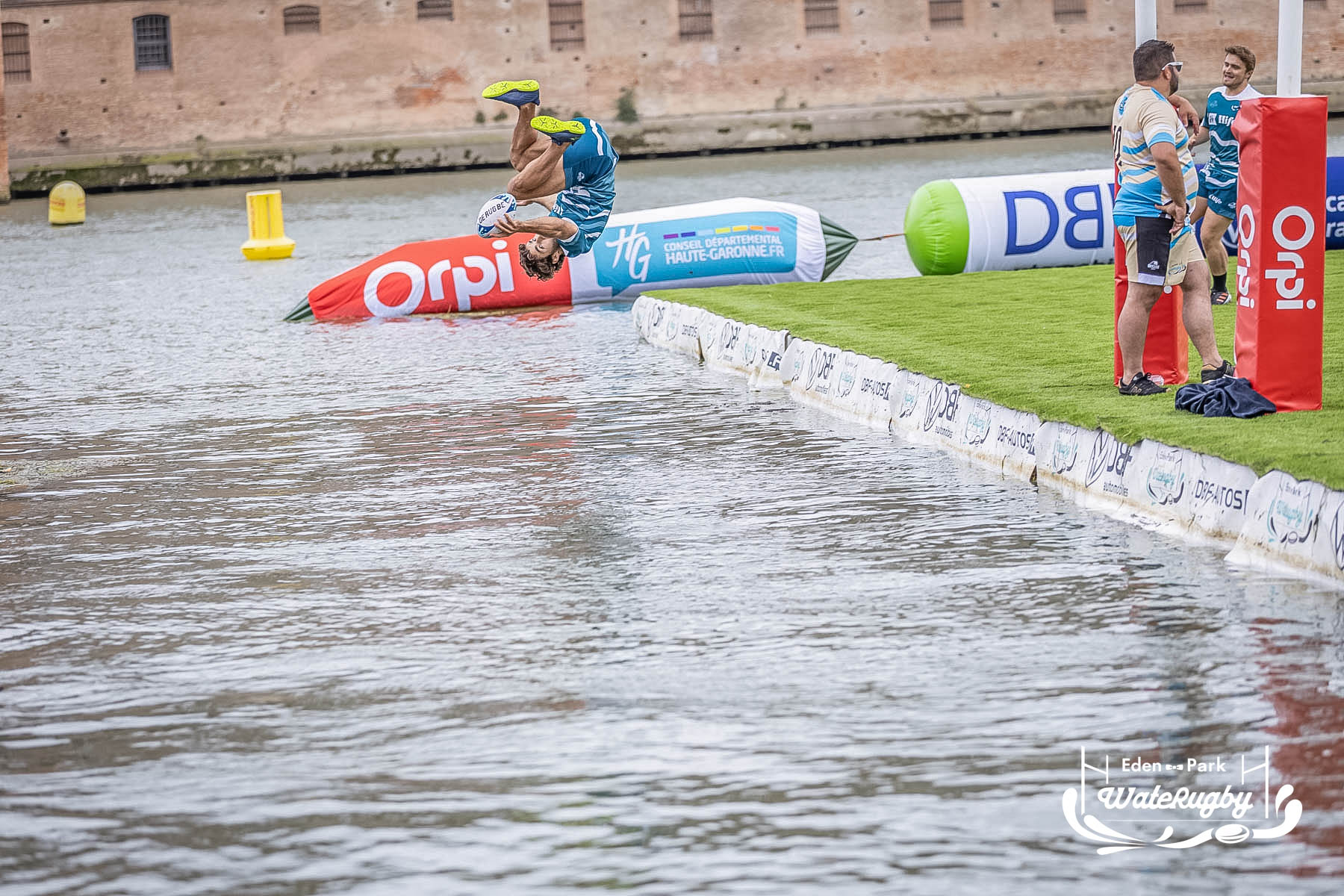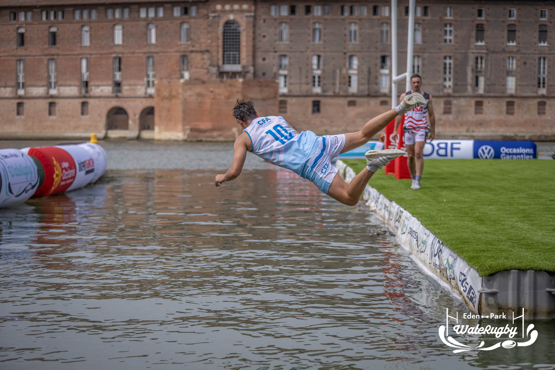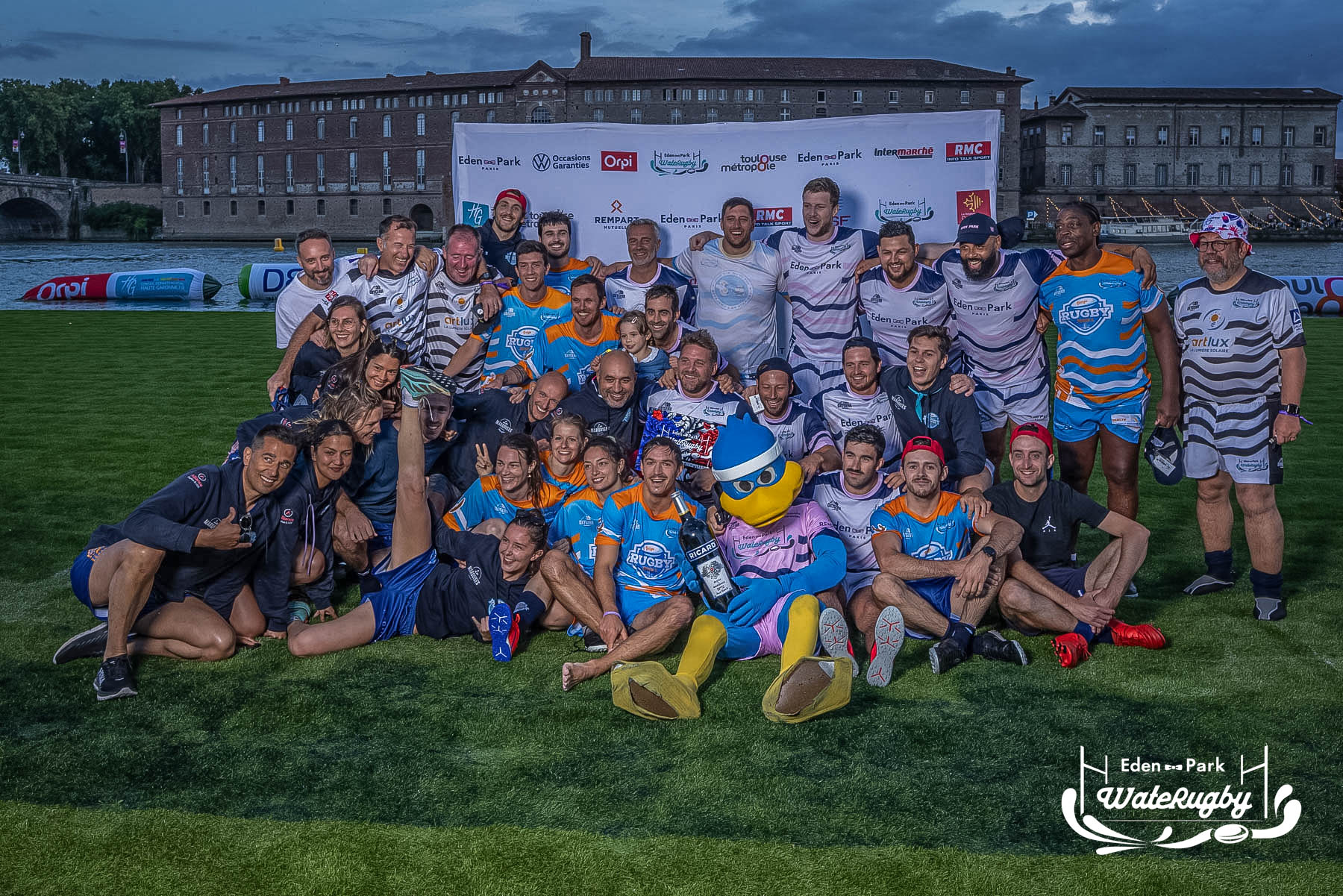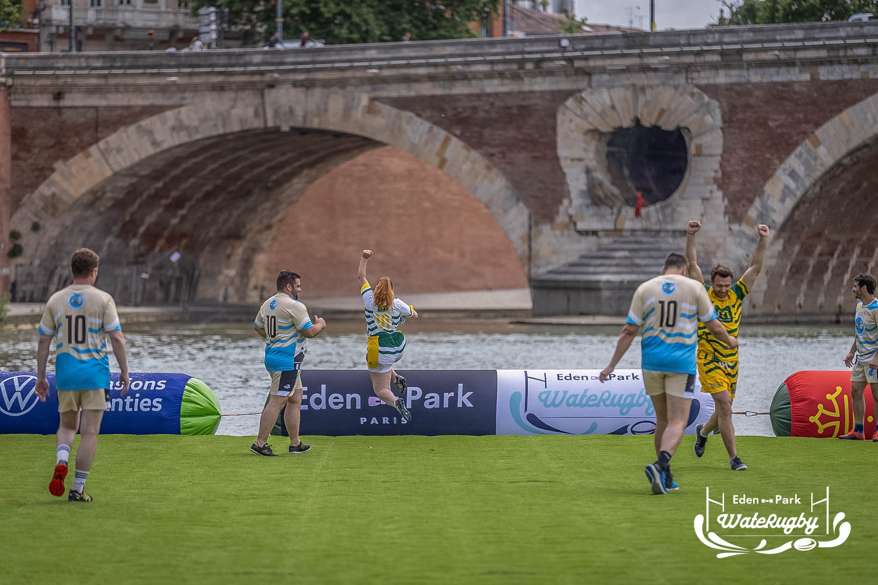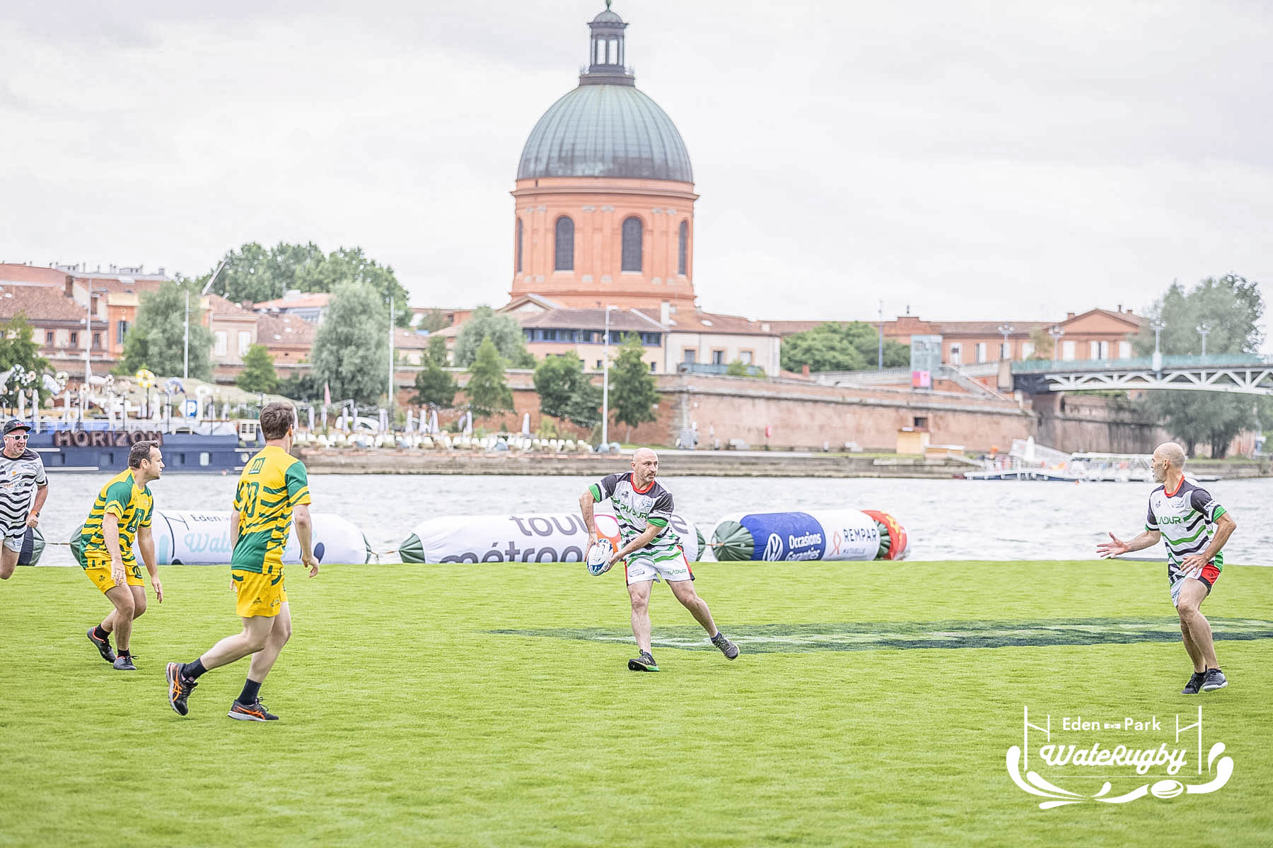 Compétition de rugby sur une barge sur la Garonne en plein centre de Toulouse