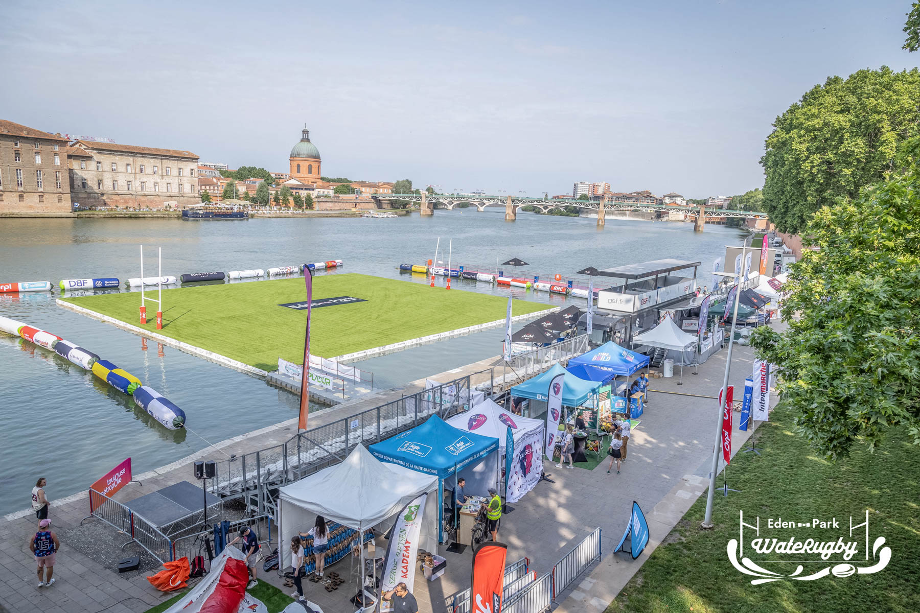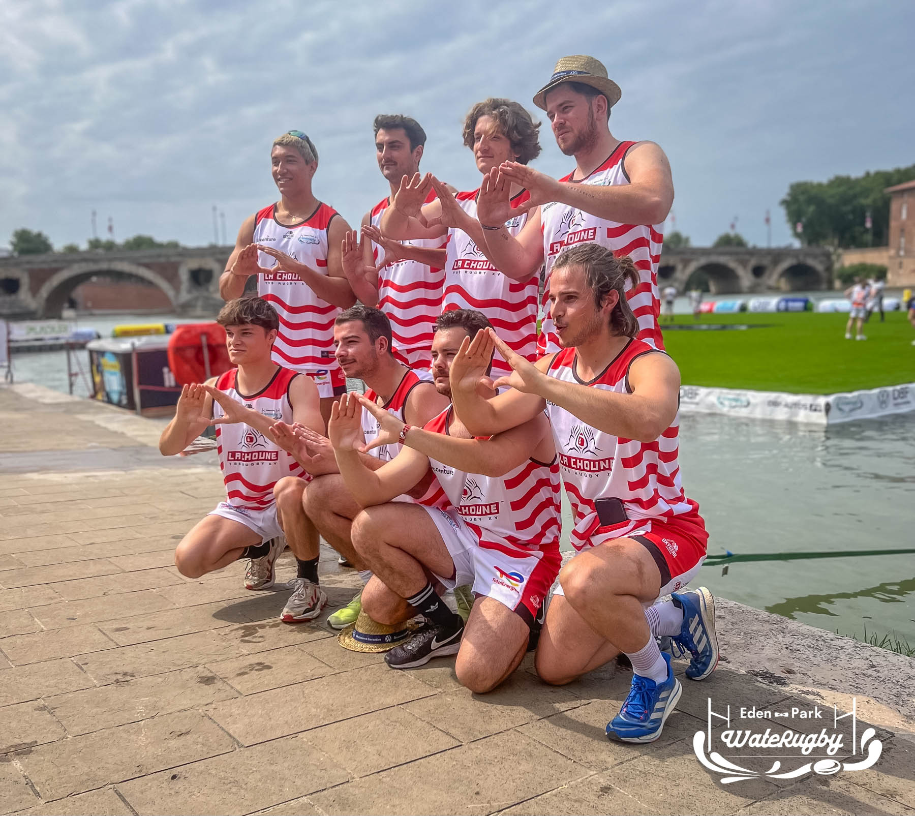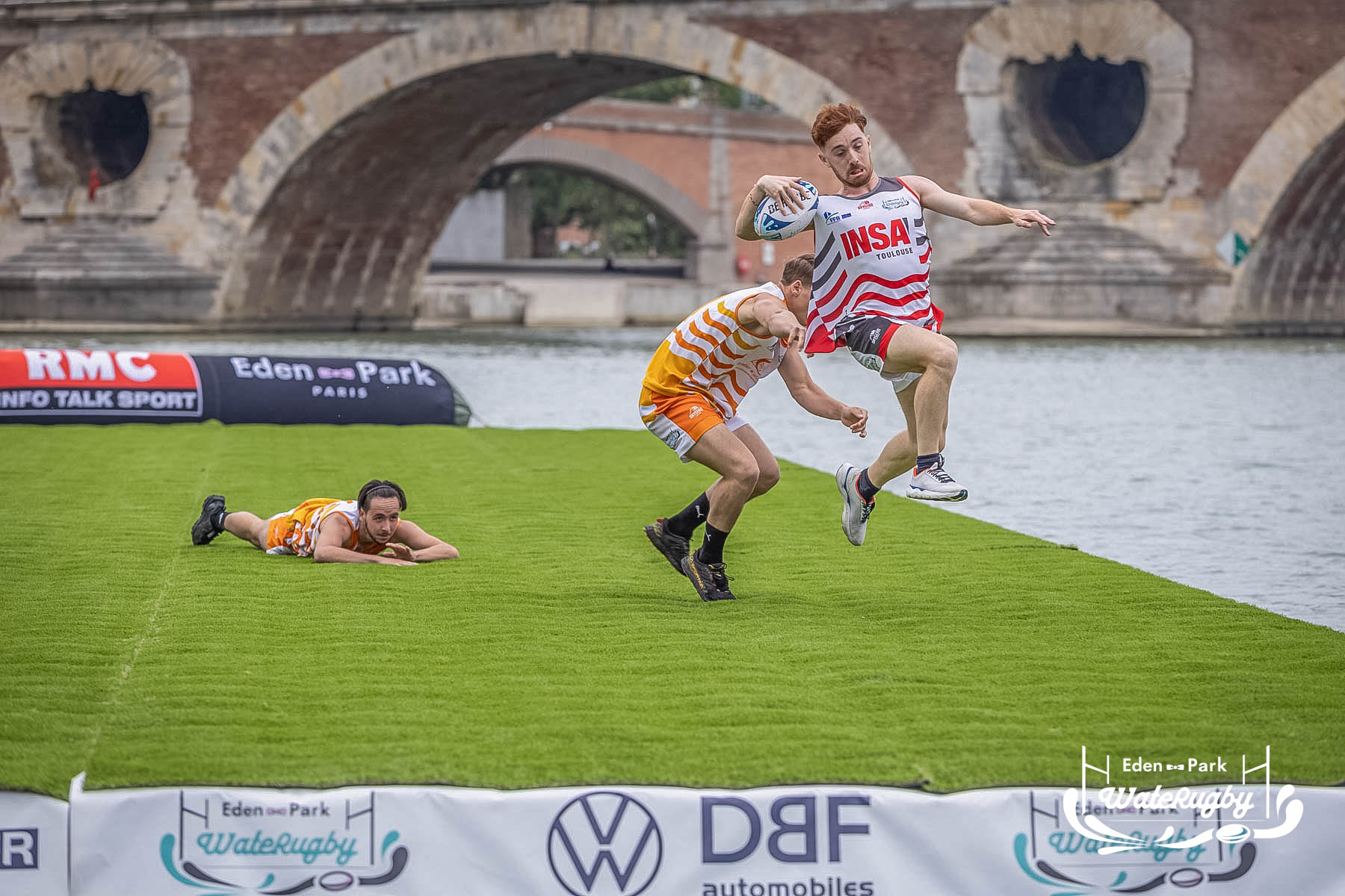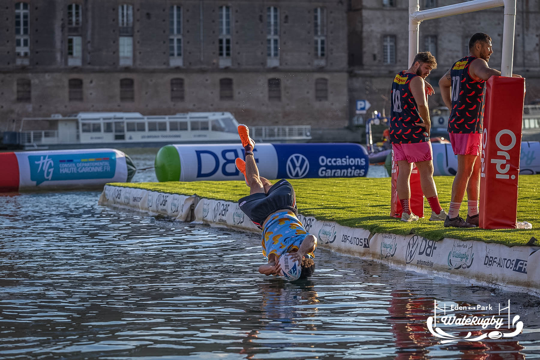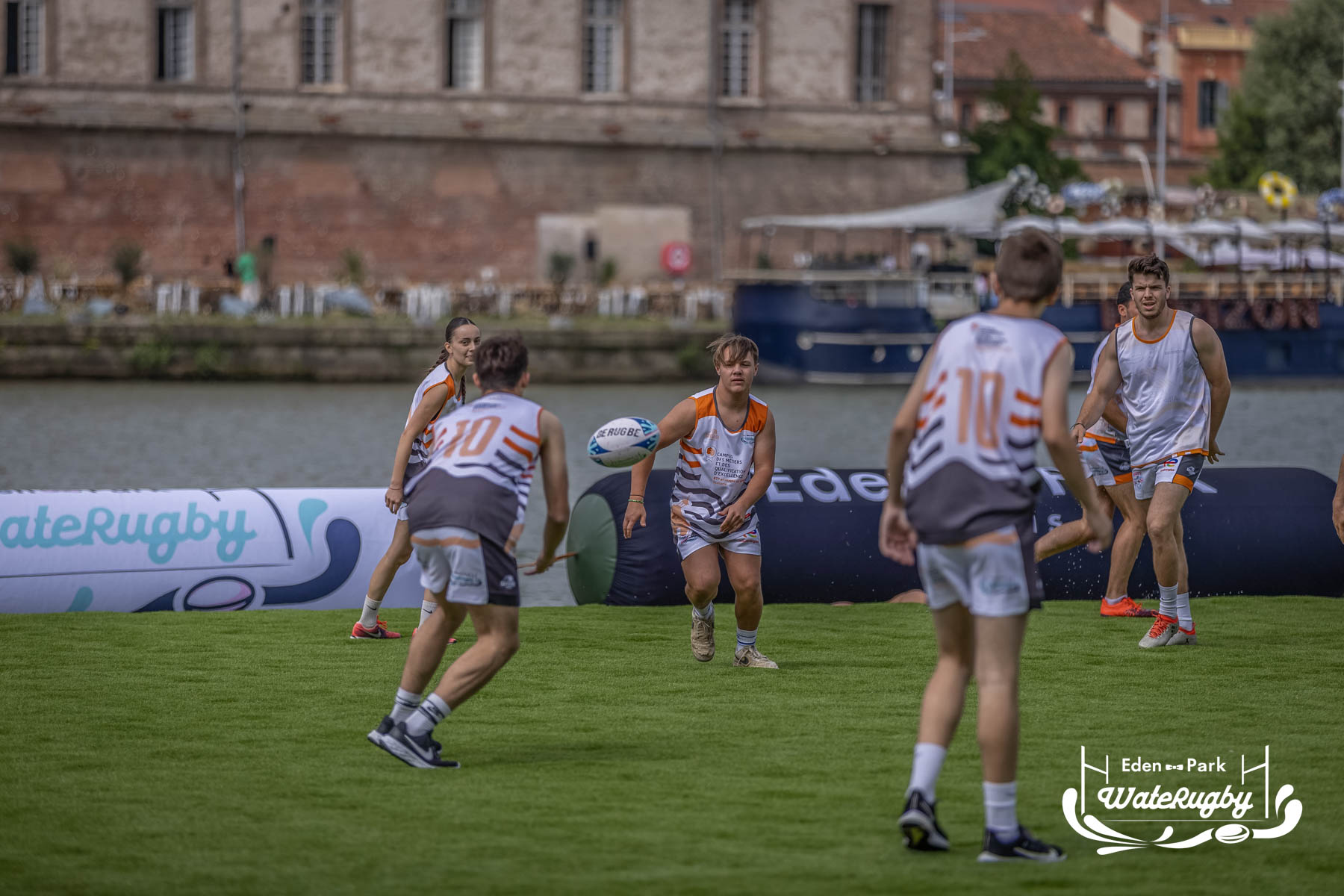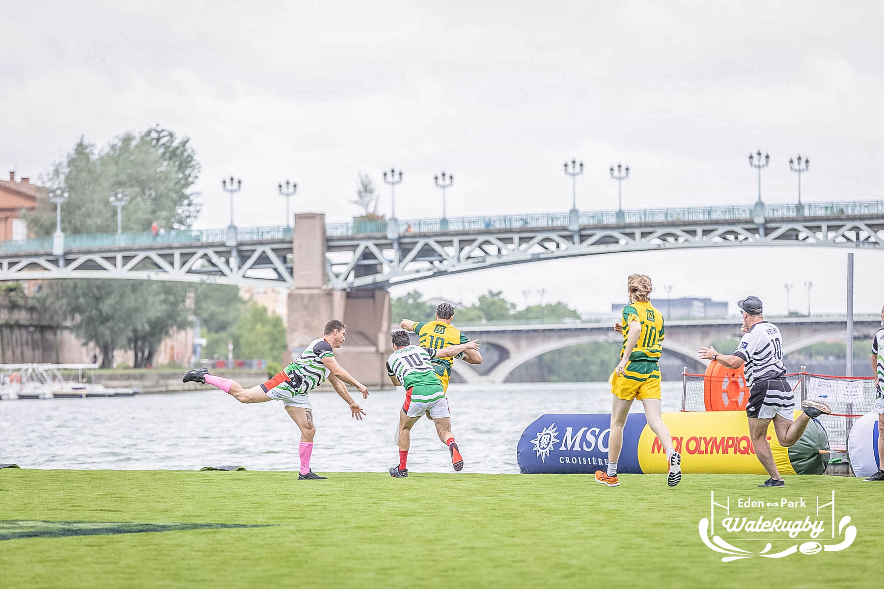 Compétition de rugby sur une barge sur la Garonne en plein centre de Toulouse