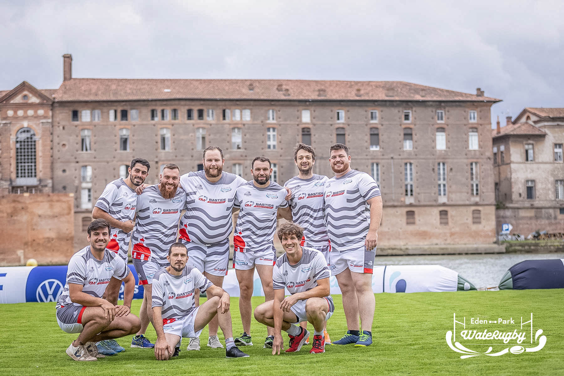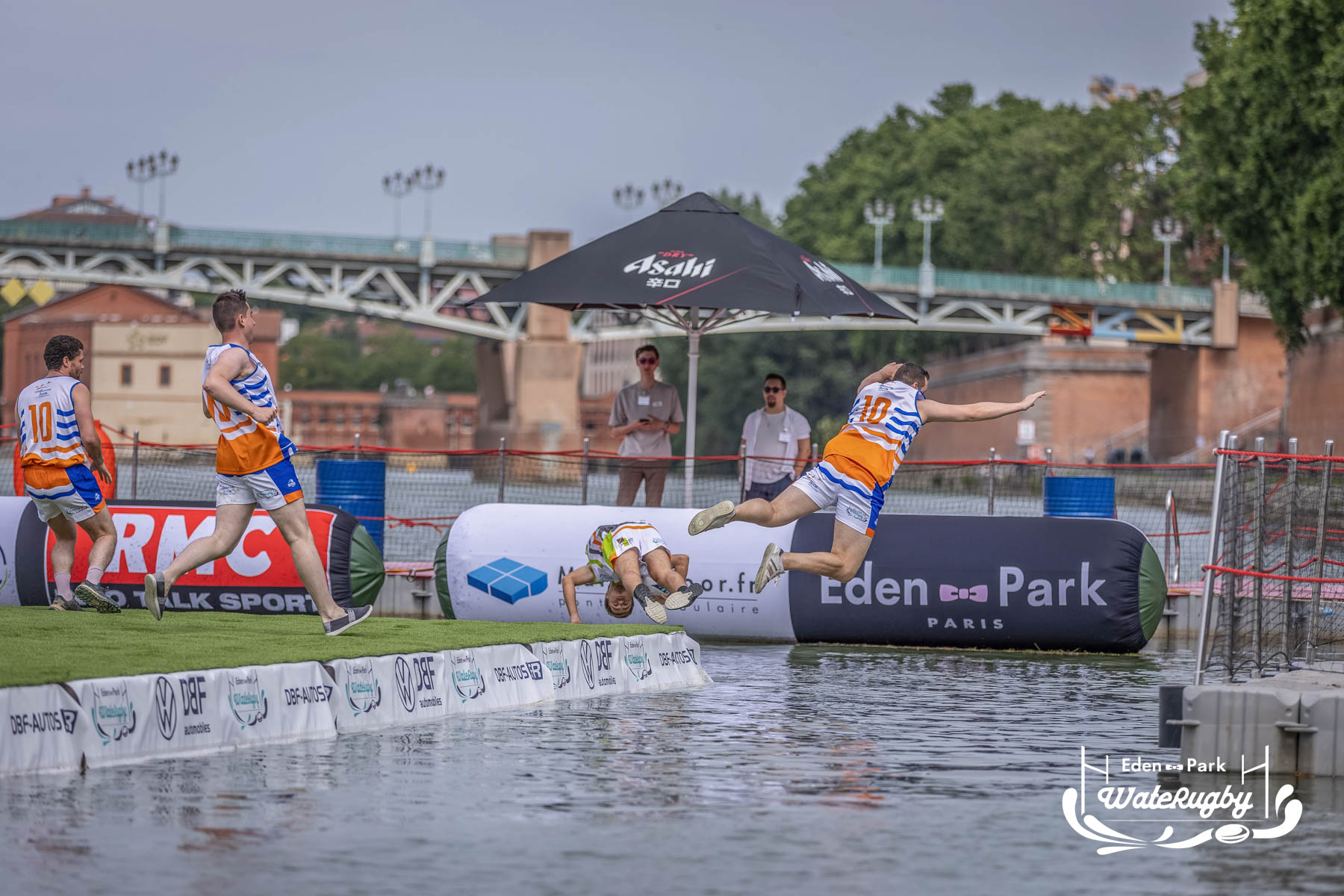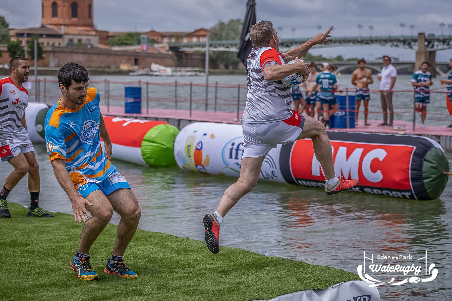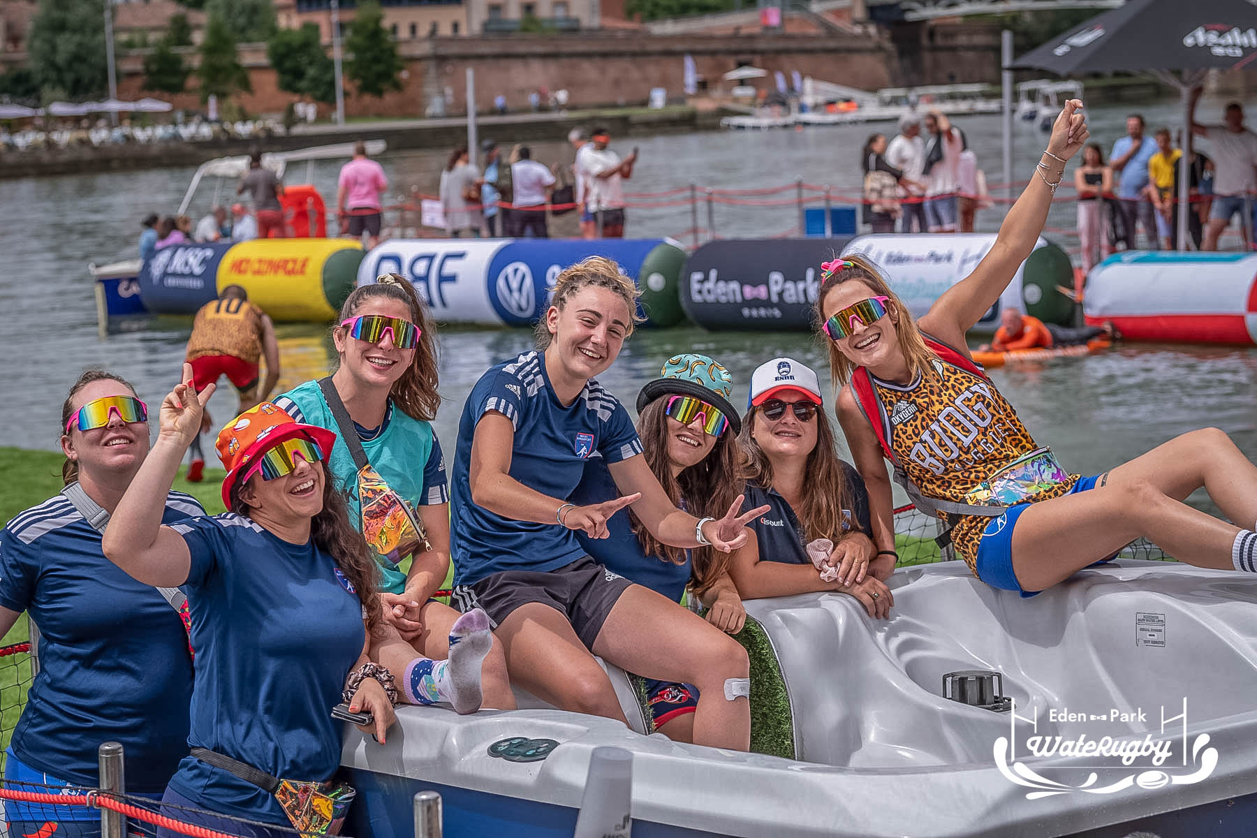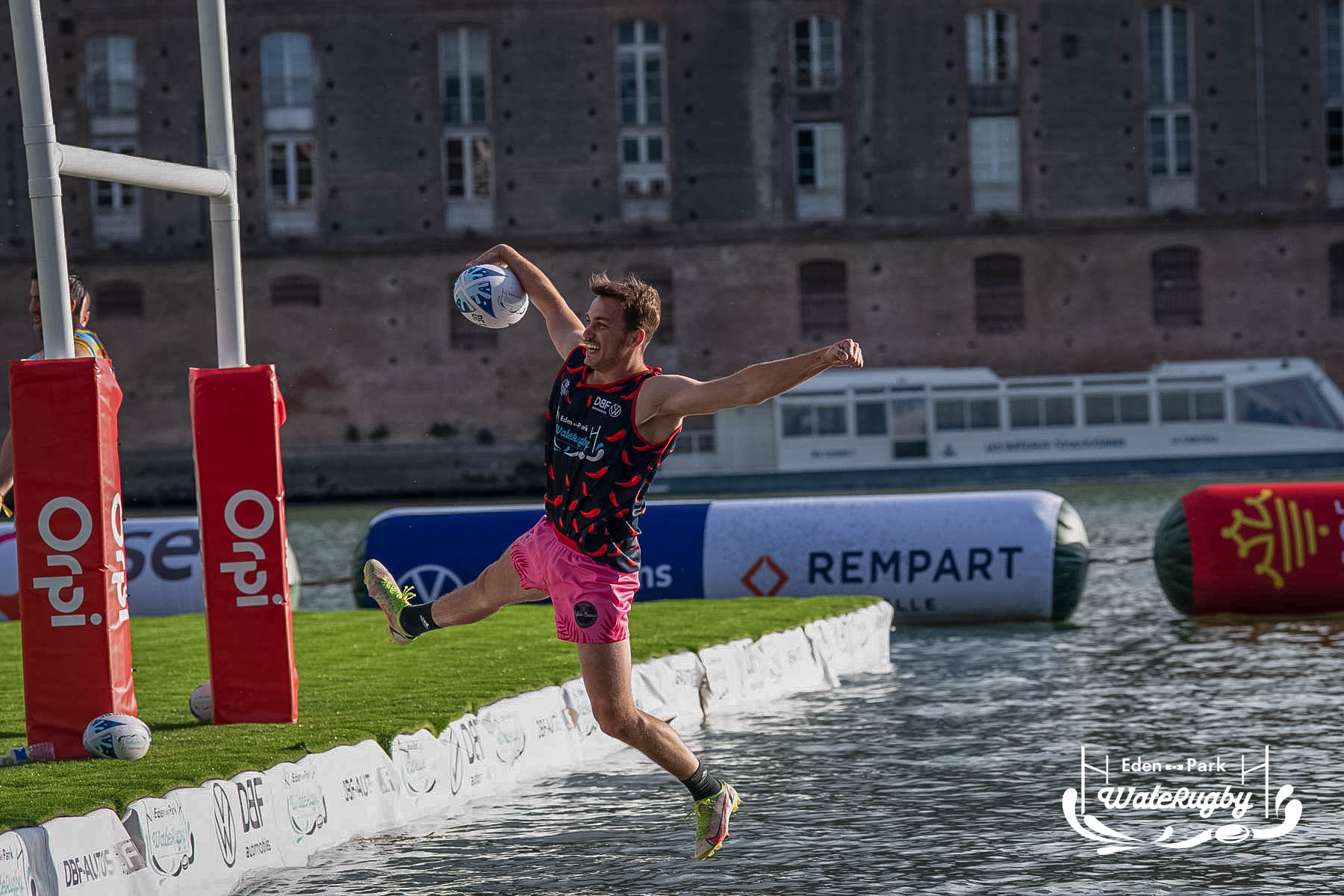 Compétition de rugby sur une barge sur la Garonne en plein centre de Toulouse