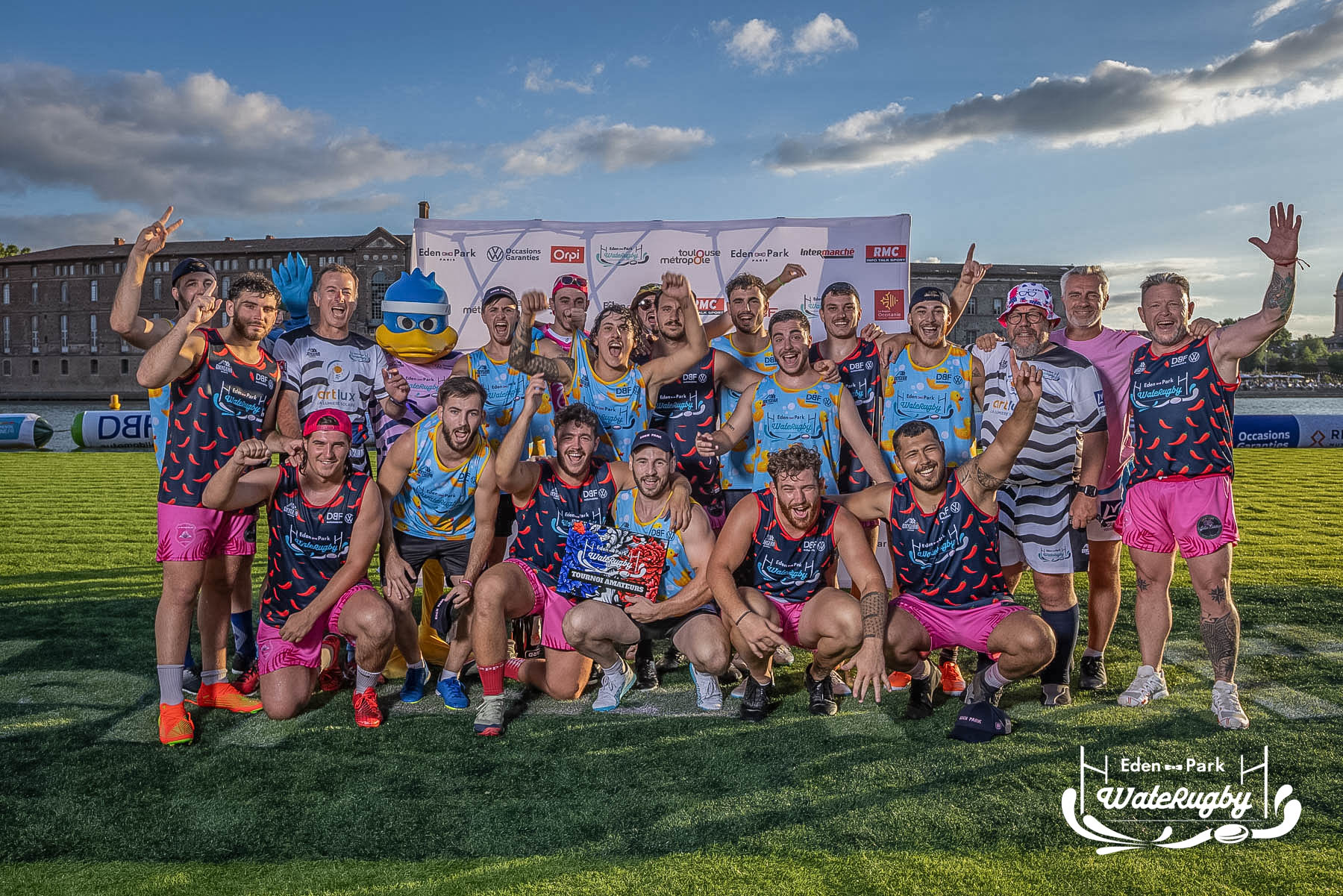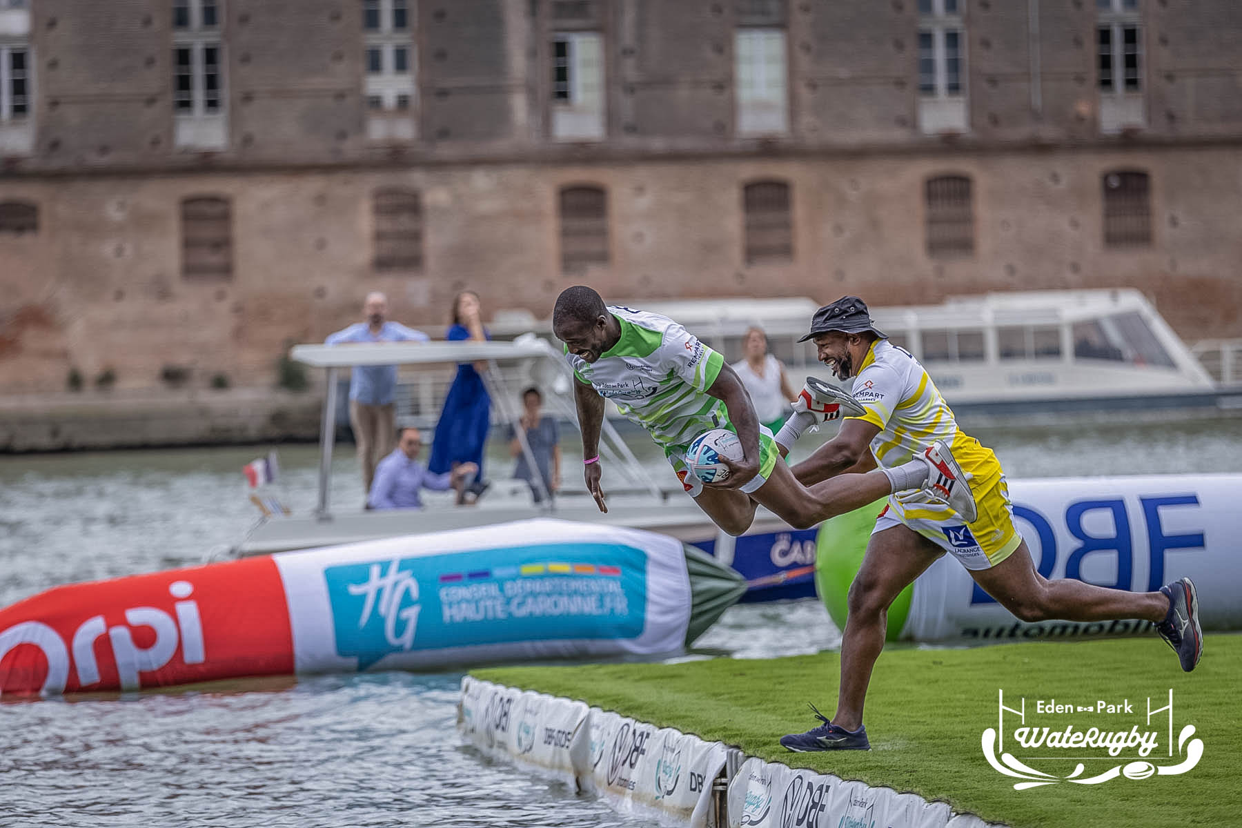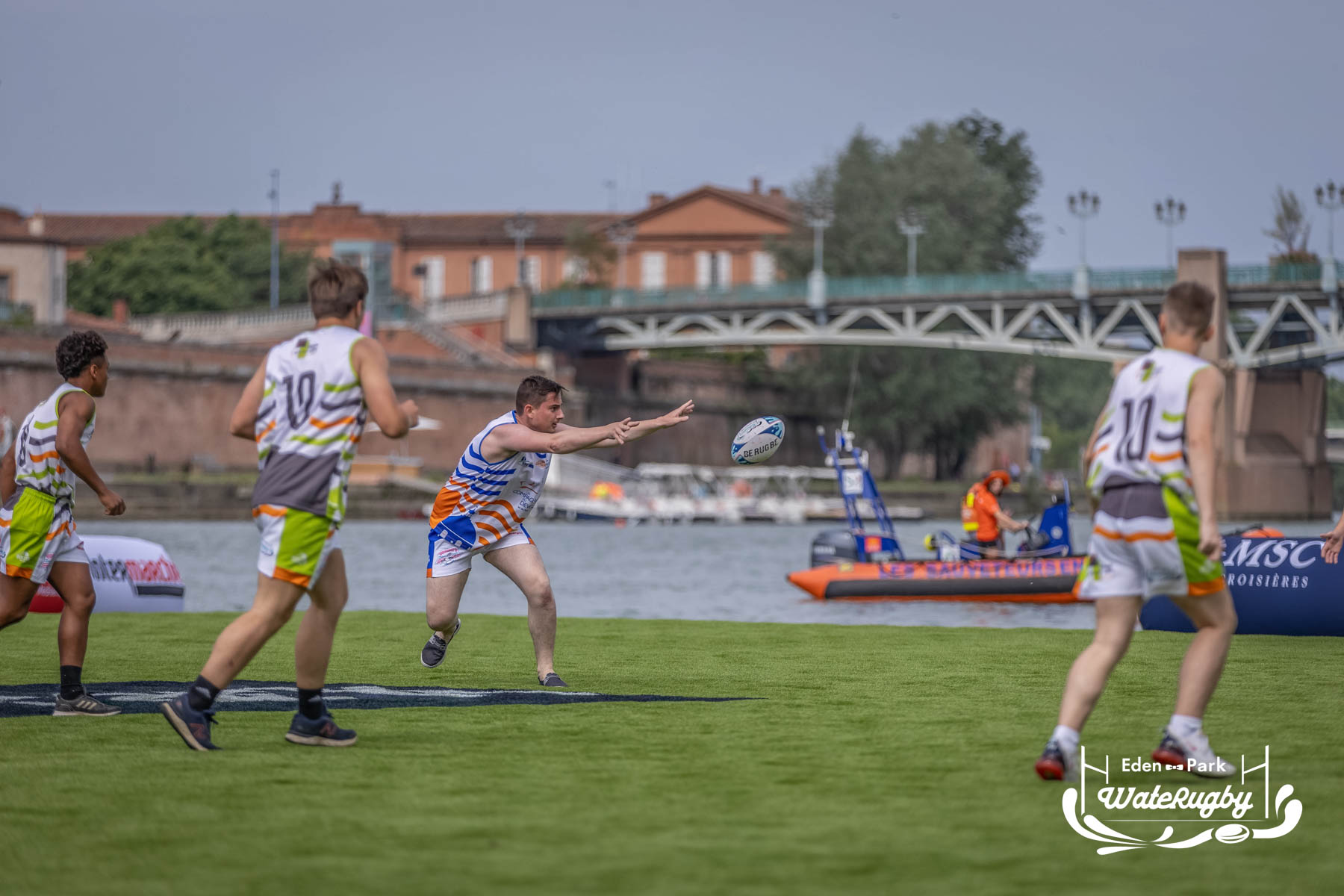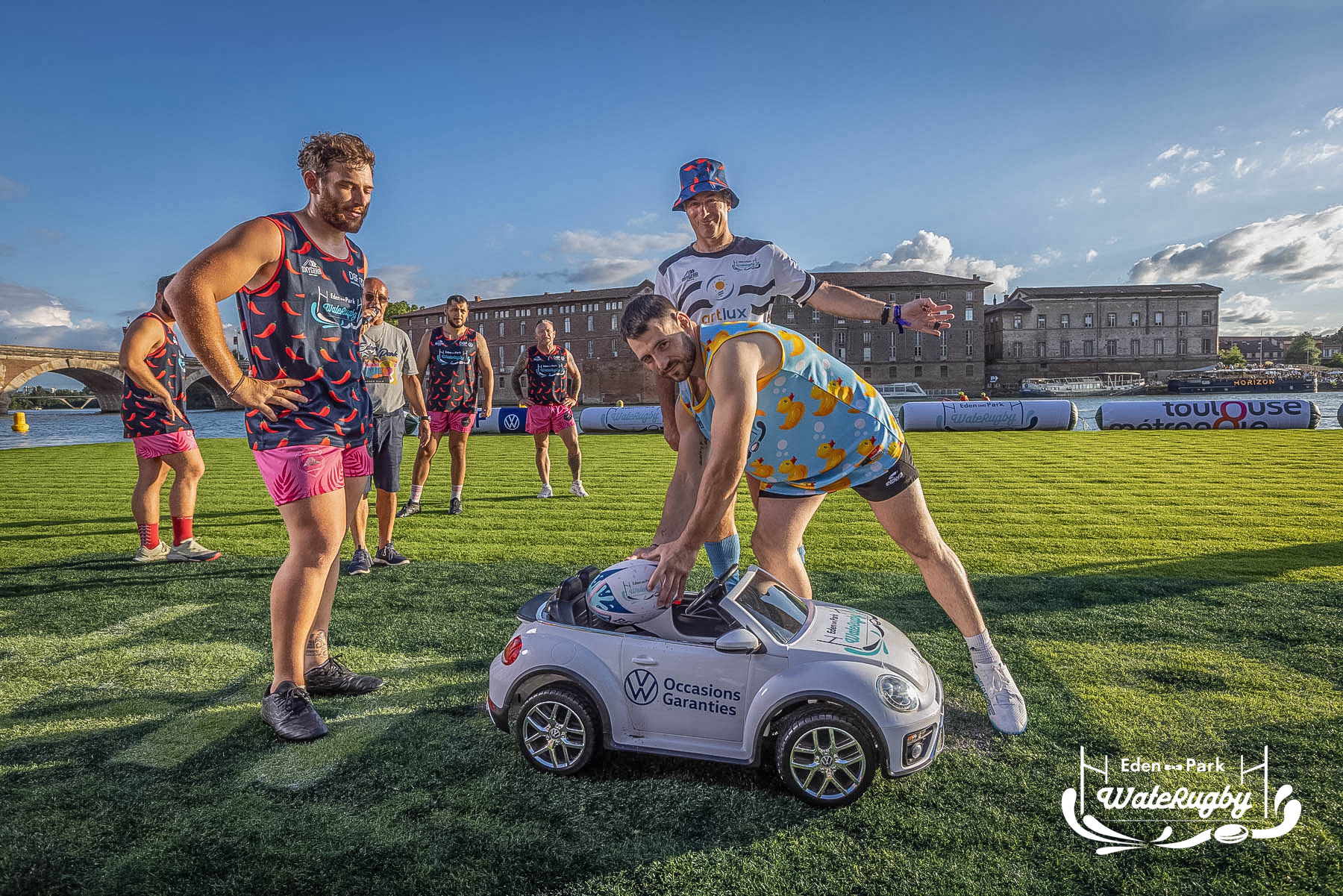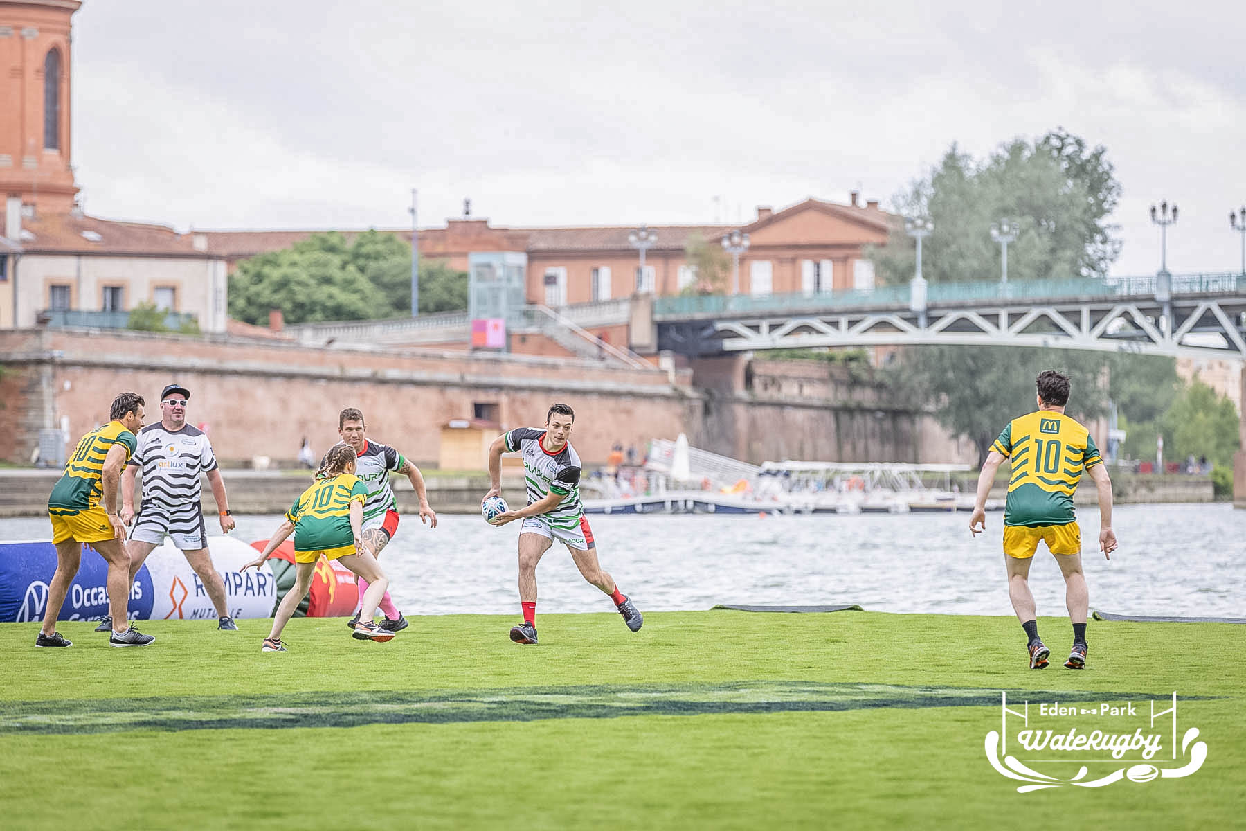 Compétition de rugby sur une barge sur la Garonne en plein centre de Toulouse