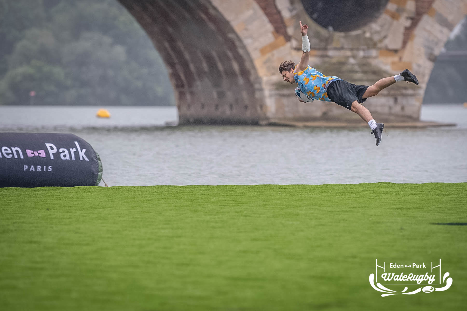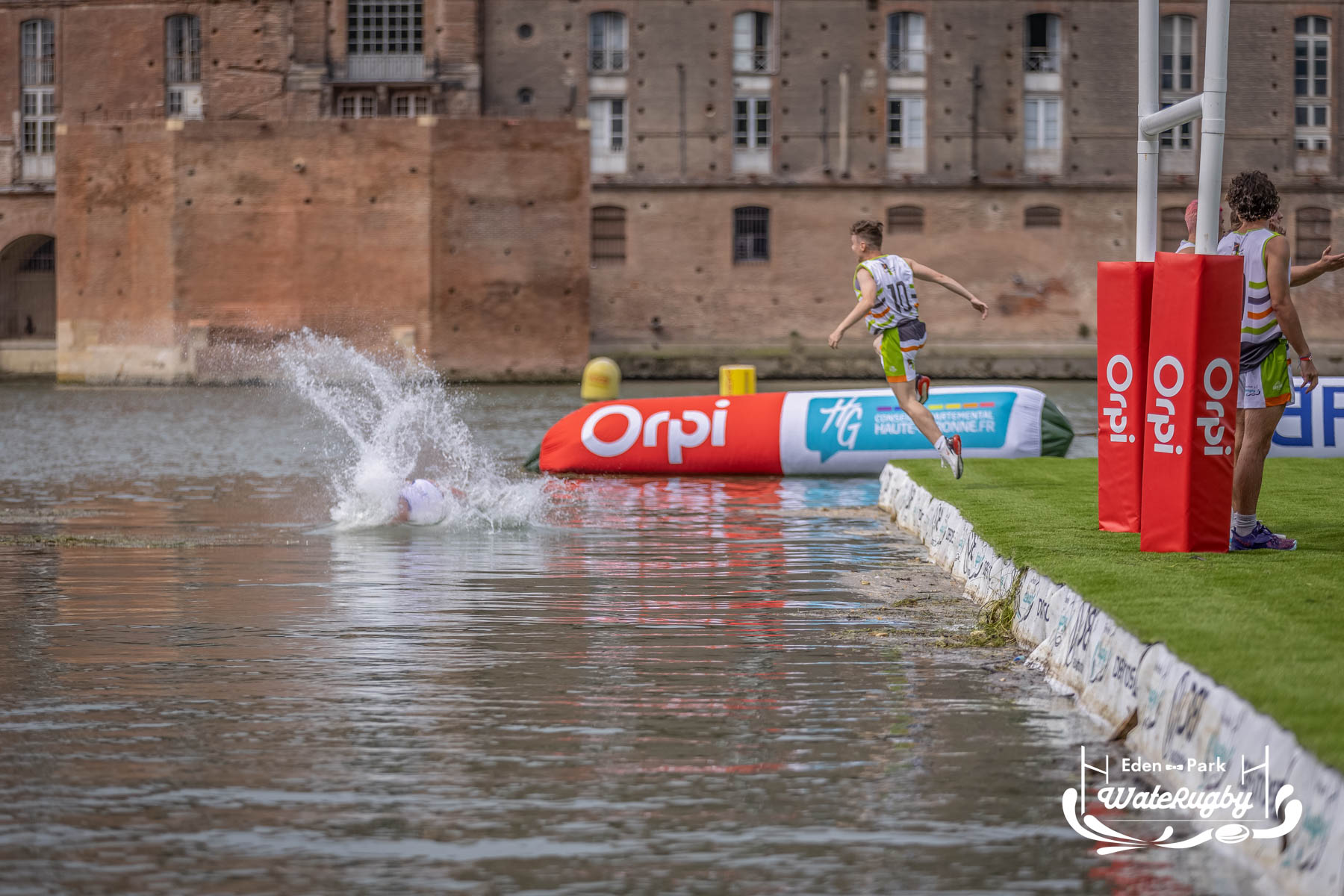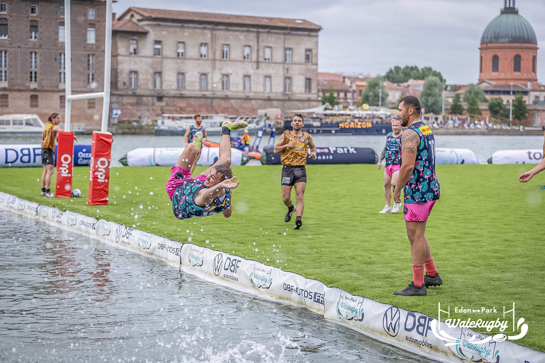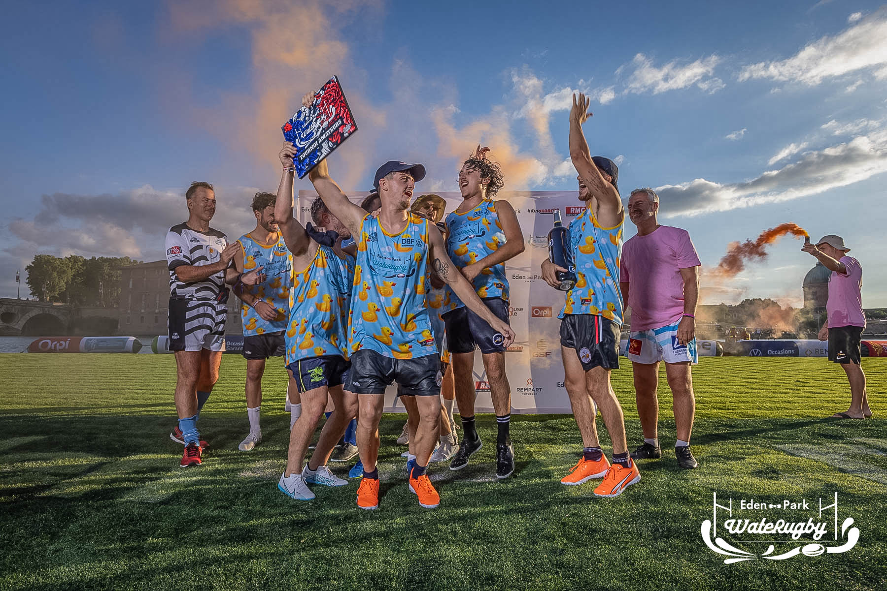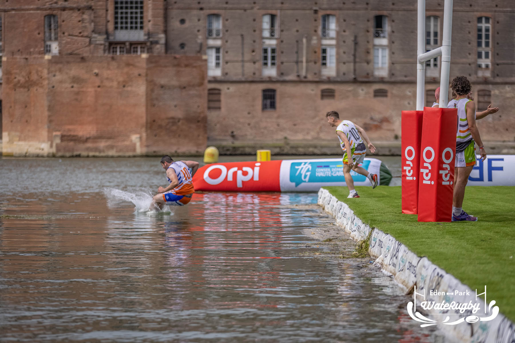 Compétition de rugby sur une barge sur la Garonne en plein centre de Toulouse