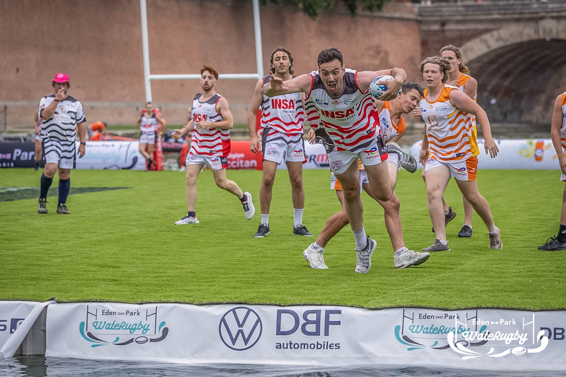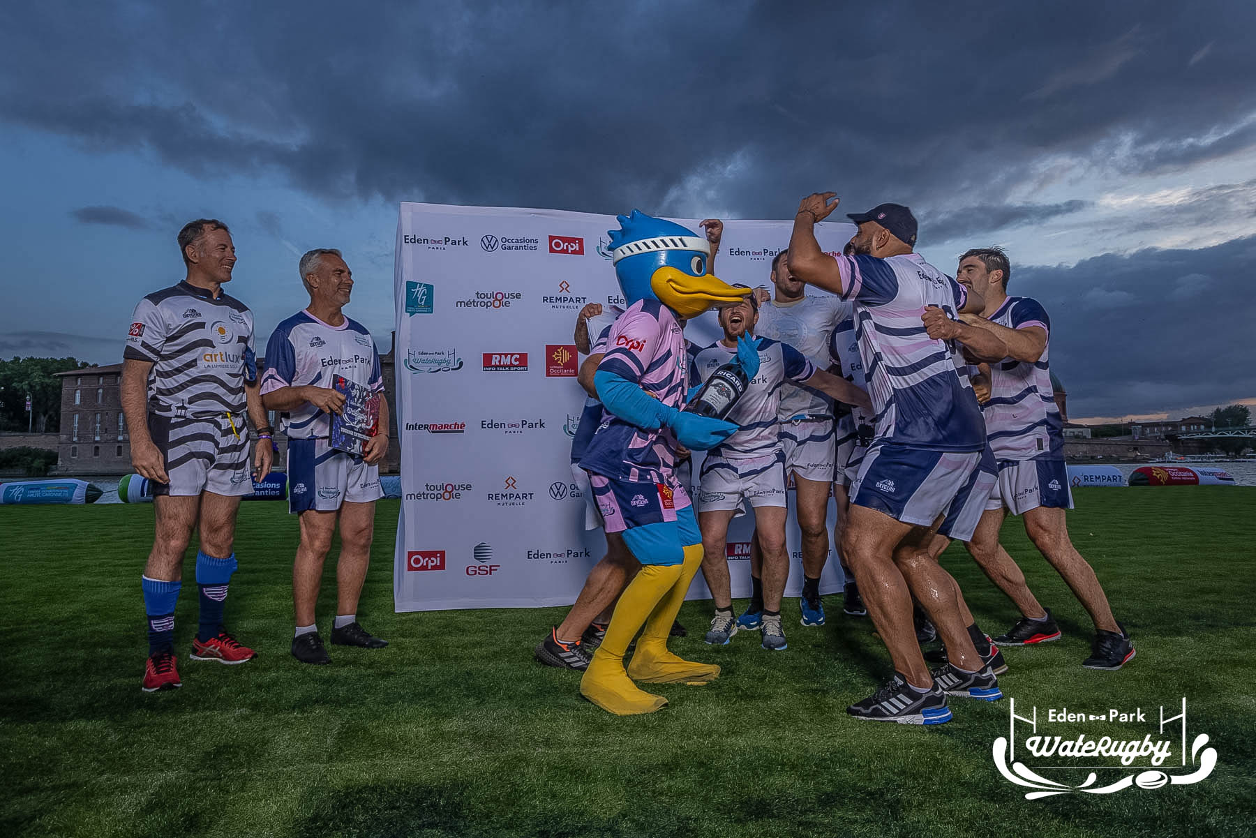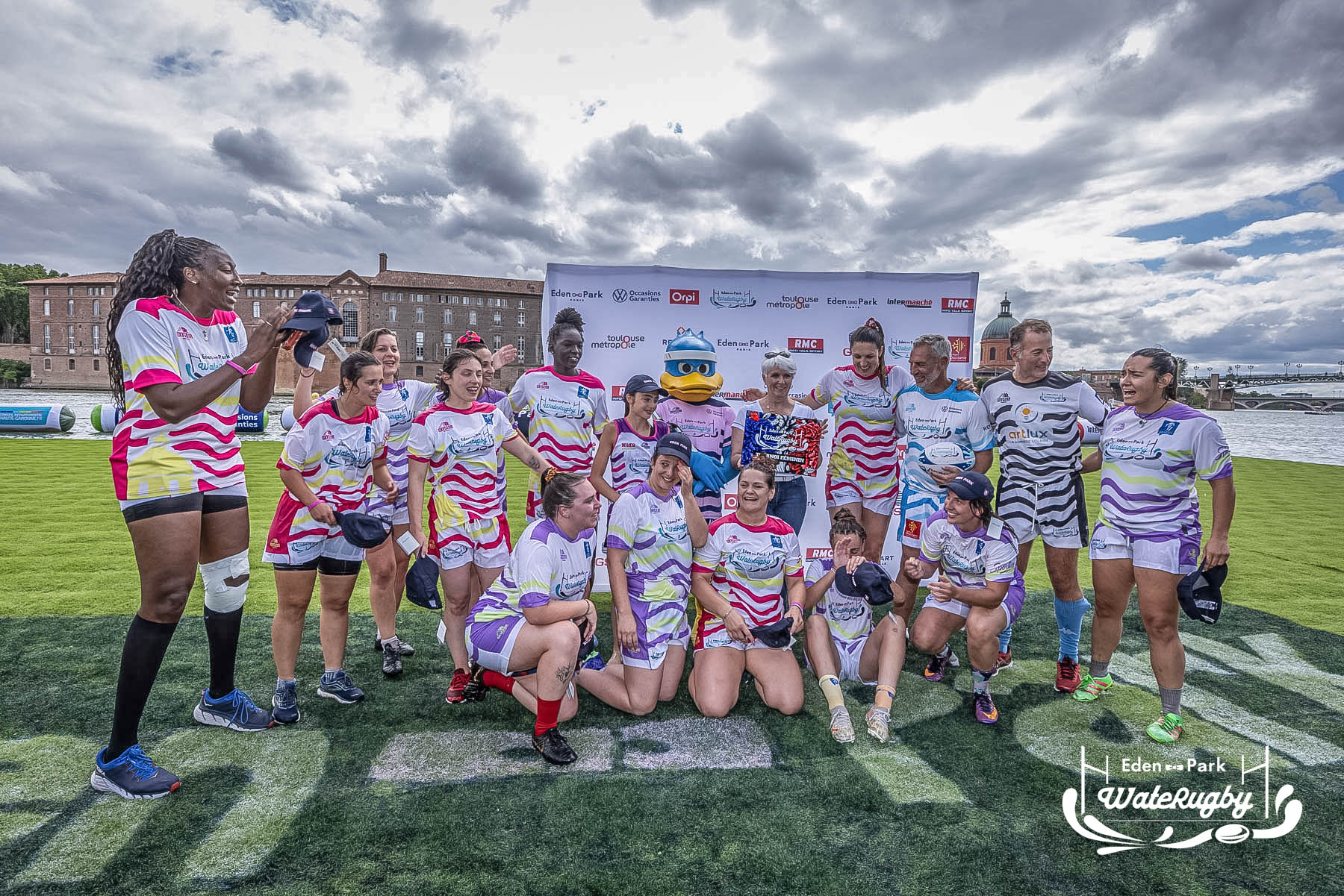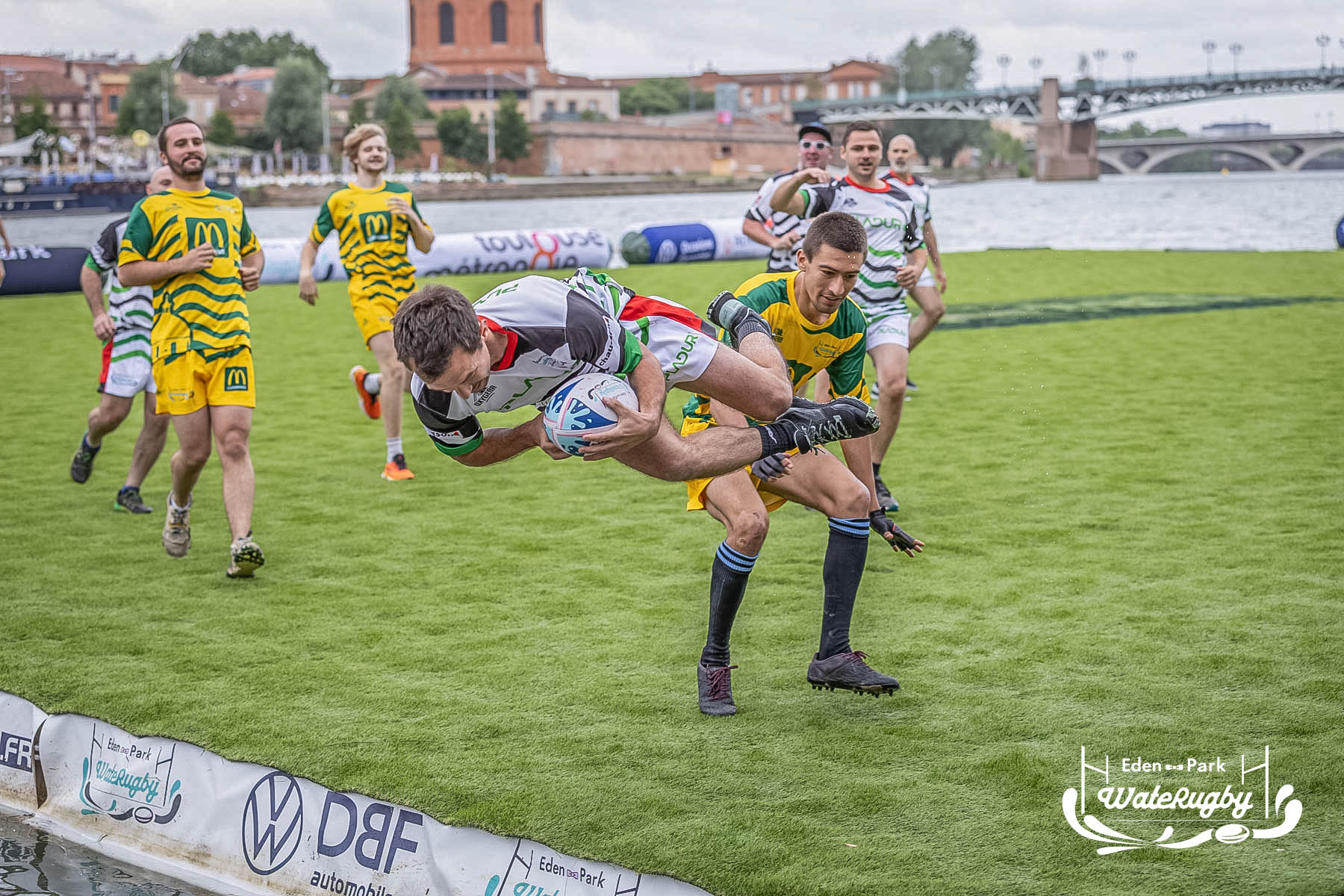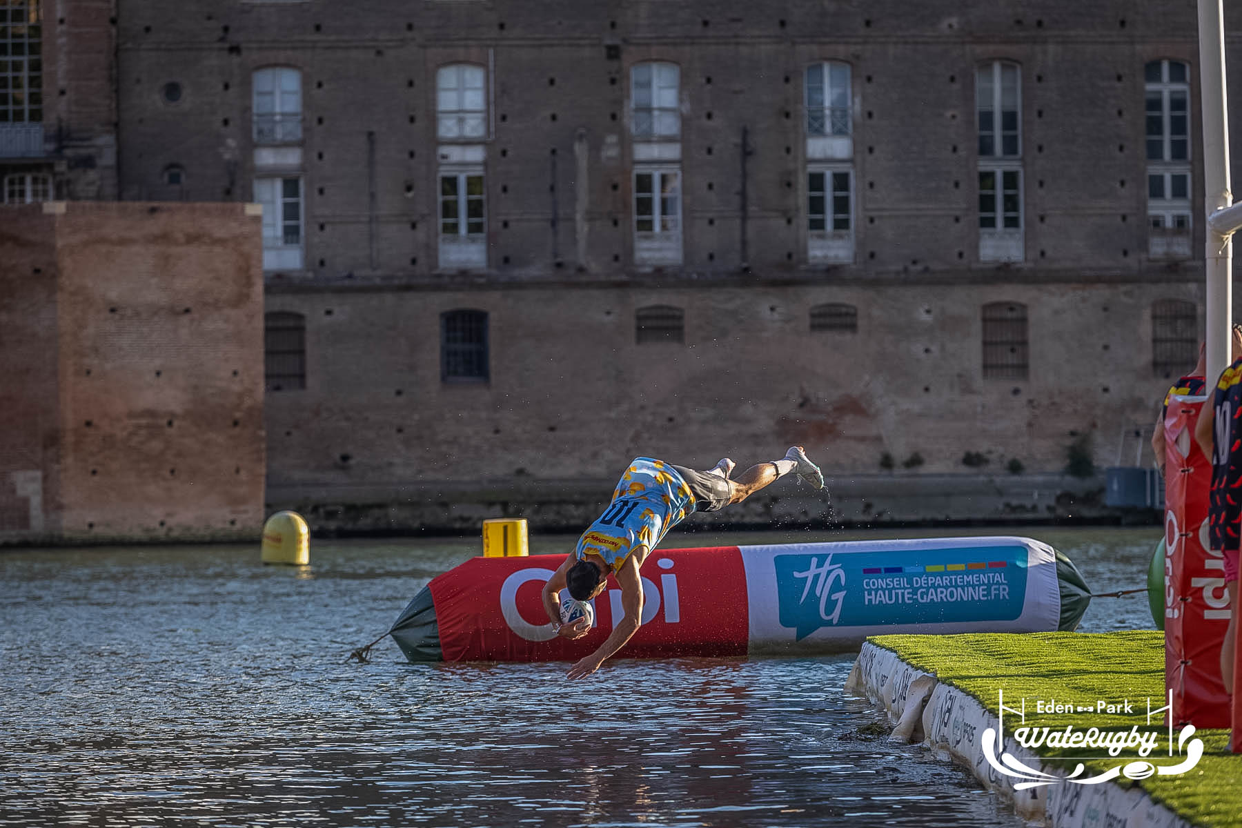 Compétition de rugby sur une barge sur la Garonne en plein centre de Toulouse