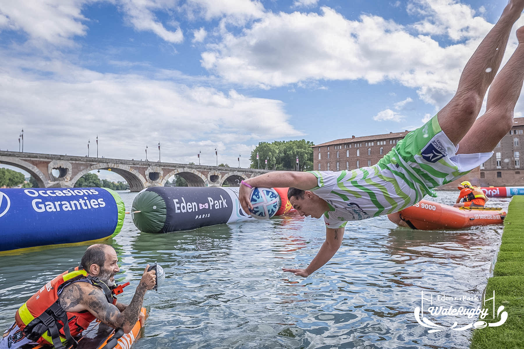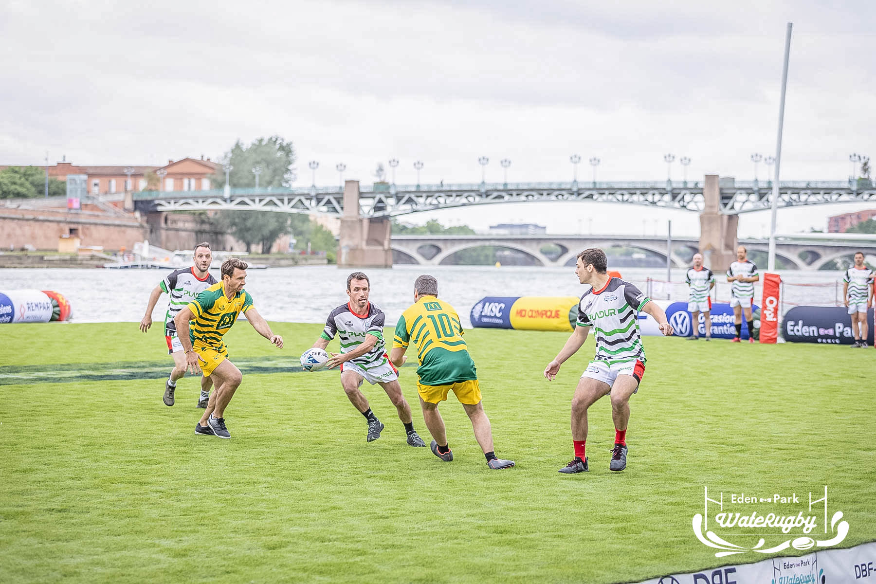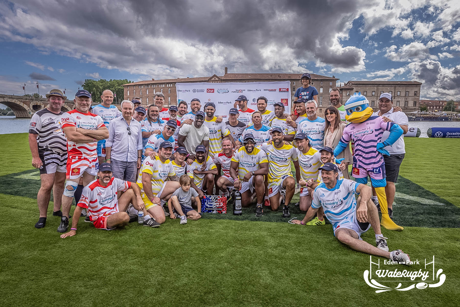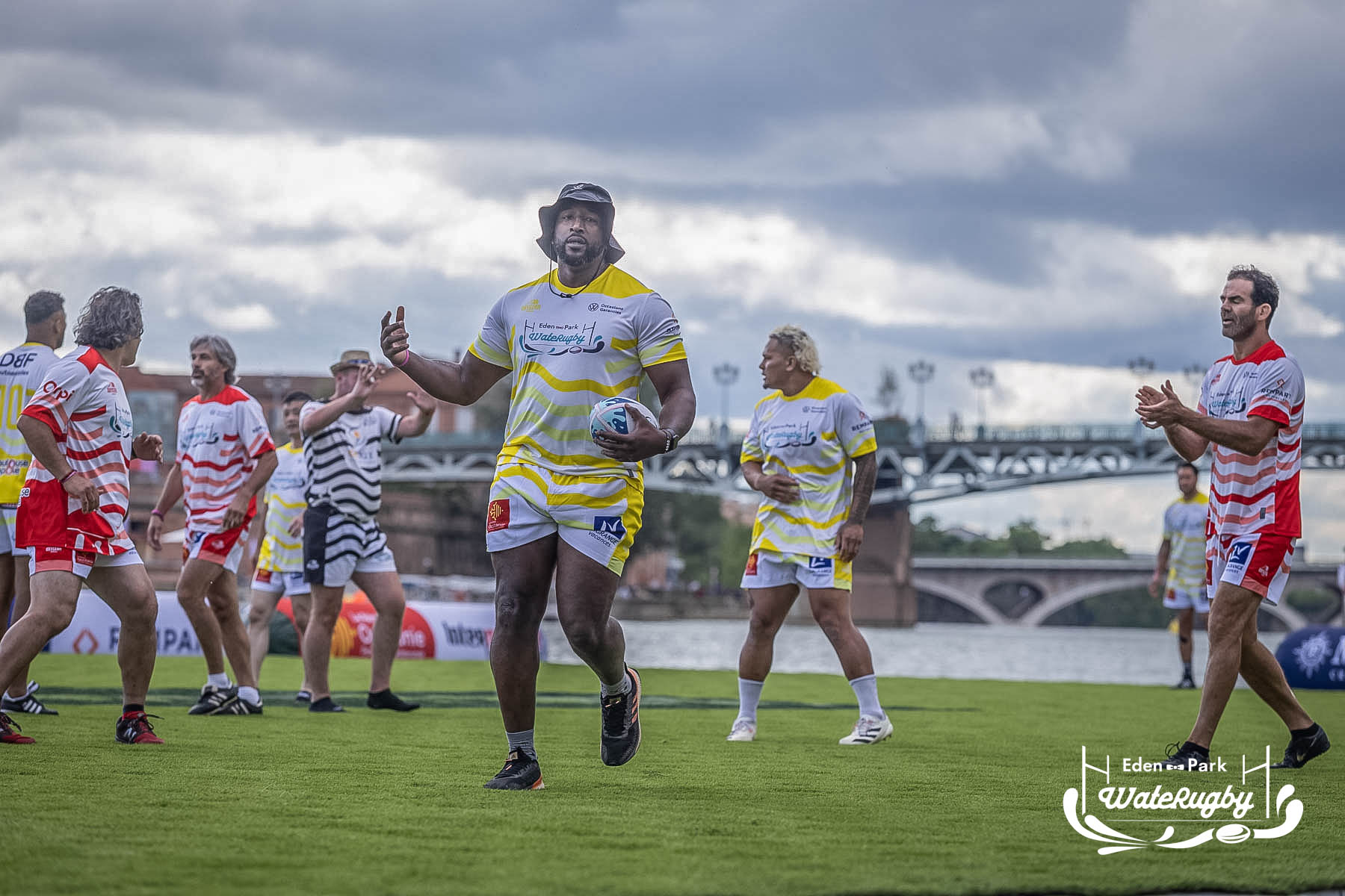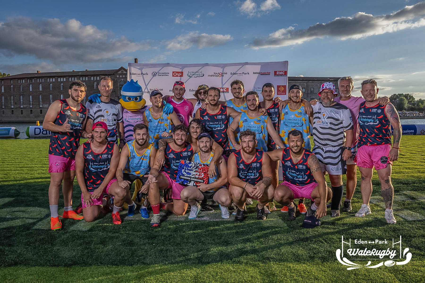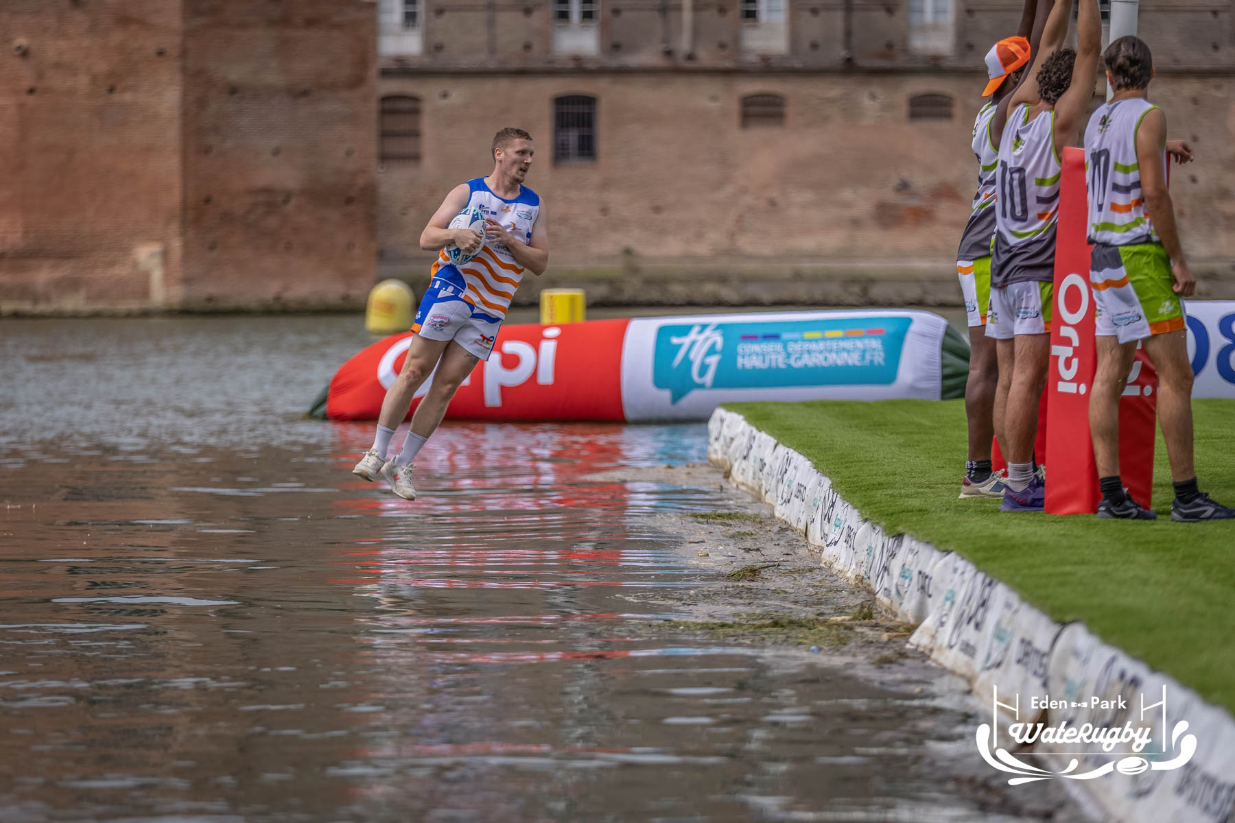 Compétition de rugby sur une barge sur la Garonne en plein centre de Toulouse