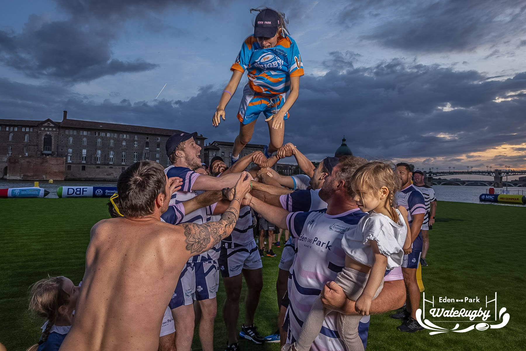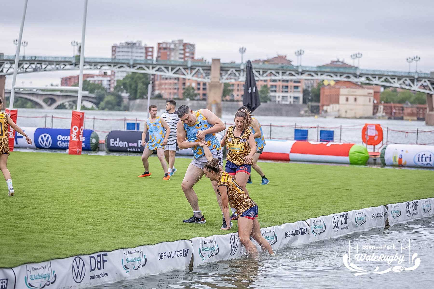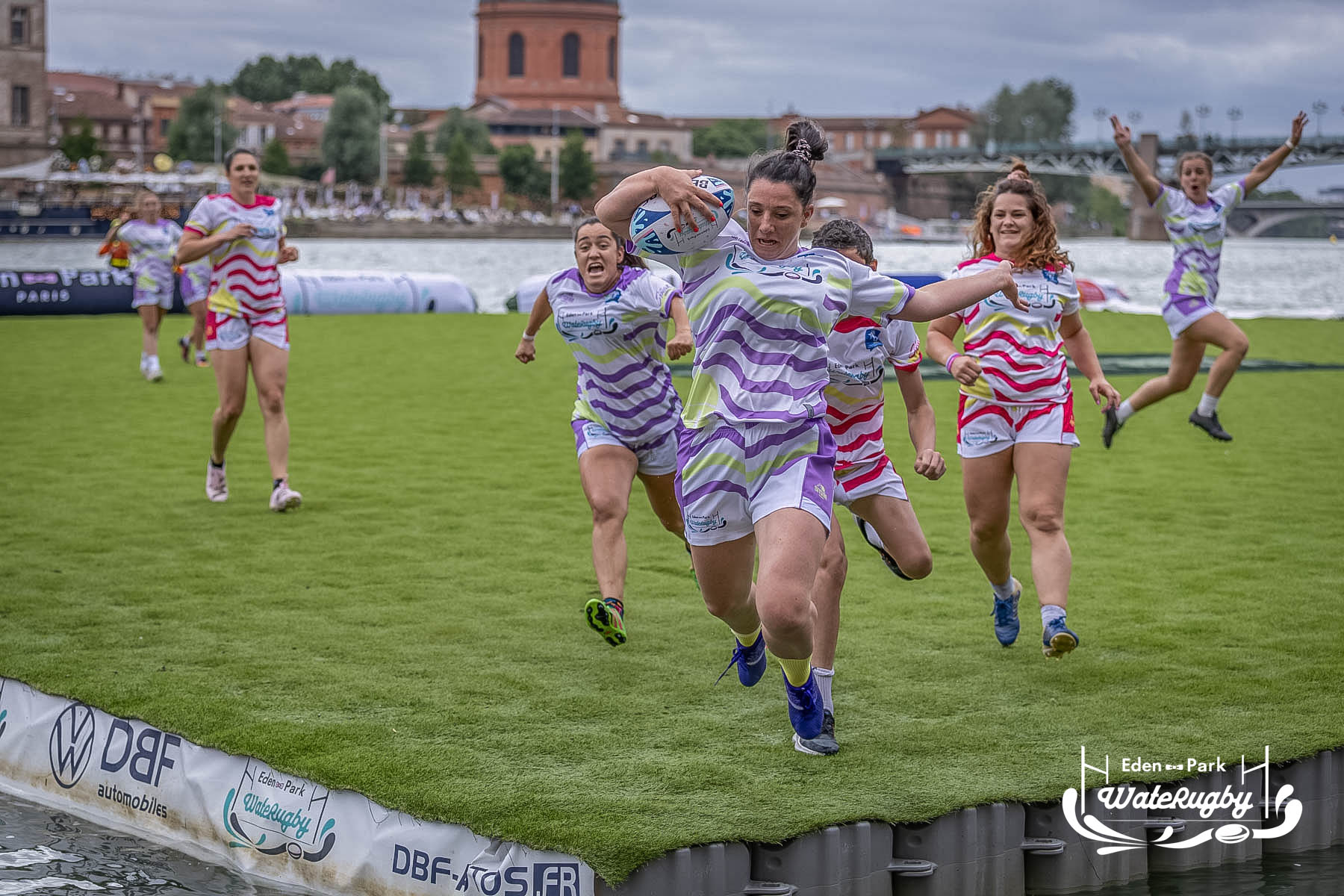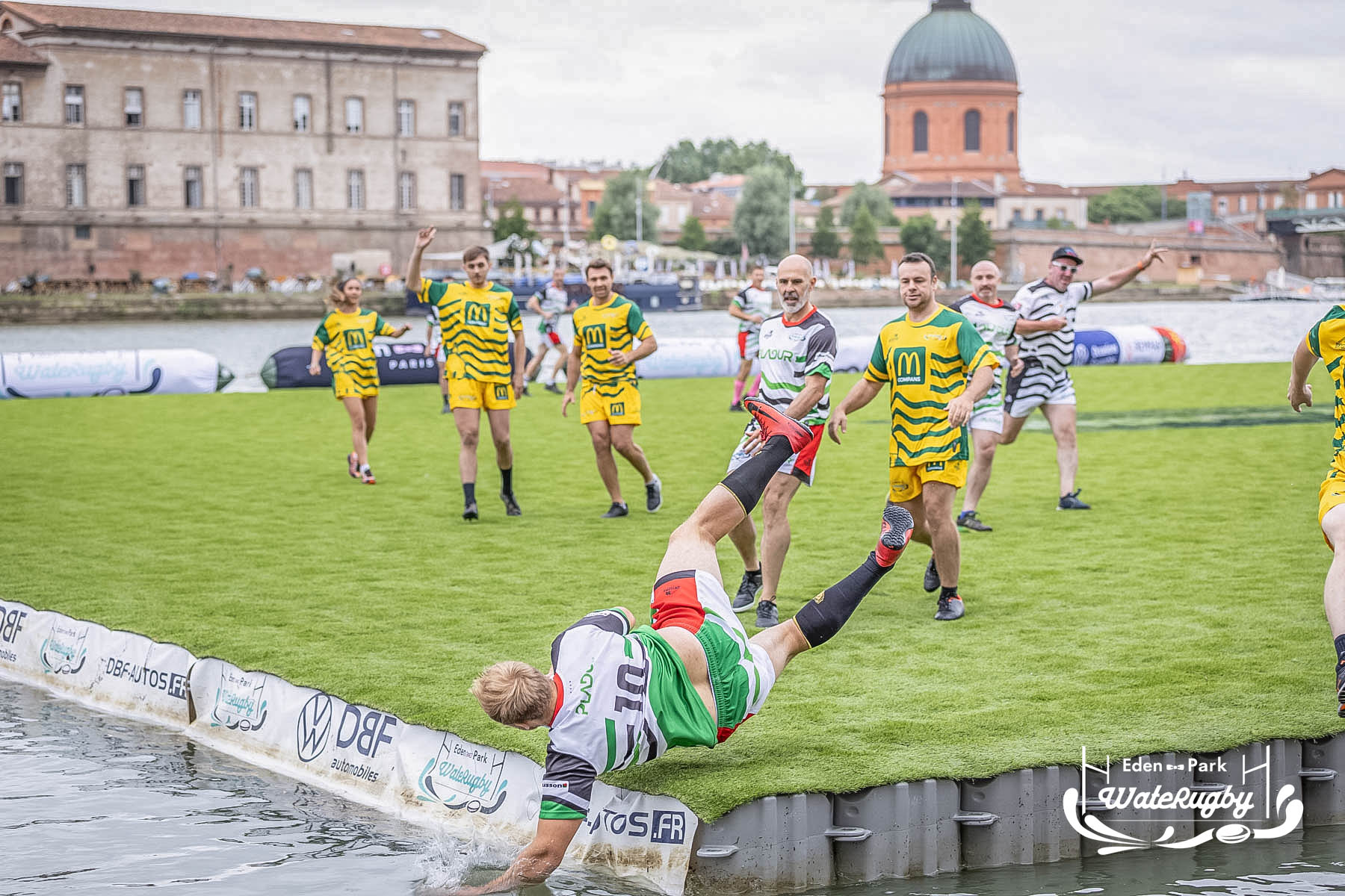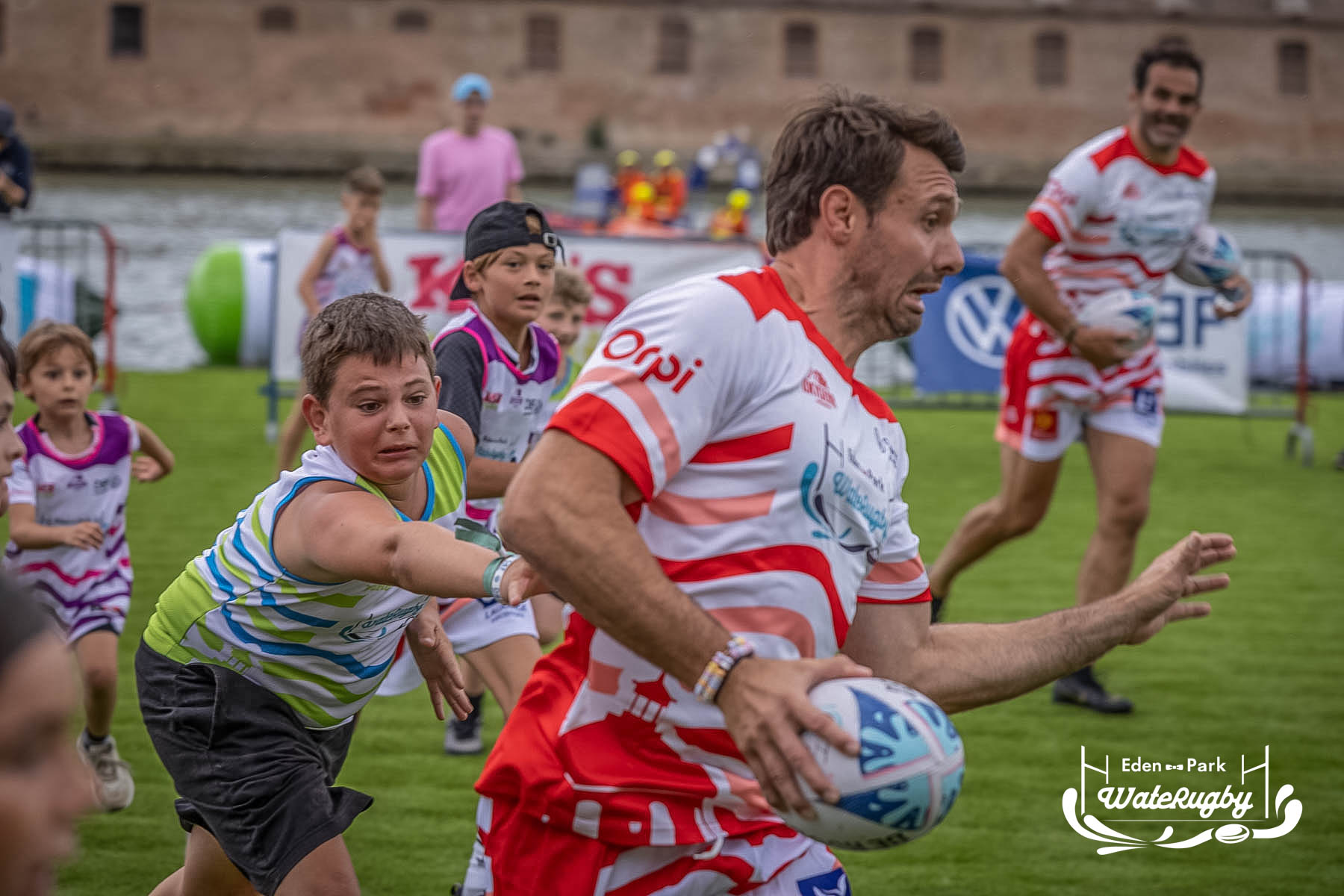Compétition de rugby sur une barge sur la Garonne en plein centre de Toulouse