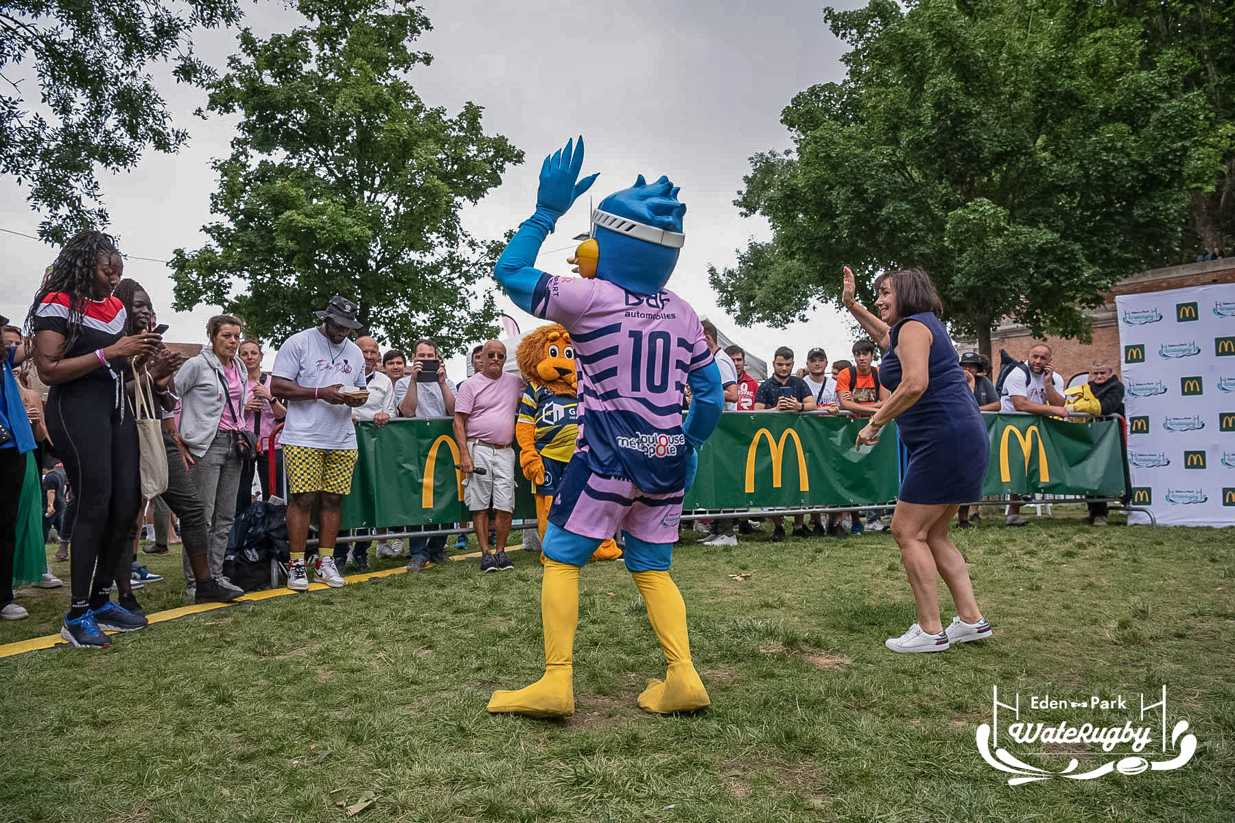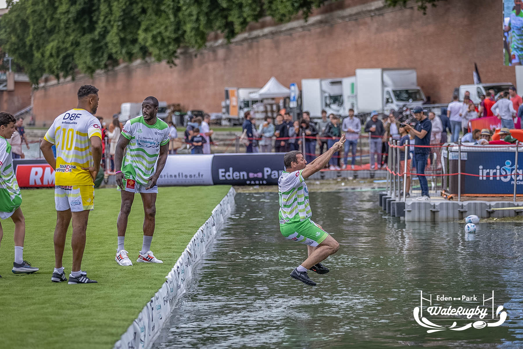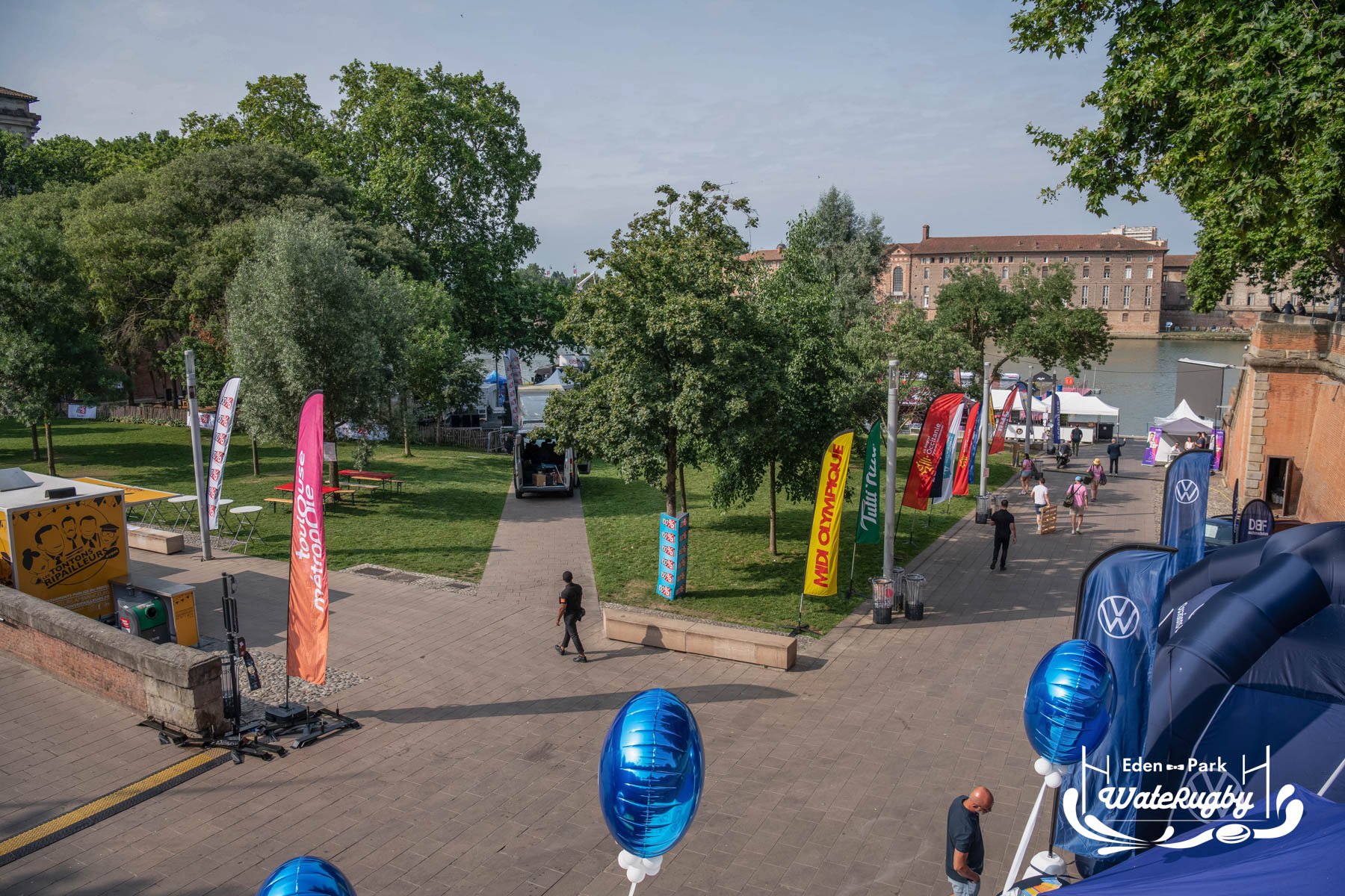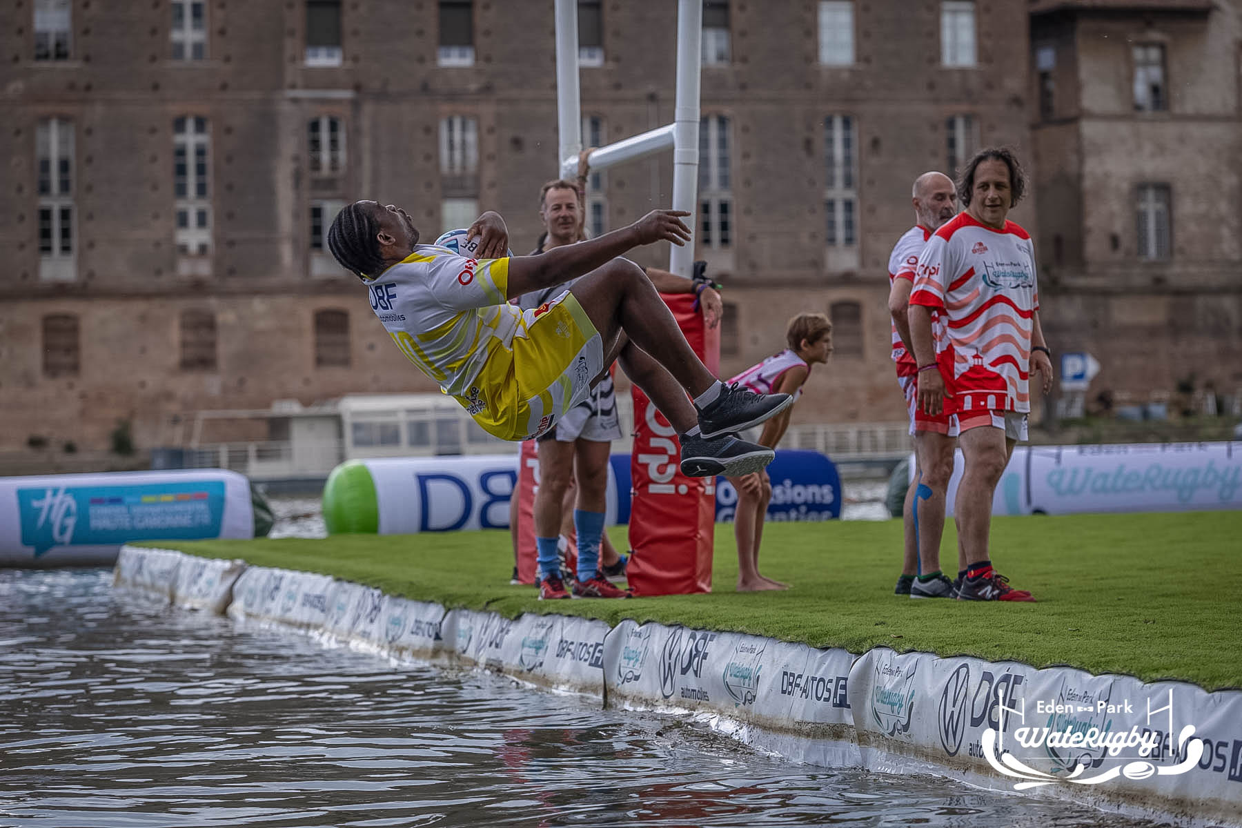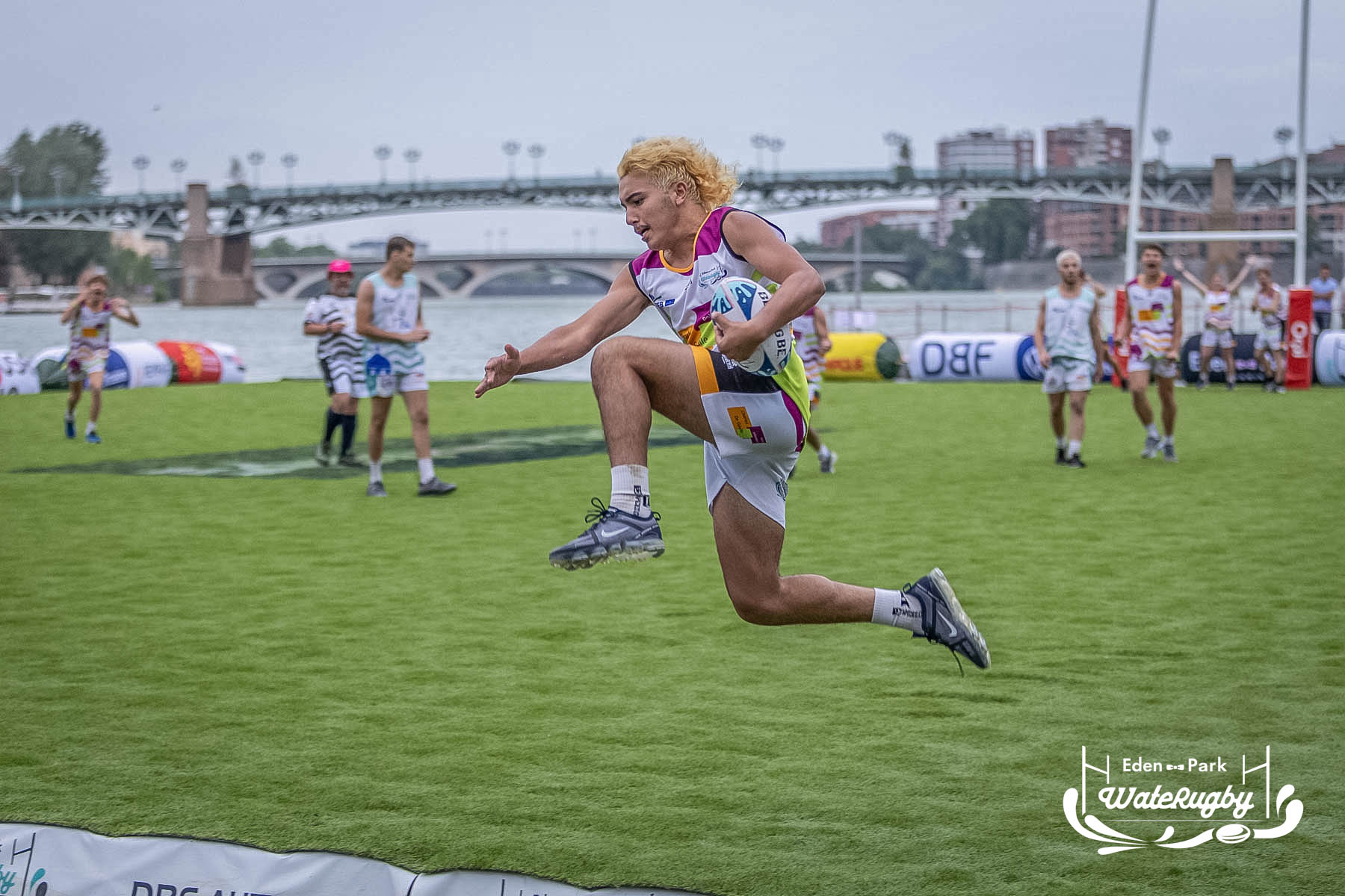 Compétition de rugby sur une barge sur la Garonne en plein centre de Toulouse