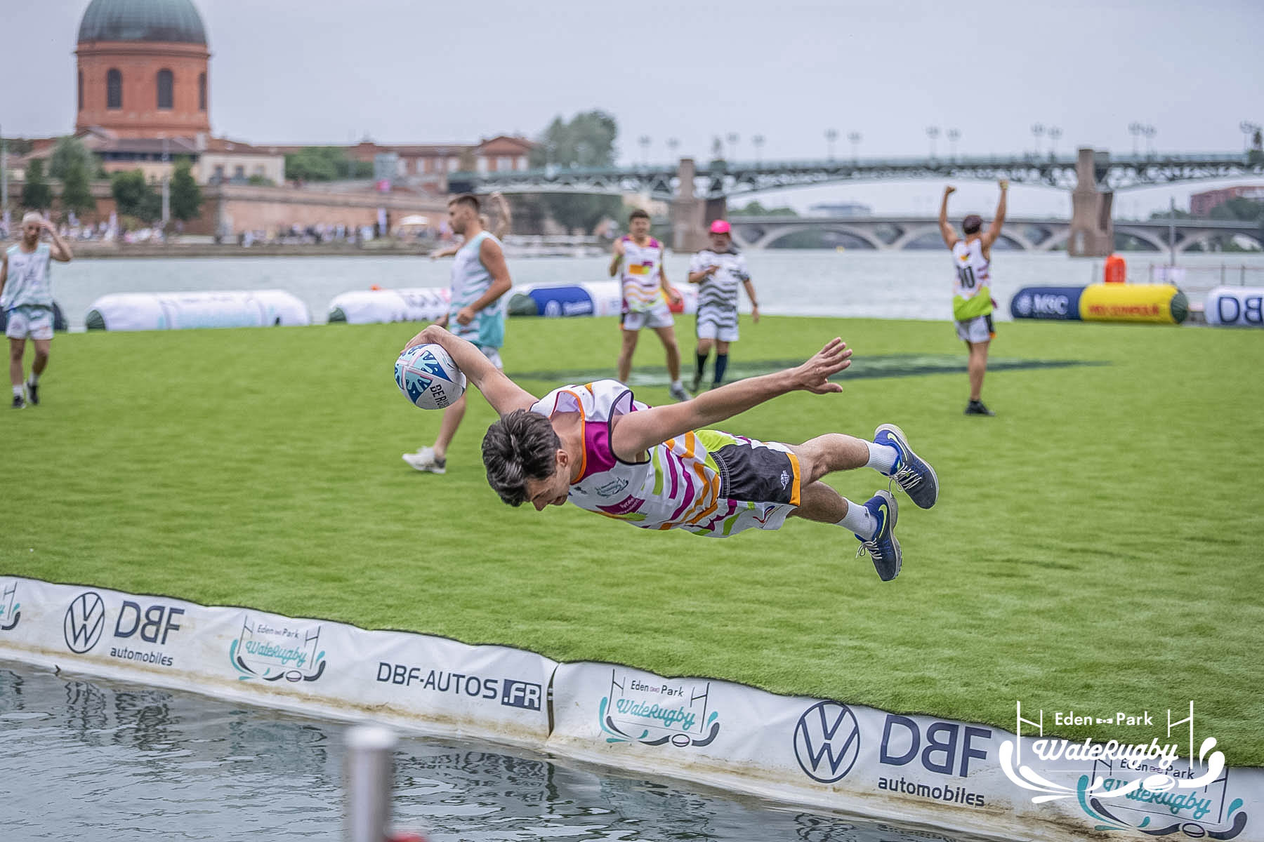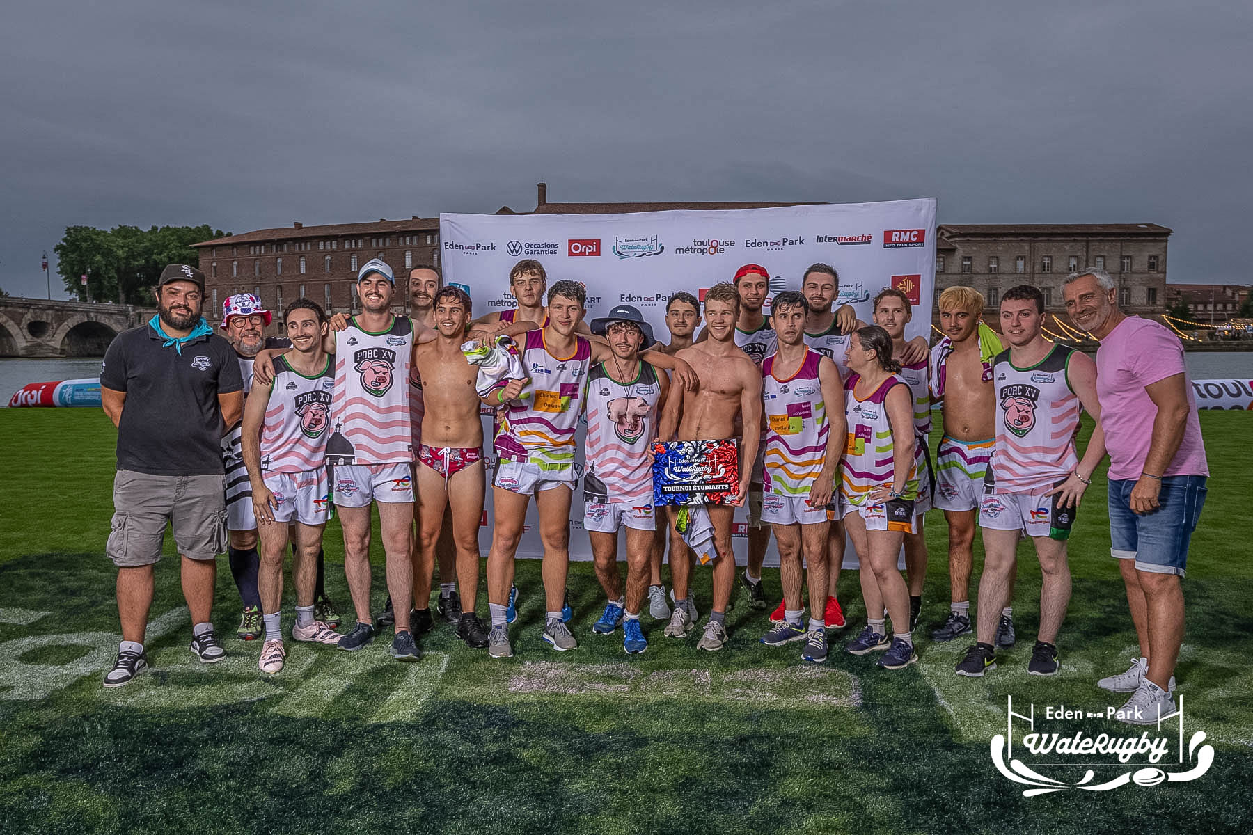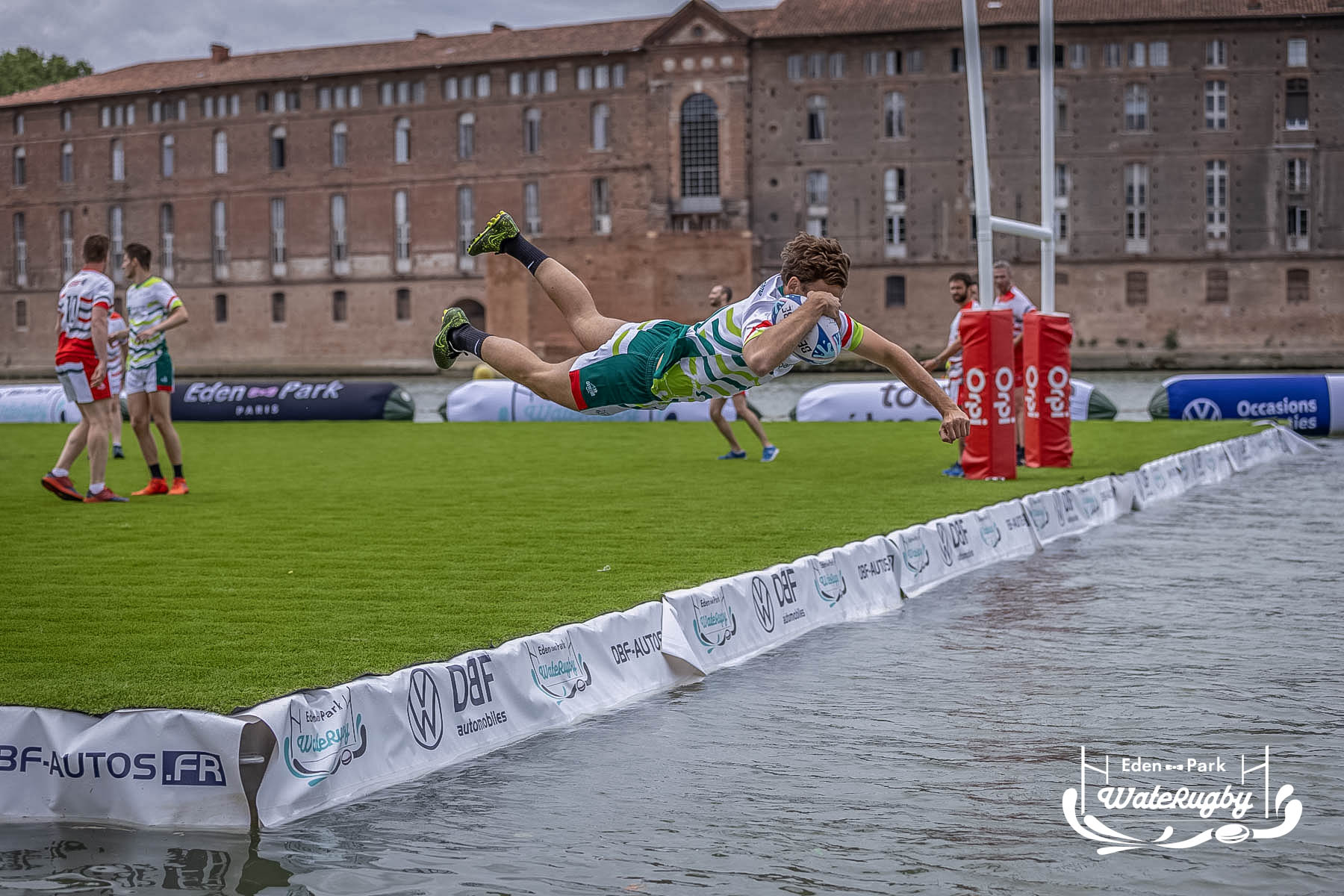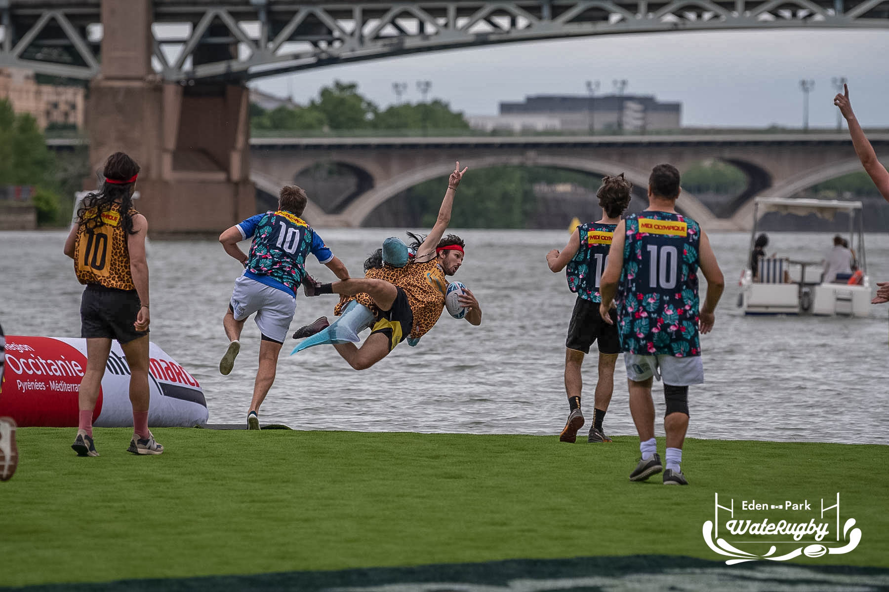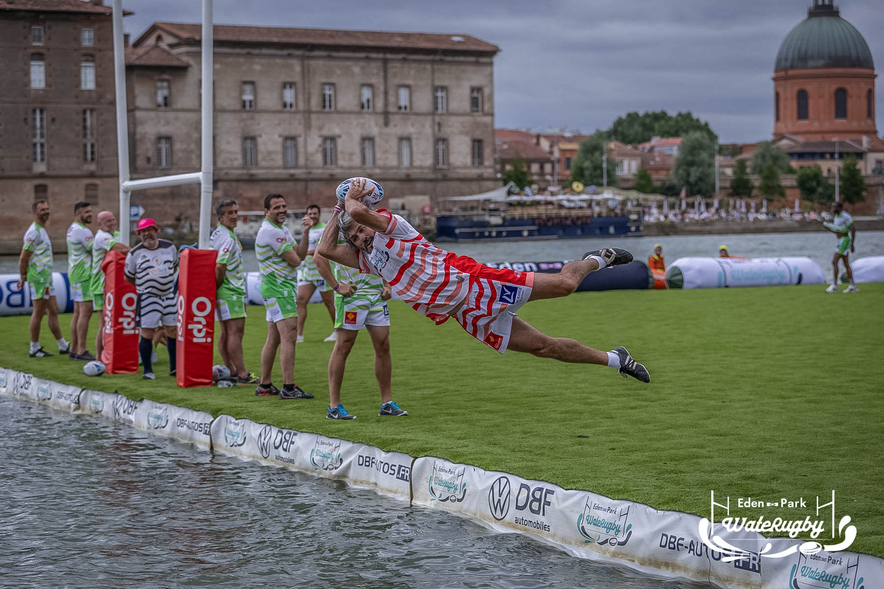 Compétition de rugby sur une barge sur la Garonne en plein centre de Toulouse