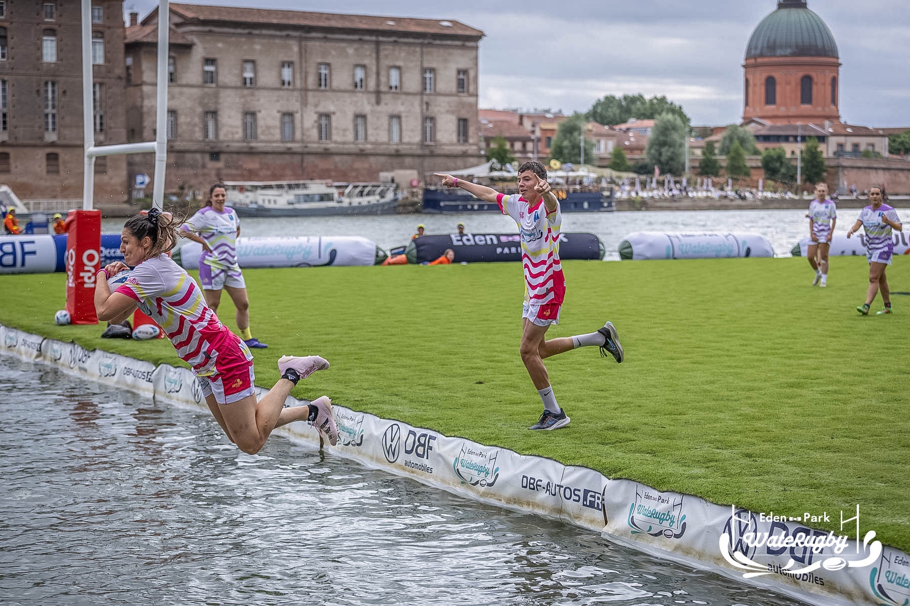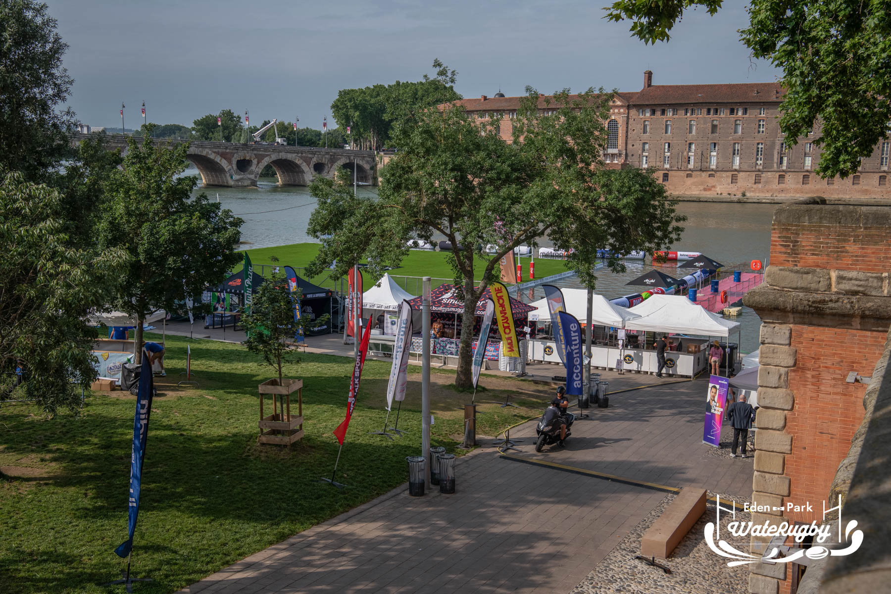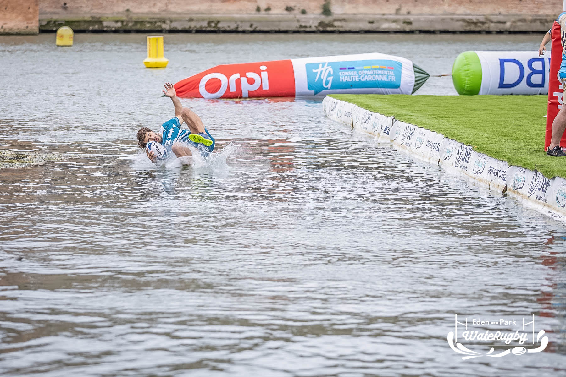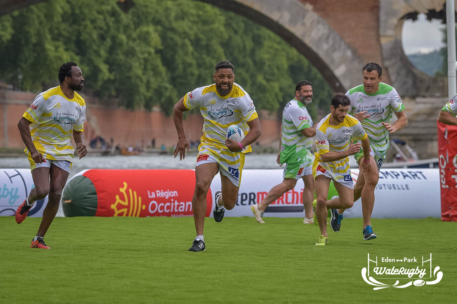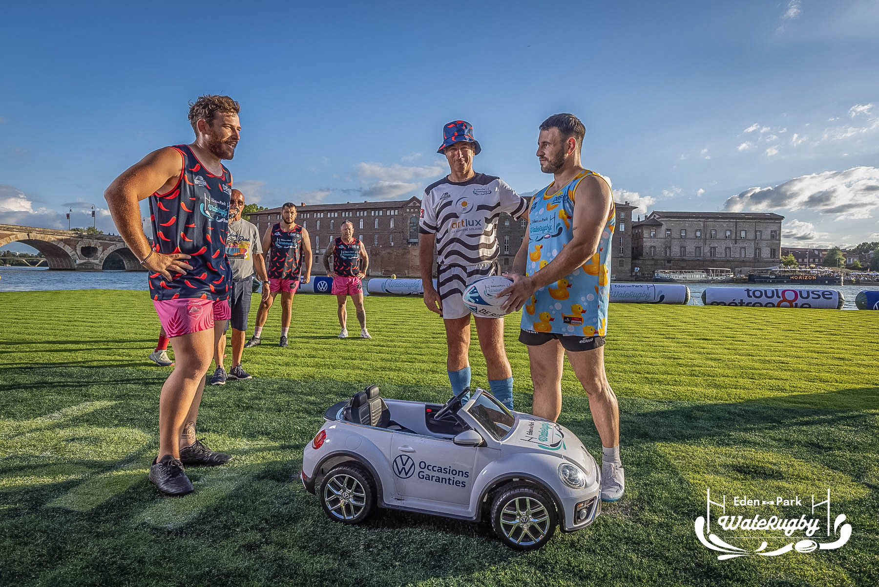 Compétition de rugby sur une barge sur la Garonne en plein centre de Toulouse