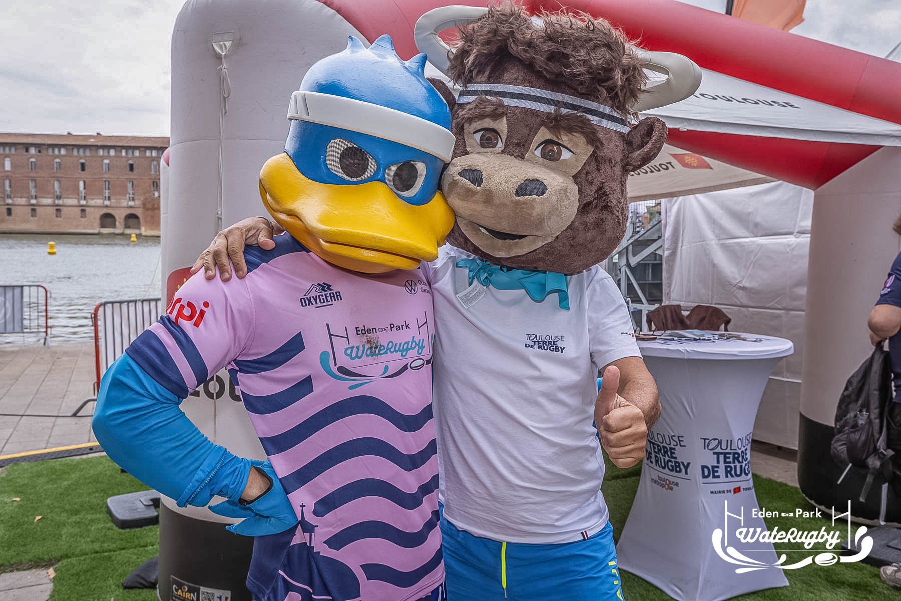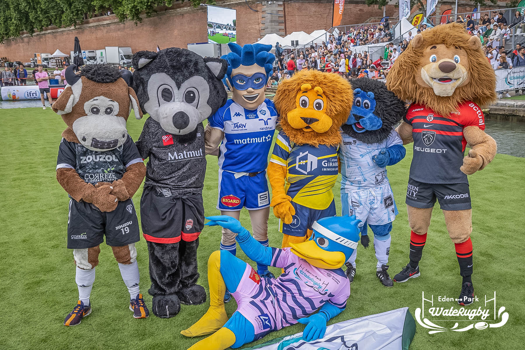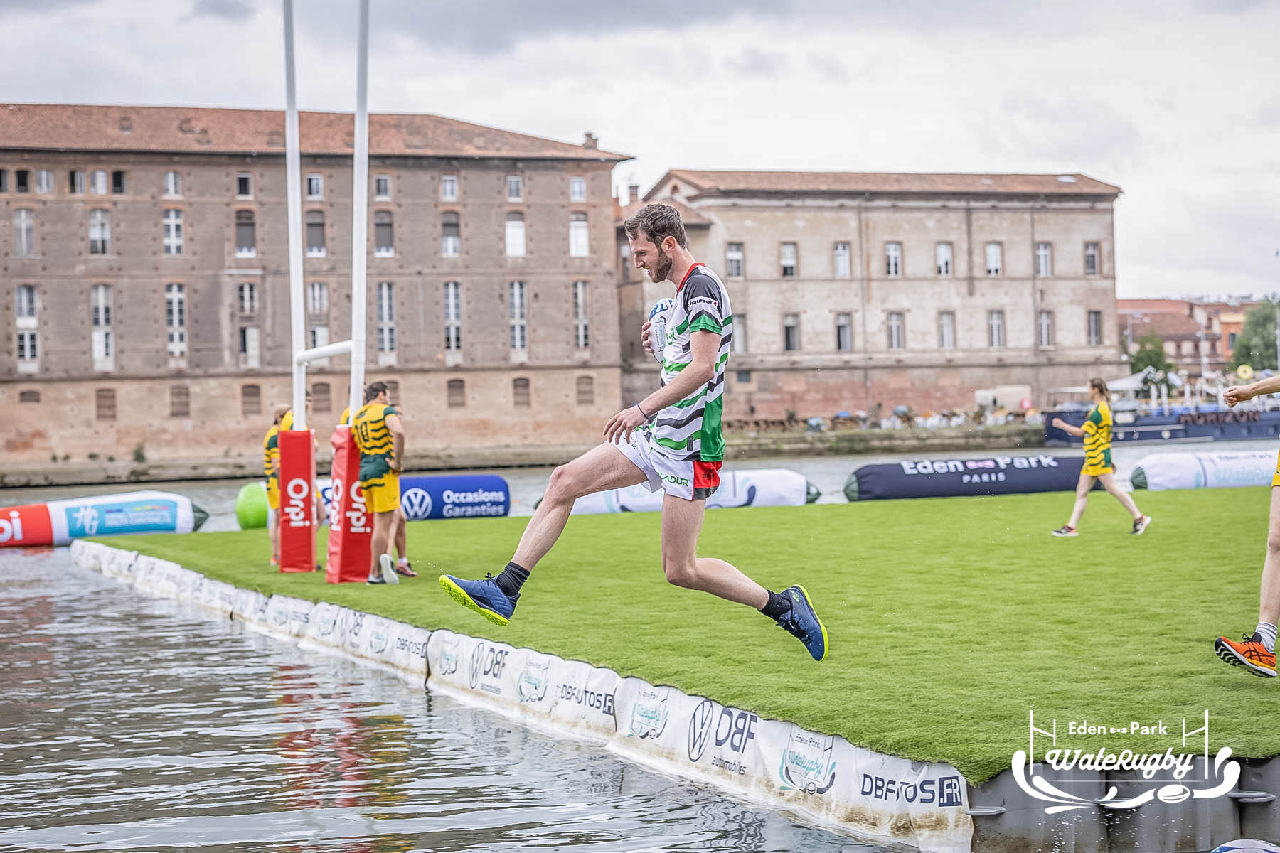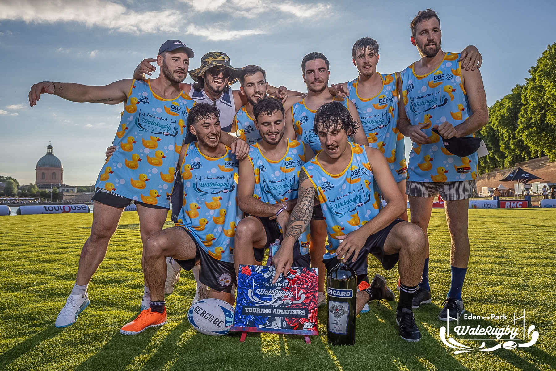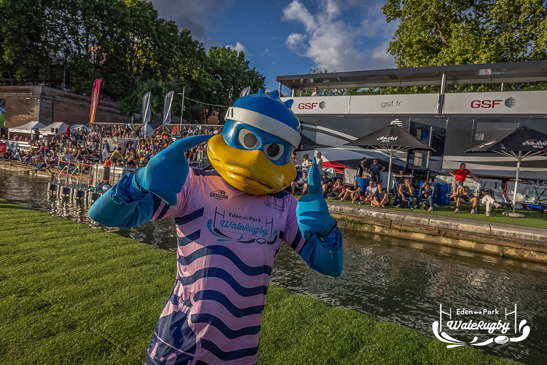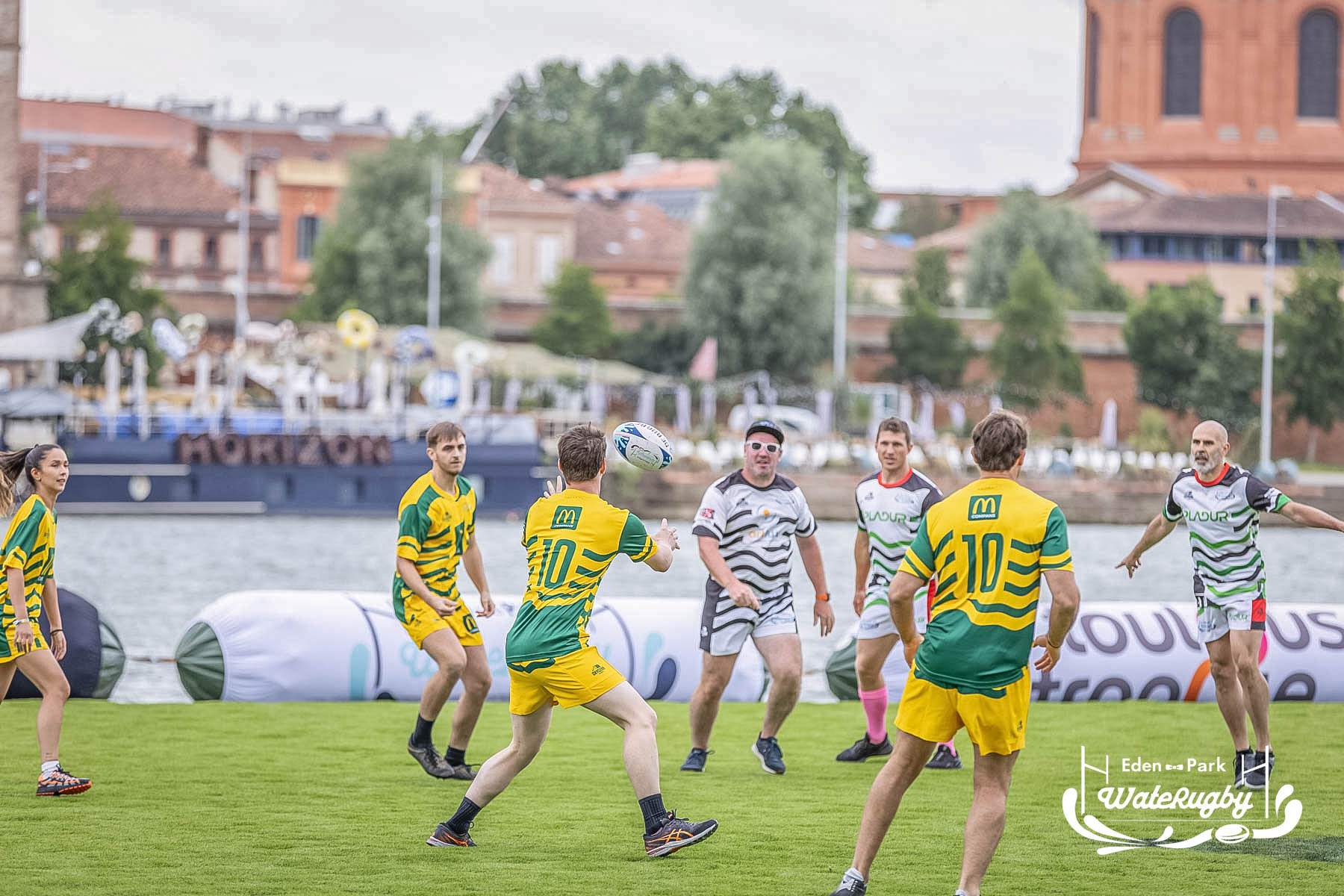 Compétition de rugby sur une barge sur la Garonne en plein centre de Toulouse
