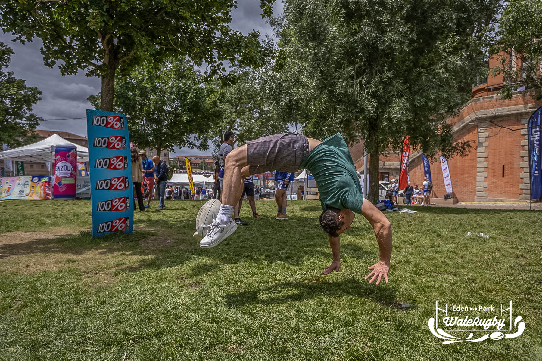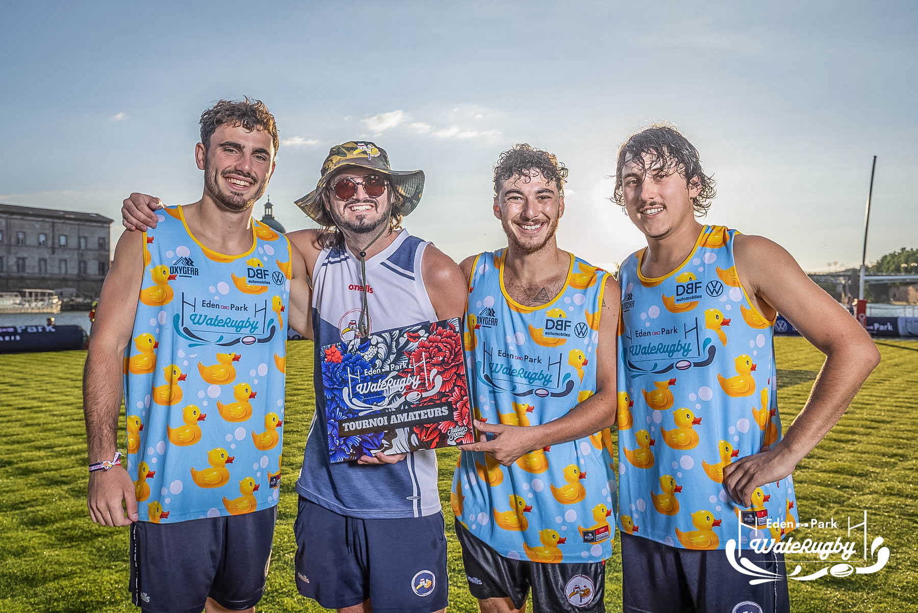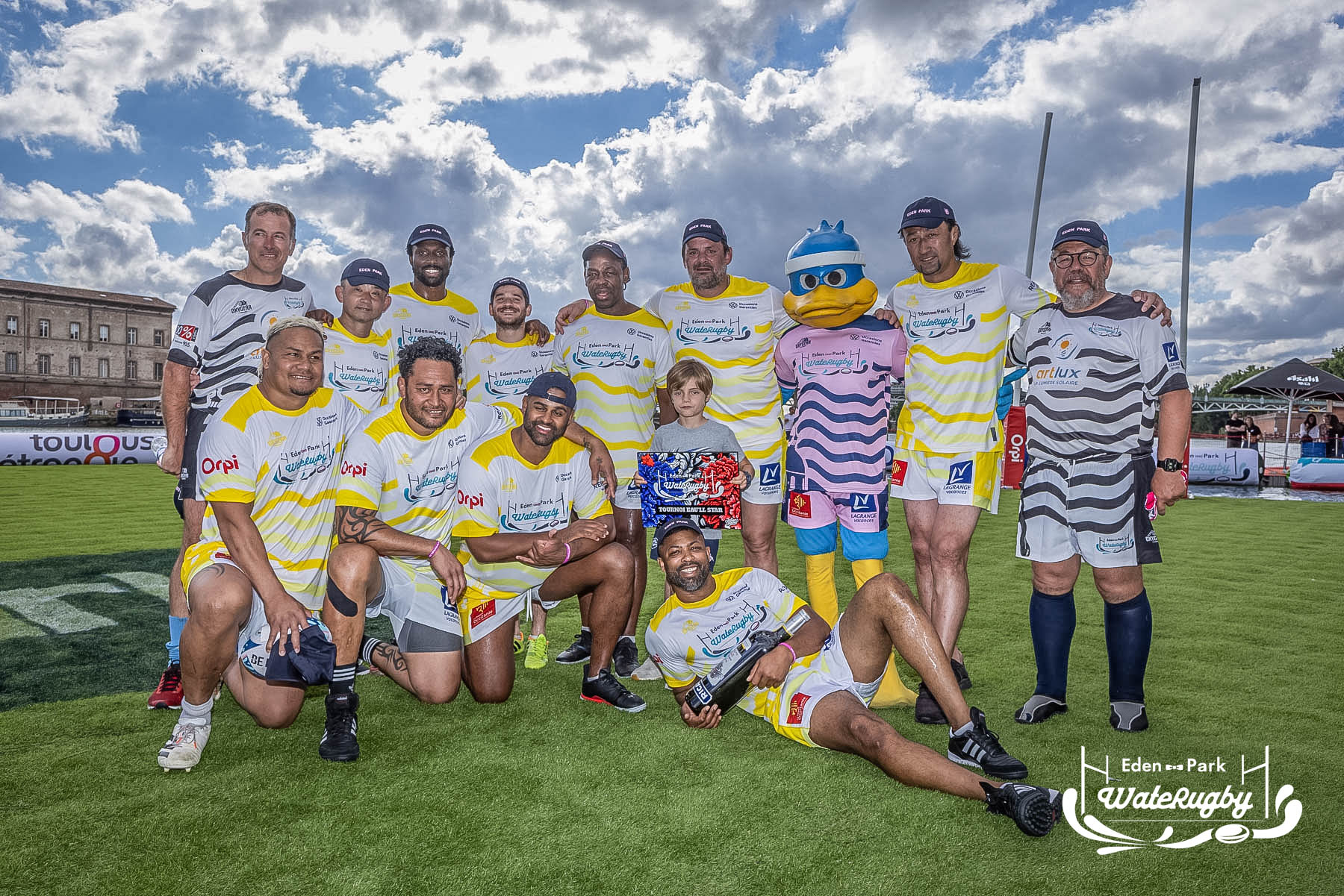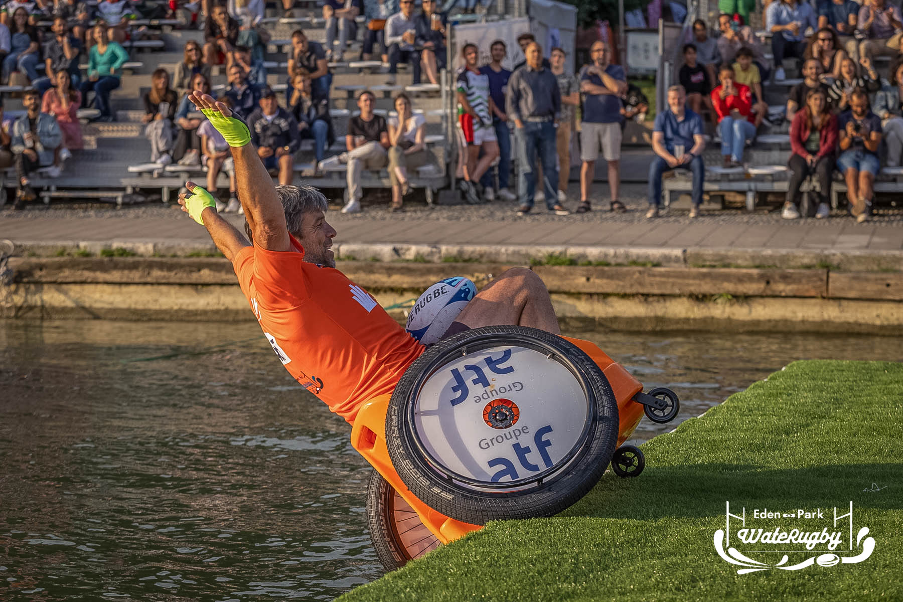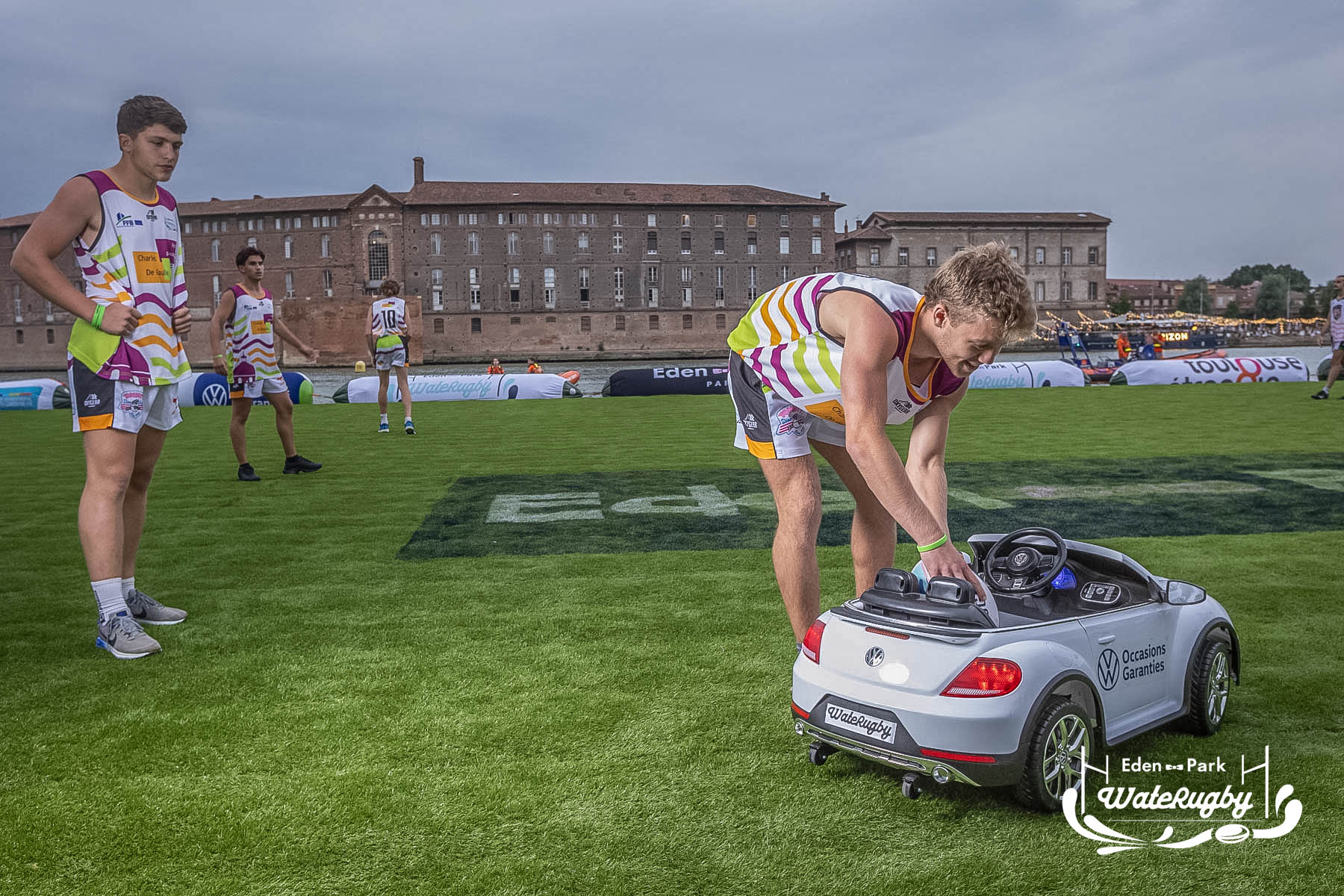 Compétition de rugby sur une barge sur la Garonne en plein centre de Toulouse
