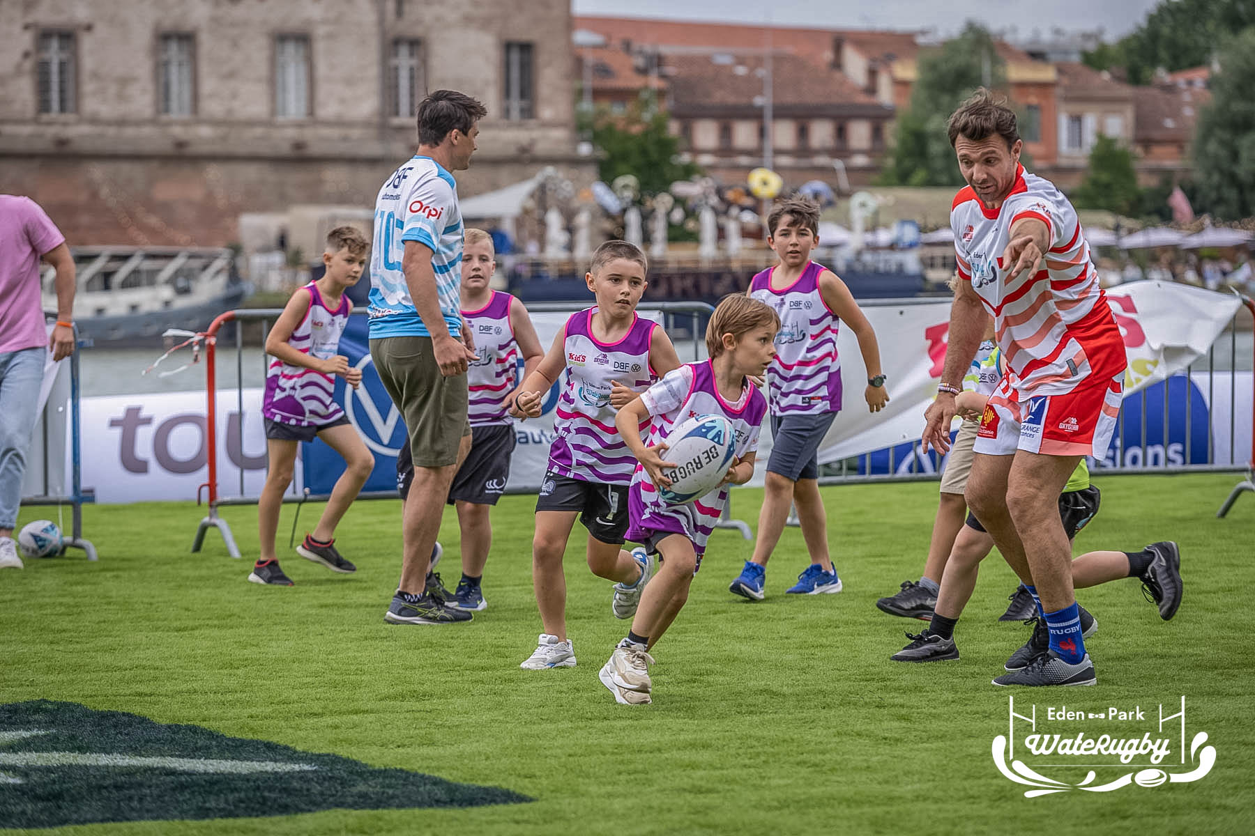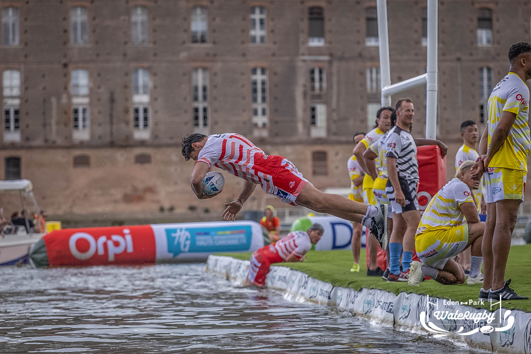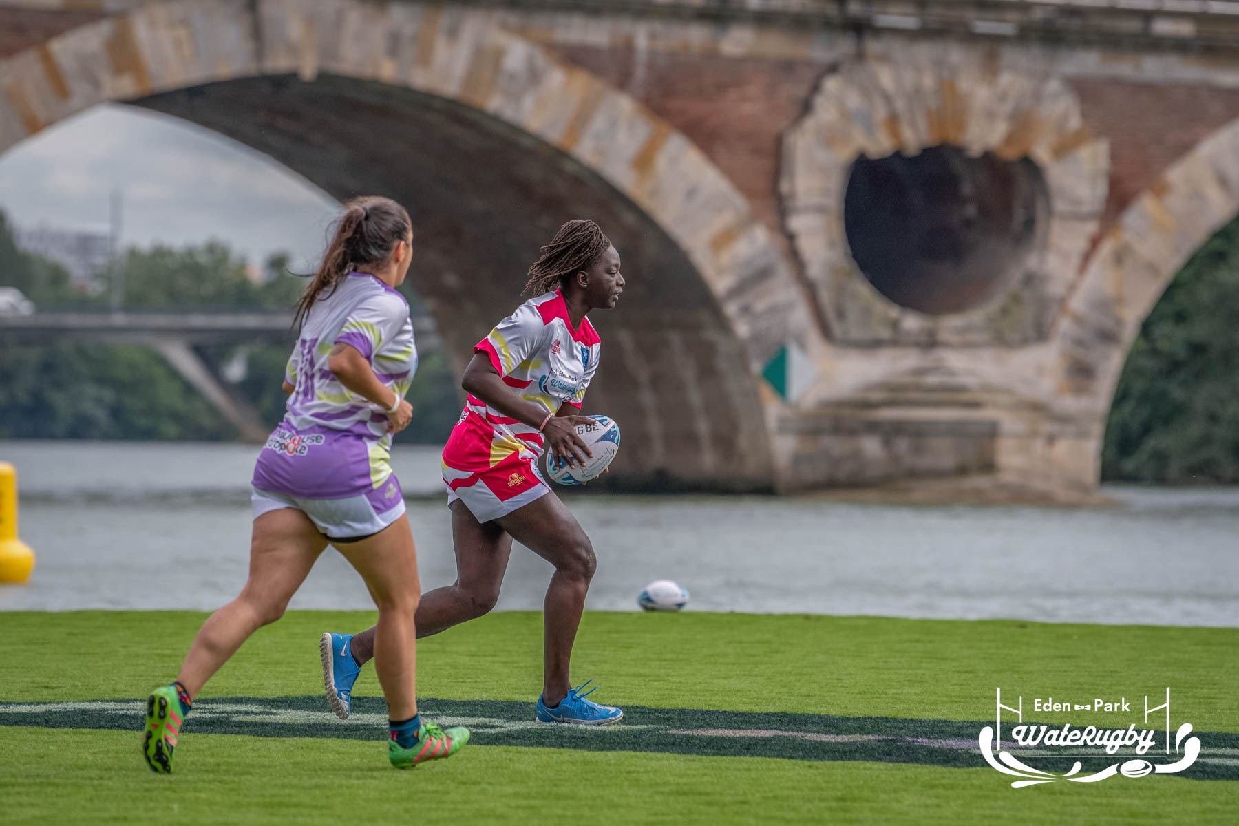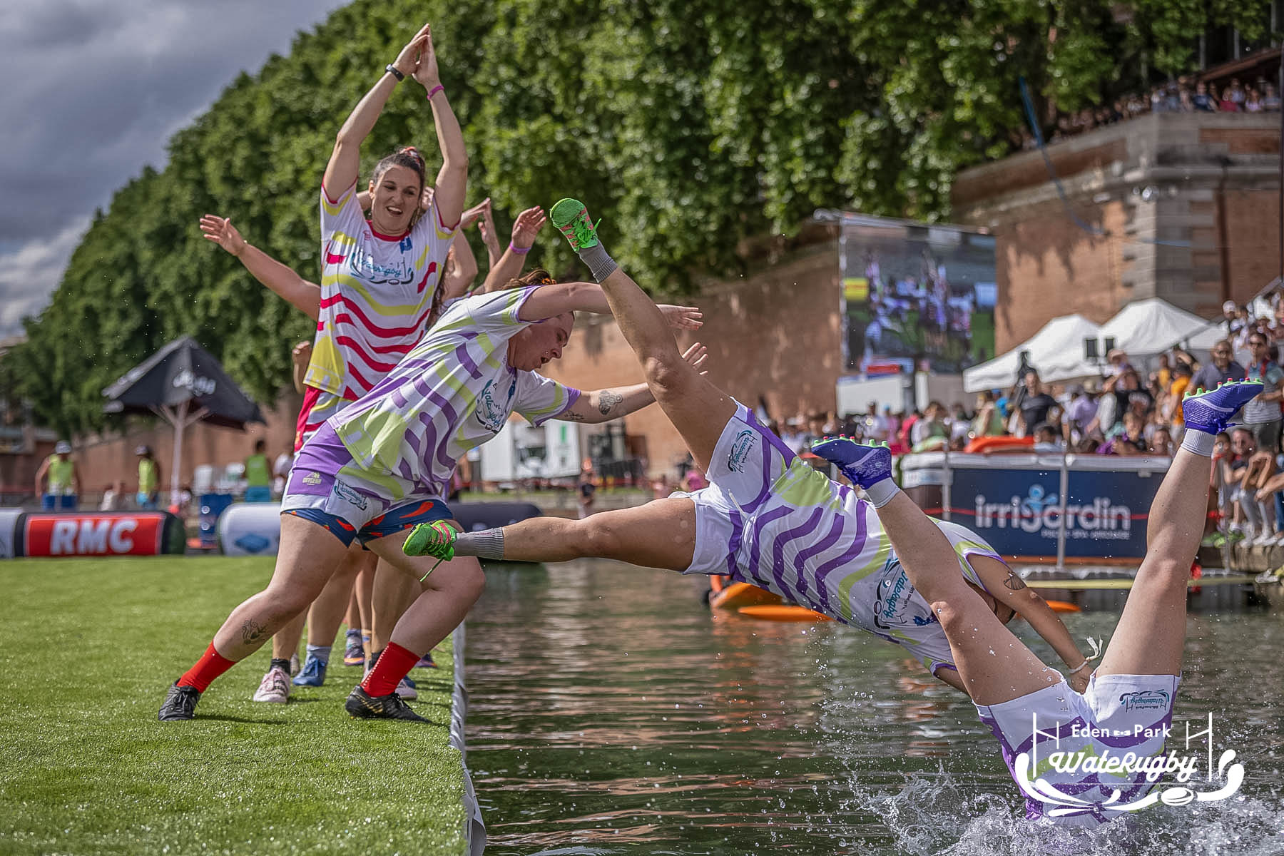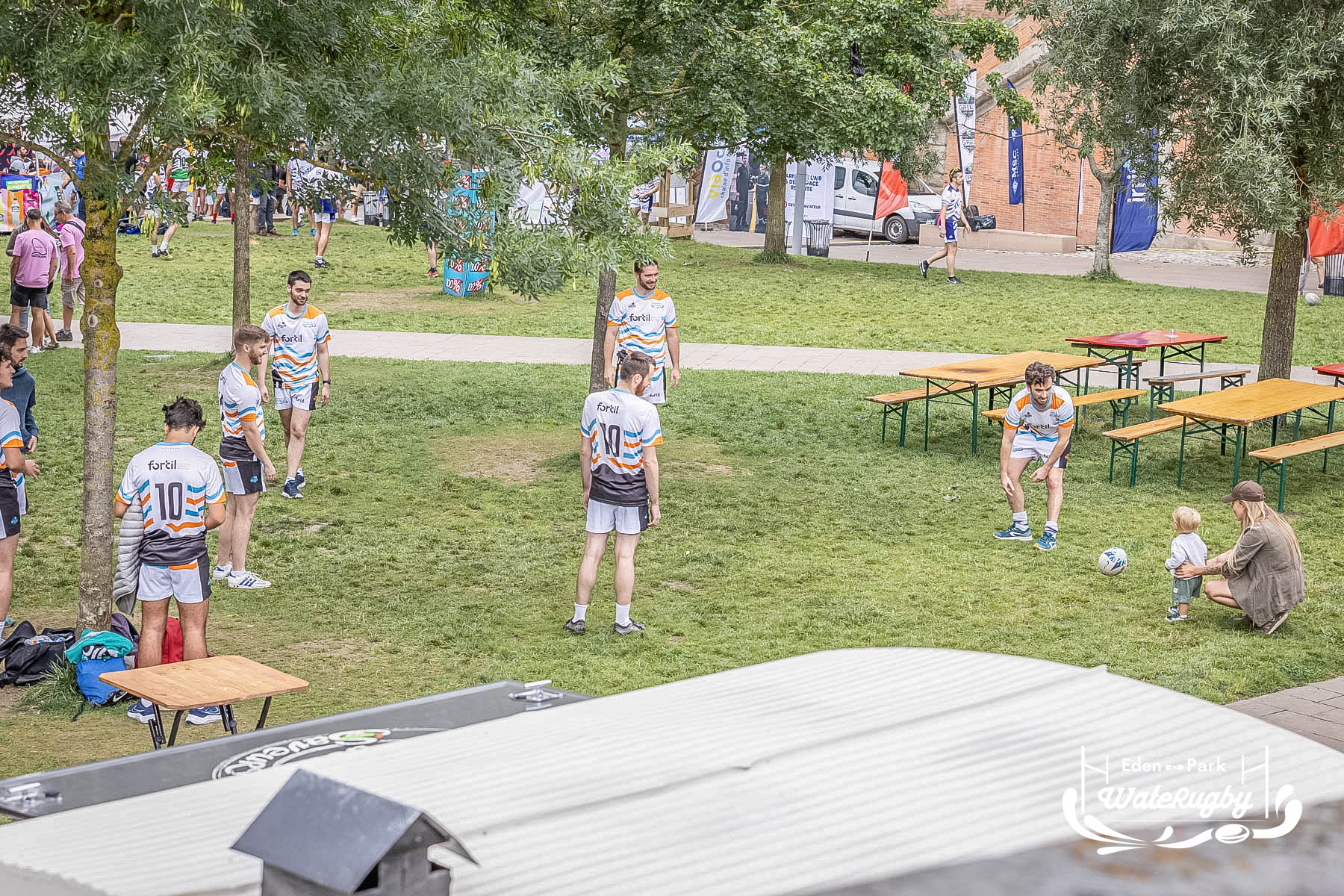 Compétition de rugby sur une barge sur la Garonne en plein centre de Toulouse
