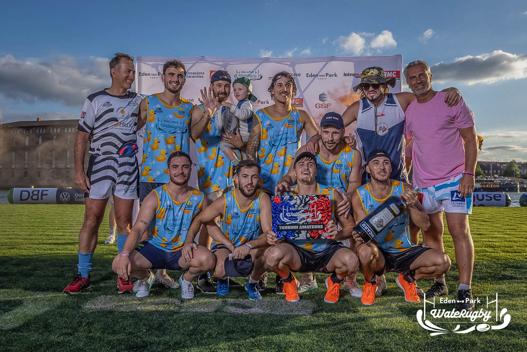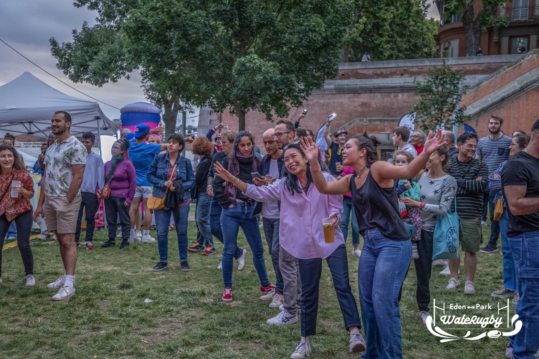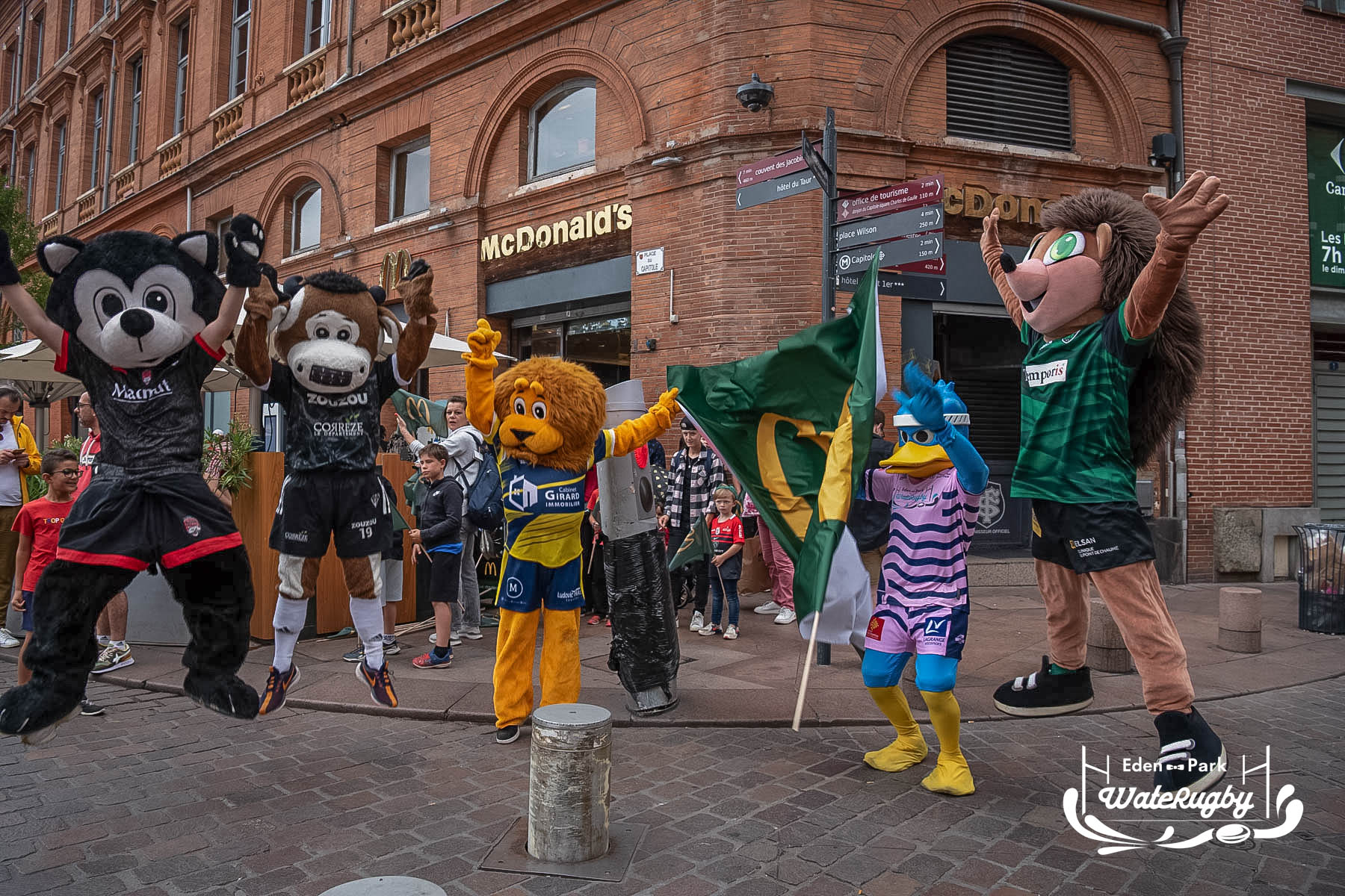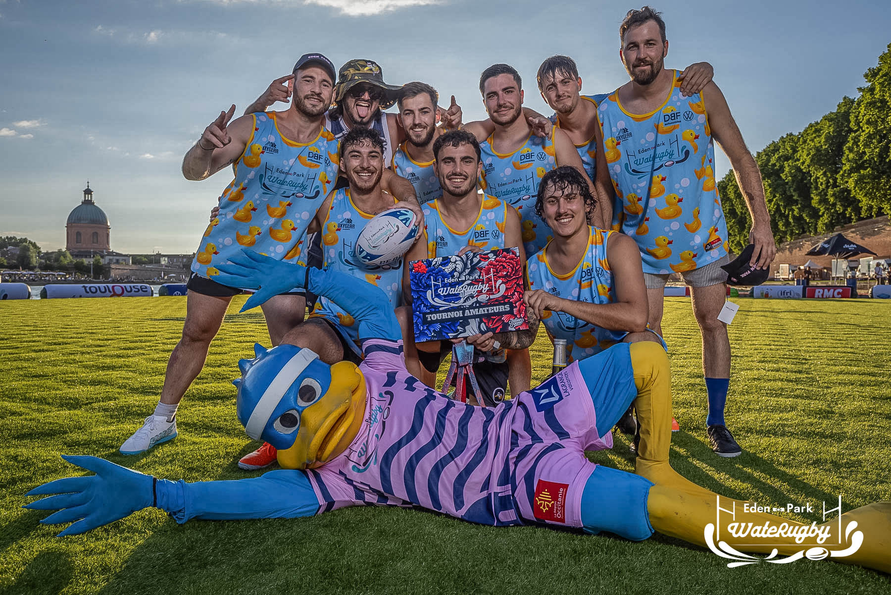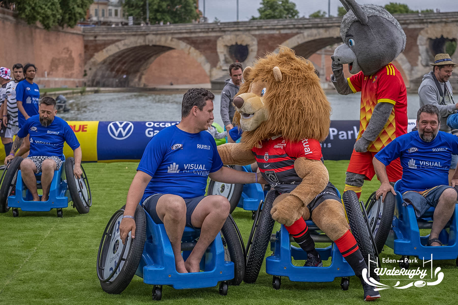 Compétition de rugby sur une barge sur la Garonne en plein centre de Toulouse