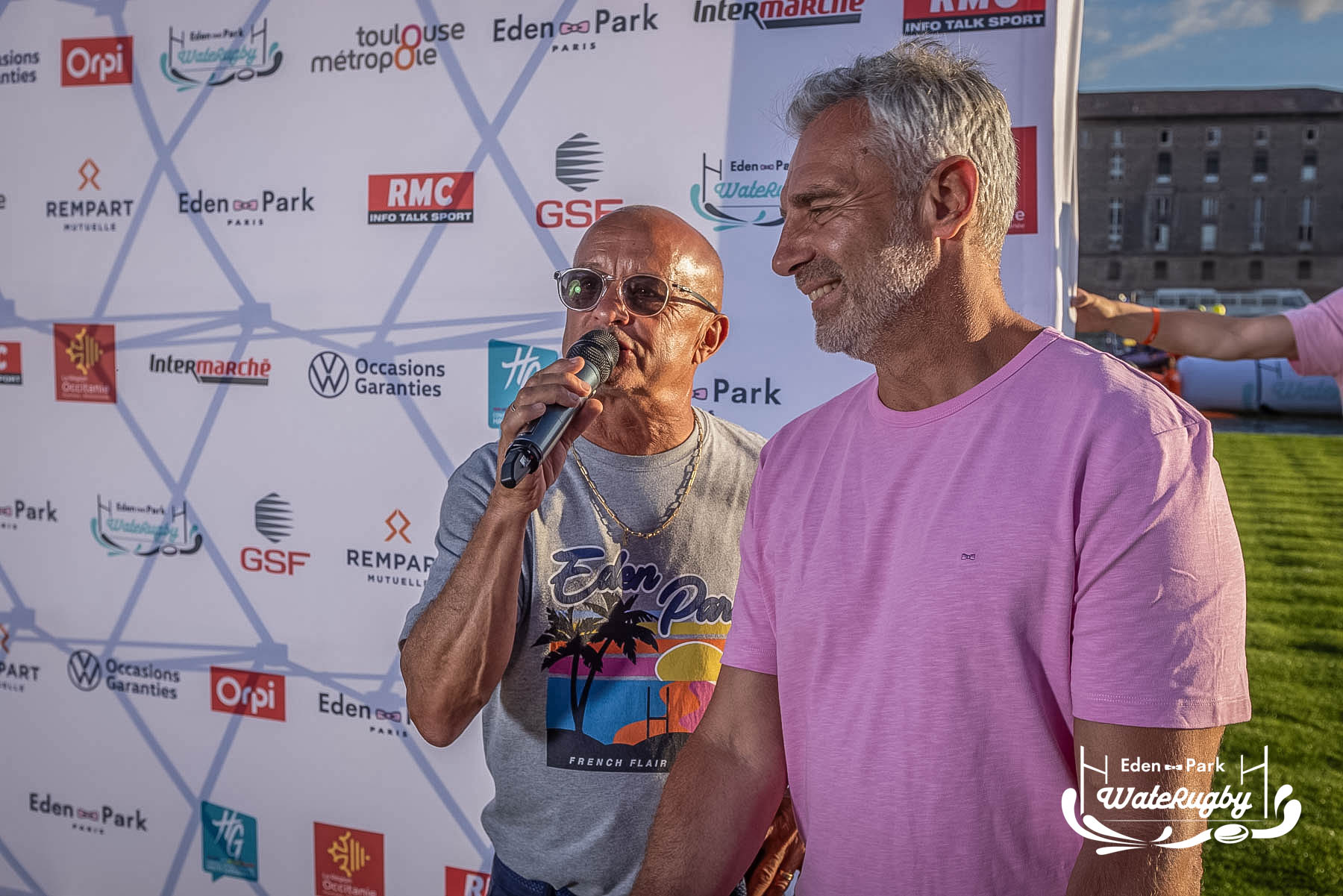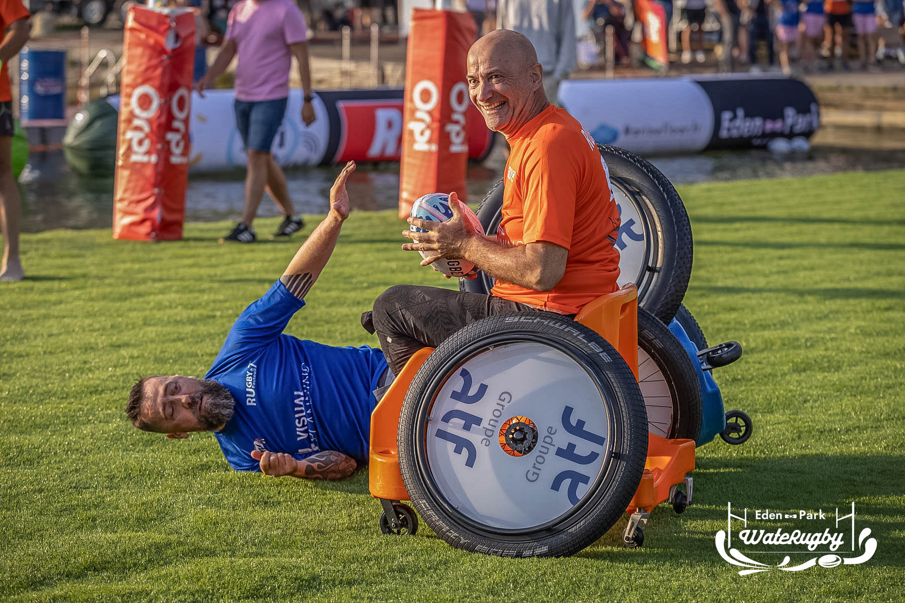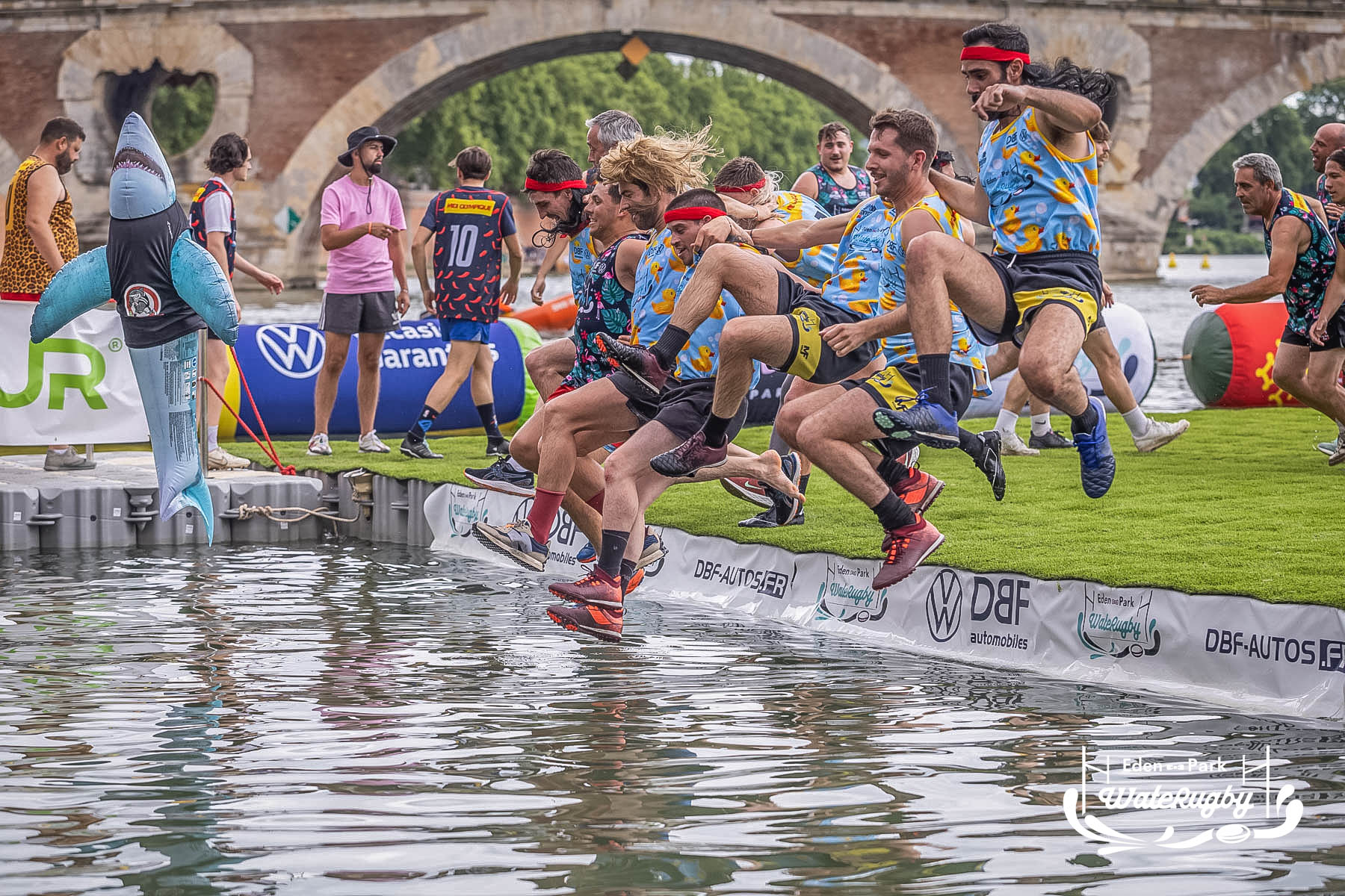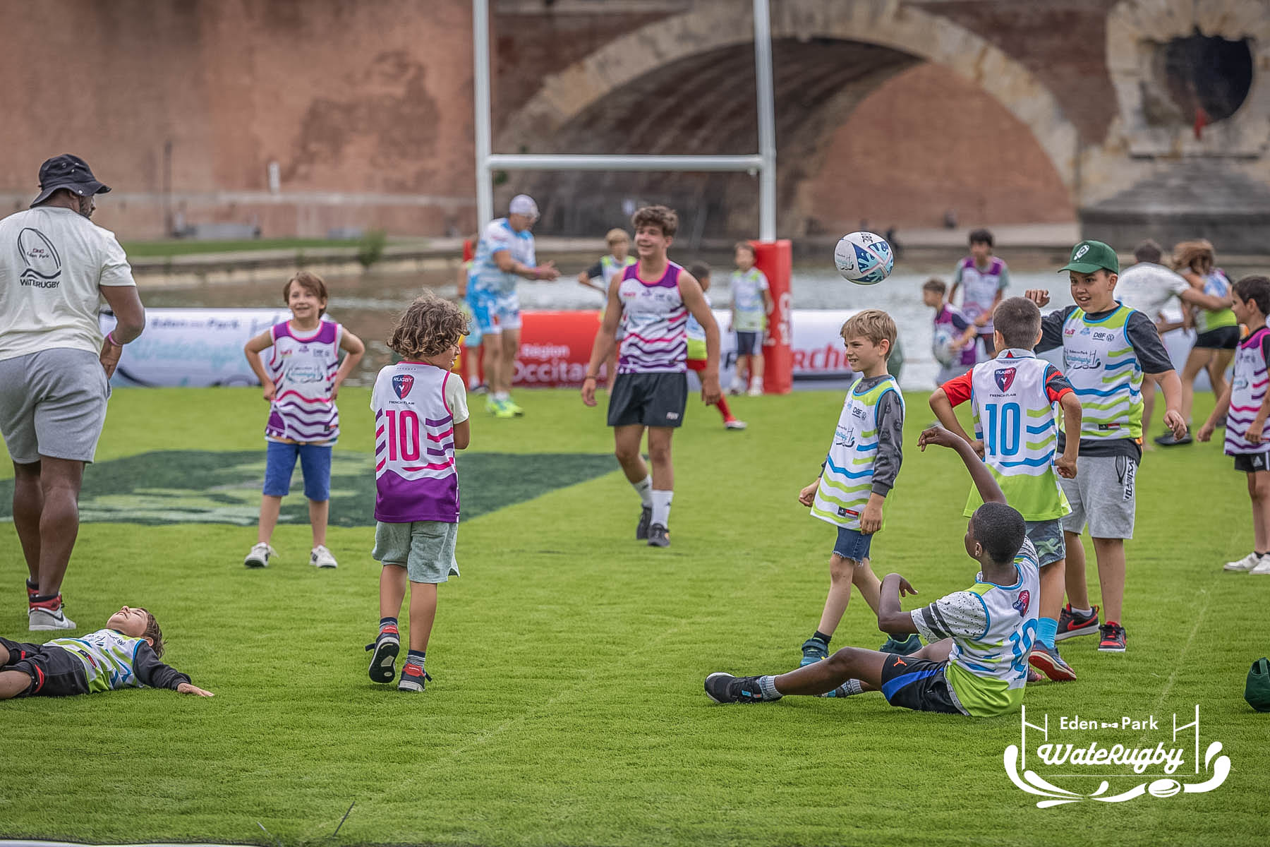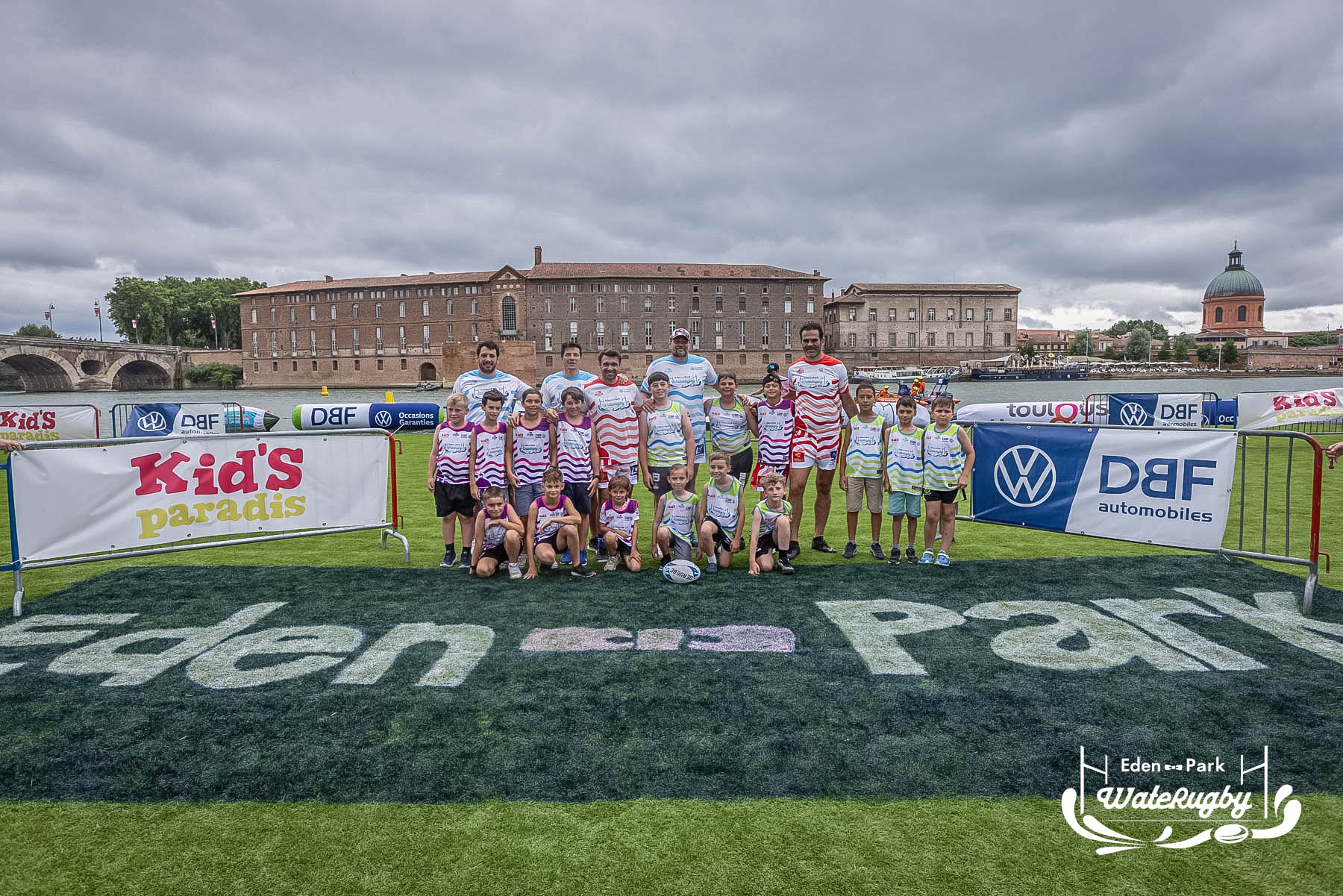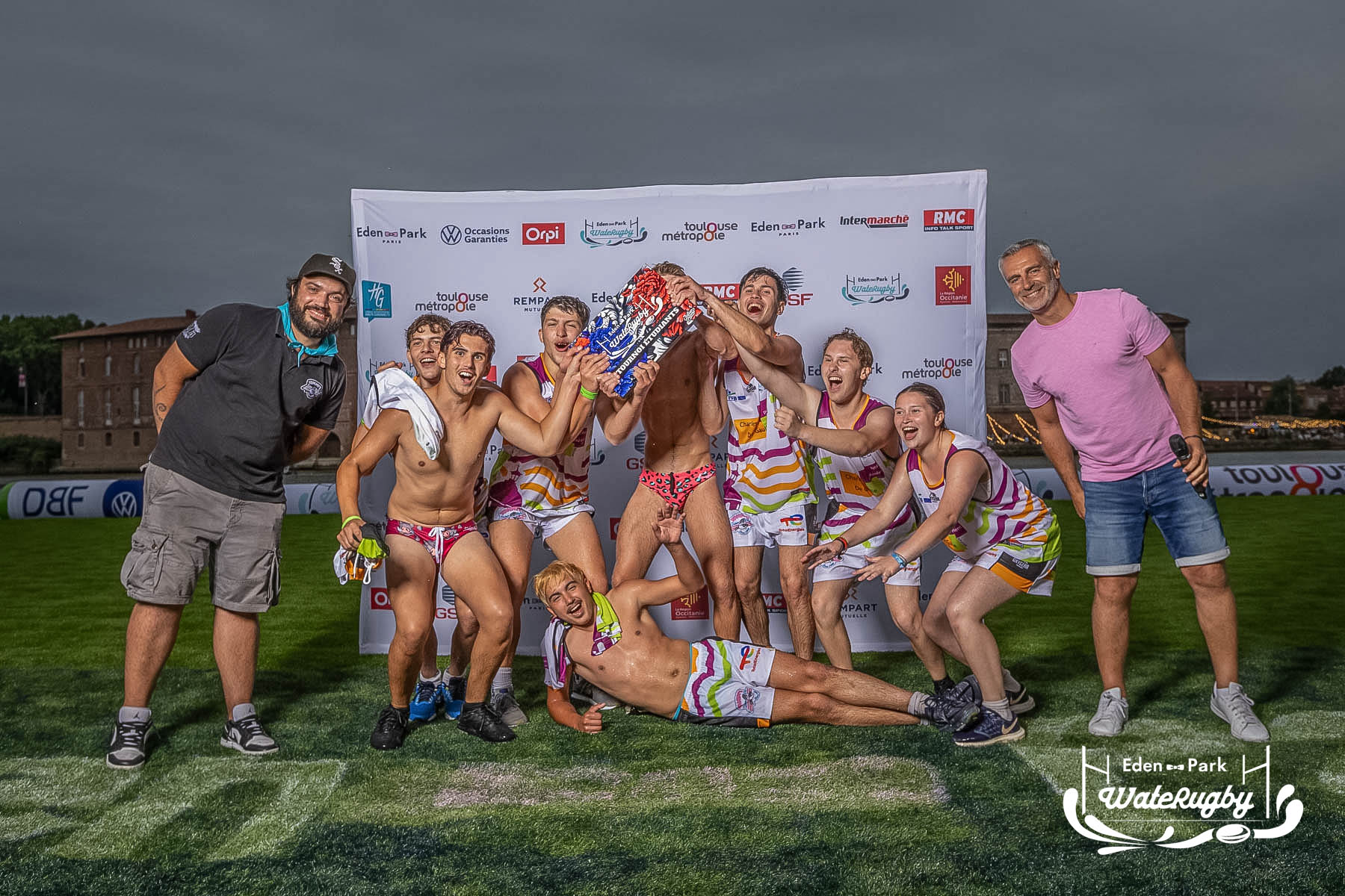 Compétition de rugby sur une barge sur la Garonne en plein centre de Toulouse
