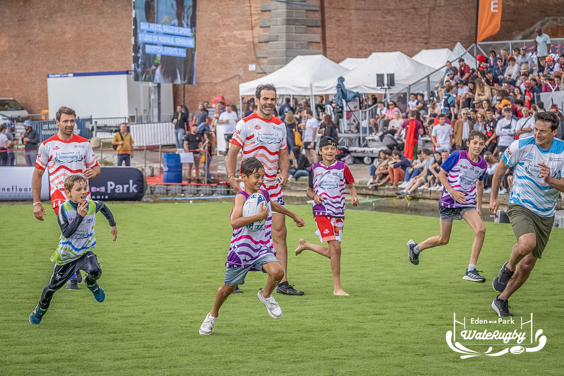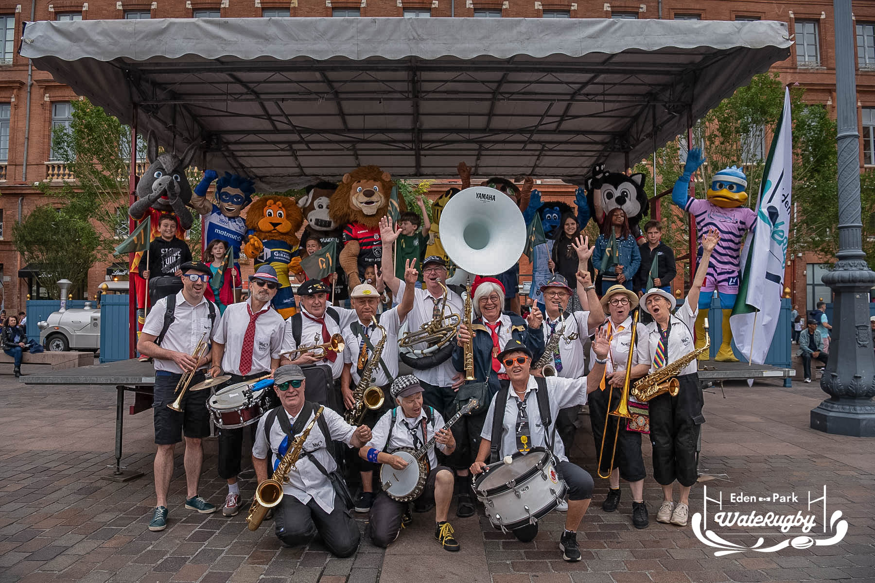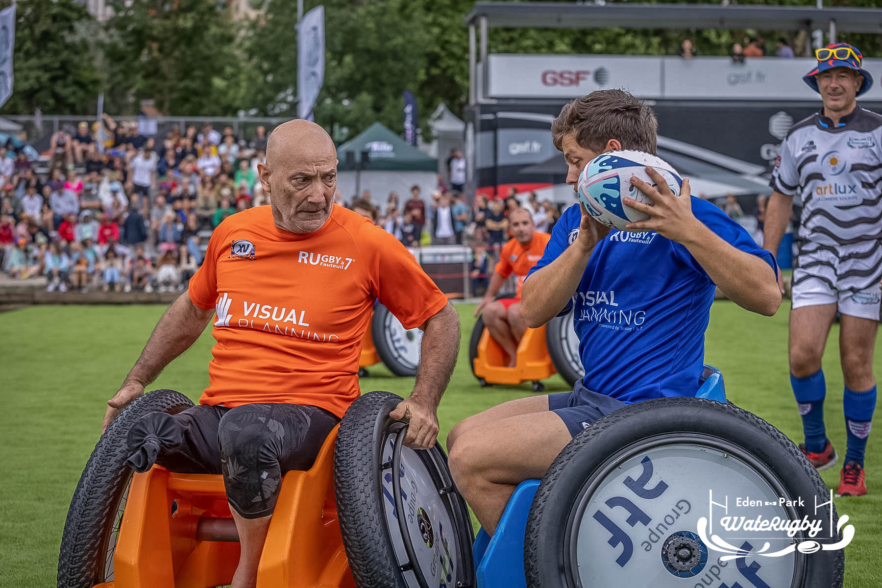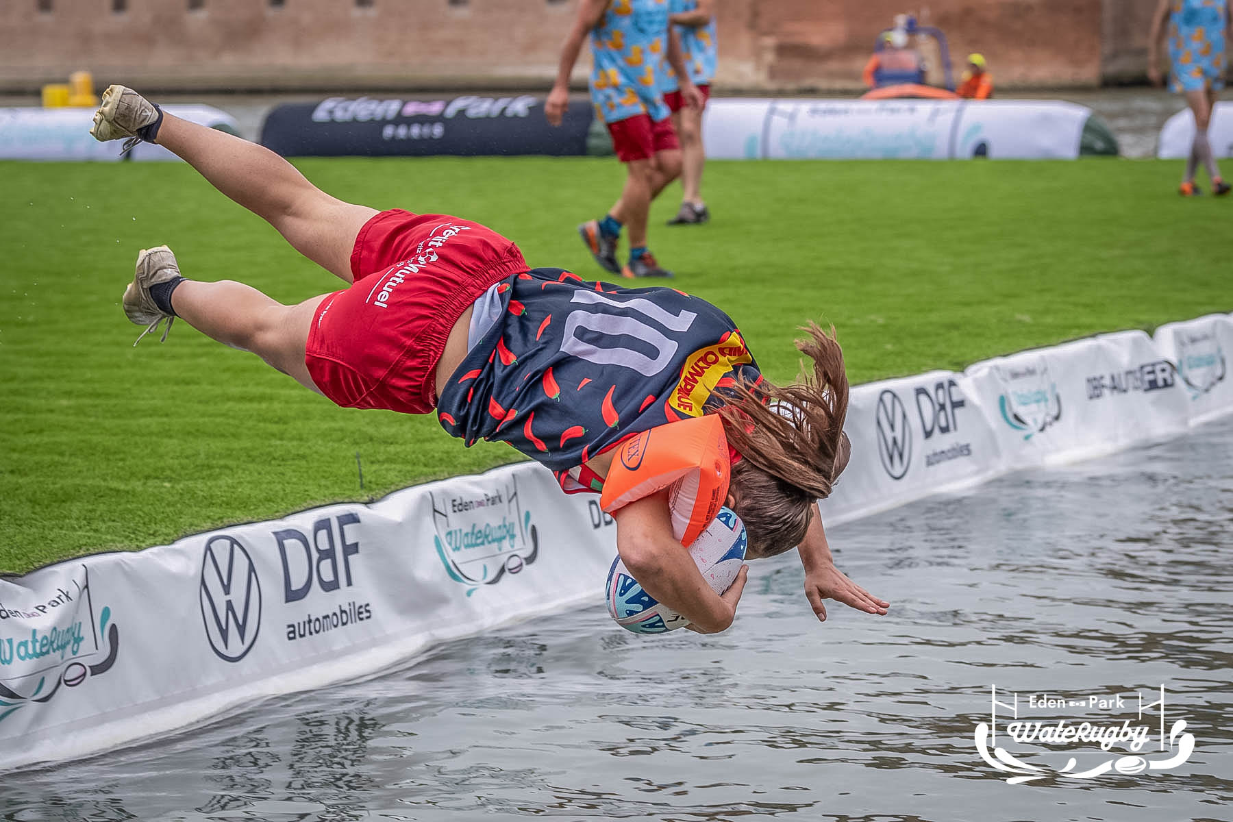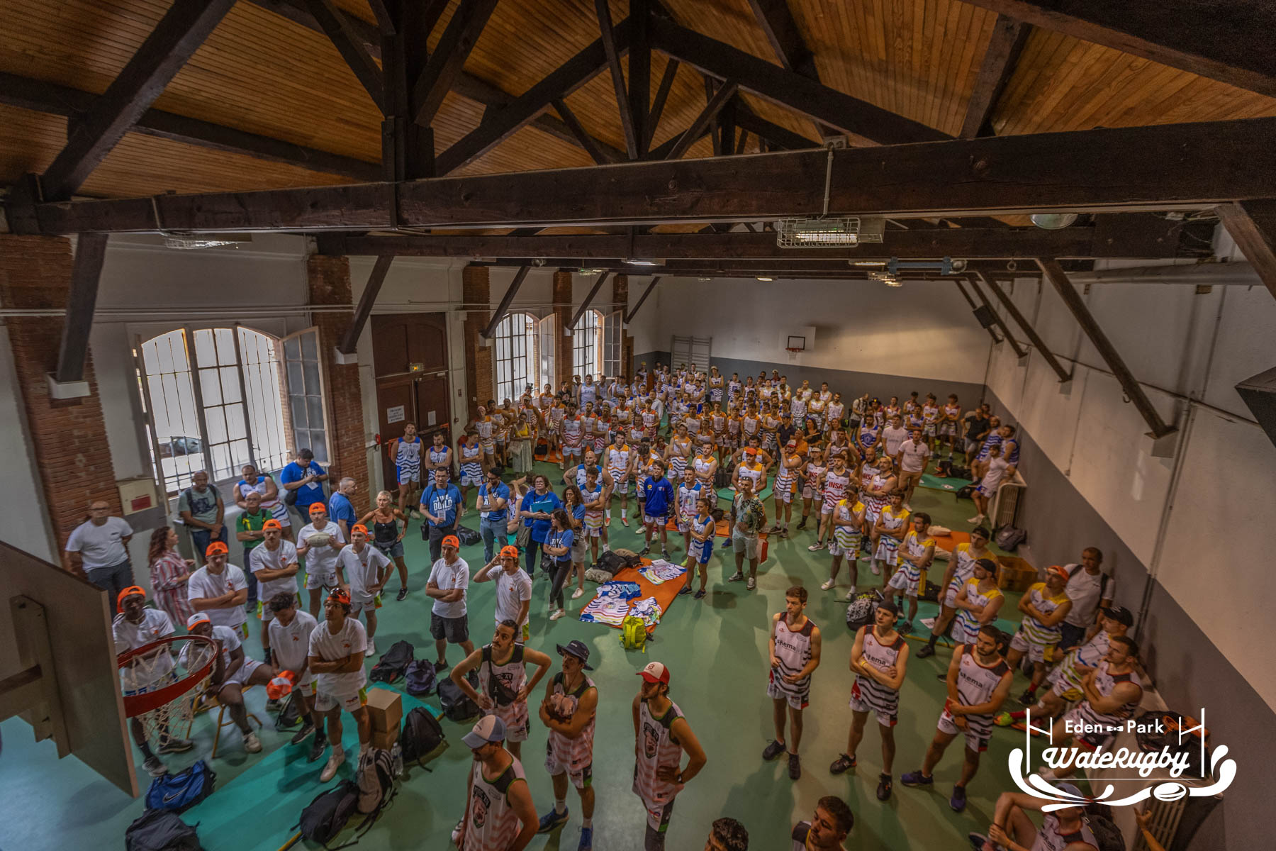 Compétition de rugby sur une barge sur la Garonne en plein centre de Toulouse