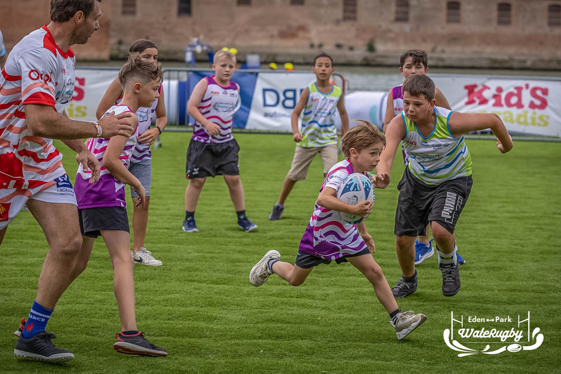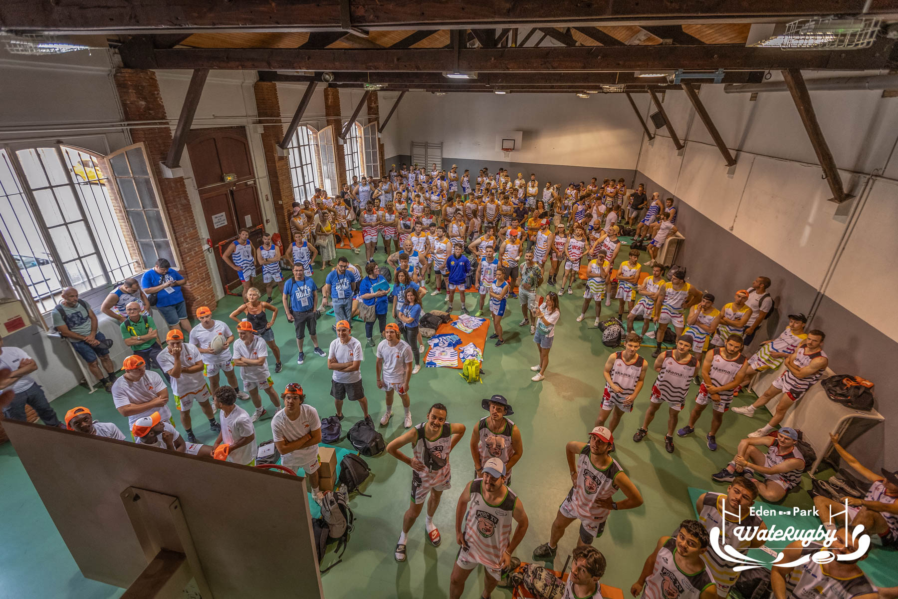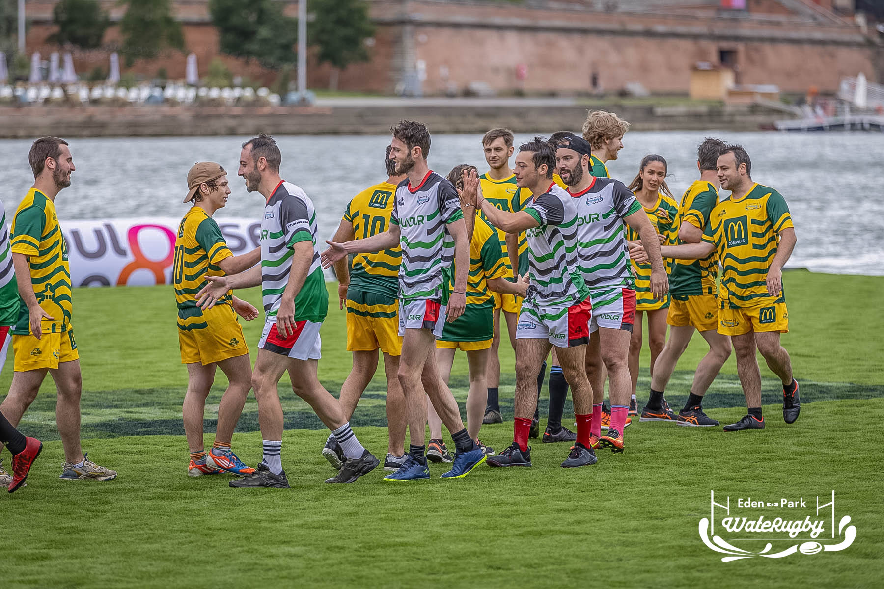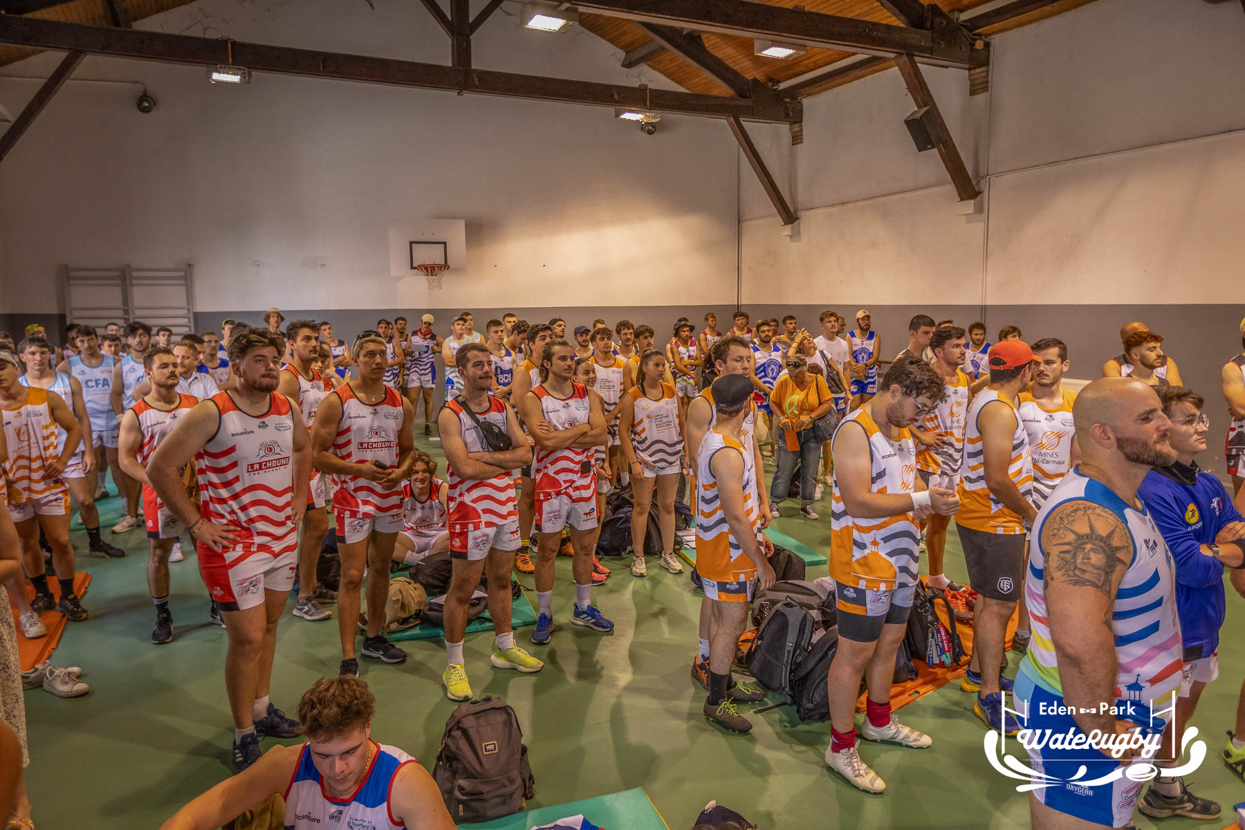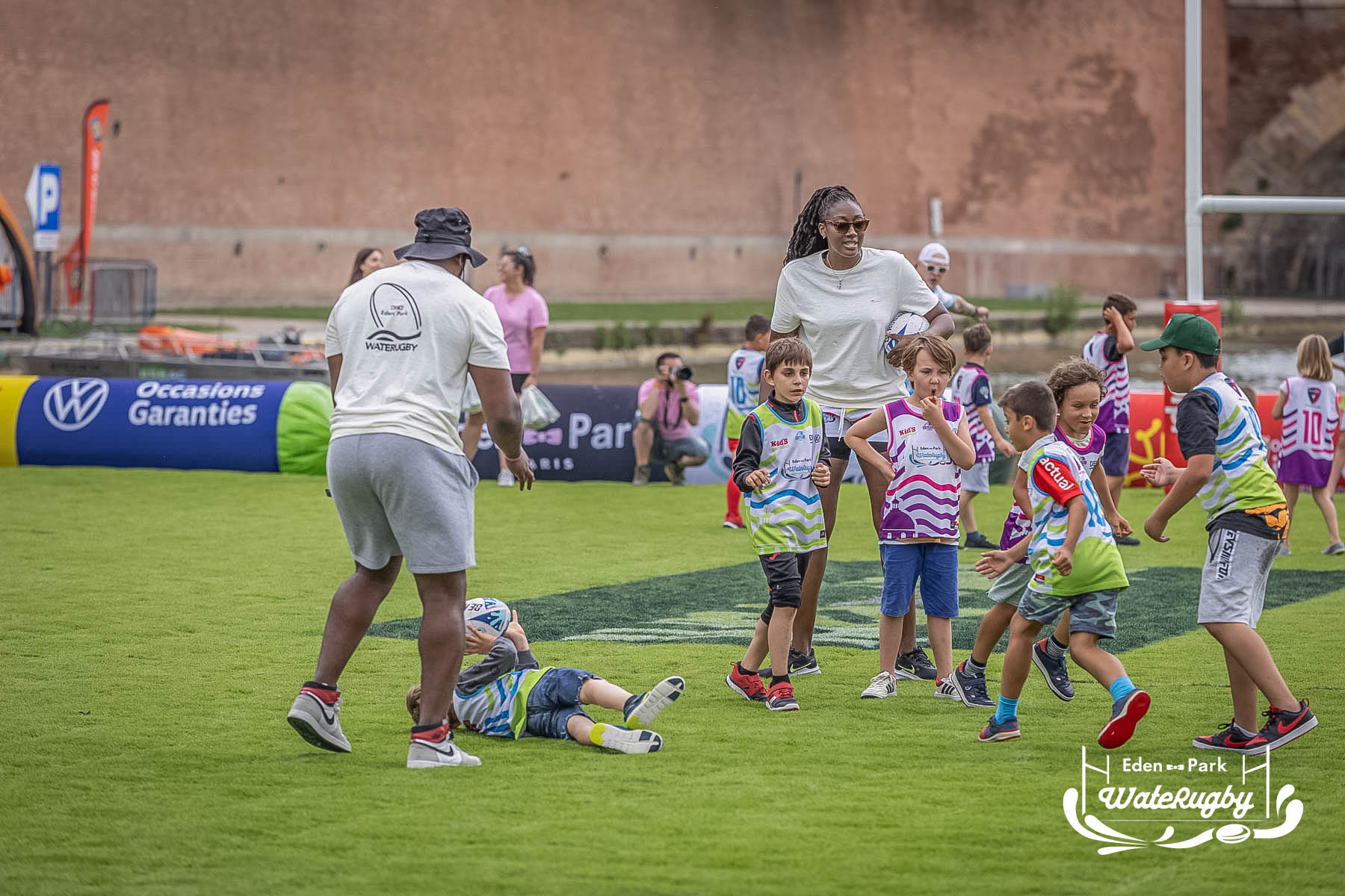 Compétition de rugby sur une barge sur la Garonne en plein centre de Toulouse