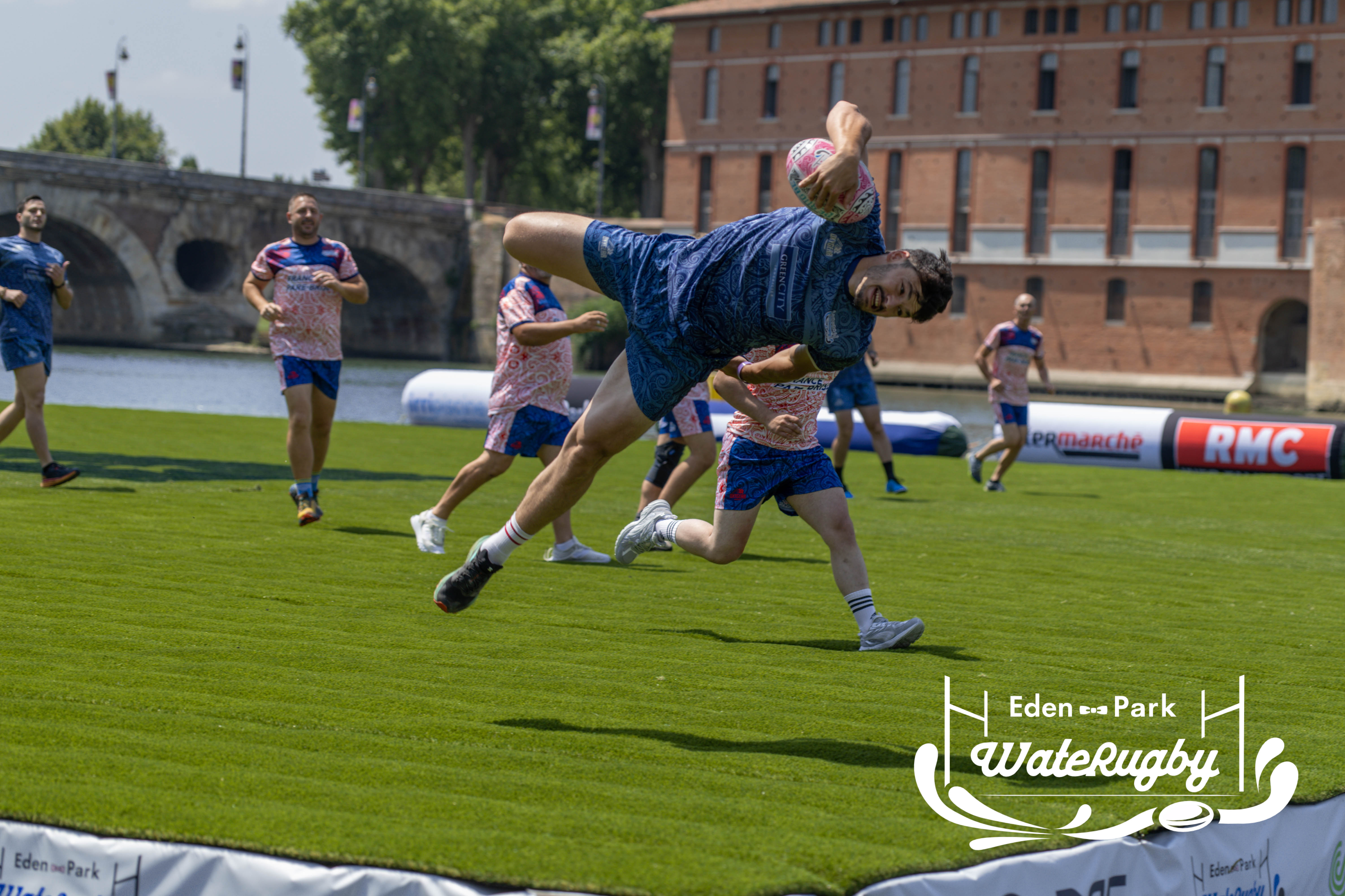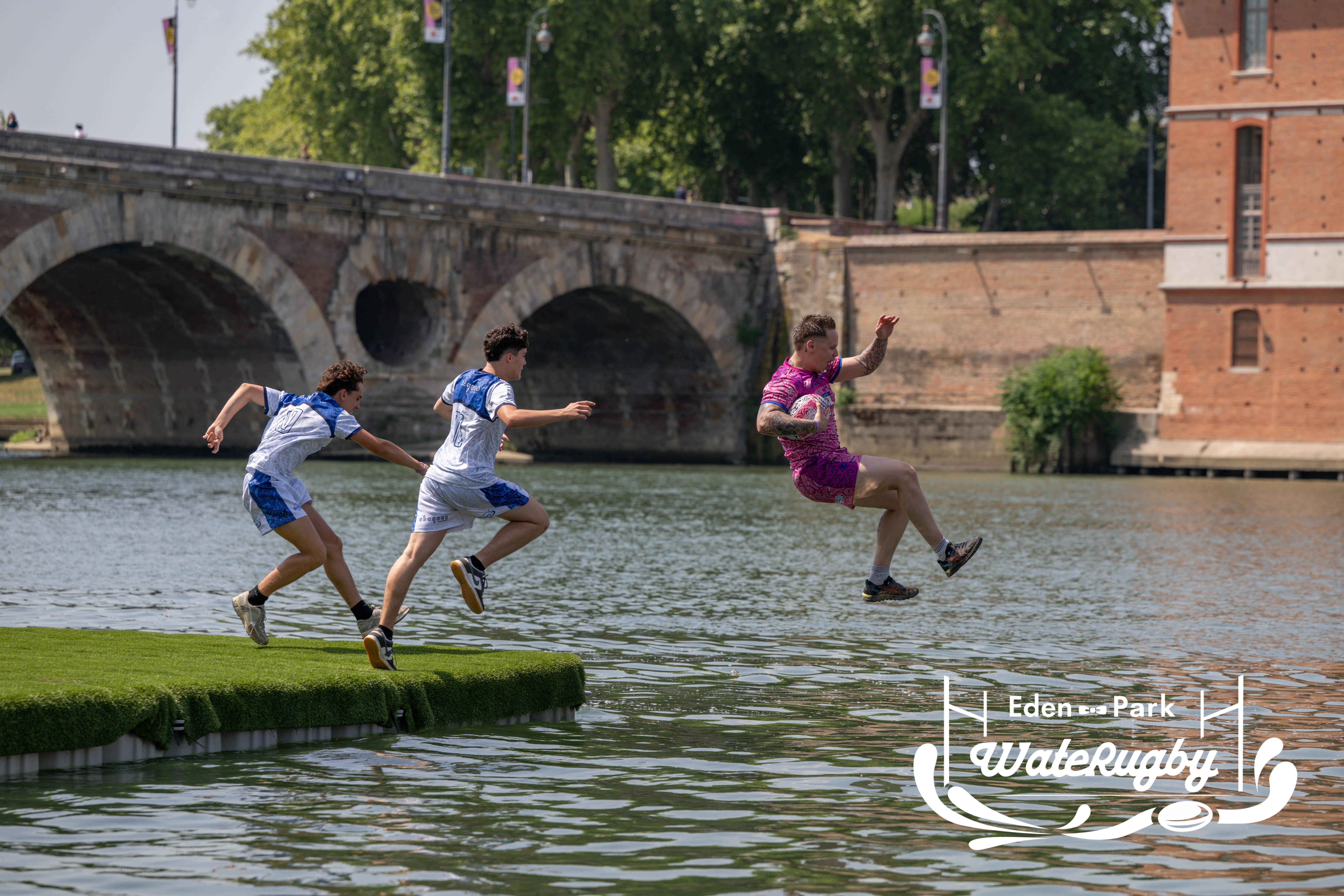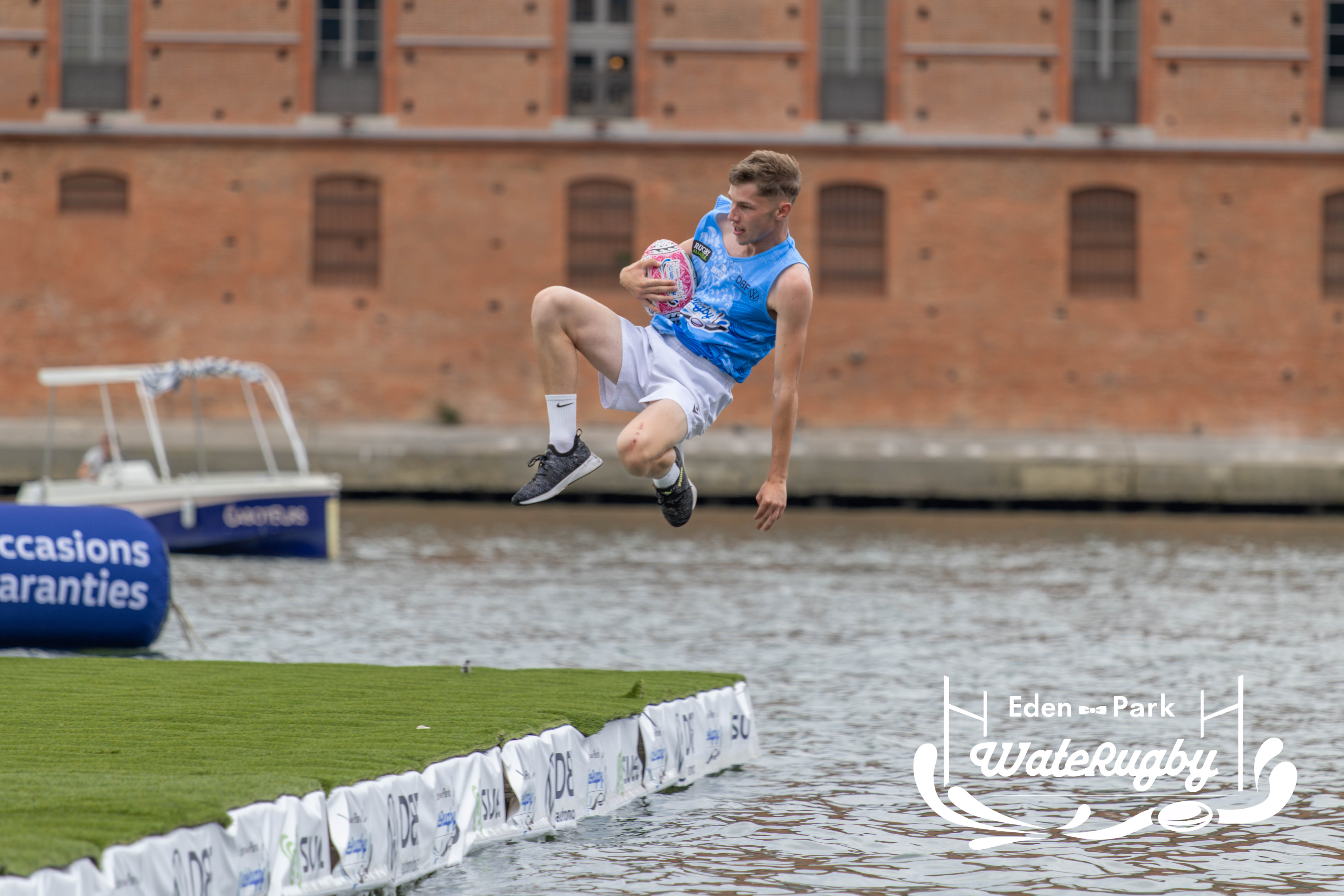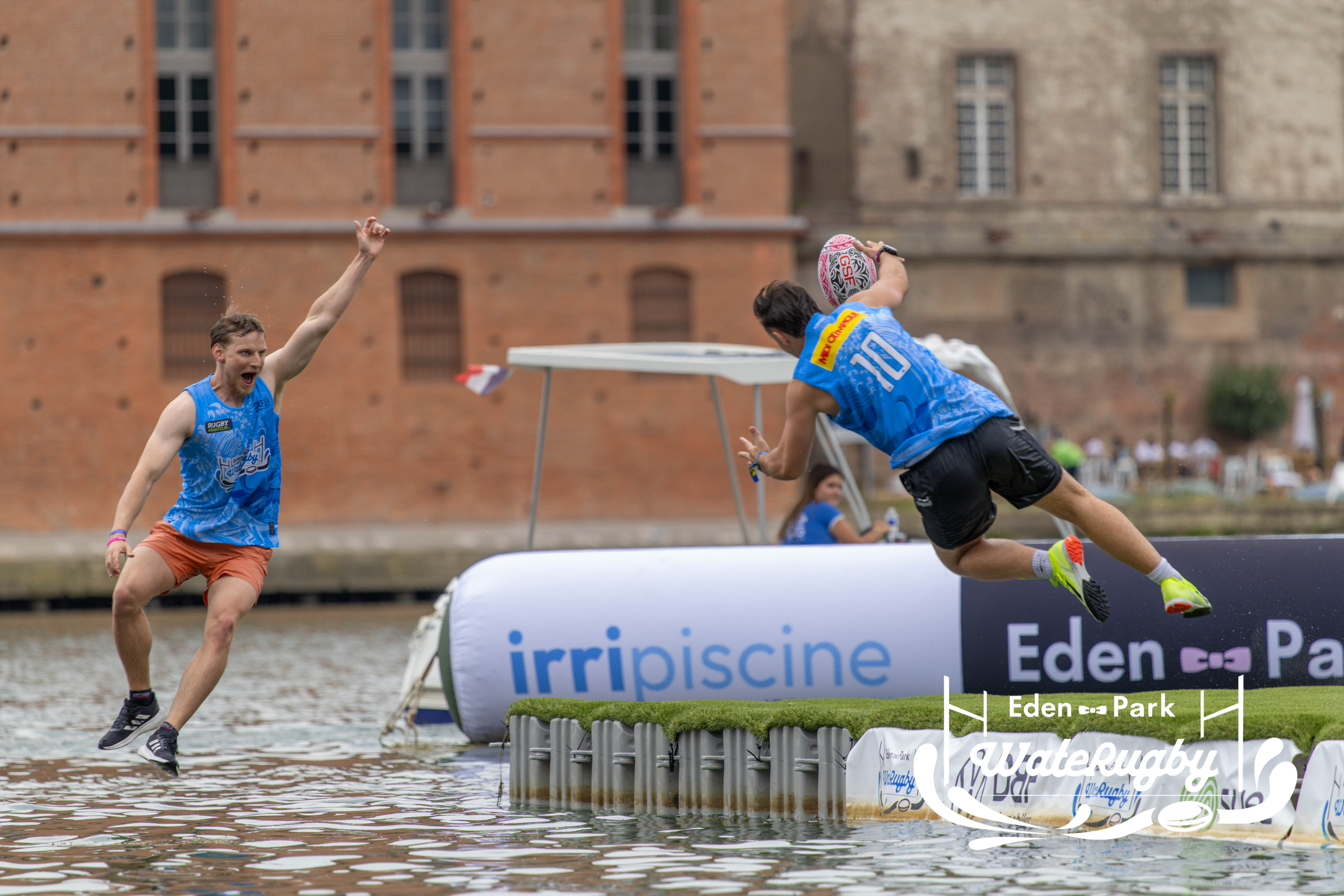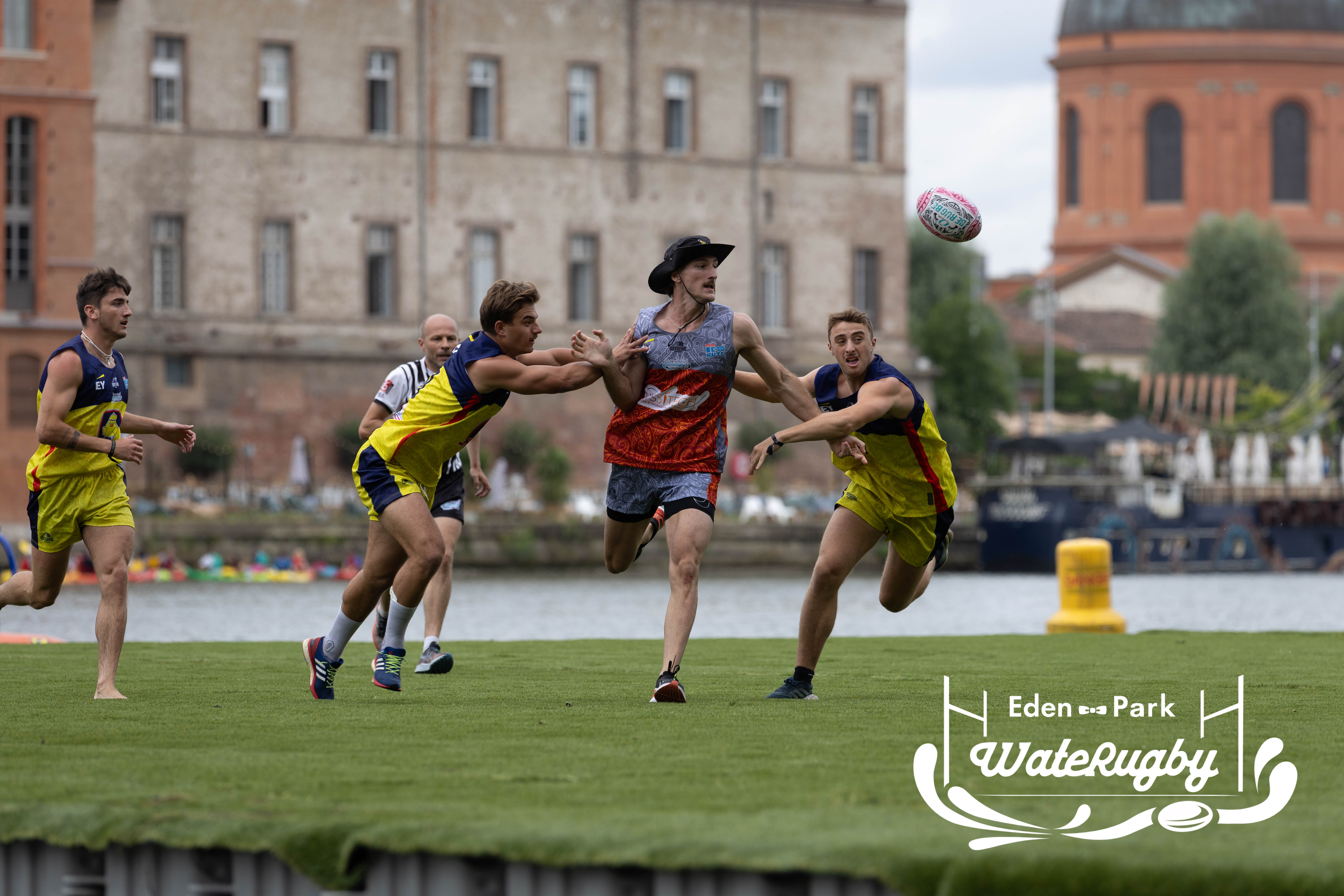 Compétition de rugby sur une barge sur la Garonne en plein centre de Toulouse