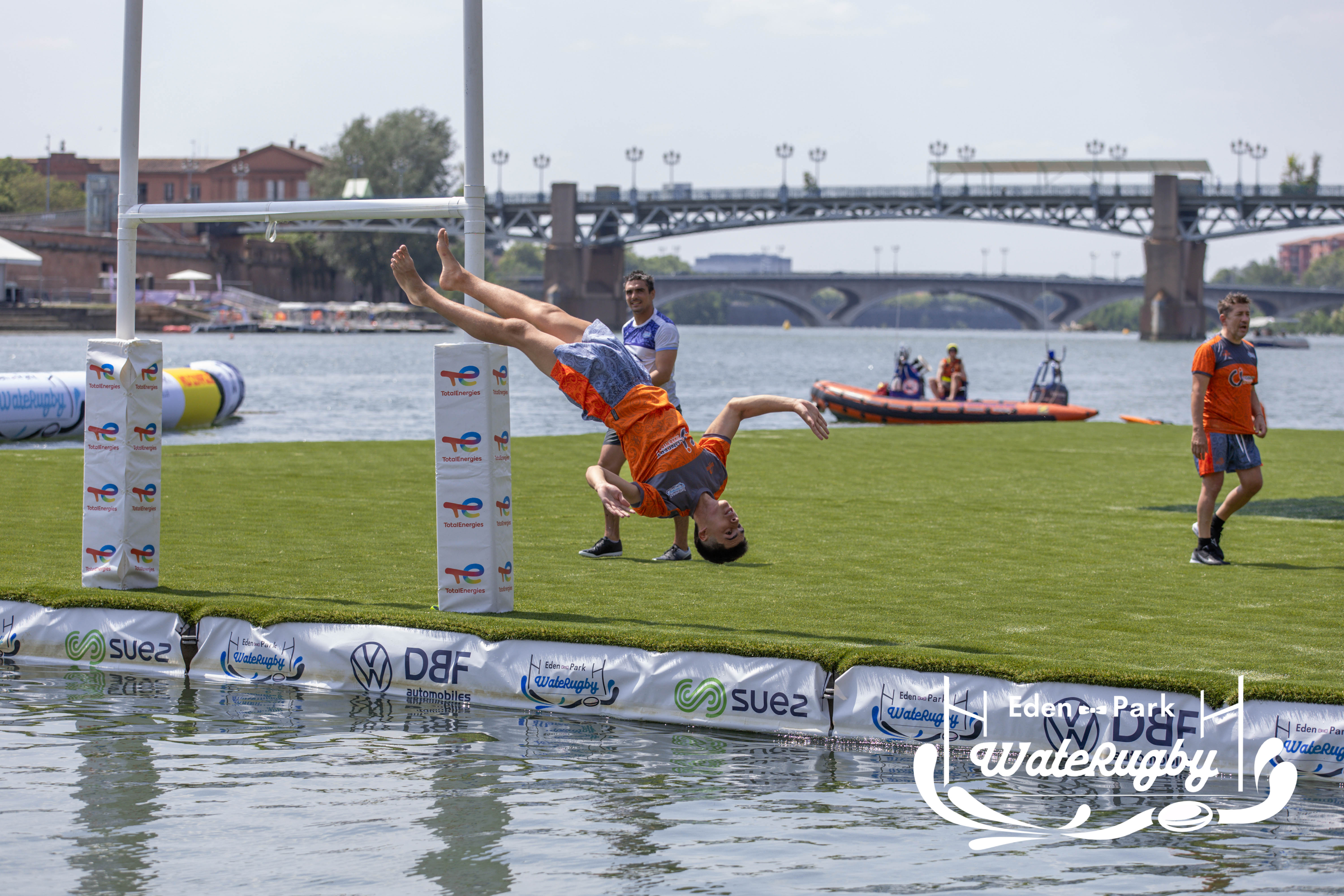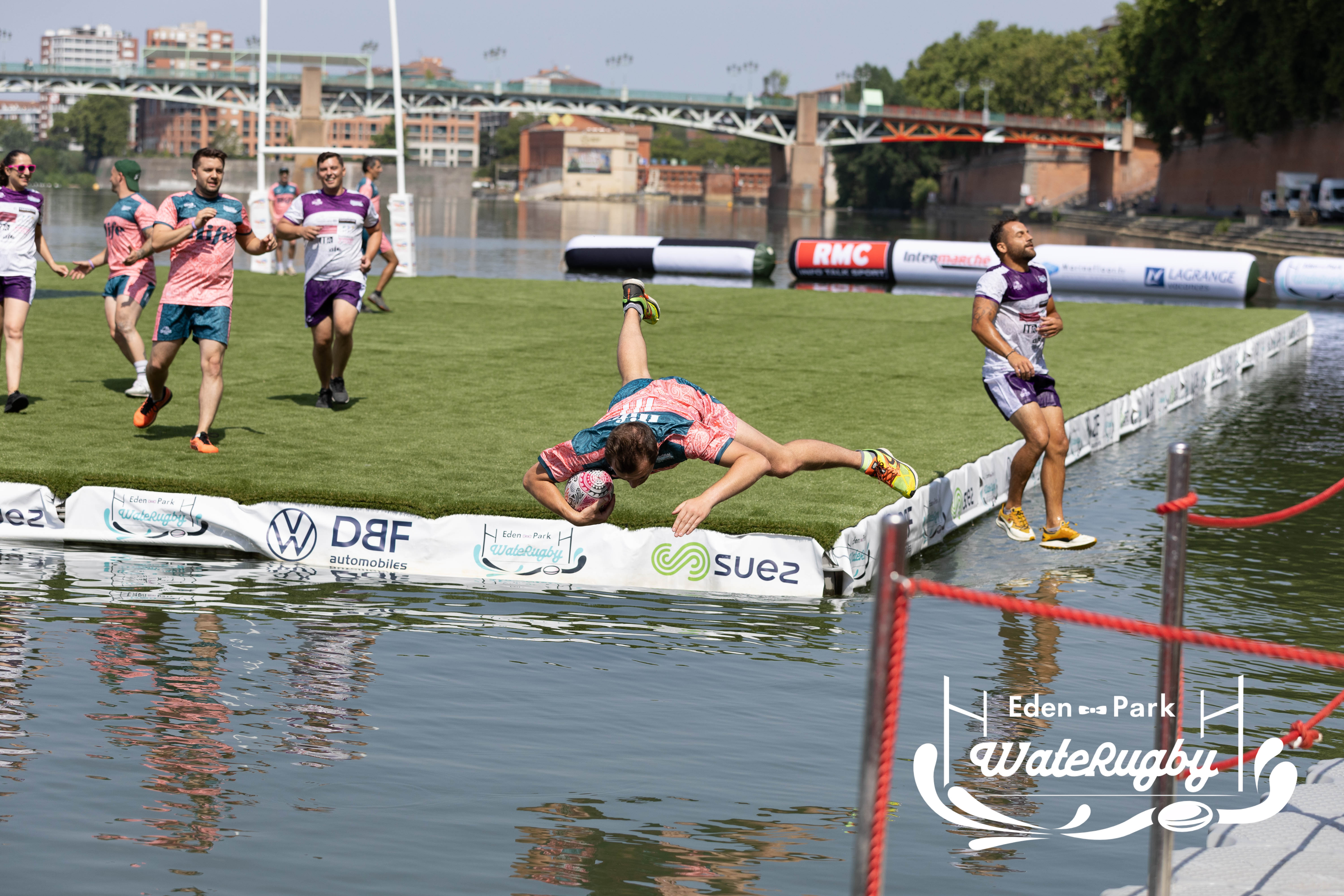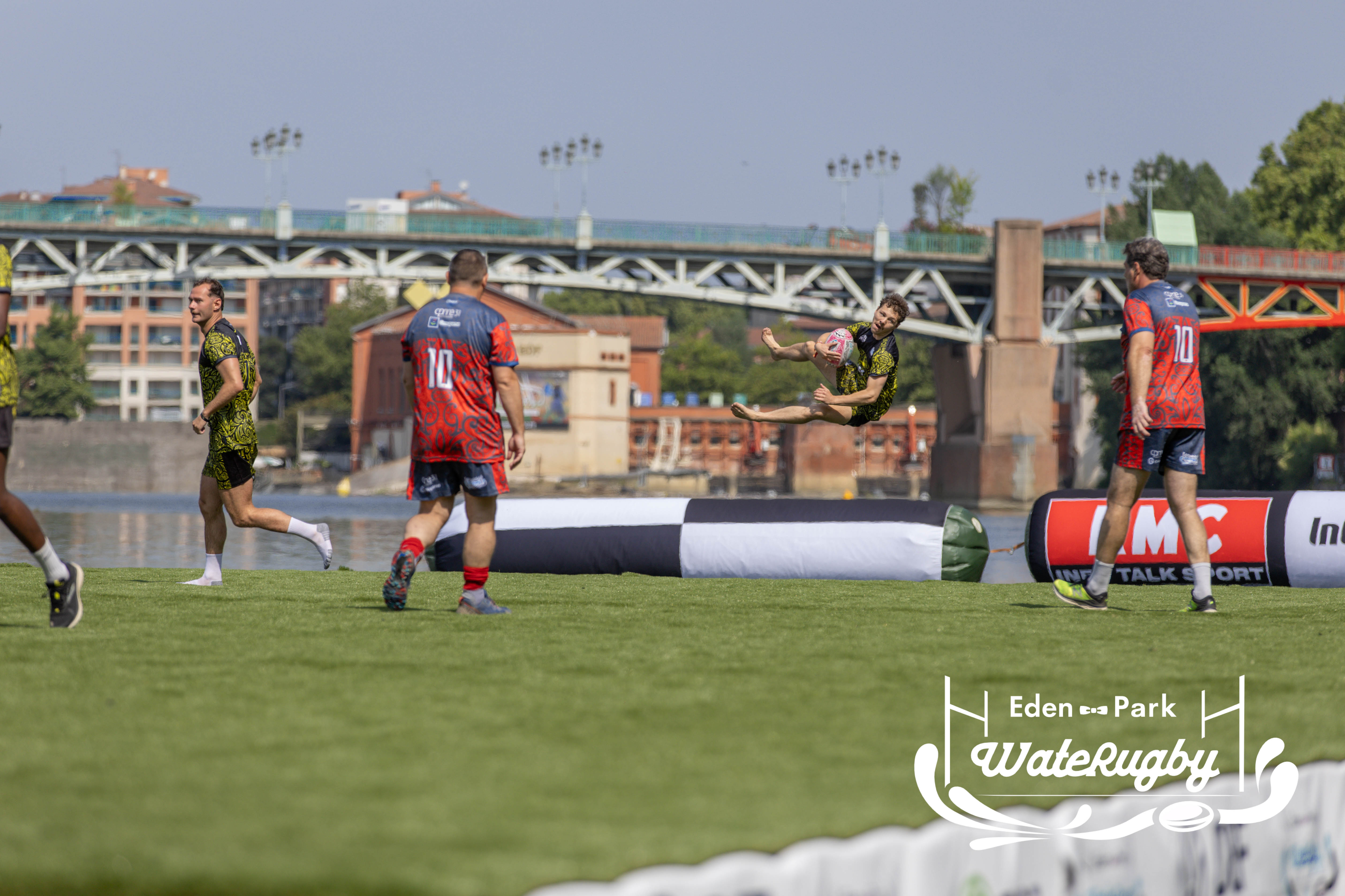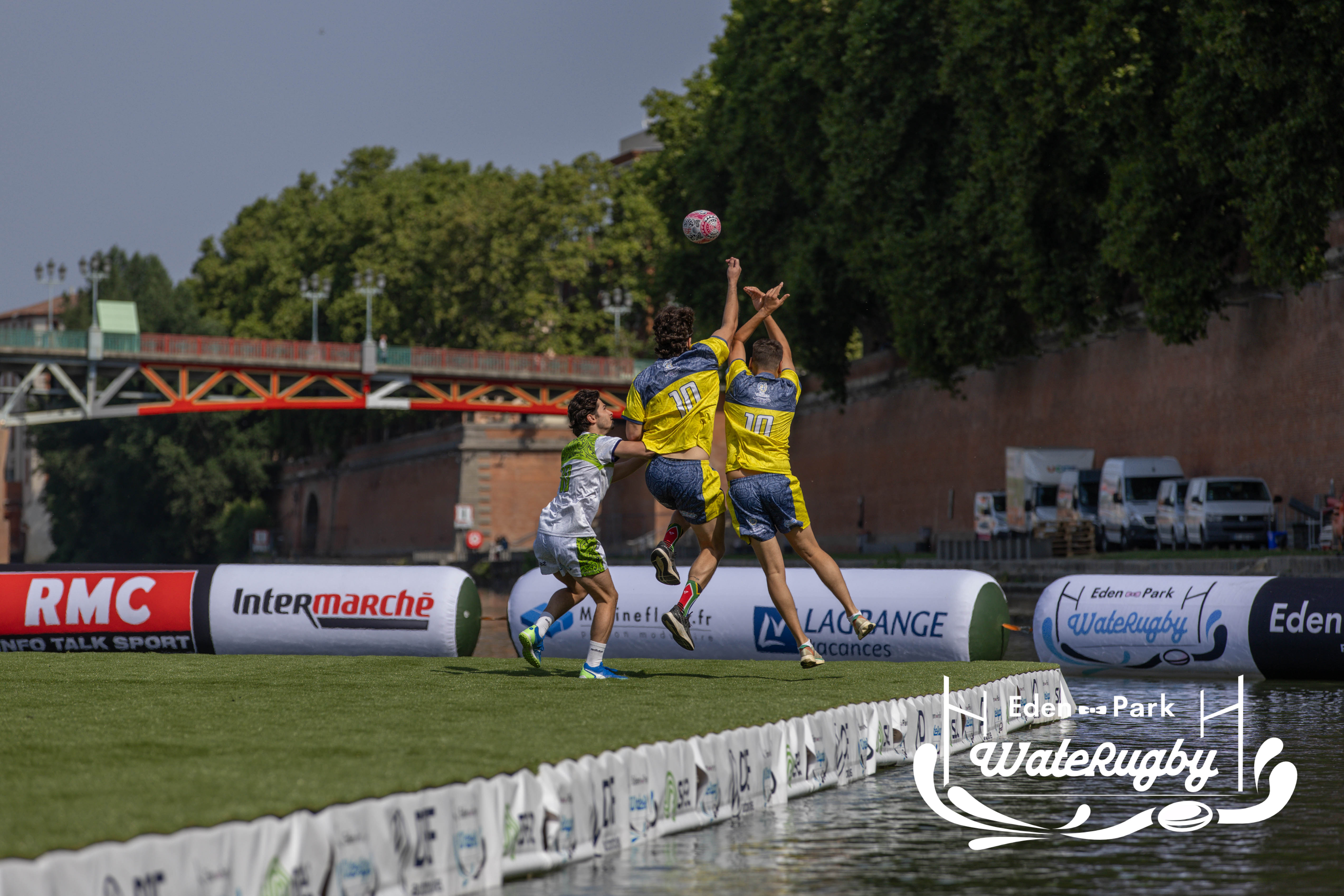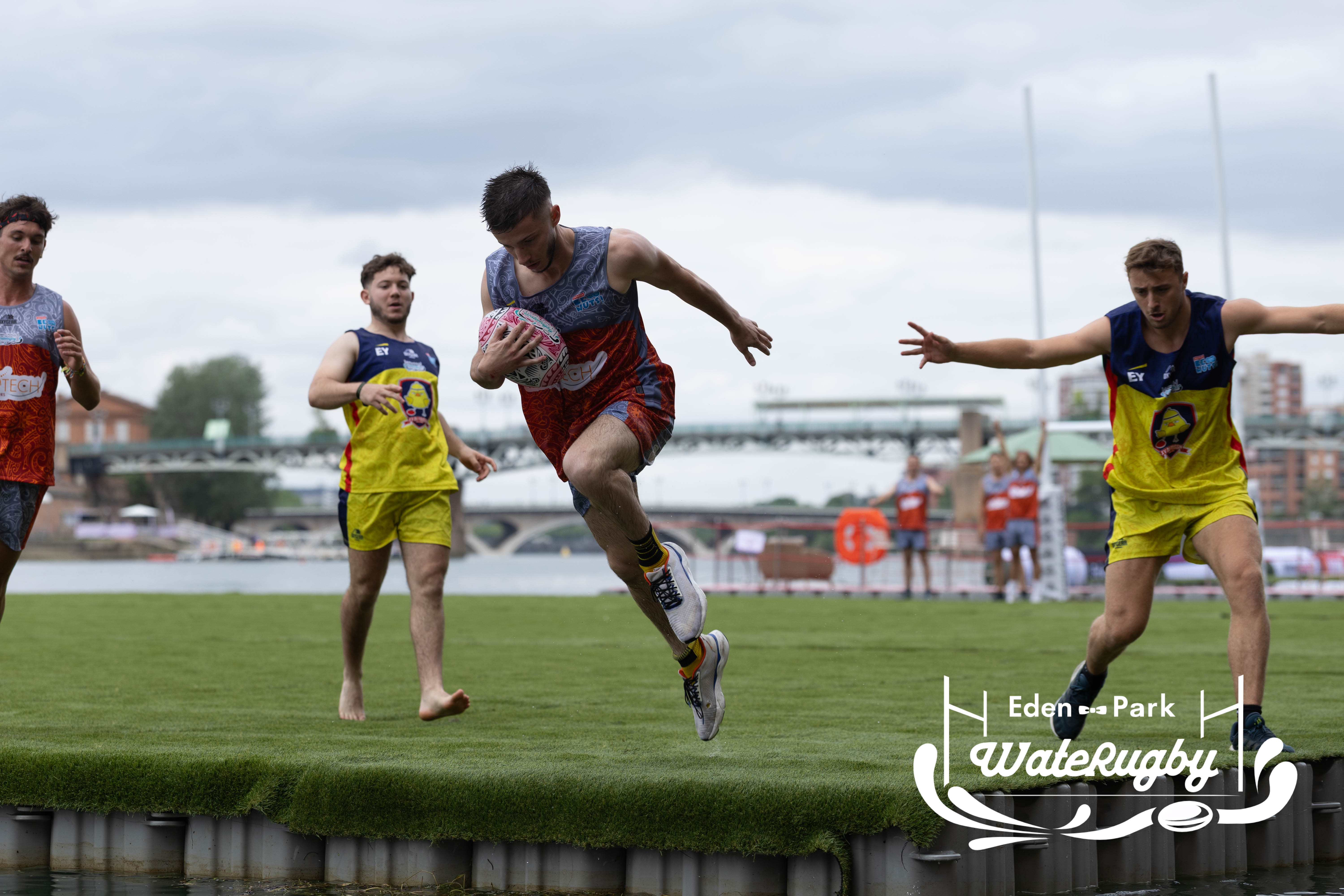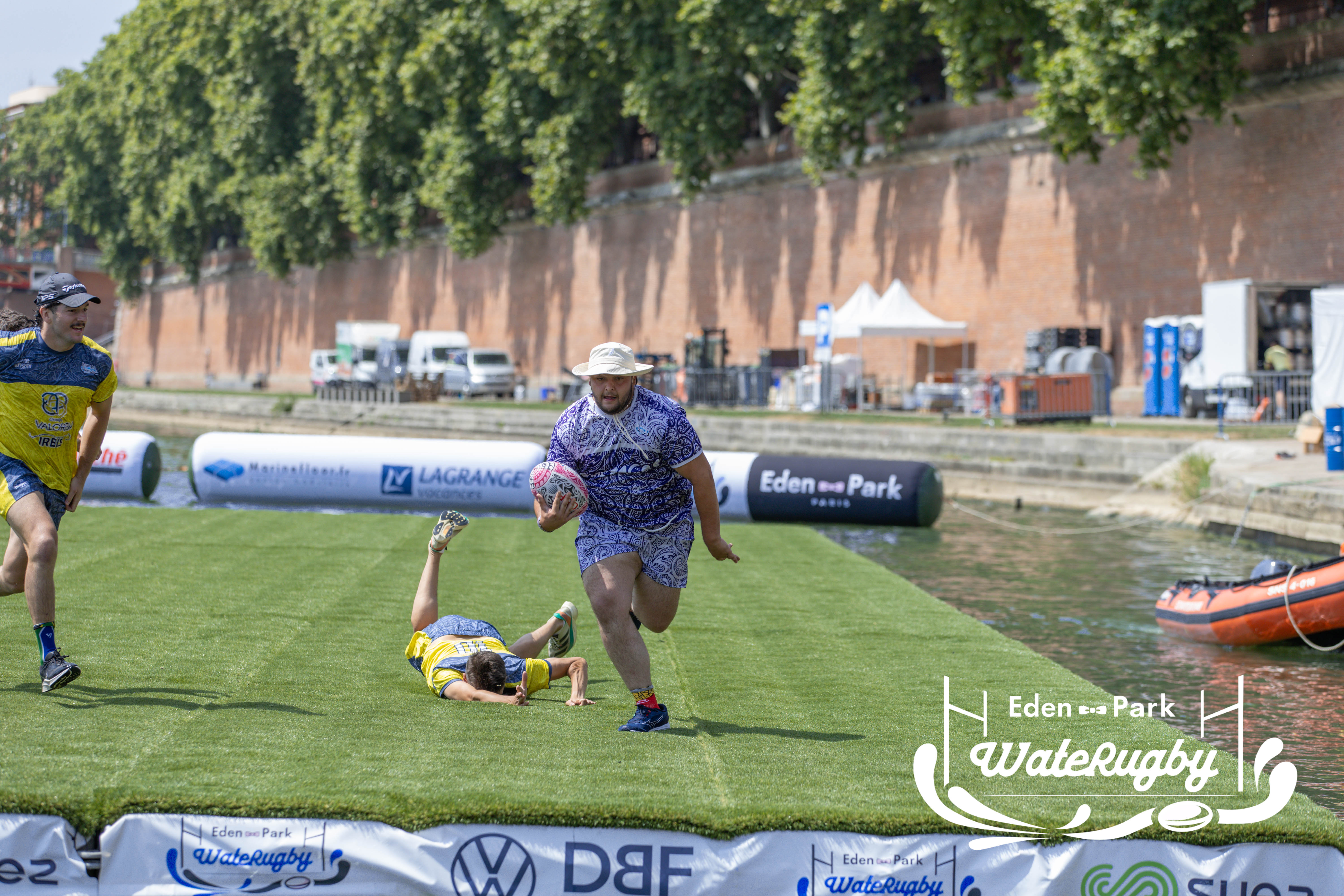 Compétition de rugby sur une barge sur la Garonne en plein centre de Toulouse