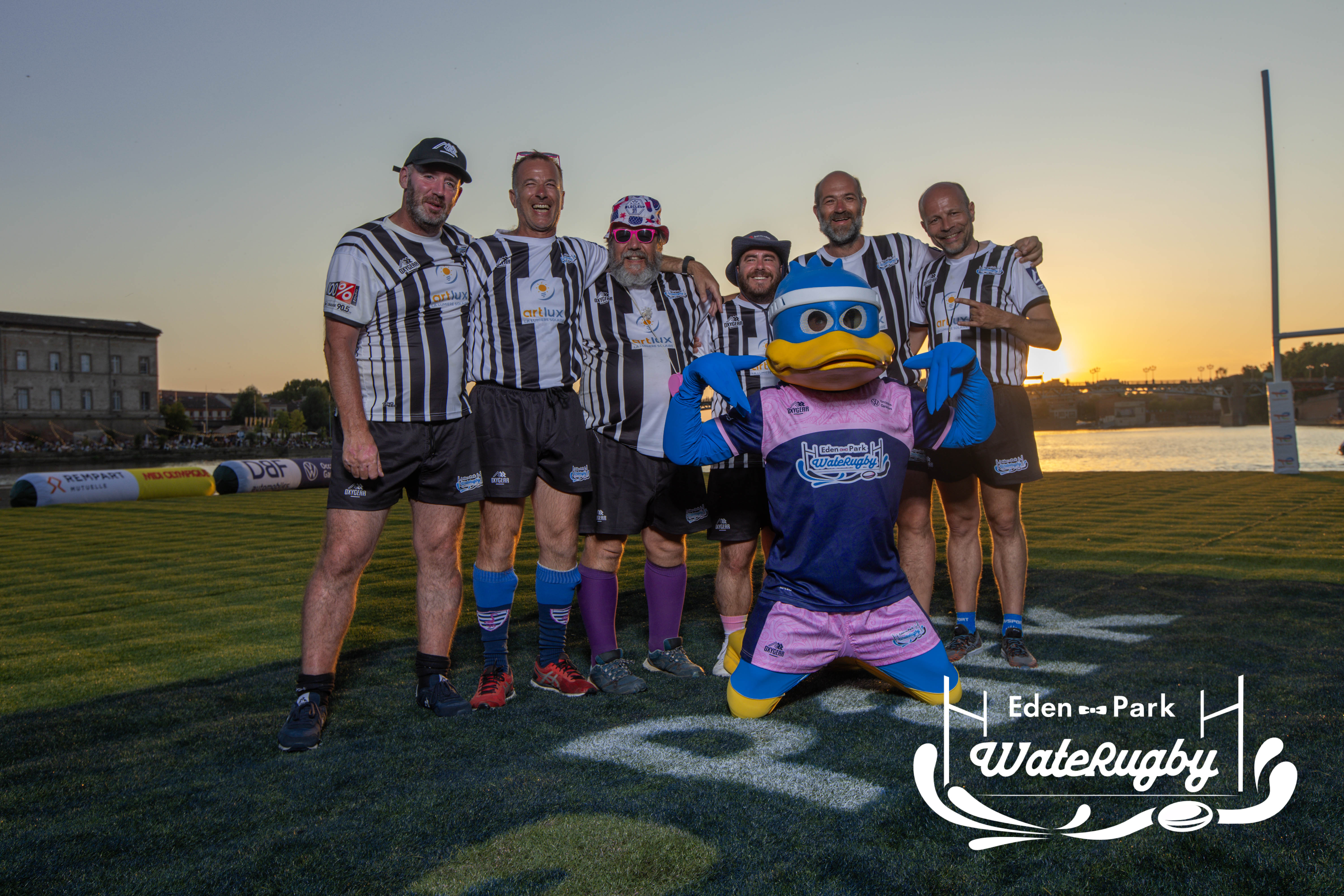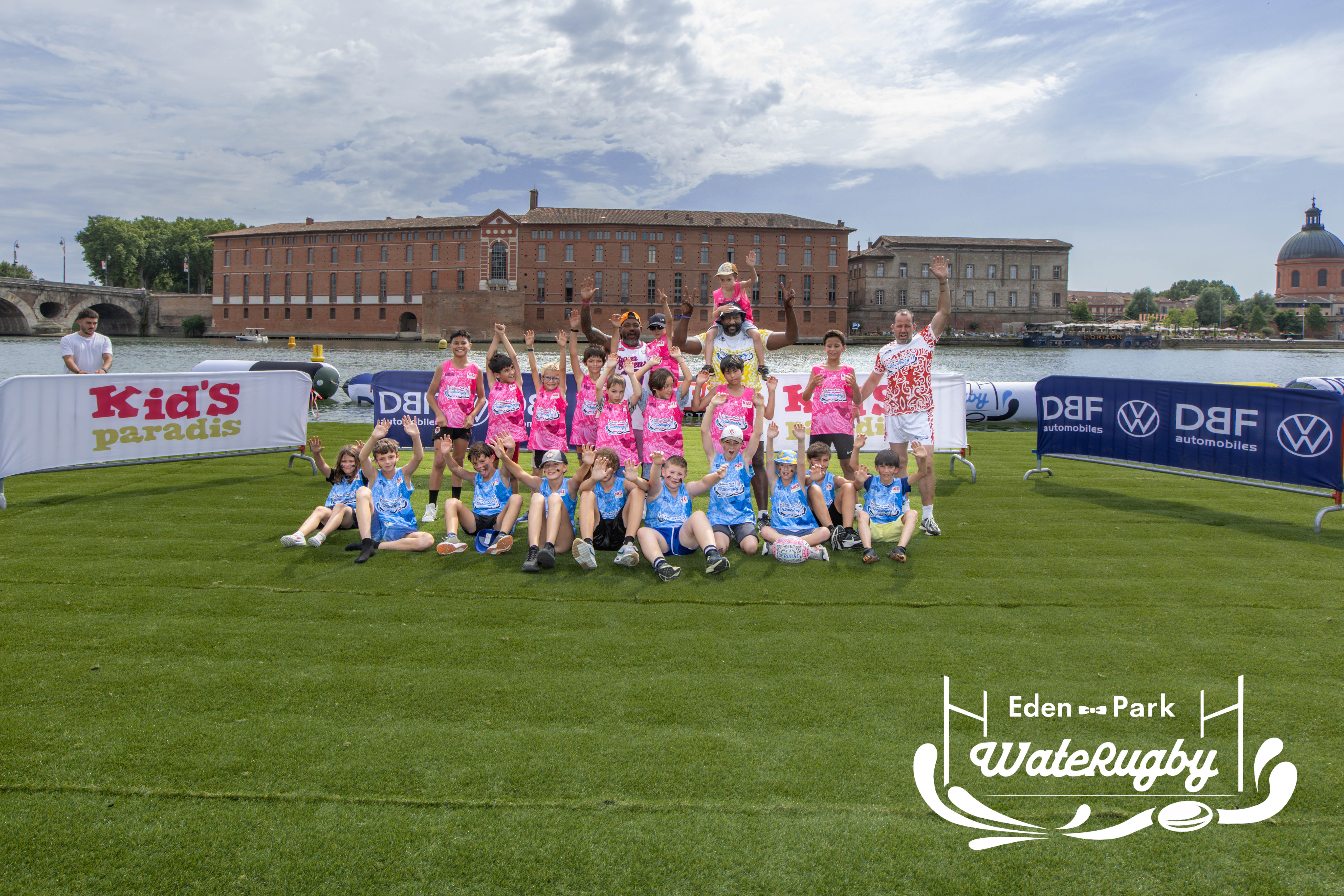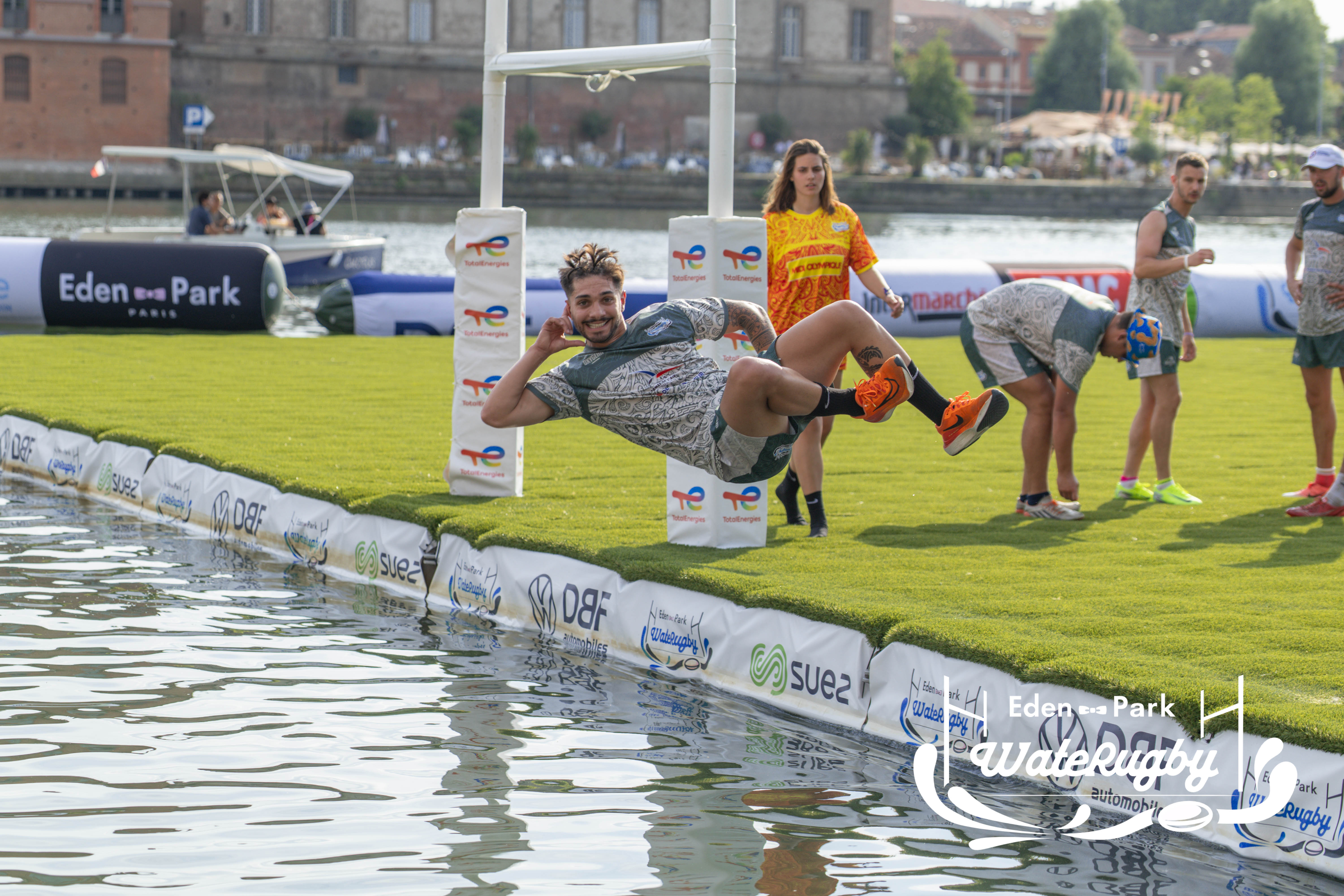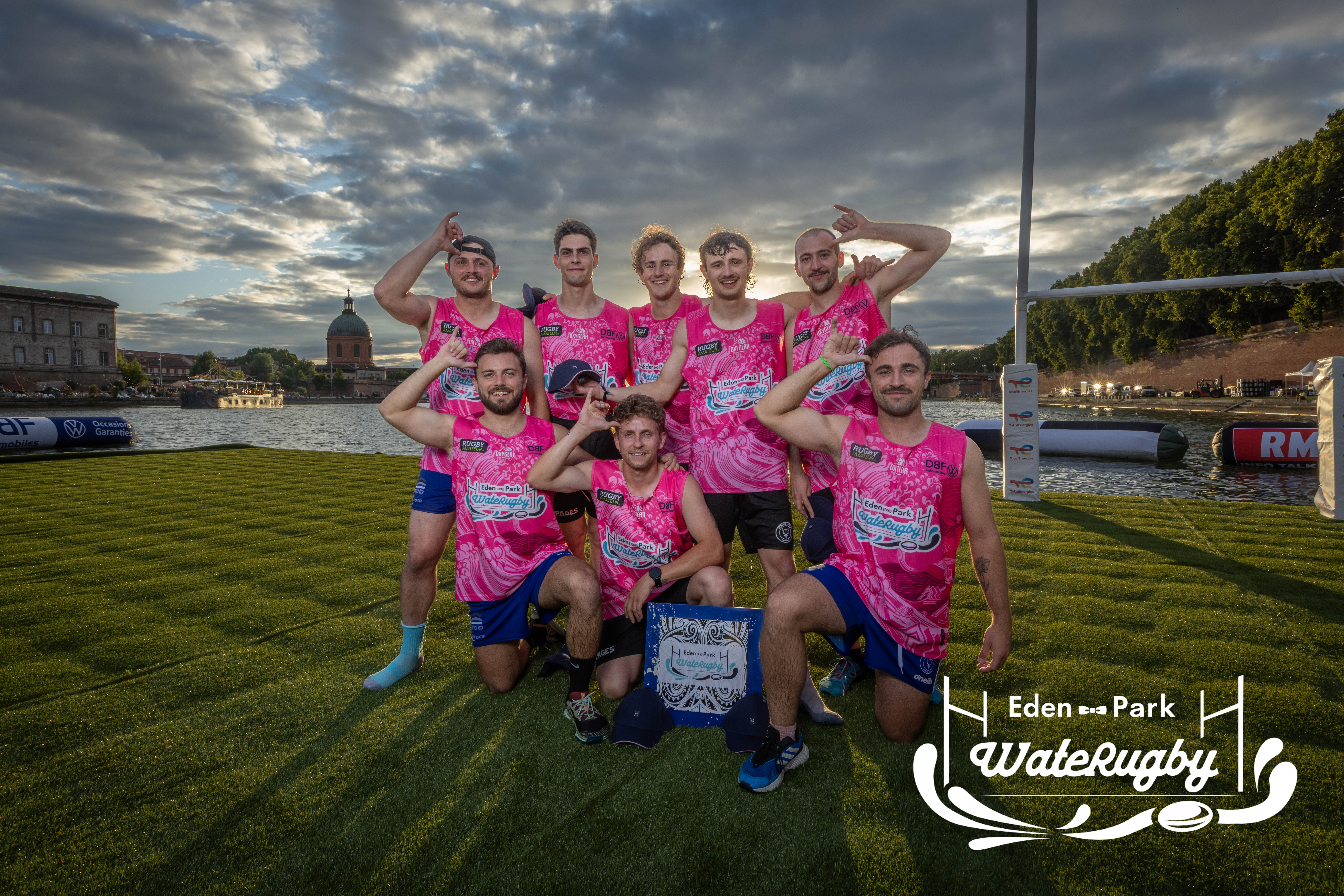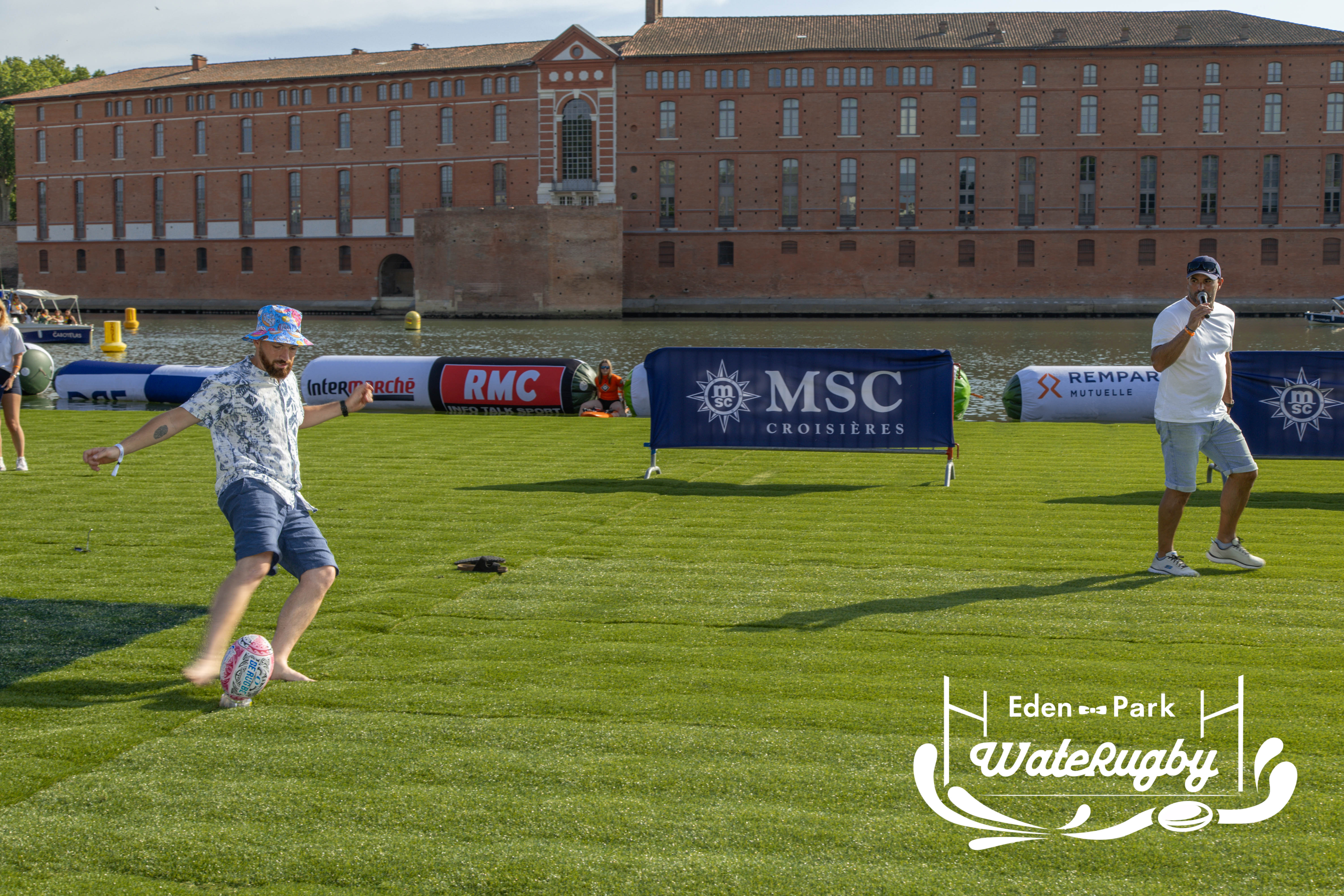 Compétition de rugby sur une barge sur la Garonne en plein centre de Toulouse
