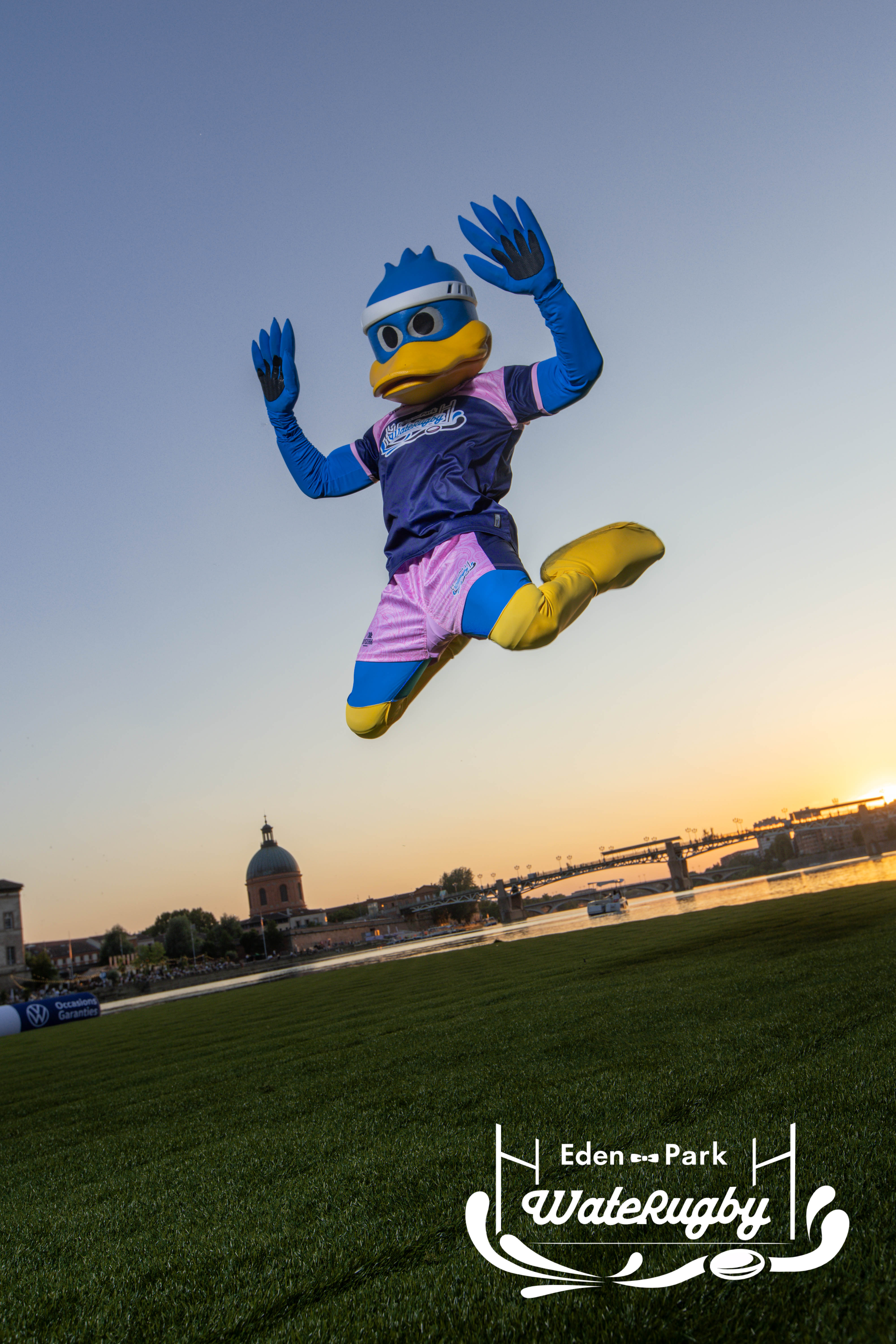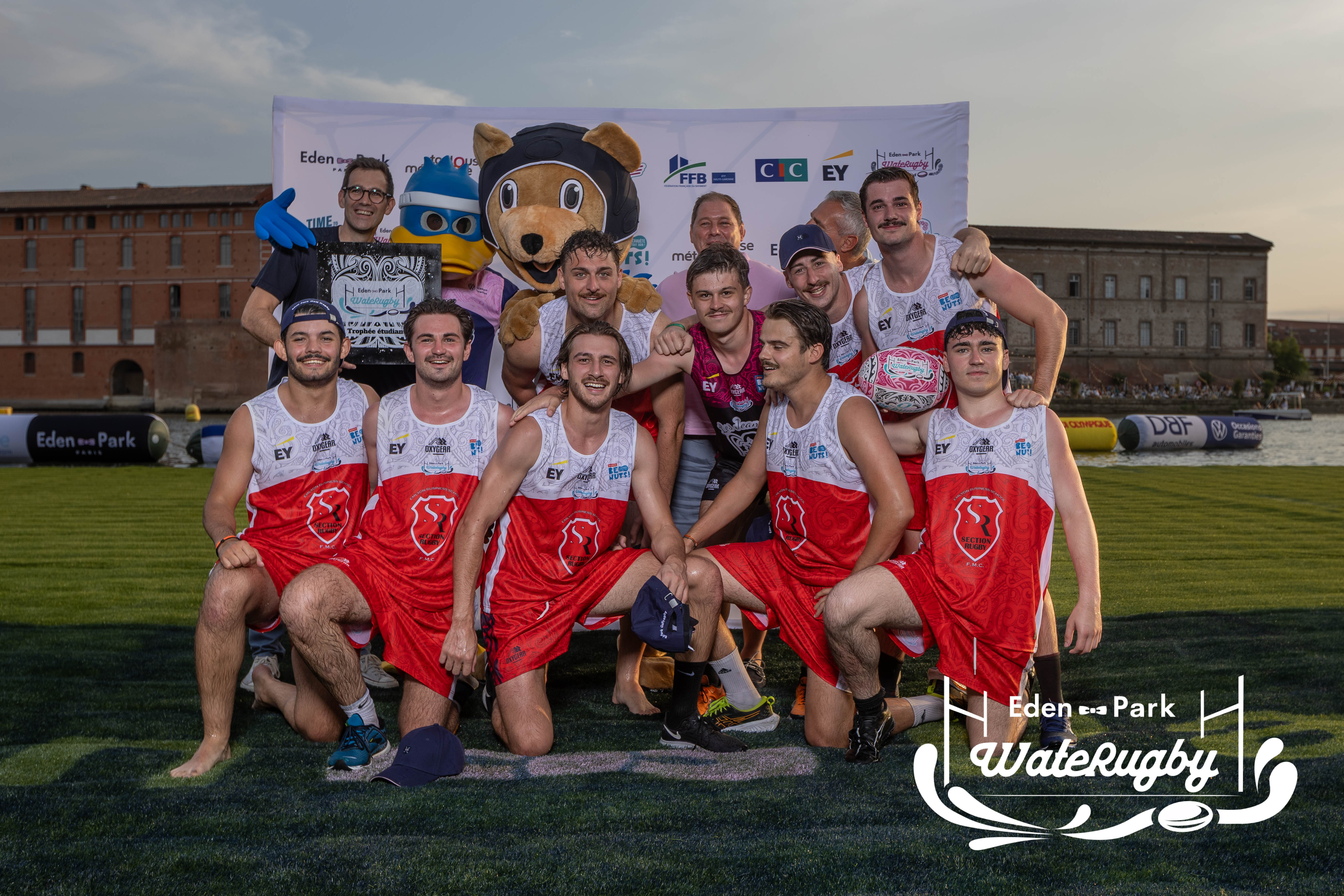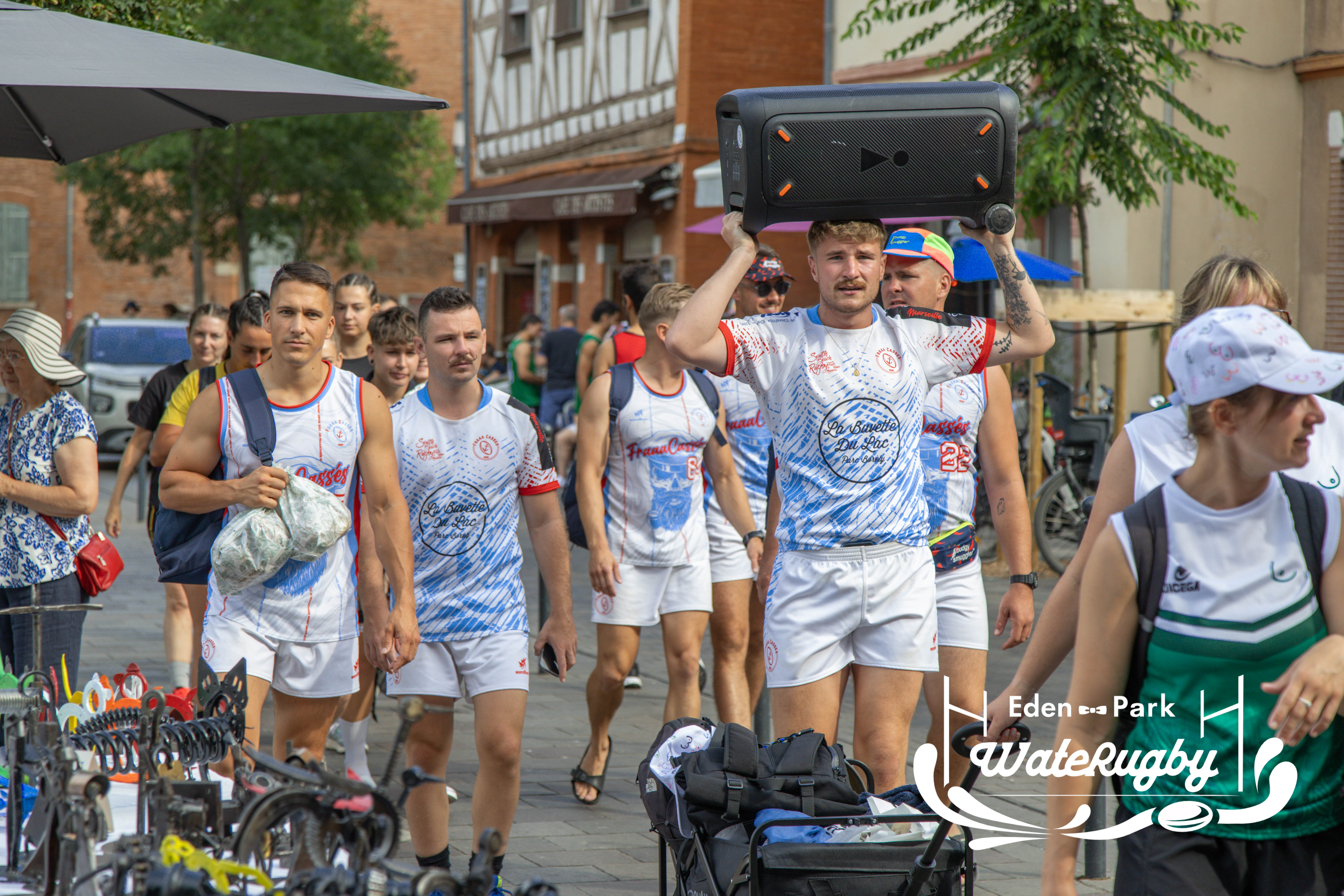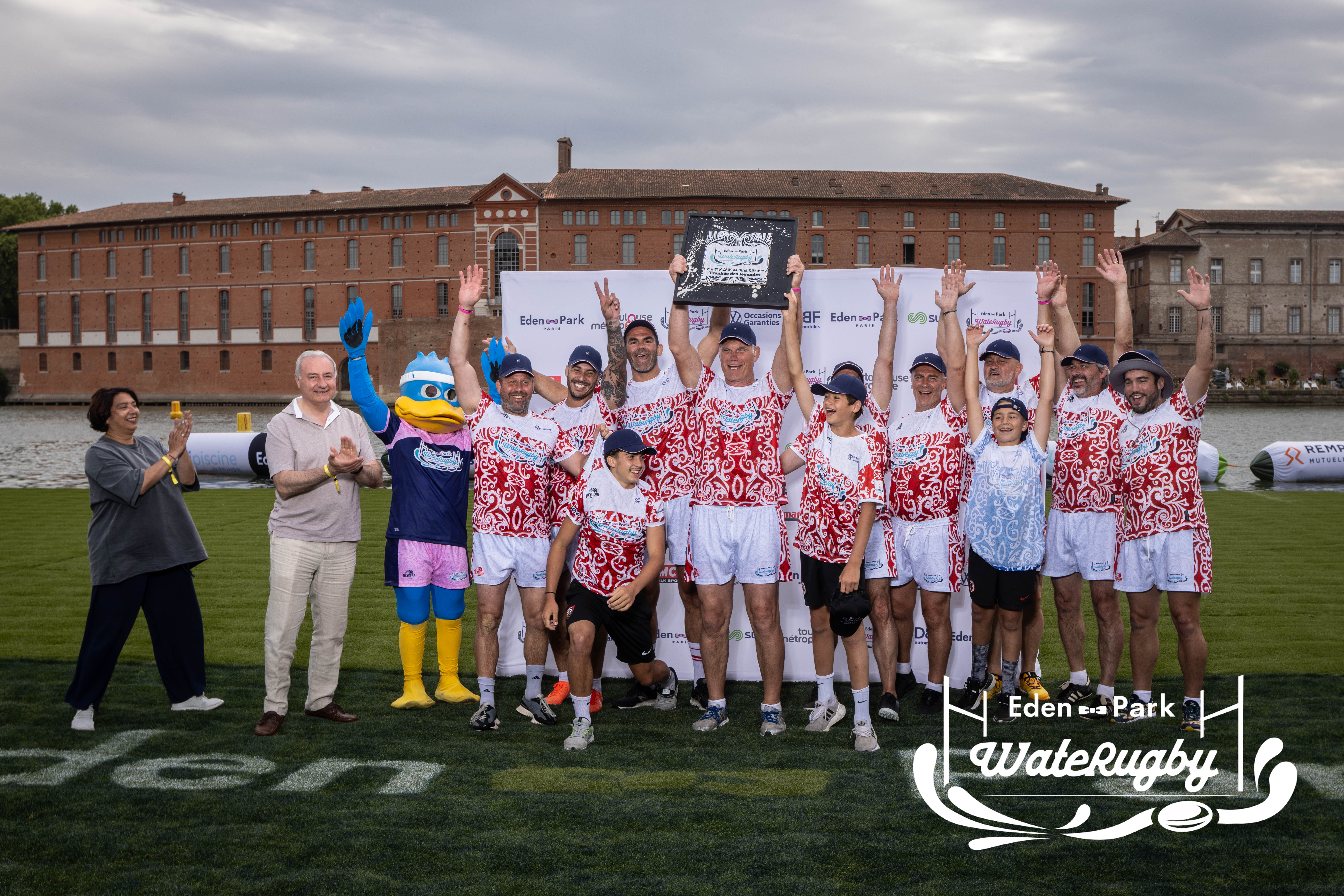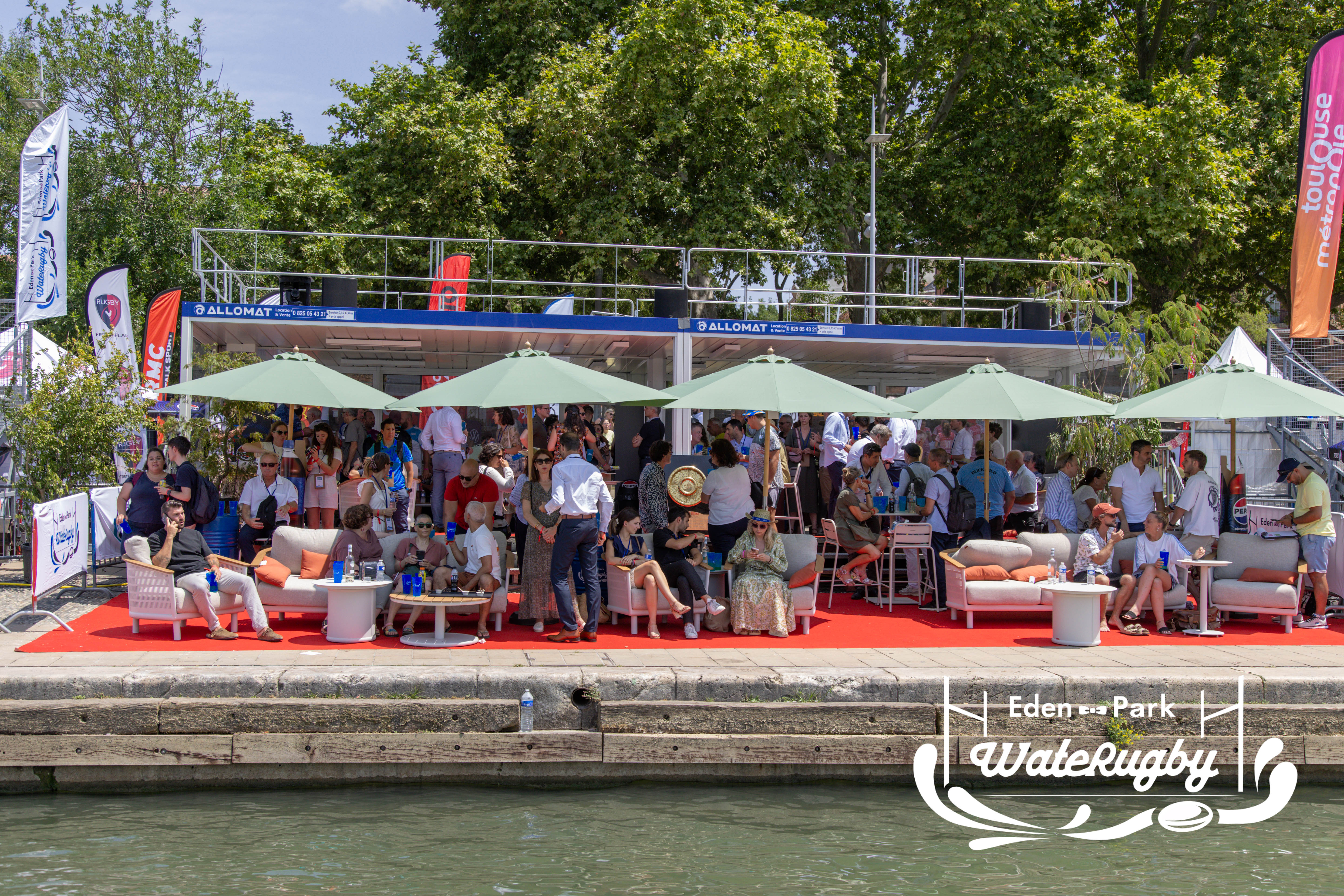 Compétition de rugby sur une barge sur la Garonne en plein centre de Toulouse